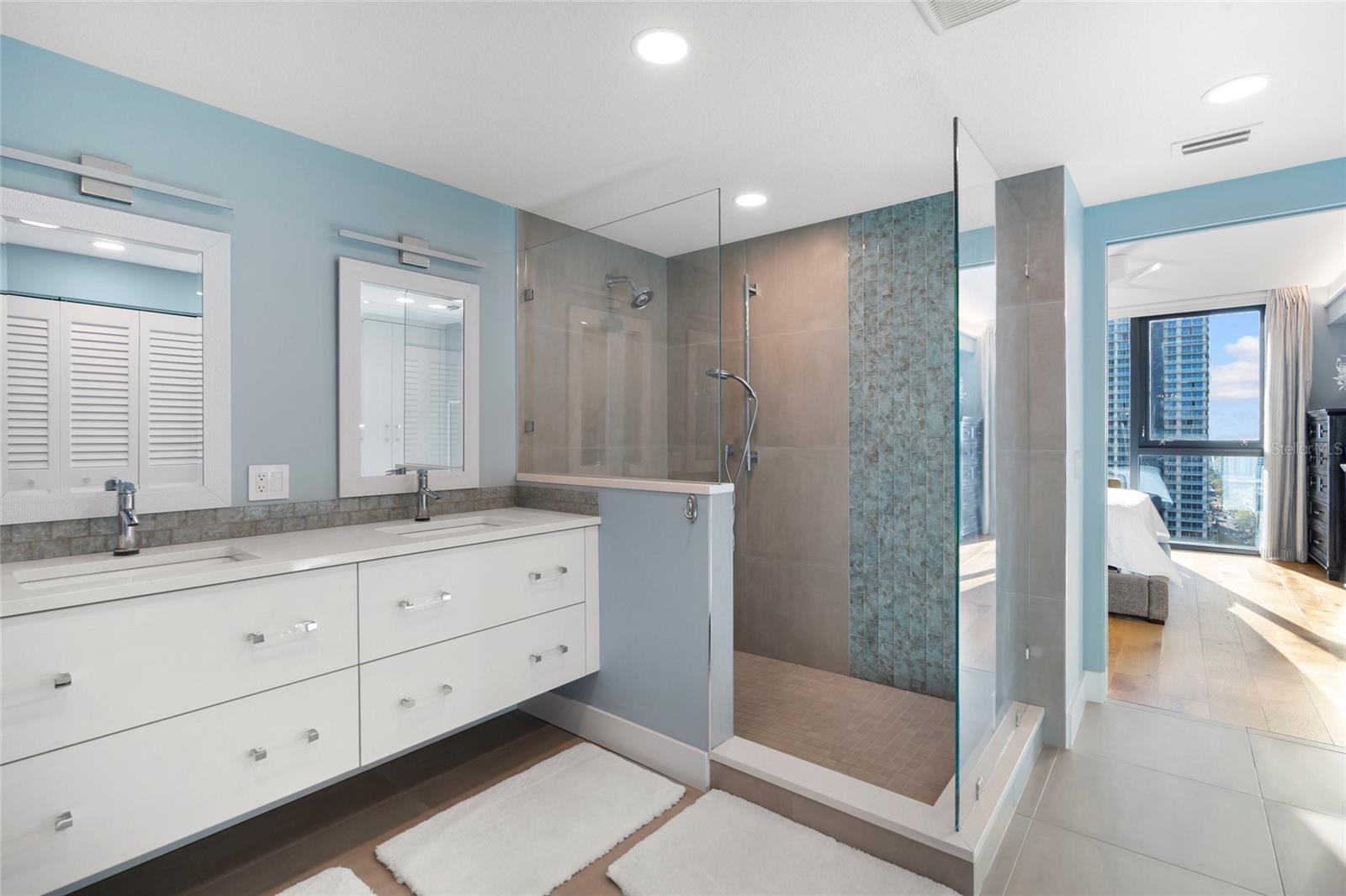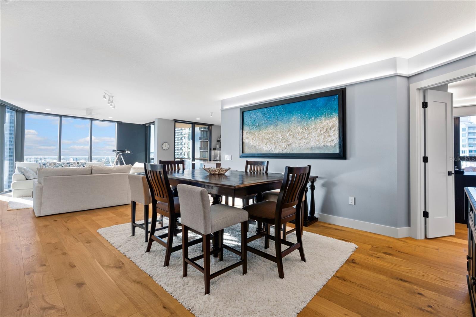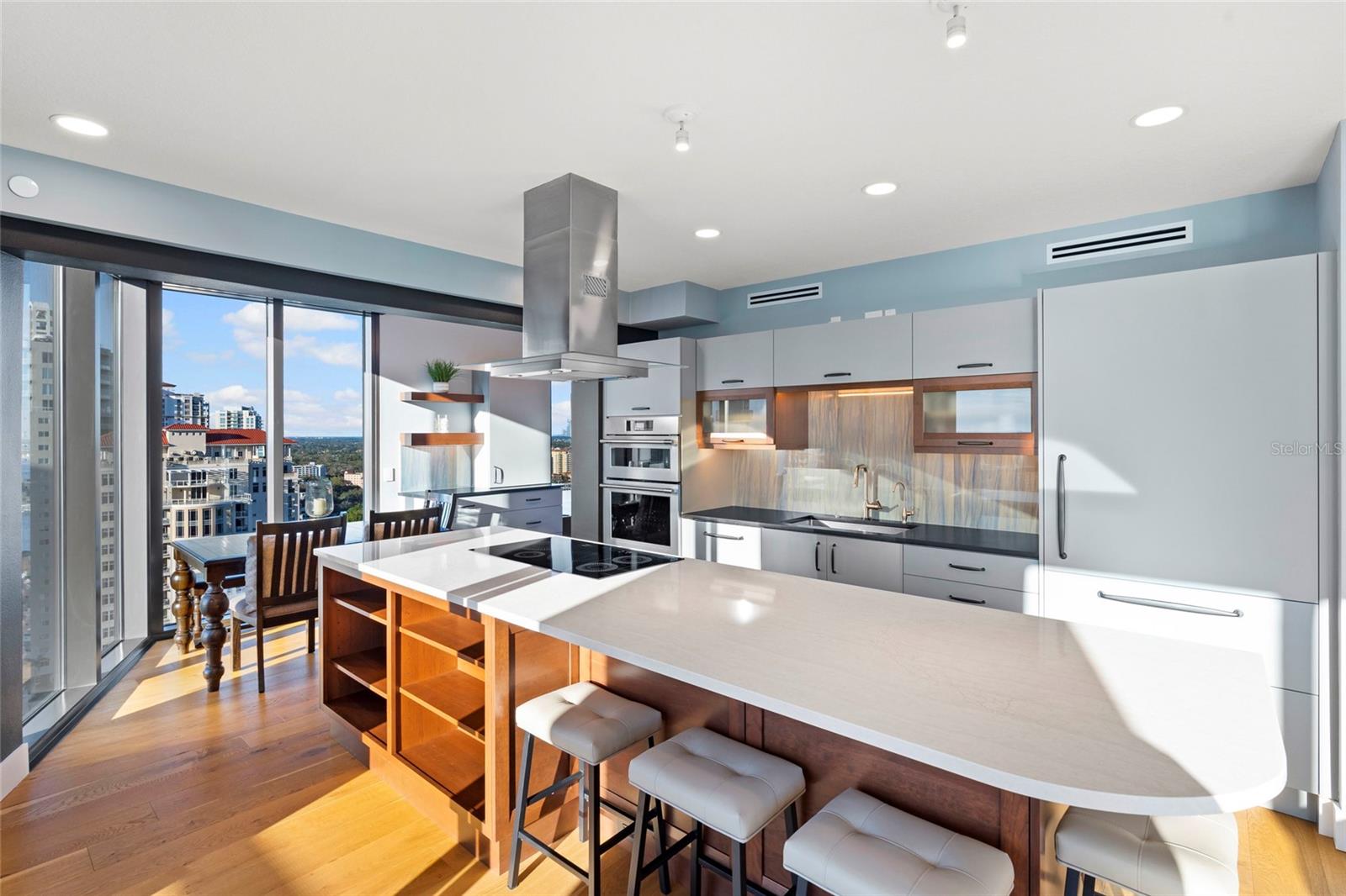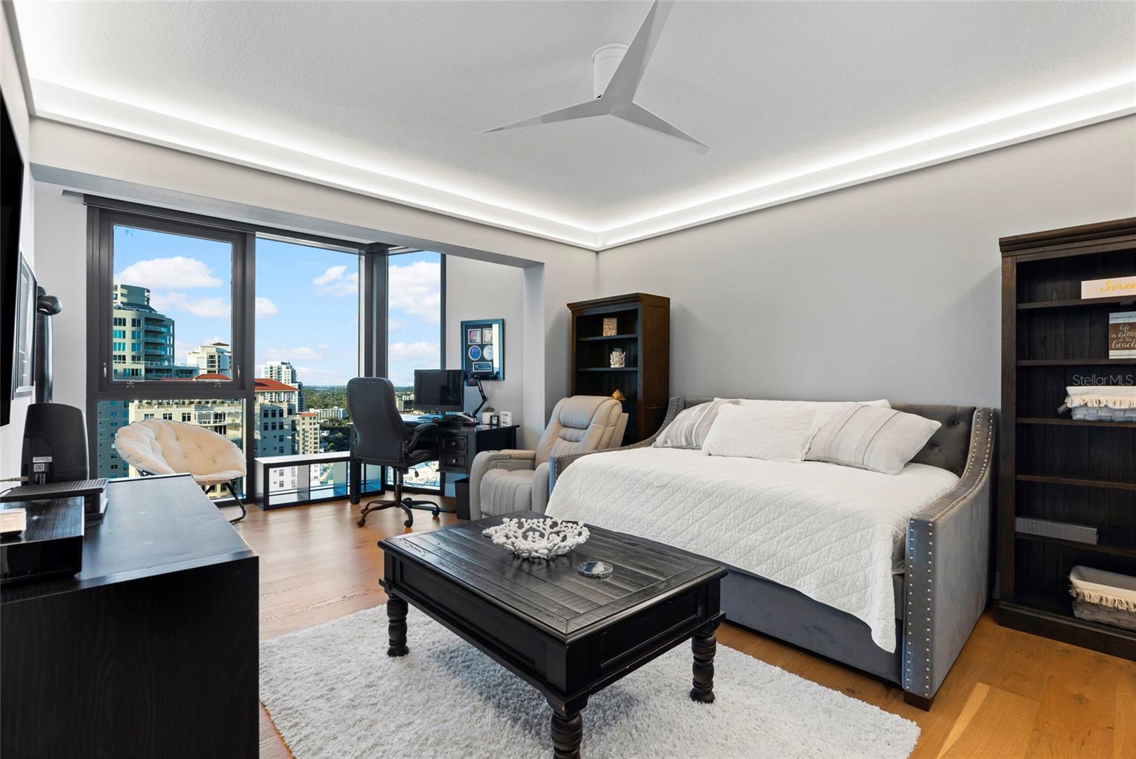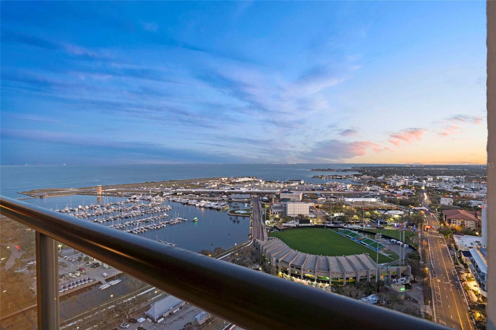 Step into luxury with this fully remodeled 2-bedroom, 2.5-bath condominium on the 24th floor of the renowned Bayfront Tower. Spanning an expansive 2,158 square feet, this NW corner unit offers unparalleled panoramic views of the St. Petersburg skyline, Tampa Bay, and beyond—encompassing the Skyway Bridge, the Gulf of America, downtown St. Petersburg, and even downtown Tampa. From every window, the vibrant city and serene bay unfold in breathtaking 180-degree vistas. Designed for modern luxury, this residence was meticulously remodeled in 2019 with the finest materials and finishes. As you enter, you are immediately greeted by 60 feet of floor-to-ceiling windows with electric shades that flood the space with natural light, highlighting the wide engineered plank hardwood floors and the porcelain tile found throughout the bathrooms. Thoughtfully crafted with LED indirect lighting and Lutron wireless controls, the home exudes a warm and inviting ambiance. The gourmet kitchen is a chef’s dream, featuring a top-tier induction cooktop, double wall oven with a microwave/convection combo, Sub-Zero refrigerator, Asko dishwasher, wine cooler, and custom cabinetry topped with quartz countertops. Whether preparing an intimate meal or entertaining guests, the stunning views make every culinary experience extraordinary. The kitchen provides the perfect vantage point for breathtaking sunsets, ensuring that each evening feels like a special occasion. The flexible layout includes an office/den/guest bedroom with scenic views of the Vinoy Basin and Tampa. The owner's suite offers a private retreat, complete with a spacious 14.5’ x 10.5’ walk-in closet and calming sunset views. Bayfront Tower offers an array of unparalleled amenities designed to enhance your lifestyle. Indulge in the resort-like rooftop, featuring a heated pool, gas grills, 360 running track, and shaded areas for unwinding while soaking in stunning views. The building also boasts a state-of-the-art gym, sauna, yoga/pilates room, game and card rooms, and a library, ensuring every resident has access to first-class leisure and convenience. The exclusive features continue with valet service available 24/7, offering the ultimate in convenience. For those looking for a true sense of community, Bayfront Tower also offers an auditorium, two bars, and an expansive ballroom, with a capacity of up to 150 guests, that has hosted countless memorable events, including weddings, making it the ideal space for gatherings. Located in the heart of Downtown St. Petersburg, this residence places you just steps away from fine dining, art galleries, museums, the St. Pete Yacht Club, lush parks, and vibrant nightlife. Experience the charm of Beach Drive, where the elegance of St. Pete meets the luxury lifestyle you deserve.