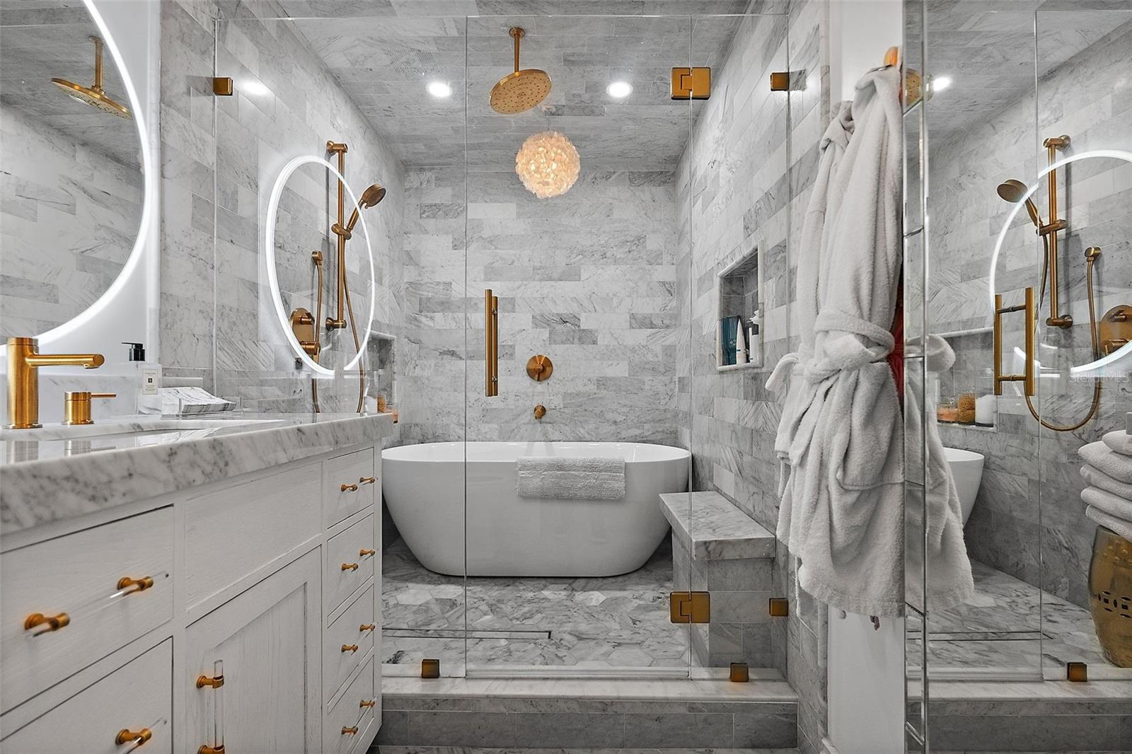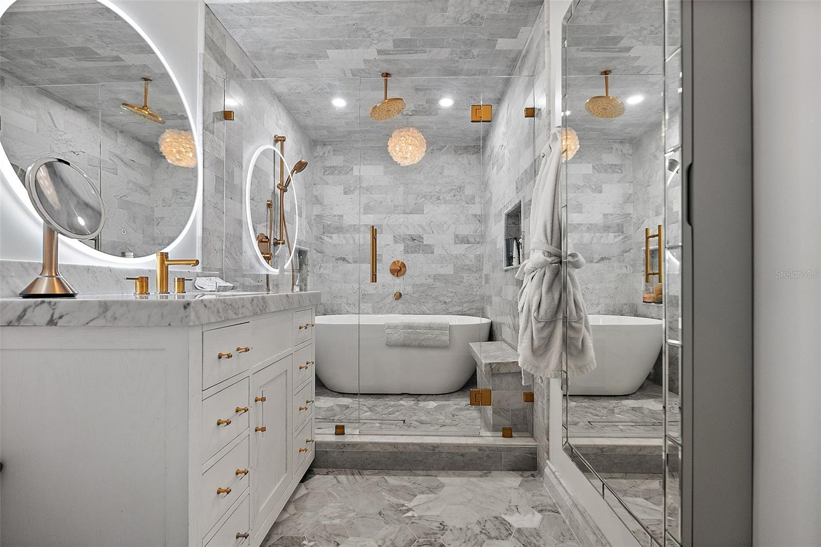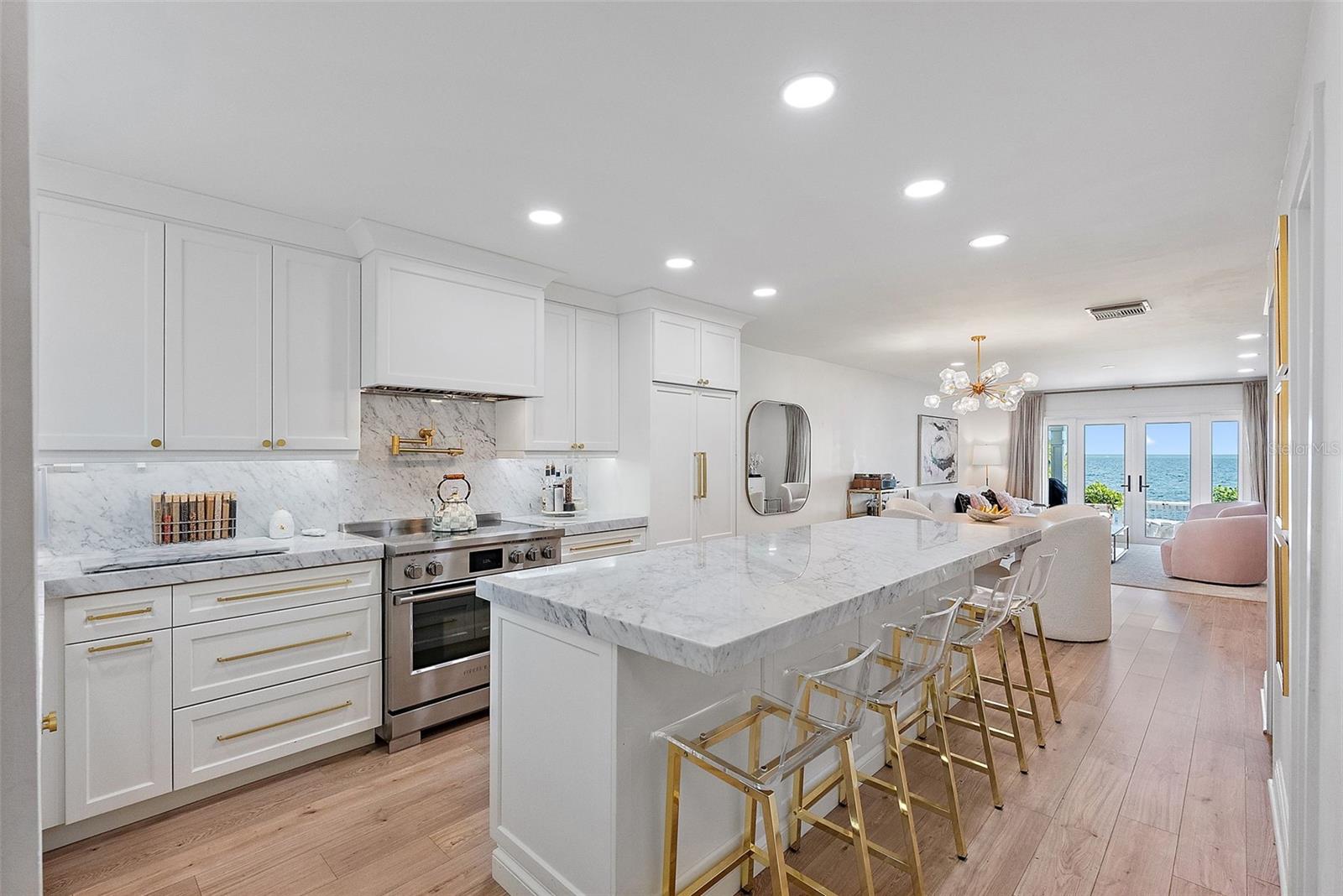 Experience Unparalleled Luxury! Elevate your lifestyle in this exquisite townhome/condo, perfectly poised with open waterfront views. Designed for both sophistication and comfort, this stunning residence has been meticulously renovated from the ground up in 2023, and it truly has it all! Notably, this property remained high and dry with no damage during recent hurricanes, offering peace of mind. From the moment you step inside, you’ll be enchanted by views of Tampa Bay. Every inch of this home has been thoughtfully curated with over $400,000 in luxurious upgrades, ensuring that no detail has been overlooked. The modified floor plan maximizes functionality, providing storage through custom-designed cabinets and closets crafted from the finest materials. Gourmet dream kitchen featuring a 36-inch induction range, built-in dual-function microwave with air fryer capabilities, Fisher and Paykel dishwasher drawers, and a Kohler sink. A dedicated coffee/wine niche with a dual temperature control beverage cooler is perfectly positioned across from the dining area for effortless entertaining. Revel in the opulence of Carrera and Noir marble countertops adorning the home, complemented by a stunning powder bathroom and under-stairs custom storage on the main level. Level 5 finish grace the walls and ceilings throughout, fostering an atmosphere of elegance. Escape to your serene, private patio through elegant Hurricane Impact French doors, where you can enjoy the spectacle of wildlife with dolphins by day and ships gliding by at night. Ascend to discover three expansive bedrooms, including a primary suite that boasts a reconfigured “wet zone” walk-in shower, a soaking tub with a marble bench, and a spacious California Closet fit for royalty. The guest room is thoughtfully equipped with a queen-sized Murphy bed for added convenience, and a secondary bathroom features a brand new Kohler soaking tub. Both bathrooms with Smart Features and upgrades such as LED vanity mirrors, Moen and Rohl plumbing fixtures, elegant vanities with appliance power, and designer-selected tiling throughout. Additional enhancements to the residence include a new full-size tank hot water heater, all-new copper plumbing, and a water softener, all new hurricane impact windows and doors, and all new interior doors ensuring both comfort and longevity. Added bonus is being adjacent to the community clubhouse and pool, located within a secure, resort-style neighborhood that spoils residents with incredible amenities, including two sparkling pools, tennis courts, a fitness center, shuffleboard, basketball courts, and a charming dog park. Engage in a variety of social activities, from water aerobics to trivia nights, truly a warm community to call home. You’re just moments from downtown St. Petersburg, where you can immerse yourself in the city's finest shopping, dining, and entertainment options. Plus, with Tampa Bay International Airport a short drive away, traveling is a breeze. Optional Opportunities: As an added benefit, the Seller is offering an exclusive opportunity to purchase a one-car garage and a boat dock with boat slip for, allowing you to embrace the waterfront lifestyle to the fullest. Don’t miss your chance to seize this incredible opportunity to own a luxurious townhome with captivating waterfront views in one of Florida's most desirable destinations. Schedule your personal tour and start living your Florida Waterfront Dream.