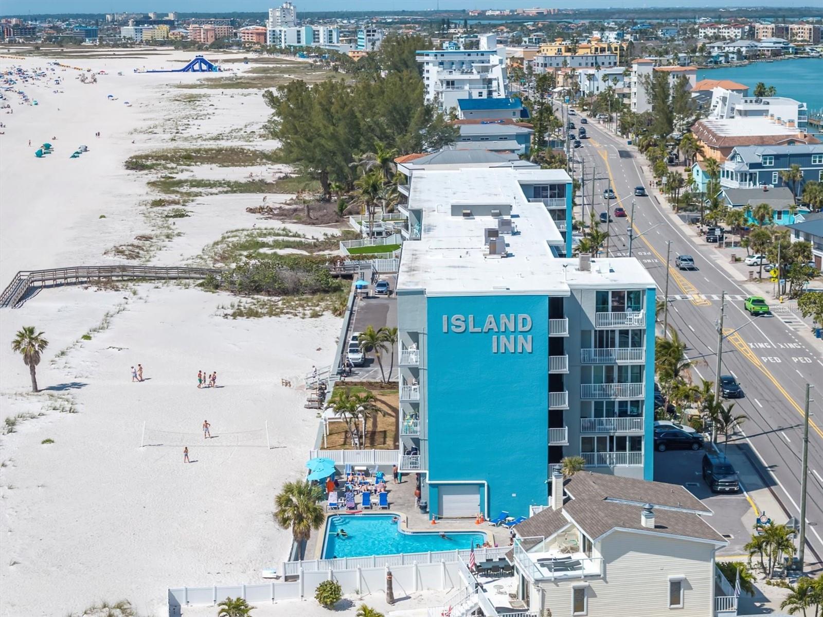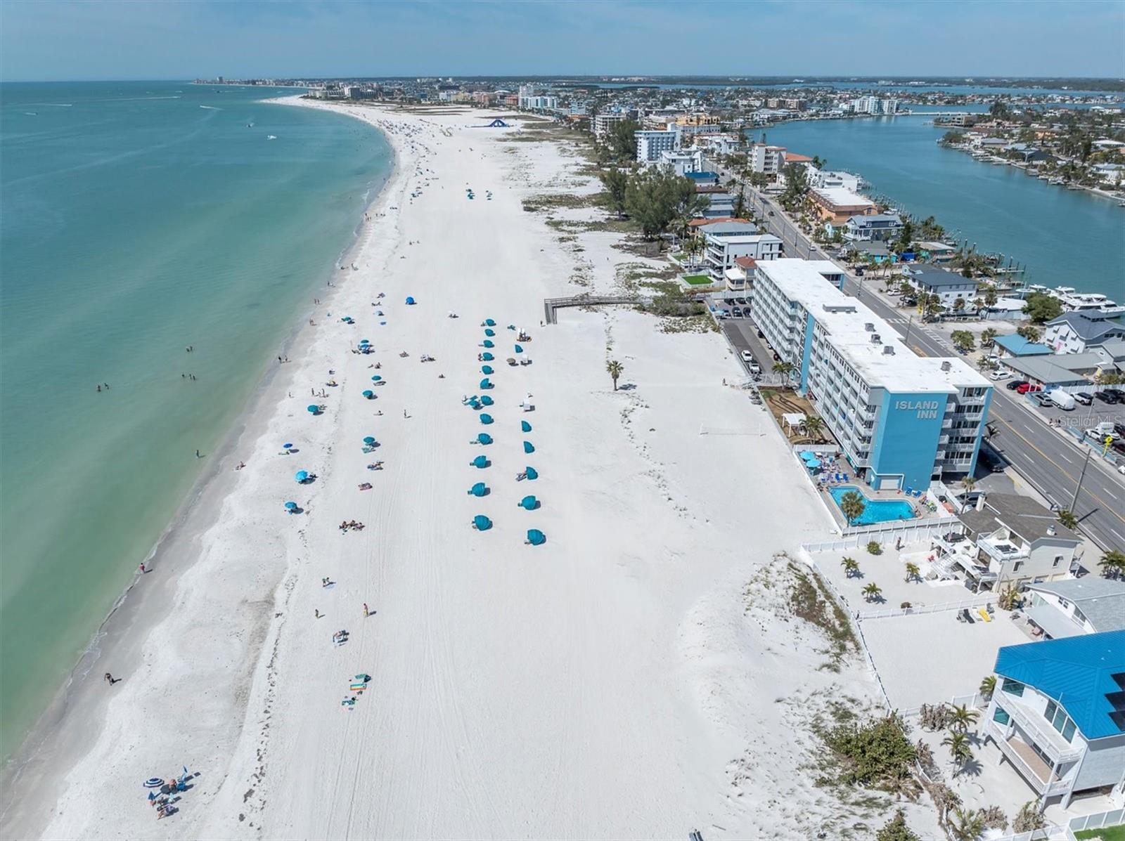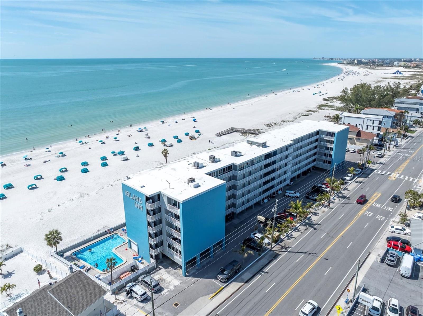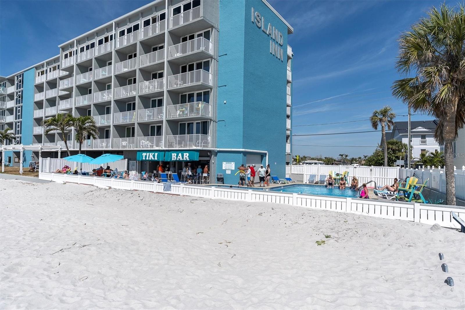 Rare opportunity to purchase an exquisite LUXURY GULF FRONT fully furnished Condo at the Island Inn Resort. Experience breathtaking sunsets from your fifth floor private balcony. This complex is the most sought-after beach CONDO/HOTEL on Treasure Island with the best foot print on the sand. One of the few buildings left on the beach with no minimum rental period. Utilize as your private beach getaway or income producing investment. High and Dry, this condo has completed its milestone inspection with millions of dollars of improvements Including an elegant new updated lobby, updated elevators, all new balconies, upgraded pool, walkways, exterior building paint and is ready for business. With fantastic amenities, such as a solar heated pool, tiki bar, and barbeque grills on the beach , perfect for entertaining family and friends, on-site laundry facilities and dedicated parking space, community boat slips and fishing pier call for aquatic adventures, and RV parking area (across from the building on the Intercoastal In the additional parking area) This totally updated unit boasts a gorgeous step-in shower, top grade kitchen appliances, dishwasher, granite counters, newer custom cabinetry, a stone kitchen island with seating and a comfortable king bed overlooking the water. Custom tiled through-out the unit. Newer high impact sliding doors & windows. This unit is one of the premiere suites in the building. Monthly maintenance includes electric, WI/FI, cable, water, building insurance, ground maintenance, Security, trash removal, insurance and reserves. No other complex offers as much for the price.