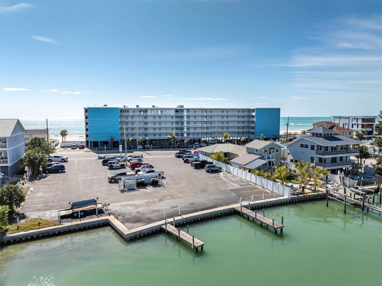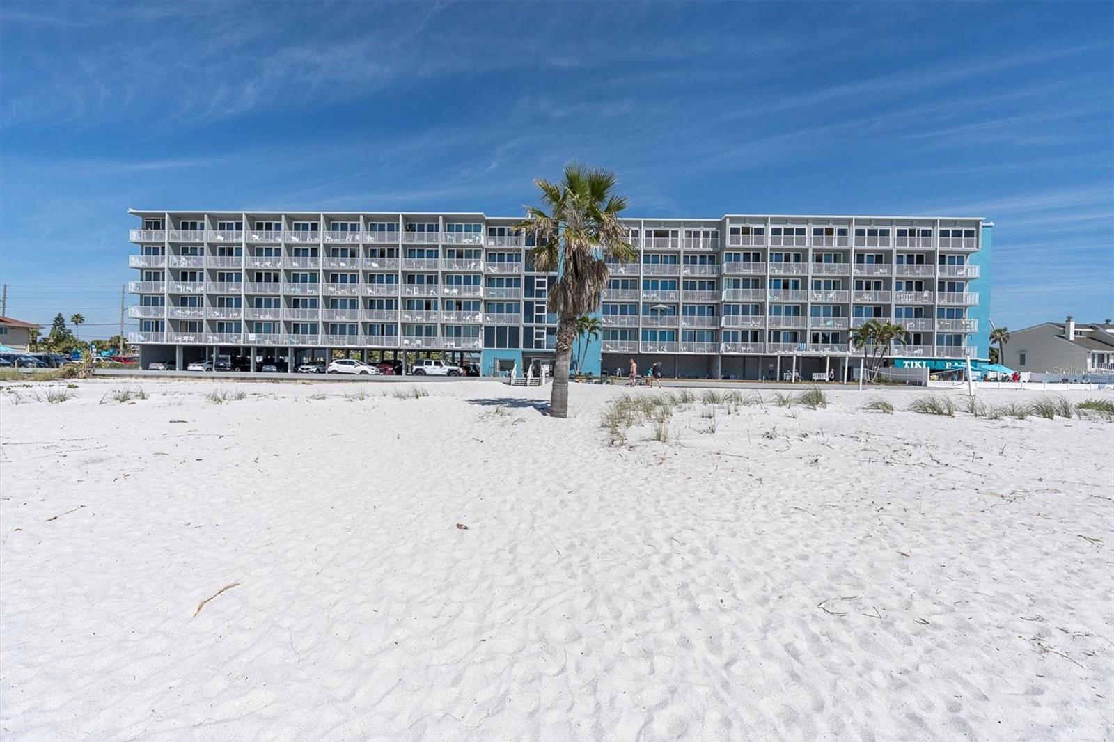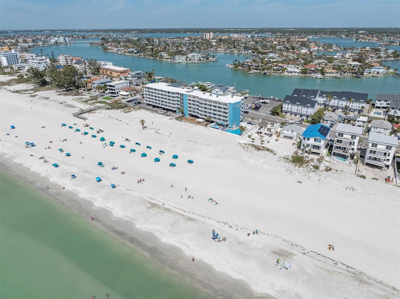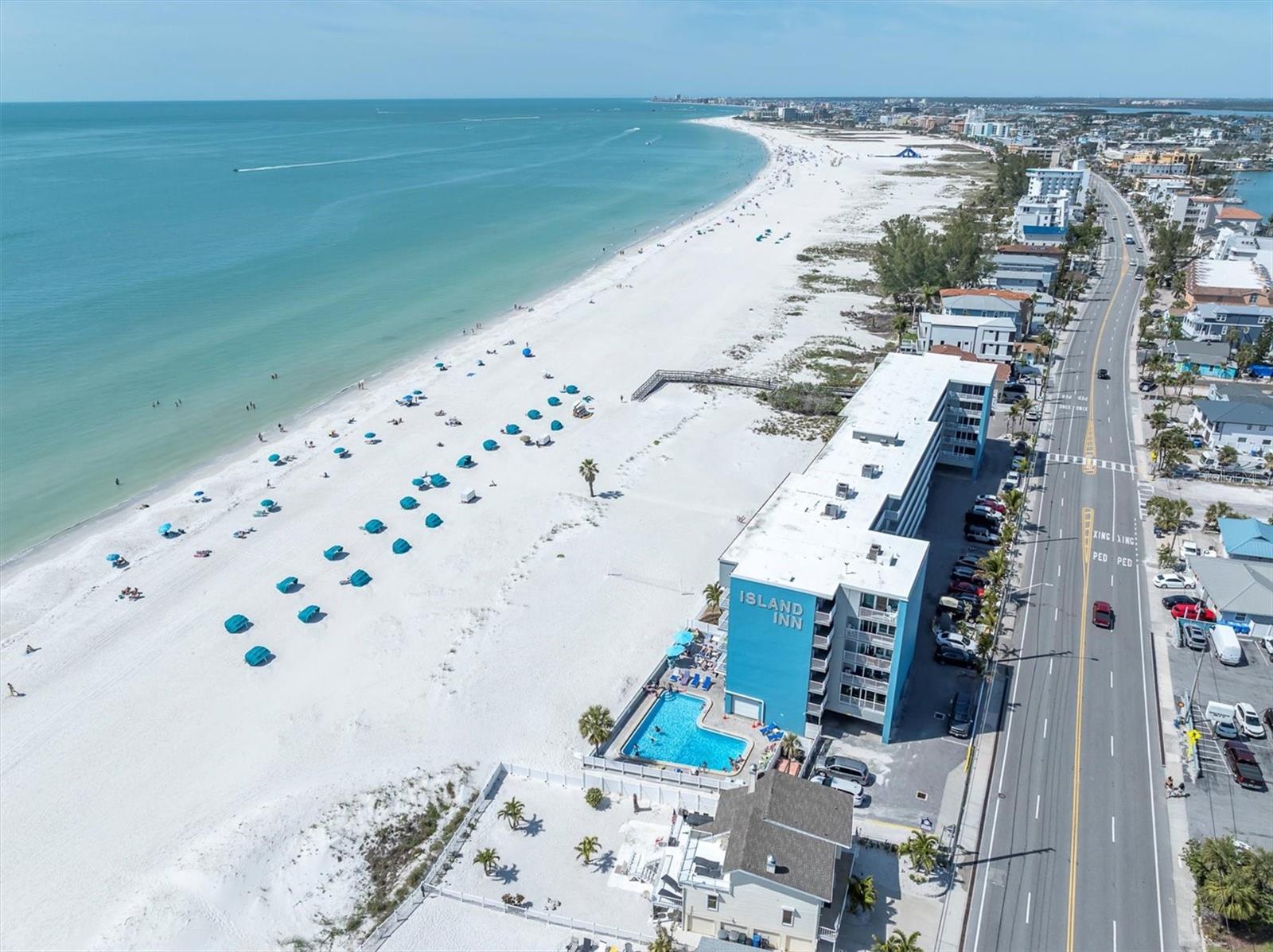 Rare opportunity to purchase an exquisite LUXURY GULF FRONT fully furnished Condo at the Island Inn Resort. Experience breathtaking sunsets from your fifth floor private balcony. This complex is the most sought-after beach CONDO/HOTEL on Treasure Island with the best foot print on the sand. One of the few buildings left on the beach with no minimum rental period. Utilize as your private beach getaway or income producing investment. High and Dry, this condo has completed its milestone inspection with millions of dollars of improvements Including an elegant new updated lobby, updated elevators, all new balconies, upgraded pool, walkways, exterior building paint and is ready for business. With fantastic amenities, such as a solar heated pool, tiki bar, and barbeque grills on the beach , perfect for entertaining family and friends, on-site laundry facilities and dedicated parking space, community boat slips and fishing pier call for aquatic adventures, and RV parking area (across from the building on the Intercoastal In the additional parking area) This totally updated unit boasts a gorgeous step-in shower, top grade kitchen appliances, dishwasher, granite counters, newer custom cabinetry, a stone kitchen island with seating and a comfortable king bed overlooking the water. Custom tiled through-out the unit. Newer high impact sliding doors & windows. This unit is one of the premiere suites in the building. Monthly maintenance includes electric, WI/FI, cable, water, building insurance, ground maintenance, Security, trash removal, insurance and reserves. No other complex offers as much for the price.