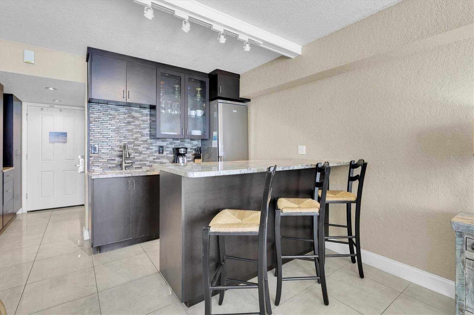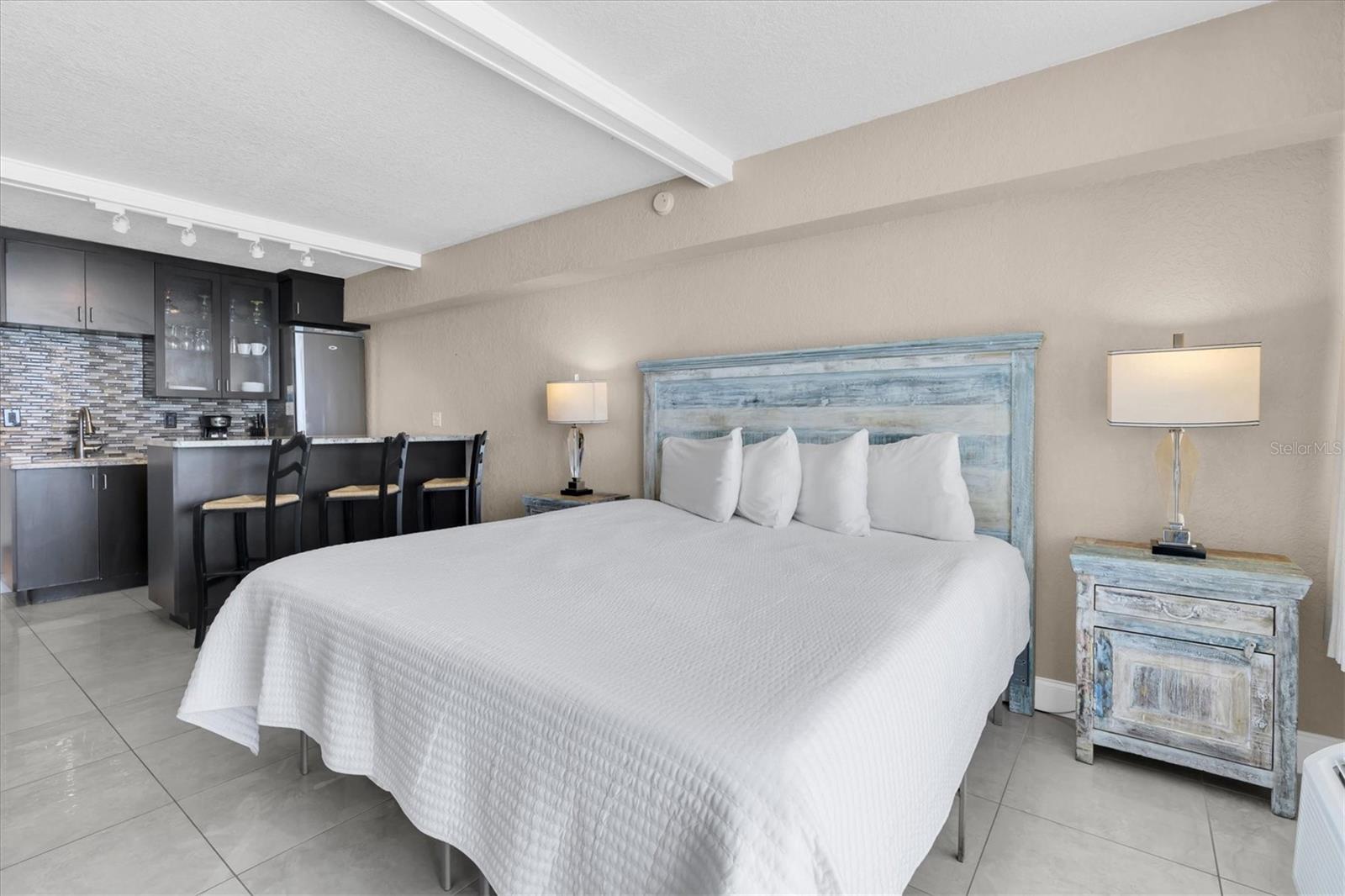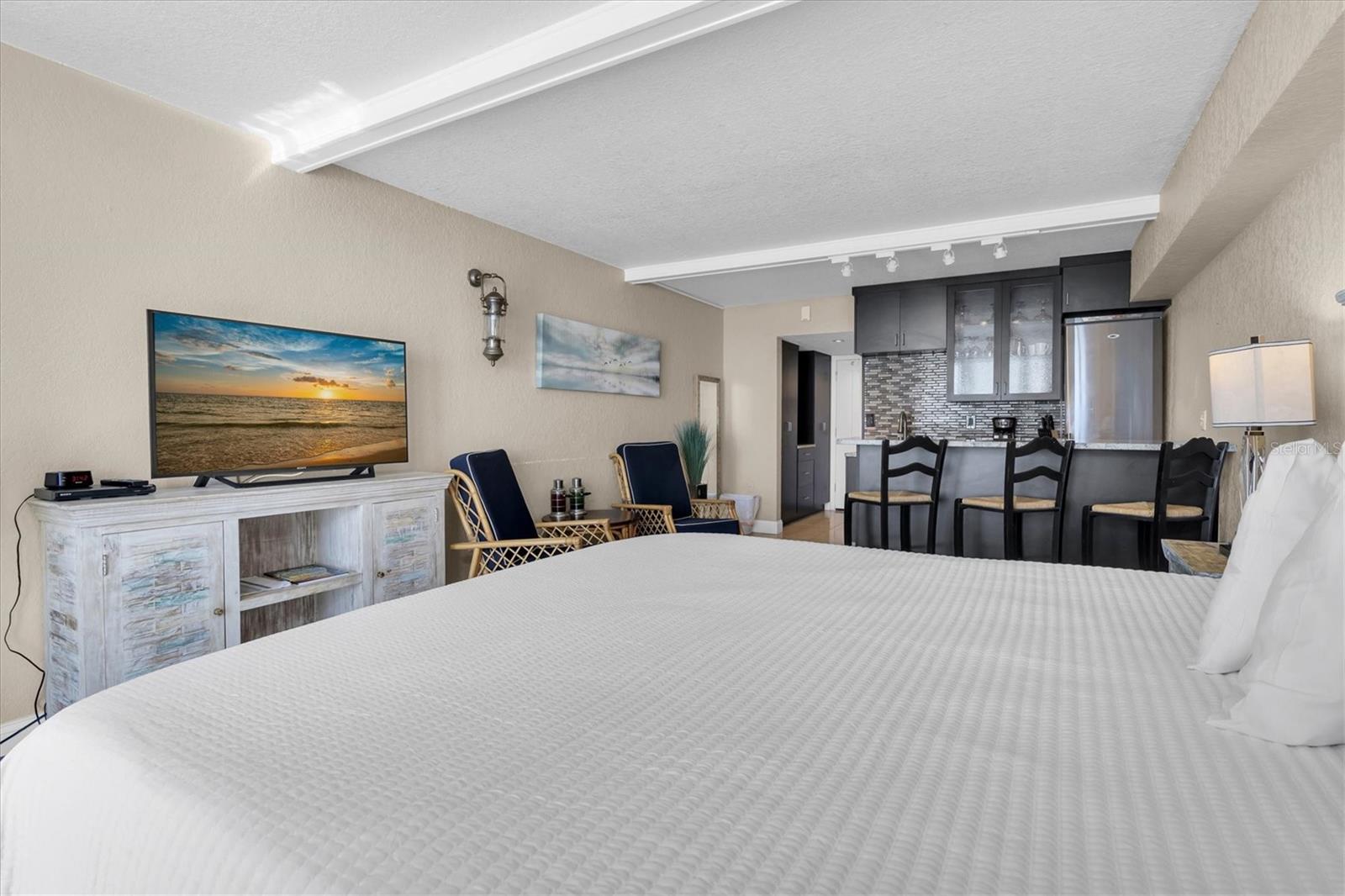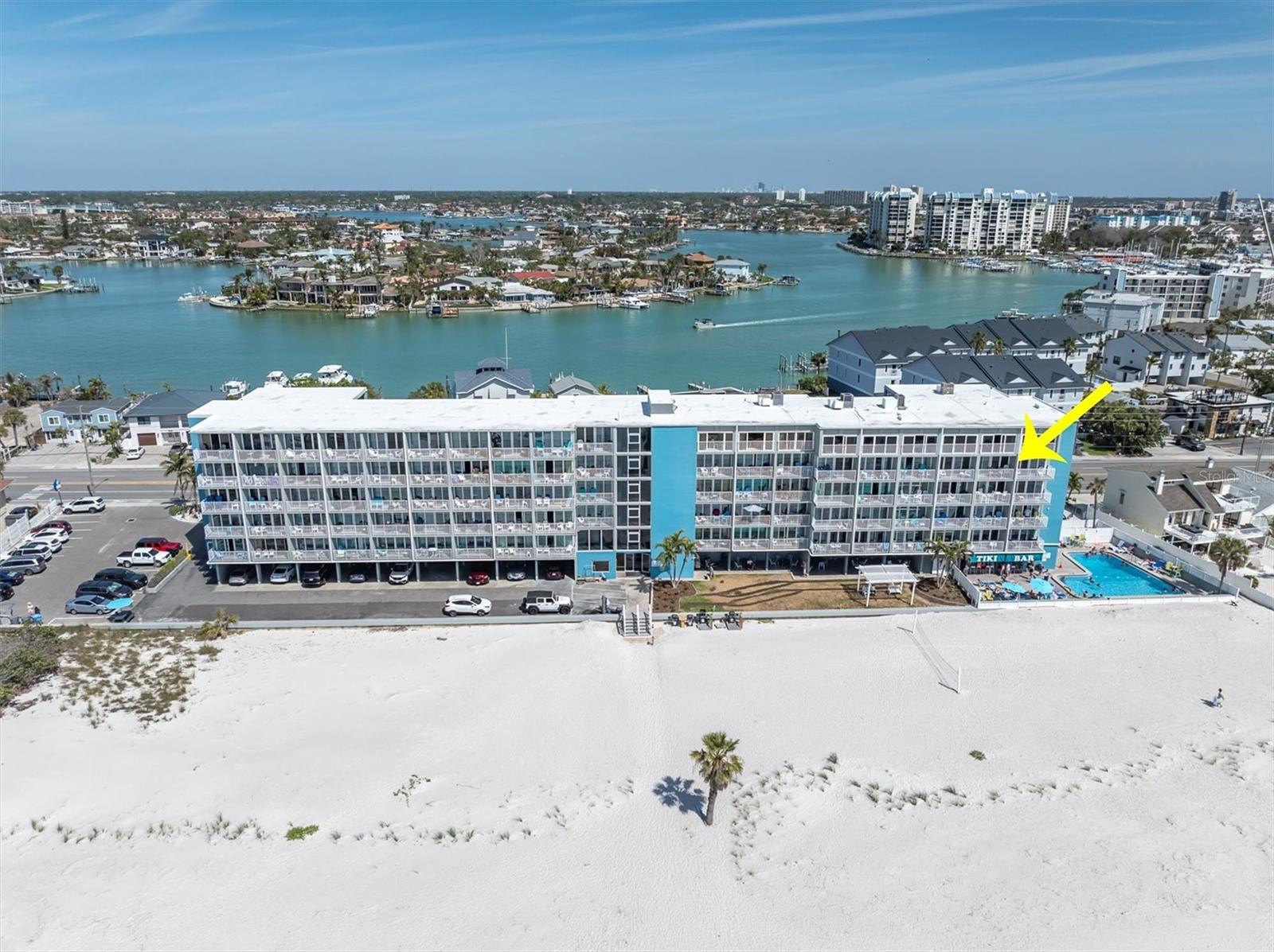 Rare opportunity to purchase an exquisite LUXURY GULF FRONT fully furnished Condo at the Island Inn Resort. Experience breathtaking sunsets from your fifth floor private balcony. This complex is the most sought-after beach CONDO/HOTEL on Treasure Island with the best foot print on the sand. One of the few buildings left on the beach with no minimum rental period. Utilize as your private beach getaway or income producing investment. High and Dry, this condo has completed its milestone inspection with millions of dollars of improvements Including an elegant new updated lobby, updated elevators, all new balconies, upgraded pool, walkways, exterior building paint and is ready for business. With fantastic amenities, such as a solar heated pool, tiki bar, and barbeque grills on the beach , perfect for entertaining family and friends, on-site laundry facilities and dedicated parking space, community boat slips and fishing pier call for aquatic adventures, and RV parking area (across from the building on the Intercoastal In the additional parking area) This totally updated unit boasts a gorgeous step-in shower, top grade kitchen appliances, dishwasher, granite counters, newer custom cabinetry, a stone kitchen island with seating and a comfortable king bed overlooking the water. Custom tiled through-out the unit. Newer high impact sliding doors & windows. This unit is one of the premiere suites in the building. Monthly maintenance includes electric, WI/FI, cable, water, building insurance, ground maintenance, Security, trash removal, insurance and reserves. No other complex offers as much for the price.