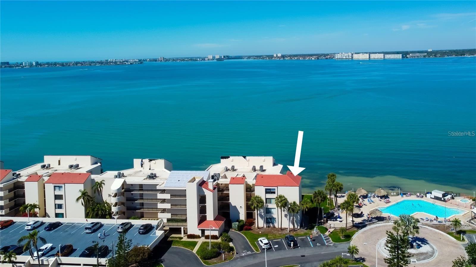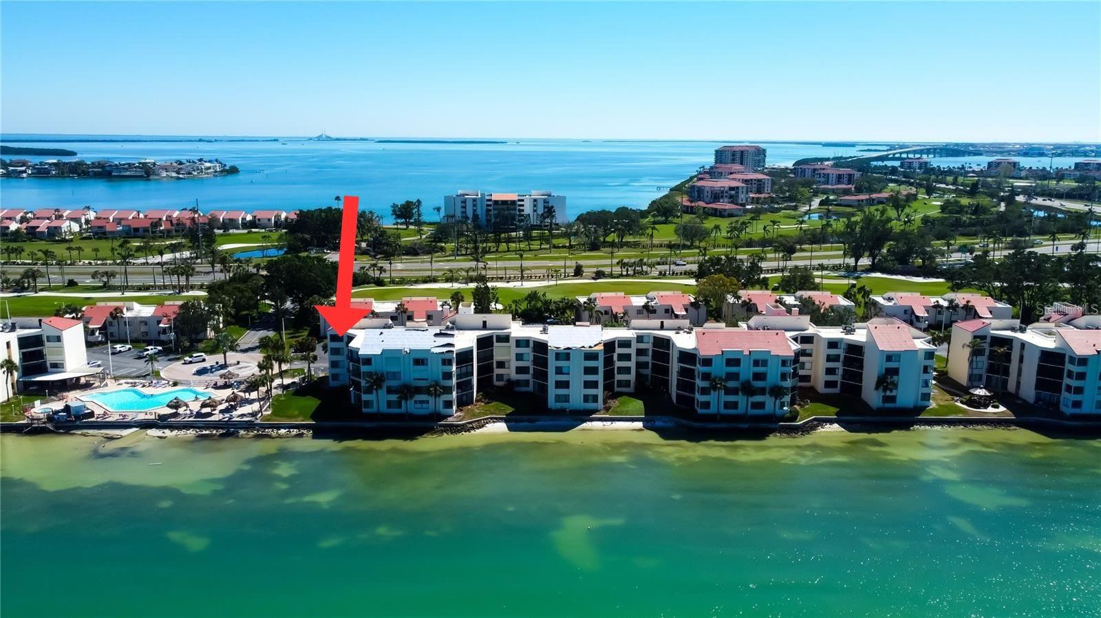 One or more photo(s) has been virtually staged. Perched on the top corner of the building, this 2-bedroom, 2-bathroom condo offers unmatched privacy and breathtaking views in every direction. The open floor plan is bathed in natural light, creating a bright and airy atmosphere that seamlessly blends indoor and outdoor living. Floor-to-ceiling vistas showcase the sparkling waters of Boca Ciega Bay, where dolphins and boats glide by, while the shimmering pool and distant city skyline add to the picturesque backdrop. The kitchen is both stylish and functional, featuring elegant cabinetry with glass details, ample counter space, and a convenient eating bar for casual dining. Whether you're enjoying a meal in the formal dining area or sipping coffee in the cozy breakfast nook, you have options. Retreat to the spacious primary suite, where charming French doors open to the living area, framing stunning water views. The ensuite bath offers a walk-in shower with seating for ultimate ease. The second bedroom, currently used as an office, is a versatile space with a walk-in closet. Residents also enjoy the heated waterfront pool—an inviting space to relax under the Florida sun—along with convenient bike and kayak storage and a dedicated kayak launch for those who love to explore the bay. The community welcomes pets, making it a great place for your furry companions as well. For those seeking an active lifestyle, membership at the nearby Isla Del Sol Yacht & Country Club (a short five-minute walk away) offers access to golf, tennis, and social events (separate fee required). Plus, you're just minutes from the award-winning shores of St. Pete Beach, the charming shops and restaurants of Corey Avenue, and a quick drive to downtown St. Petersburg’s vibrant arts and dining scene. With both St. Pete/Clearwater and Tampa International airports within 35 minutes, this is truly a place where convenience meets coastal beauty.