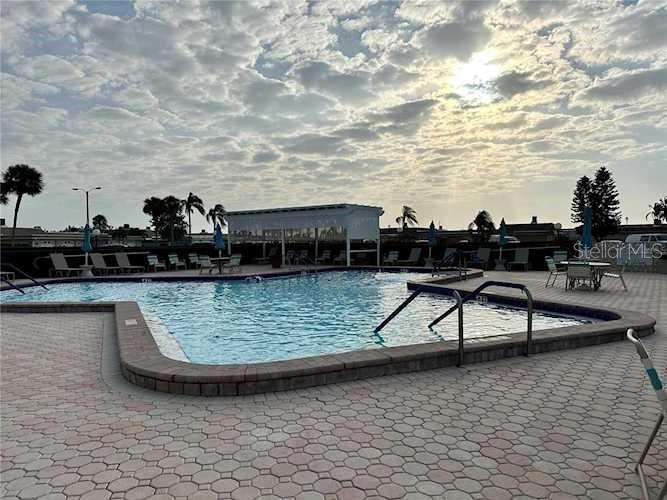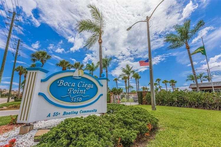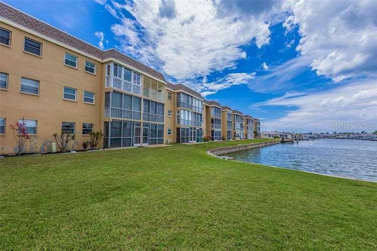 NEW PRICE, NEW PICTURES and New Roof presently being installed 4/1/25. NO flood or water damage from Helen or Milton! Act fast, this waterfront gem in the sought-after 55+ gated community of Boca Ciega Point won't last long! This move-in-ready 1-bedroom, 1-bathroom condo boasts breathtaking water views and is just minutes from the pristine sands of Madeira Beach. Located on the second floor near the elevator and laundry, this unit offers ultimate convenience. Major updates already done. NEW electrical panel and AC (2024). Additional perks include a newer dishwasher, garbage chute, storage closet for beach gear, and a reserved covered parking space. Enjoy stunning sunsets from your inviting Florida room while watching dolphins and manatees right outside your window! This amenity-packed community offers shuffleboard, tennis, pickleball, bocce, a newly updated fitness room, a library, a heated pool with sauna, putting green, and TWO clubhouses. Opportunities like this don't come often, schedule your showing today