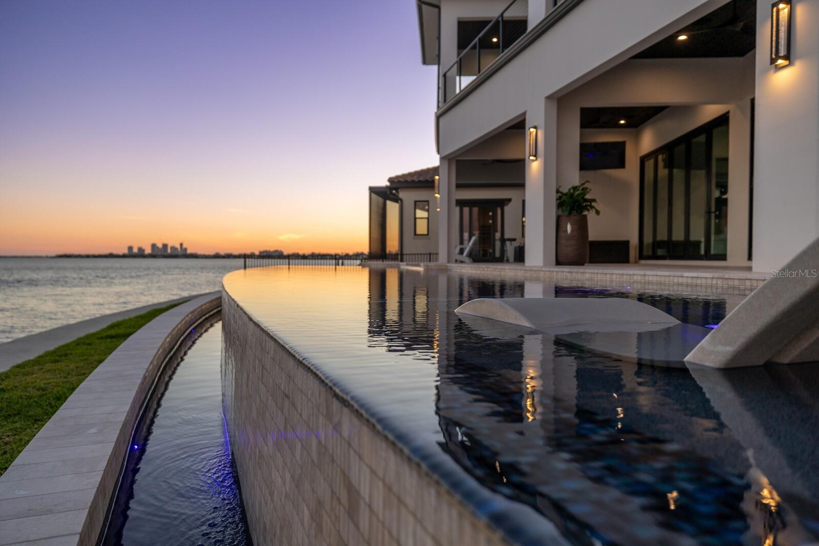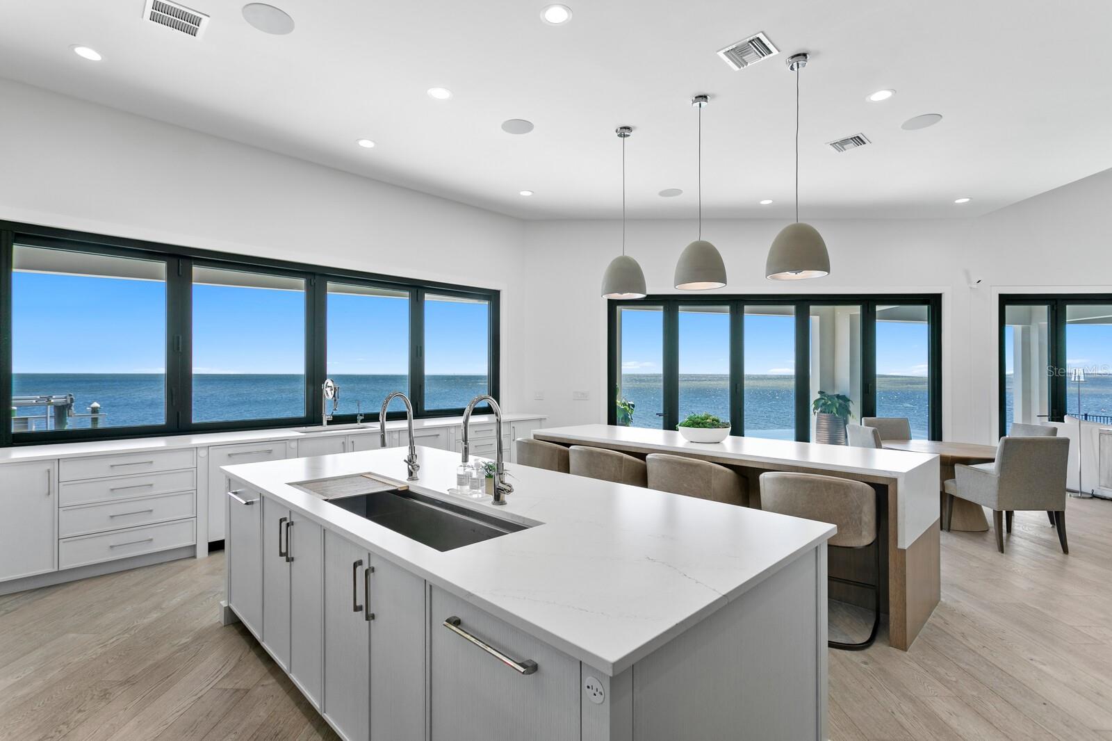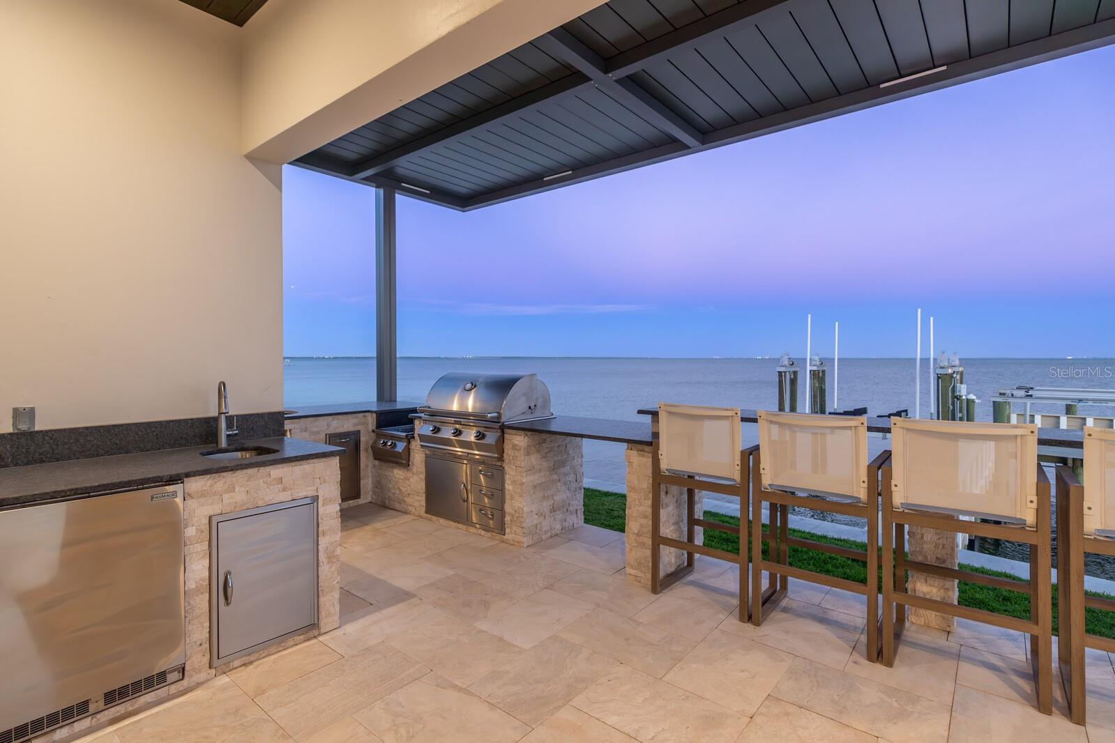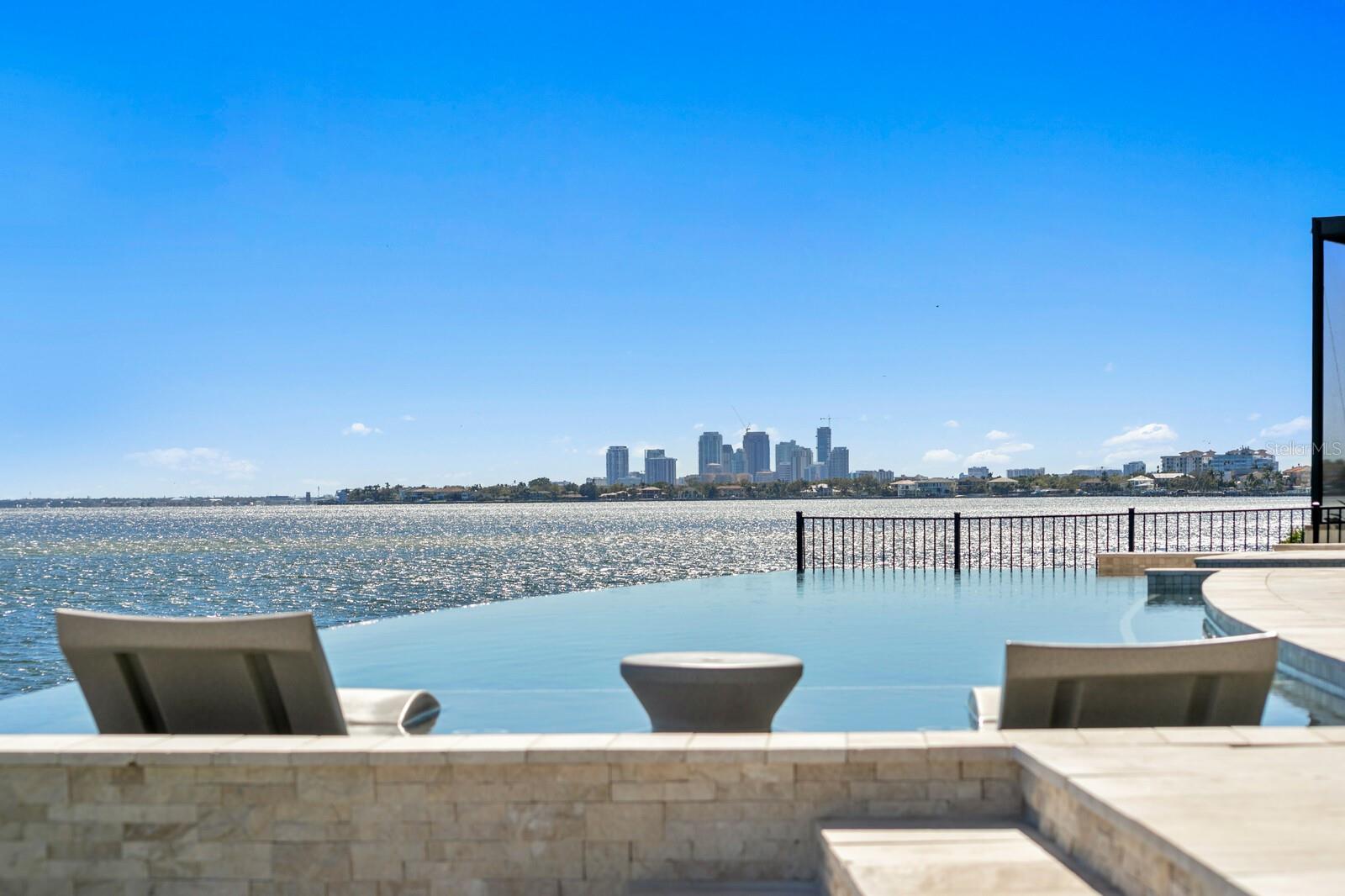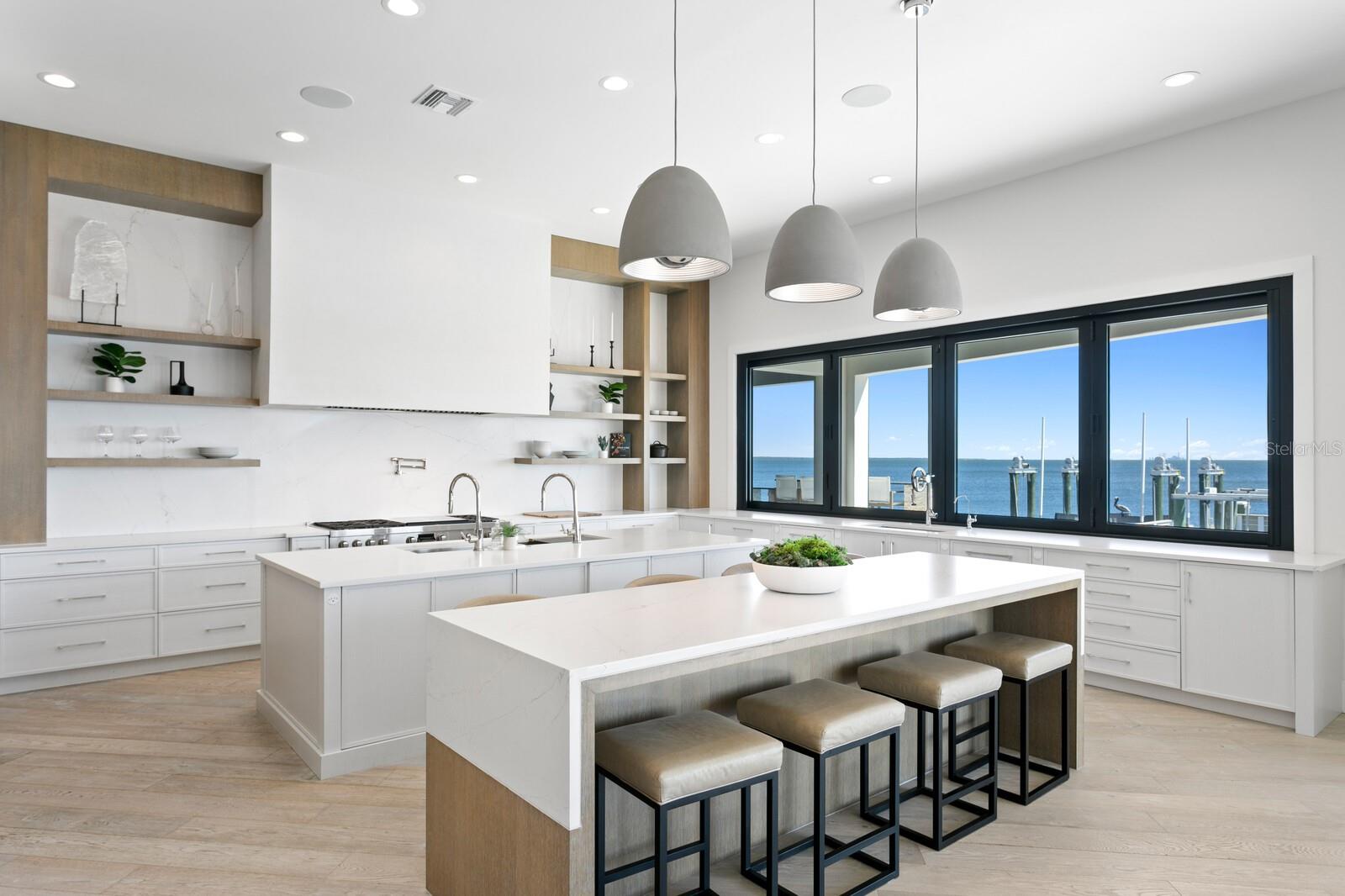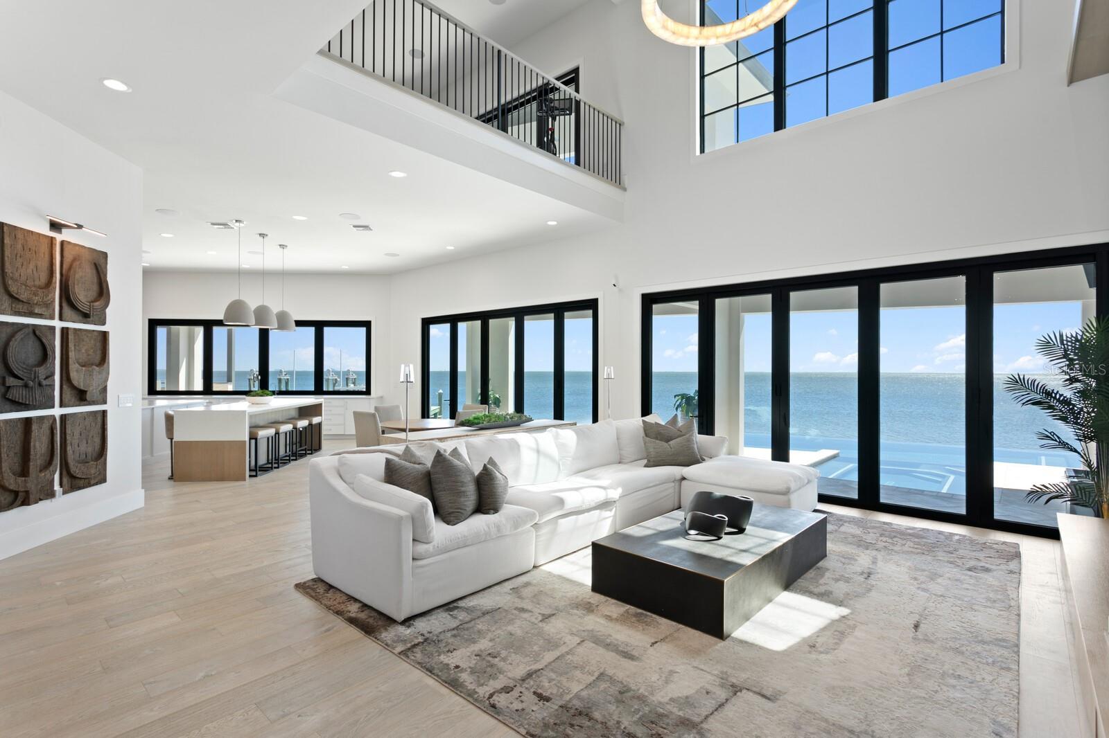 This rare point-lot newer construction estate in Venetian Isles offers 137 feet of wide-open water frontage and unobstructed views of the downtown St. Petersburg skyline. Built with concrete block construction, impact-rated windows and doors, and an elevated foundation, the home was engineered for resilience—its design and storm-rated features helped ensure the interior remained protected during recent severe weather. For boaters, the commercial-grade dock is a standout feature—offering deep water access, a high-speed 40,000 lb boat lift, and two jet ski lifts. With direct access to open water and no fixed bridges, this home delivers true Gulf access with top-tier marina-grade infrastructure. Crafted to the highest modern standards, the home features contemporary finishes and cutting-edge technology with Savant whole-home automation throughout controlling lights, blinds, and music. Designed for seamless indoor-outdoor living, the resort-style exterior includes an infinity-edge pool, oversized covered hot tub, sauna, expansive lounge areas, and a full outdoor kitchen and bar. Accordion-style kitchen windows open directly to the poolside bar, creating a fluid connection ideal for entertaining. Inside, five spacious bedrooms and open-concept living areas are accented by Restoration Hardware lighting. The chef’s kitchen is a true centerpiece, featuring custom cabinetry, dual oversized islands, Wolf and Sub-Zero appliances, two Bosch dishwashers, a warming drawer, ice machine, and a hidden walk-in pantry. A 180-bottle walk-in wine room and cigar humidor offers custom racking, ambient lighting, and precision climate control. Upstairs, the sky lounge and wet bar open to a large balcony with sweeping bay views—perfect for sunset cocktails. Additional highlights include a whole-house generator, two fireplaces, a water filtration system, a commercial ice machine and freezer, in garage and a climate-controlled storage room with full shower/dog wash. This home is not just a place to live; it’s a lifestyle and a rare opportunity to own one of the most coveted waterfront estates in St. Petersburg. Schedule your private showing today and experience the pinnacle of luxury living.