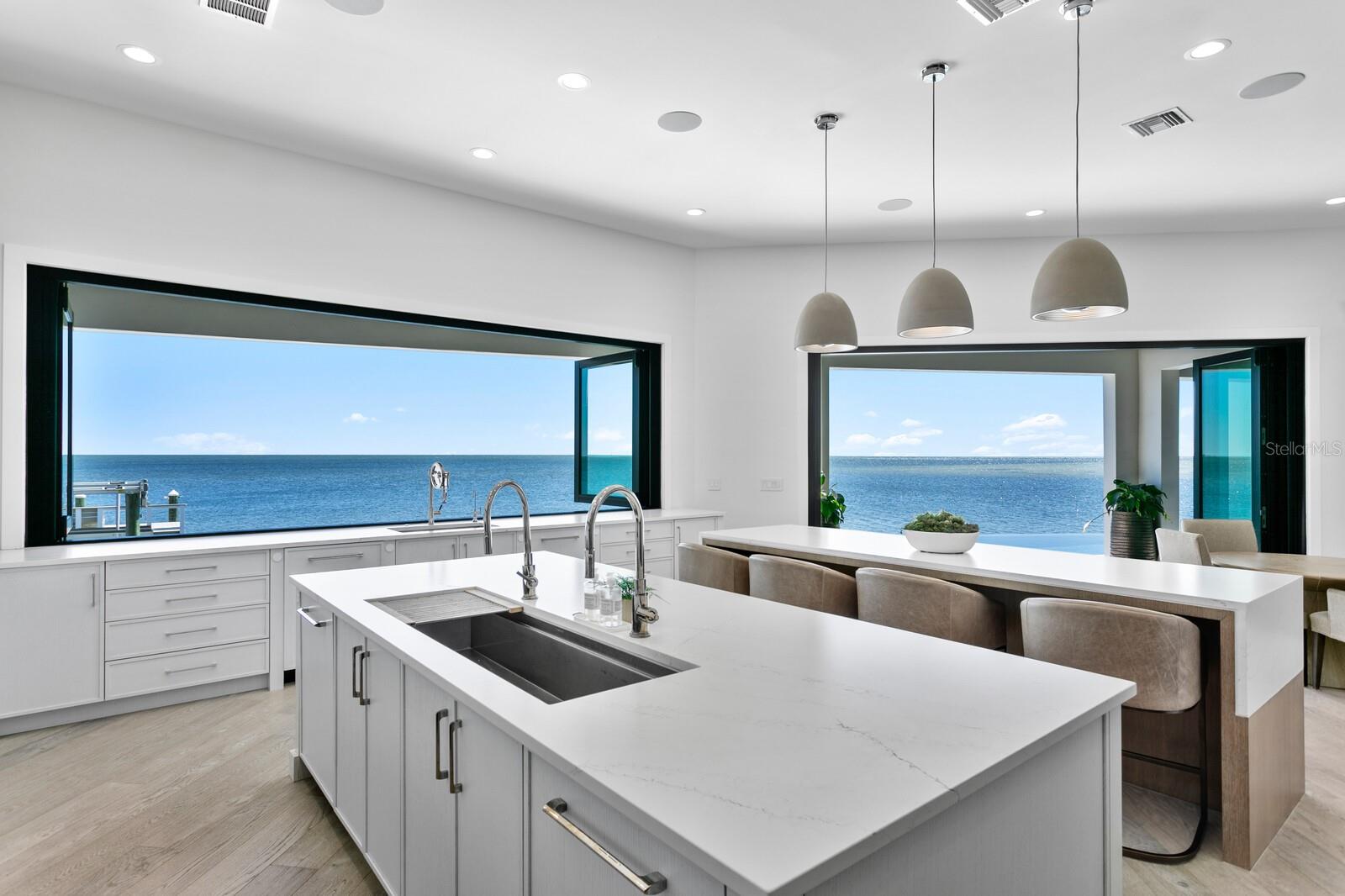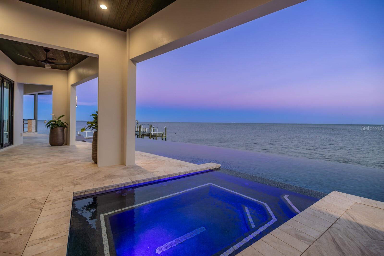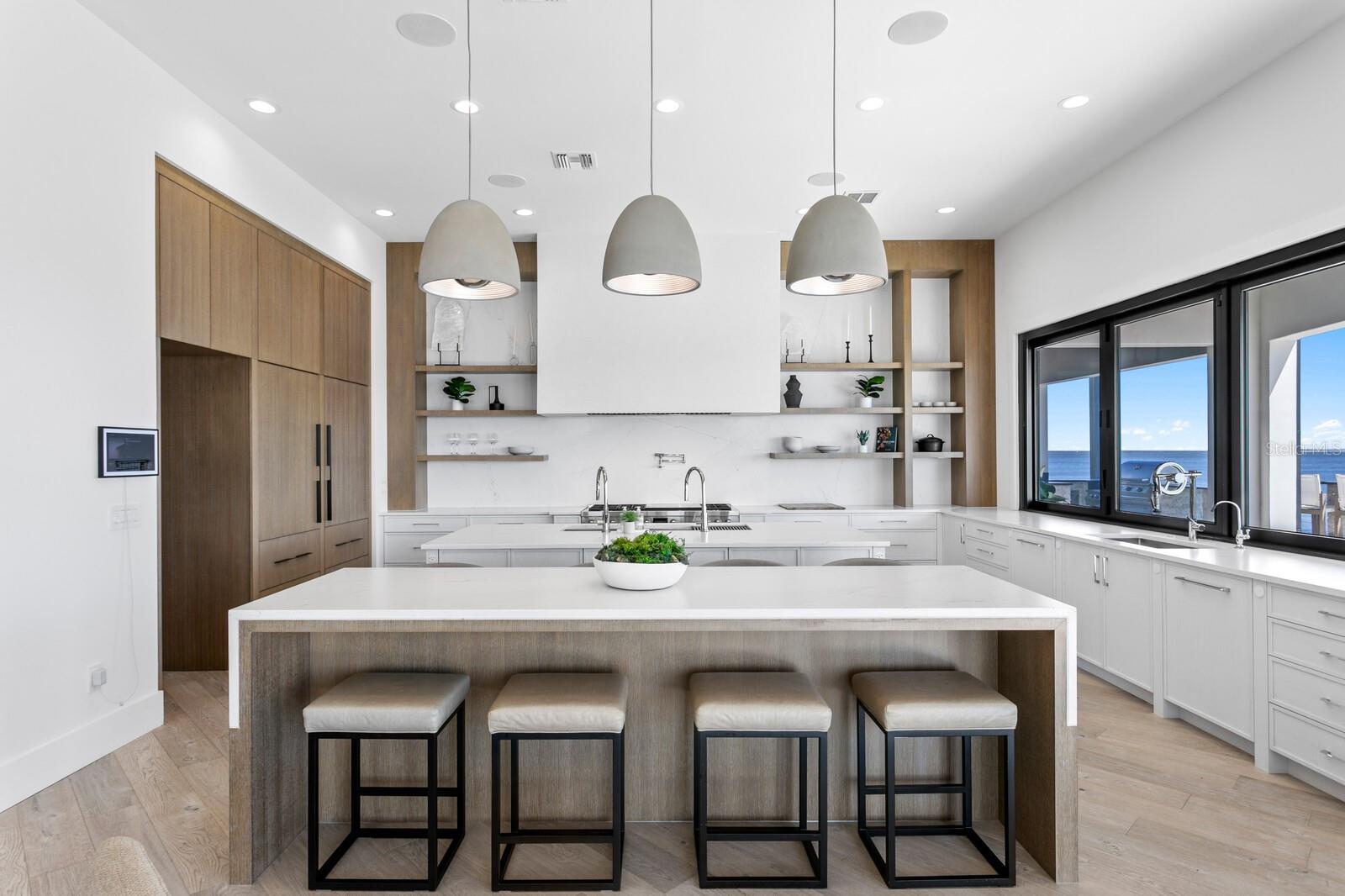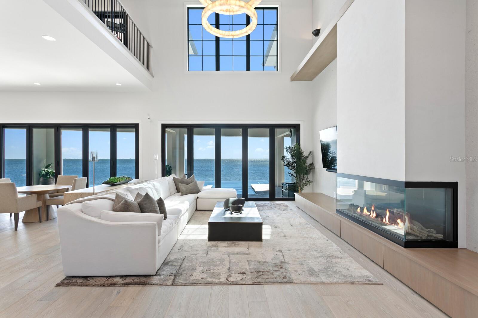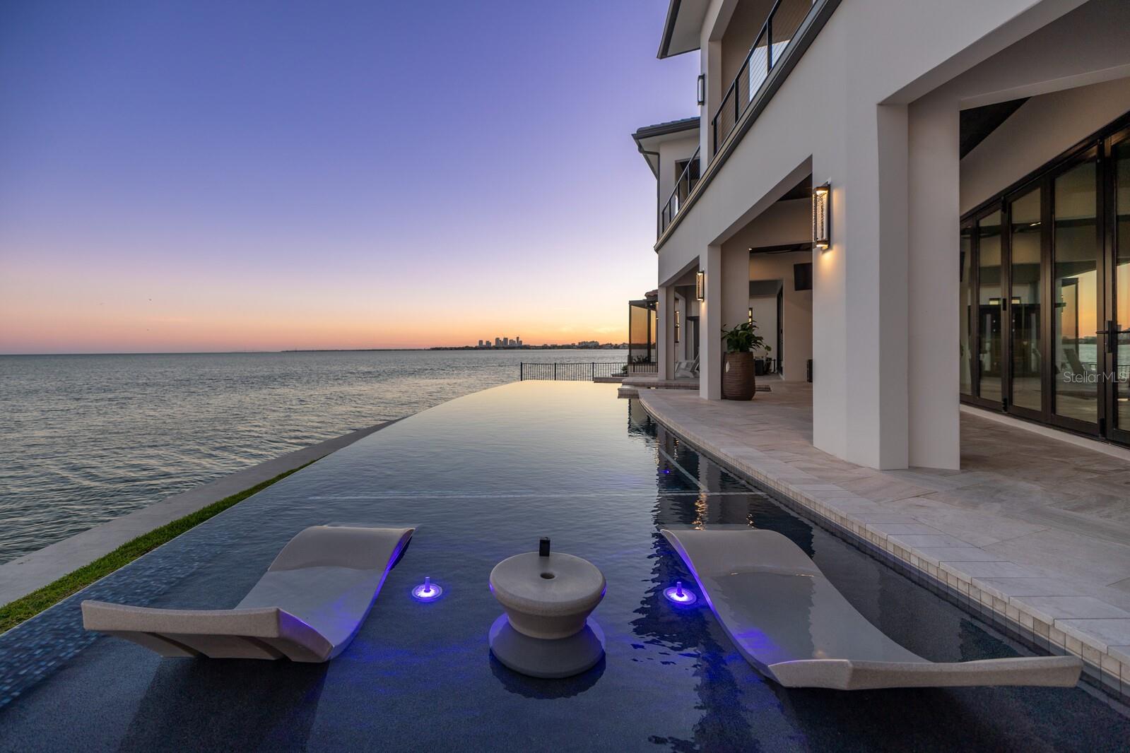 This rare point-lot newer construction estate in Venetian Isles offers 137 feet of wide-open water frontage and unobstructed views of the downtown St. Petersburg skyline. Built with concrete block construction, impact-rated windows and doors, and an elevated foundation, the home was engineered for resilience—its design and storm-rated features helped ensure the interior remained protected during recent severe weather. For boaters, the commercial-grade dock is a standout feature—offering deep water access, a high-speed 40,000 lb boat lift, and two jet ski lifts. With direct access to open water and no fixed bridges, this home delivers true Gulf access with top-tier marina-grade infrastructure. Crafted to the highest modern standards, the home features contemporary finishes and cutting-edge technology with Savant whole-home automation throughout controlling lights, blinds, and music. Designed for seamless indoor-outdoor living, the resort-style exterior includes an infinity-edge pool, oversized covered hot tub, sauna, expansive lounge areas, and a full outdoor kitchen and bar. Accordion-style kitchen windows open directly to the poolside bar, creating a fluid connection ideal for entertaining. Inside, five spacious bedrooms and open-concept living areas are accented by Restoration Hardware lighting. The chef’s kitchen is a true centerpiece, featuring custom cabinetry, dual oversized islands, Wolf and Sub-Zero appliances, two Bosch dishwashers, a warming drawer, ice machine, and a hidden walk-in pantry. A 180-bottle walk-in wine room and cigar humidor offers custom racking, ambient lighting, and precision climate control. Upstairs, the sky lounge and wet bar open to a large balcony with sweeping bay views—perfect for sunset cocktails. Additional highlights include a whole-house generator, two fireplaces, a water filtration system, a commercial ice machine and freezer, in garage and a climate-controlled storage room with full shower/dog wash. This home is not just a place to live; it’s a lifestyle and a rare opportunity to own one of the most coveted waterfront estates in St. Petersburg. Schedule your private showing today and experience the pinnacle of luxury living.