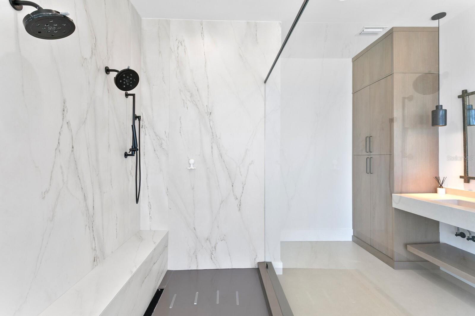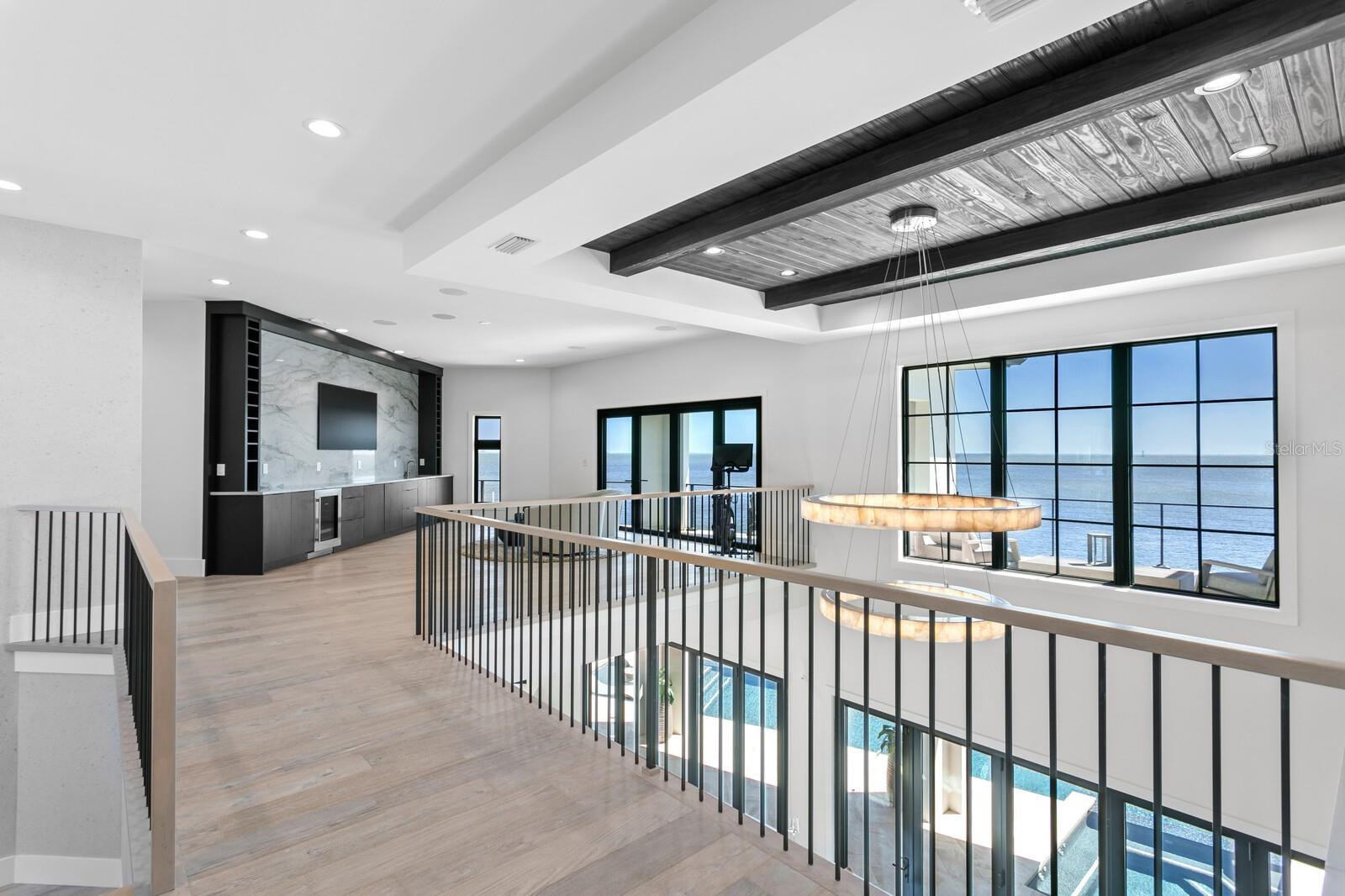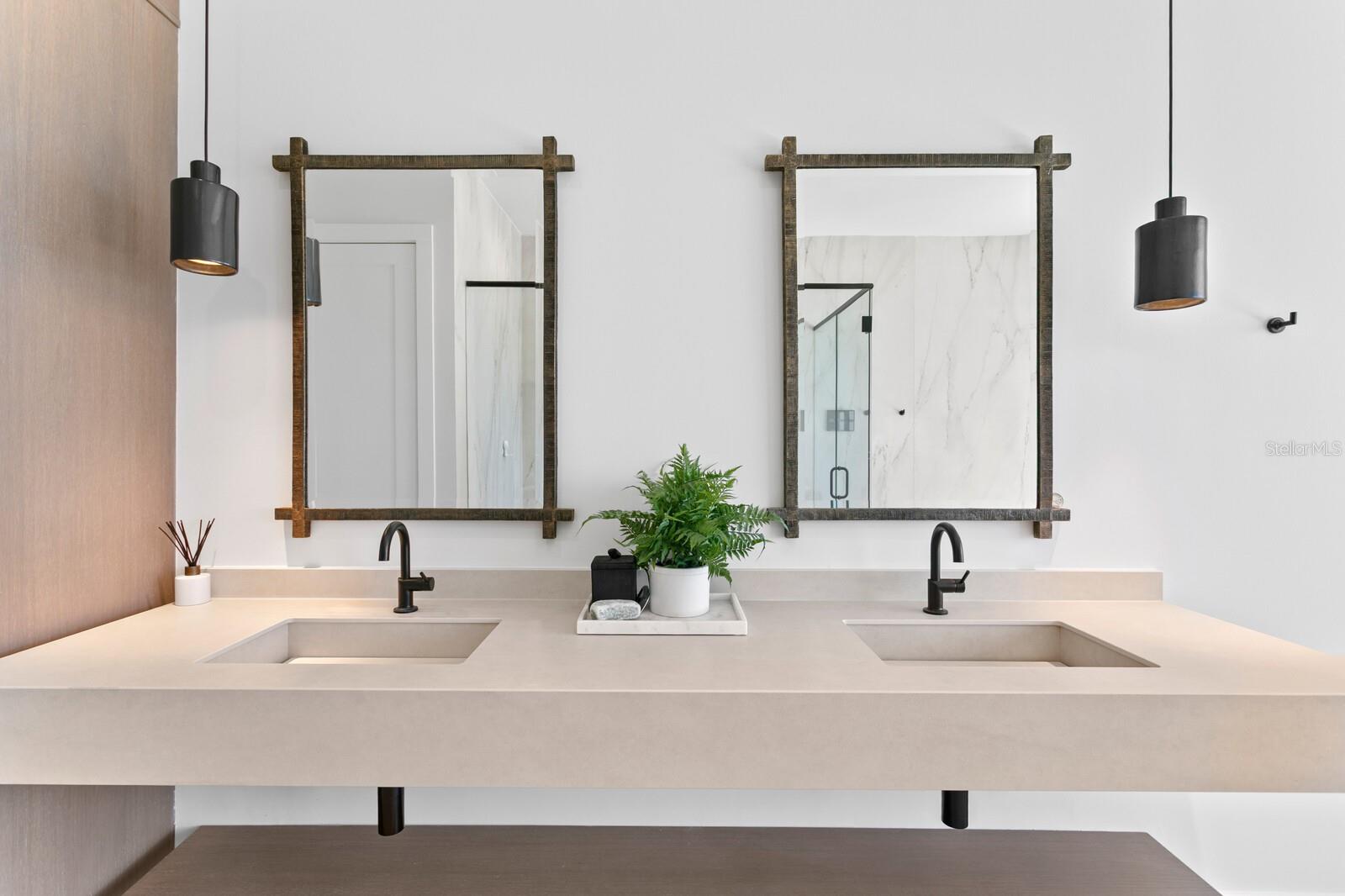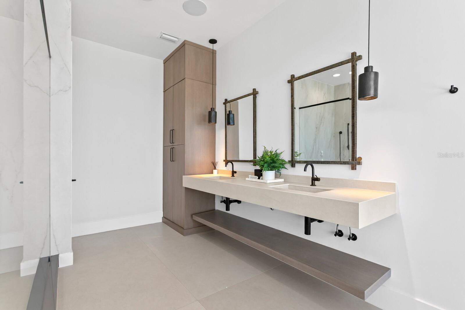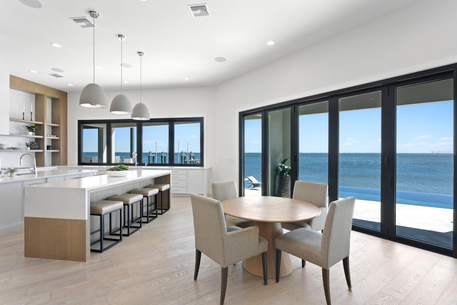 This rare point-lot newer construction estate in Venetian Isles offers 137 feet of wide-open water frontage and unobstructed views of the downtown St. Petersburg skyline. Built with concrete block construction, impact-rated windows and doors, and an elevated foundation, the home was engineered for resilience—its design and storm-rated features helped ensure the interior remained protected during recent severe weather. For boaters, the commercial-grade dock is a standout feature—offering deep water access, a high-speed 40,000 lb boat lift, and two jet ski lifts. With direct access to open water and no fixed bridges, this home delivers true Gulf access with top-tier marina-grade infrastructure. Crafted to the highest modern standards, the home features contemporary finishes and cutting-edge technology with Savant whole-home automation throughout controlling lights, blinds, and music. Designed for seamless indoor-outdoor living, the resort-style exterior includes an infinity-edge pool, oversized covered hot tub, sauna, expansive lounge areas, and a full outdoor kitchen and bar. Accordion-style kitchen windows open directly to the poolside bar, creating a fluid connection ideal for entertaining. Inside, five spacious bedrooms and open-concept living areas are accented by Restoration Hardware lighting. The chef’s kitchen is a true centerpiece, featuring custom cabinetry, dual oversized islands, Wolf and Sub-Zero appliances, two Bosch dishwashers, a warming drawer, ice machine, and a hidden walk-in pantry. A 180-bottle walk-in wine room and cigar humidor offers custom racking, ambient lighting, and precision climate control. Upstairs, the sky lounge and wet bar open to a large balcony with sweeping bay views—perfect for sunset cocktails. Additional highlights include a whole-house generator, two fireplaces, a water filtration system, a commercial ice machine and freezer, in garage and a climate-controlled storage room with full shower/dog wash. This home is not just a place to live; it’s a lifestyle and a rare opportunity to own one of the most coveted waterfront estates in St. Petersburg. Schedule your private showing today and experience the pinnacle of luxury living.
