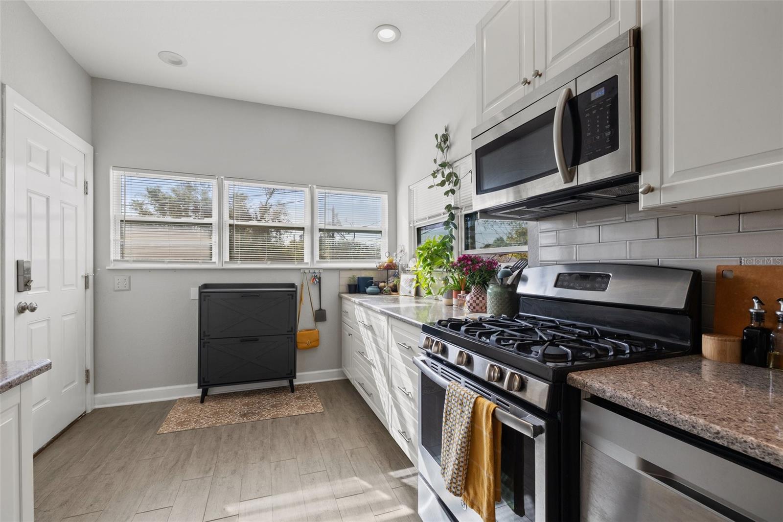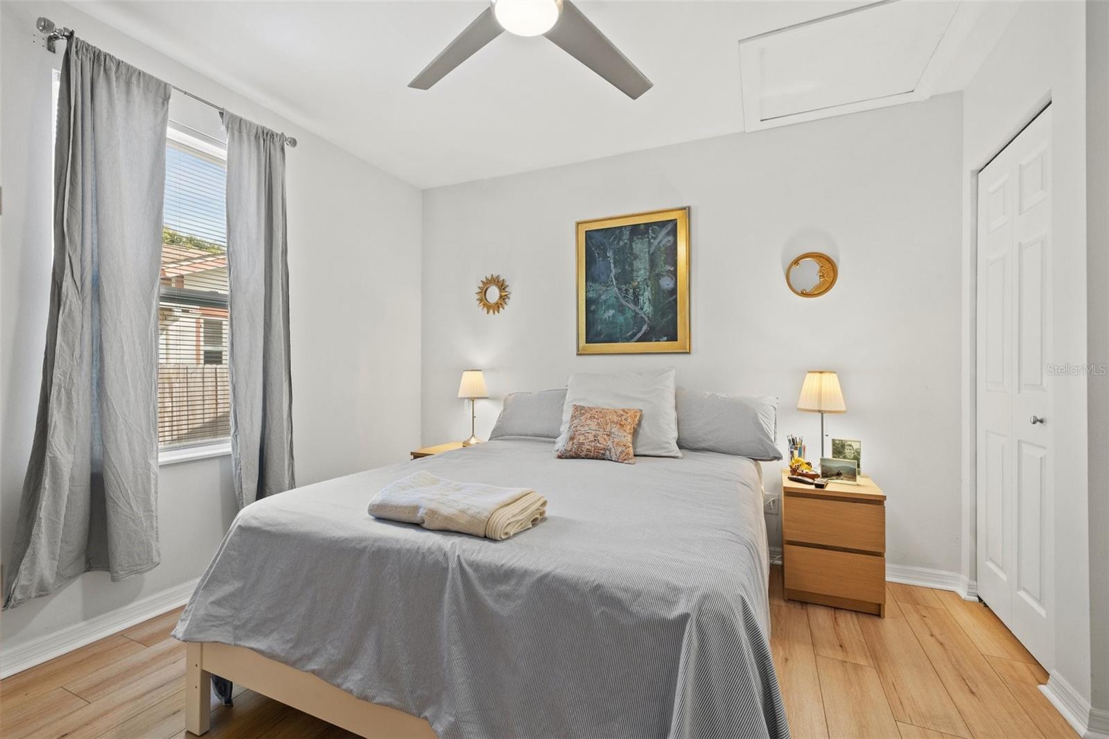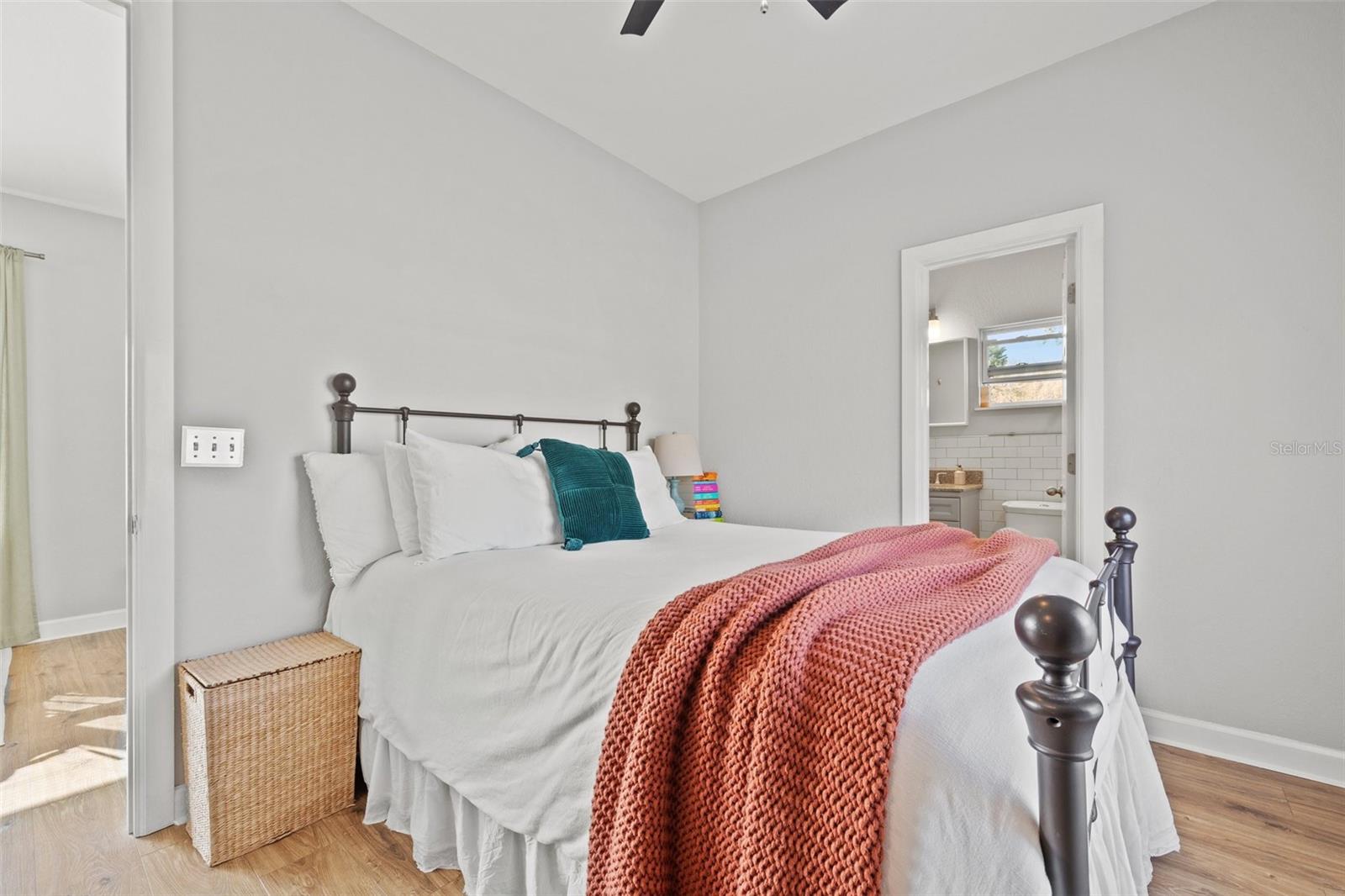 Welcome to this exceptional 1920s bungalow in the coveted neighborhood of Historic Kenwood—where there's a thriving artist enclave and a community that's all its own vibe. This rare find has been taken down to the studs and thoughtfully renovated to perfection, offering a seamless blend of vintage character and contemporary convenience. Every detail, from the upgraded electrical, plumbing, and HVAC systems to the beautifully restored cosmetics, has been carefully curated to provide an elevated living experience. The main house features a spacious 2-bedroom, 2-bath layout with an additional dedicated office space, ideal for working from home. The open-concept living area exudes warmth and charm, with natural light pouring in from every angle. The gourmet kitchen is a showstopper, complete with top-of-the-line appliances, sleek finishes, and ample storage. The detached building behind the home has a second floor where you'll find a 745-square-foot accessory dwelling unit that has been fully renovated to provide a private retreat. This one-bedroom, one-bath space features in-unit laundry and offers endless possibilities for guests, family, or even rental income. Additionally, this unit has its own off street parking and private outdoor space. For those with a passion for creativity, the first-floor artist studio is a standout feature. Spanning over 700 square feet, this bright and airy space offers the perfect environment for inspiration and artistic expression. It also includes a half bath and a separate garden storage room with a convenient quarter bath. This studio could also easily be converted into another dwelling unit for even more income or guest space. Outside, enjoy the serenity of your private garden, where the potential for outdoor living is endless. Located in the highly desirable Historic Kenwood neighborhood, this property is truly one-of-a-kind. Don’t miss the opportunity to own a piece of history while enjoying all the modern amenities and space you could desire. Homes like this are a rare find and an absolute must-see!