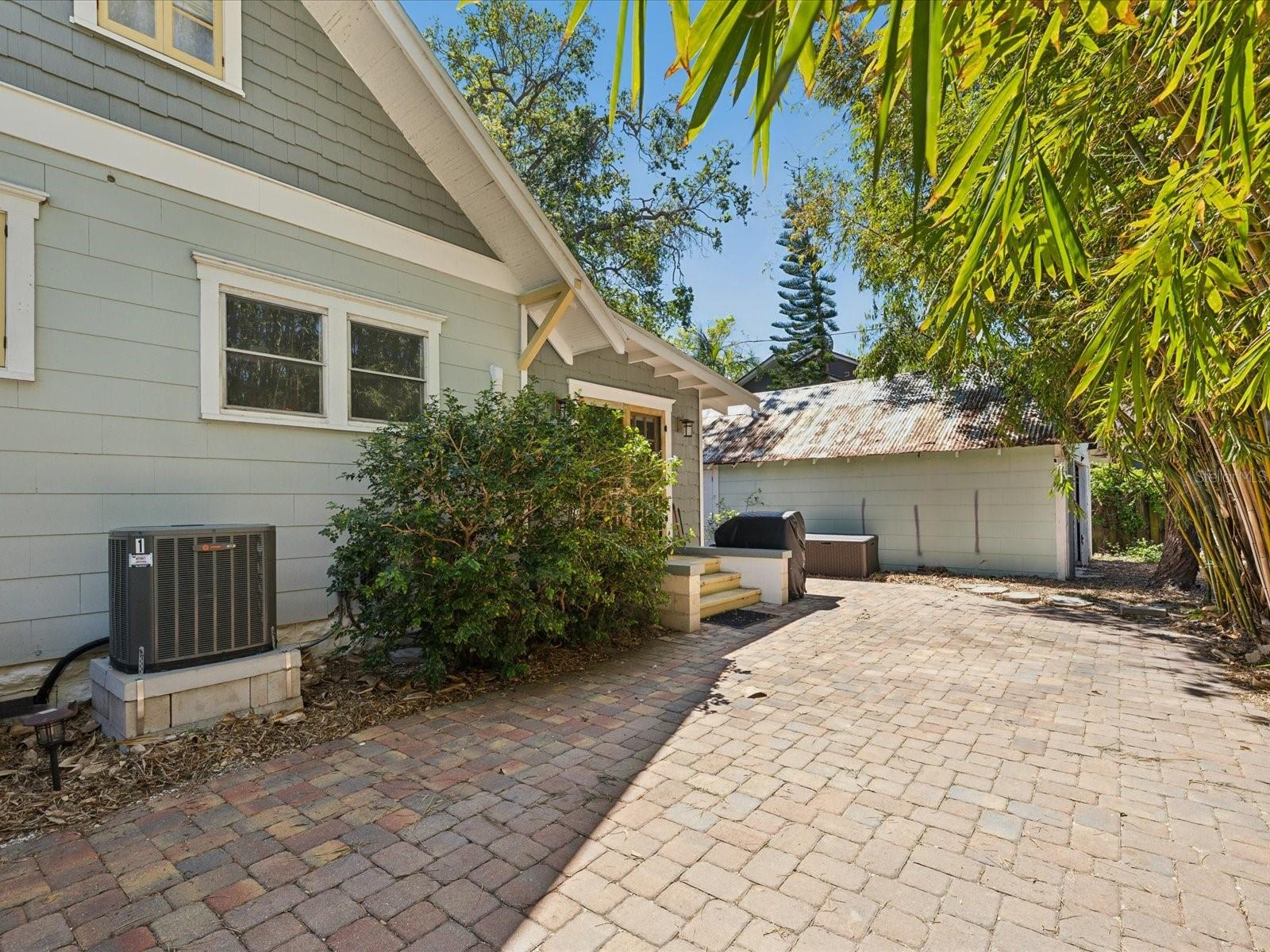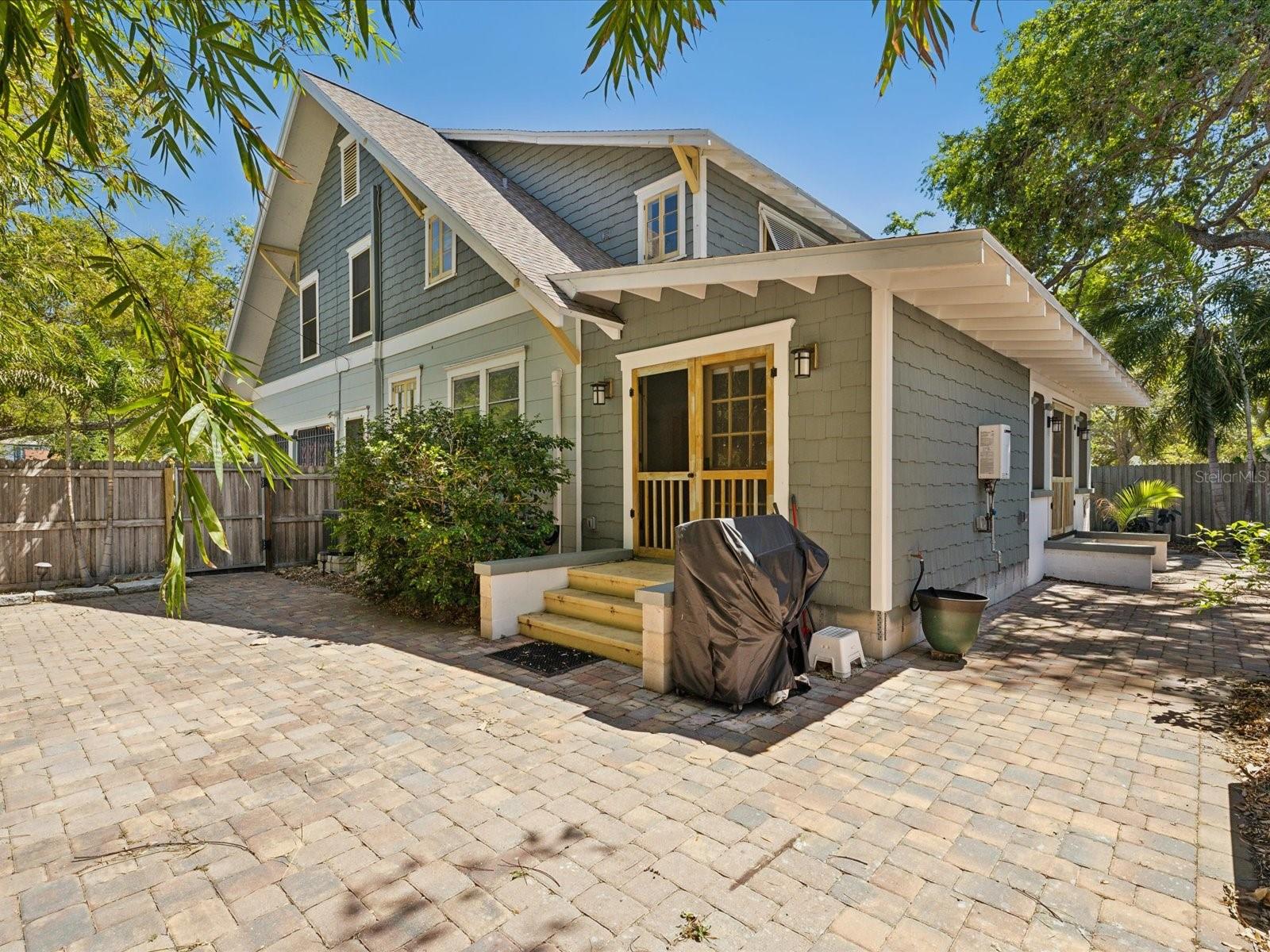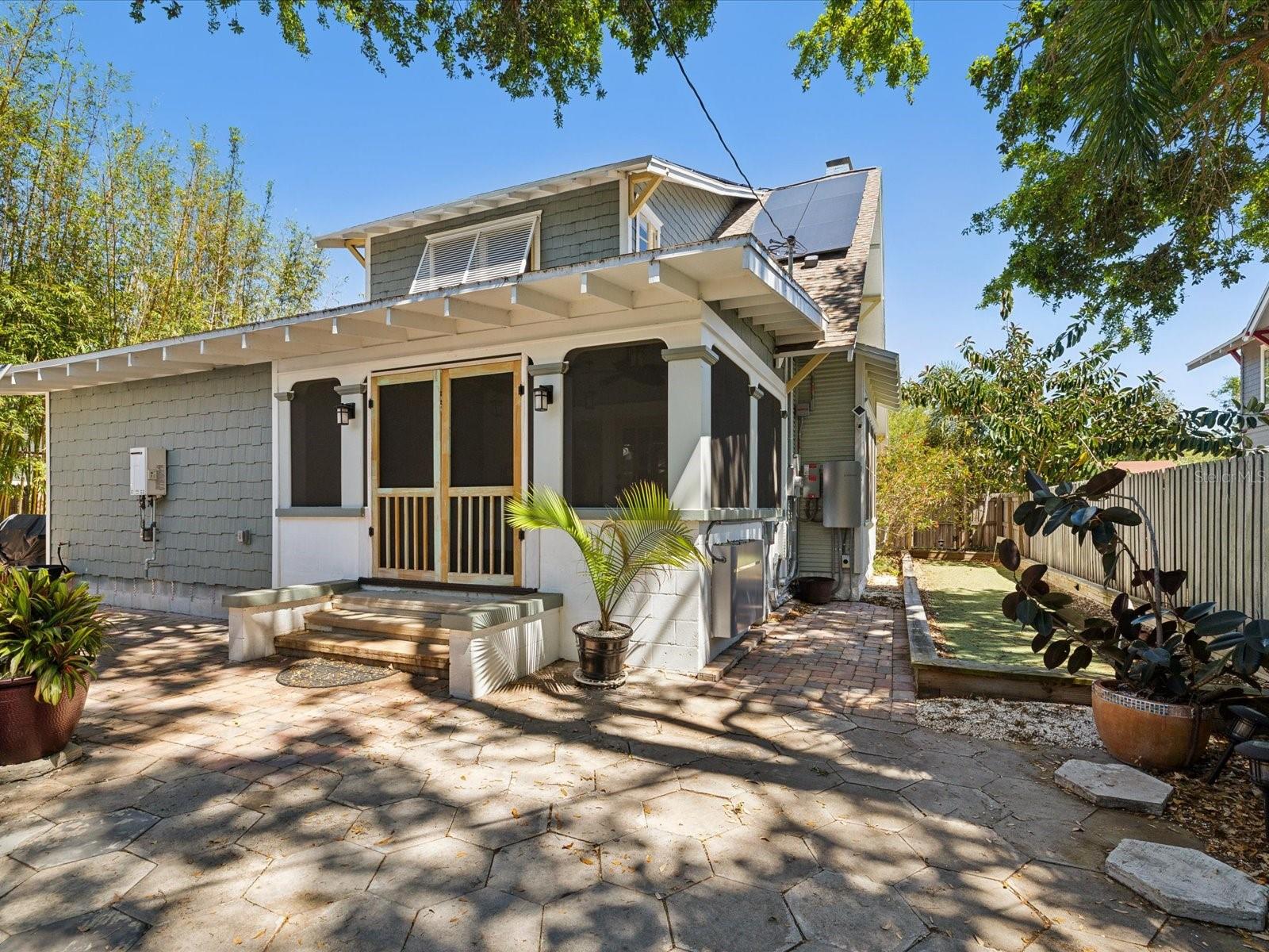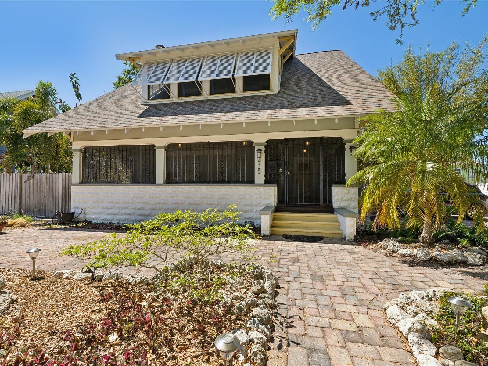 Step back in time and experience Old Florida charm in this lovingly restored 4 bedroom, 2 bath Craftsman style home located in the heart of Old South East St Petersburg. This historic bungalow, built in 1915, is in a non flood zone and sustained no damage from the rare hurricane events of 2024. in fact, the owners never lost power. it is a five minute drive from all downtown has to enjoy with world class restaurants, museums and festivals and just a stone's throw away from the Tampa Bay waterfront and Lassing Park. Modernized for today's living, the home is complete with all important contemporary upgrades including solar panels on the roof that reduce utility bills. The solar panel system has a battery backup that runs the outlets and refrigerators during power outages.There is a new electrical service connection, new breaker box with extra space for expansion, a safety shut off for the solar panels to the utility service, a whole house surge protector, prewired EV station, 2 newer HVAC units with separate air handlers, plus a mini split AC in the kitchen. New roof 2022, all new electrical (2006, upgraded 2022)new plumbing and sewer lines (2020-2022). Ceiling fans throughout the home allow for cool summers and warm winters. Enter the front door through the breezeway to be embraced by the grand masterpiece of the home, an original curved staircase adorned with stained glass windows on the landing and gleaming original hardwood floors that flow throughout the home. A generous living room complete with original brick fireplace and built in bookshelves leads to the dining room with its custom designed original stained glass buffet ready to host intimate dinners or large holiday gatherings. The recently renovated gourmet kitchen flooded with natural light encourages family and guests to enjoy conversations in the eat in kitchen while dinner is being prepared. Complete with custom built in cabinets, induction cooktop, convection oven/microwave, refrigerator/freezer, wine cooler and huge walk in pantry, it is a true chef's dream. Bath # 1 is conveniently located nearby. Upstairs there are 4 bedrooms, a newly renovated bath and convenient laundry space. The large primary bedroom hosts an original brick fireplace and a huge walk in closet. Bedroom #2 is spacious as well and hosts a walk in cedar lined closet. Nestled between these is an inviting morning porch, the perfect spot for your first cup of coffee. Bedrooms #3 and #4 are generous in size as well and could serve as a study/hobby area if desired. The xeriscaped landscaping on the home's exterior is both low maintenance and cost effective. Relax on the screened porches (front and rear), outdoor patio areas and firepit. Invite your family/friends over for a friendly putting contest or Bocce Ball tournament on the unique green space with a southern exposure in the tree shaded fenced in back yard. The opportunities are endless. With parking pad and alley access there is plenty of room to park several vehicles. The garage could easily be refurbished as an ADU (Accessory Dwelling Unit) to house an office/workshop or to provide rental income. Schedule your showing today!