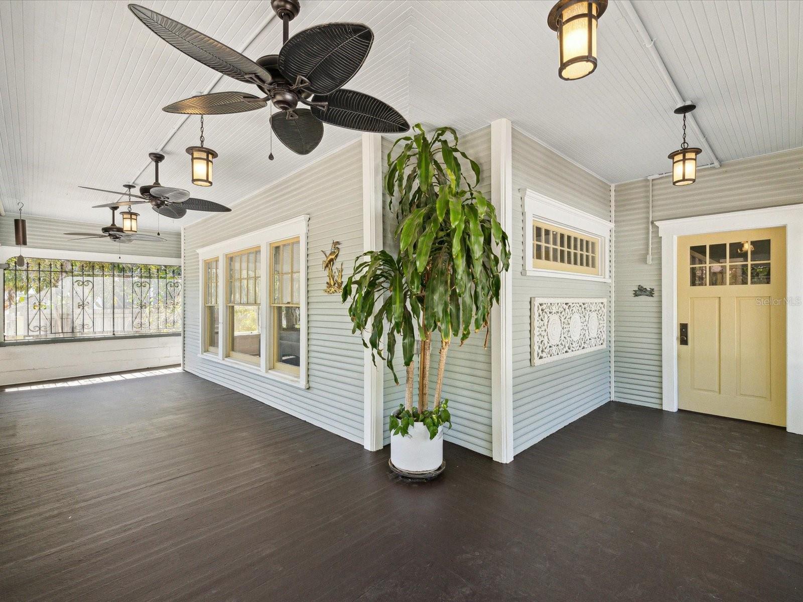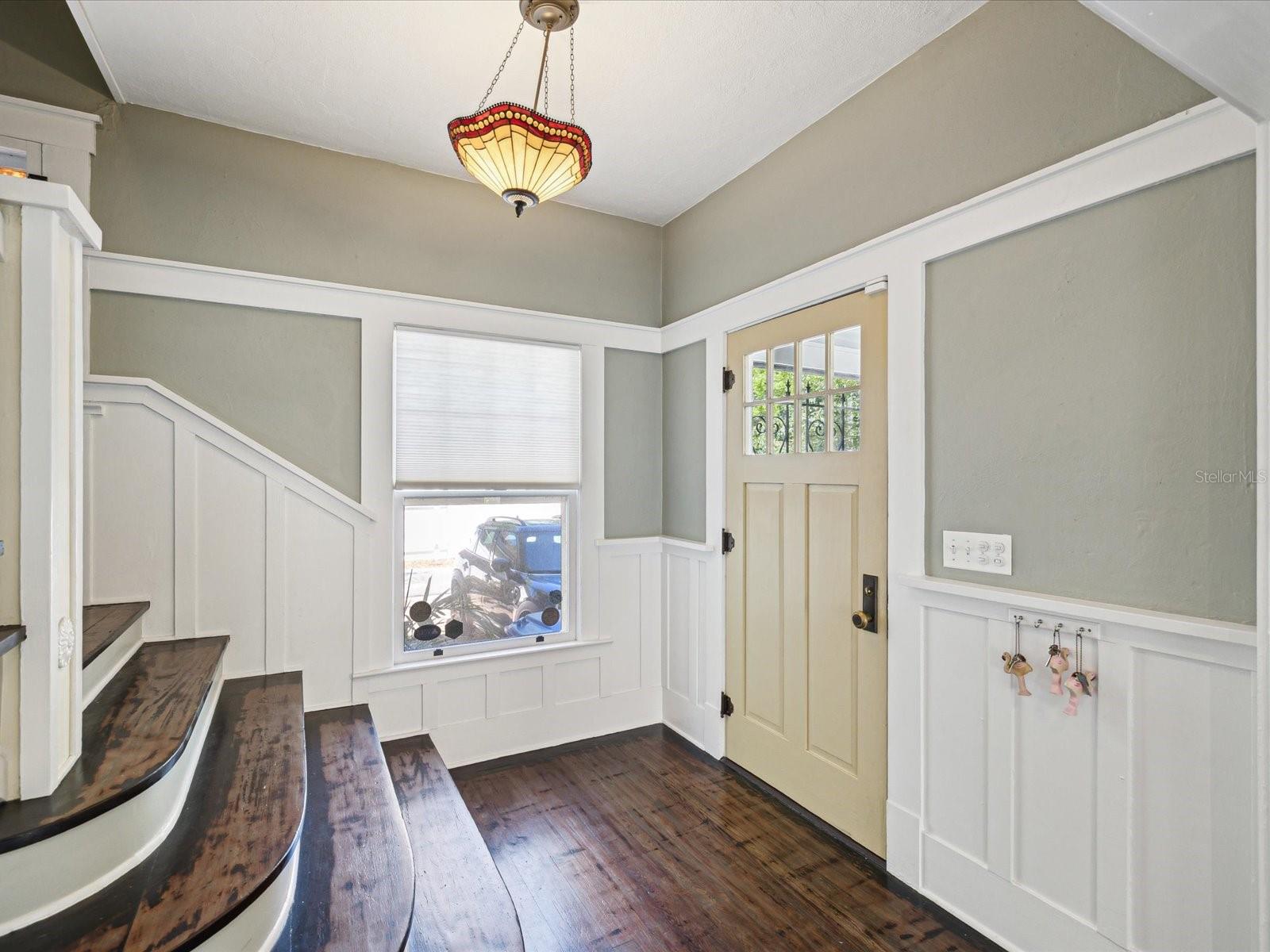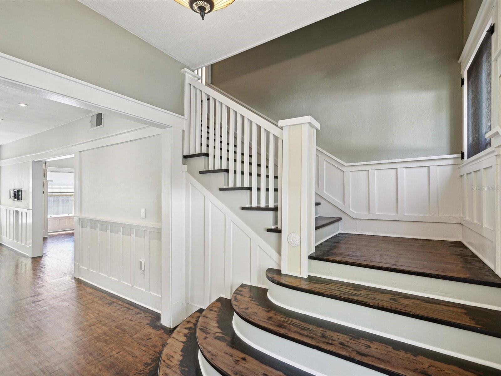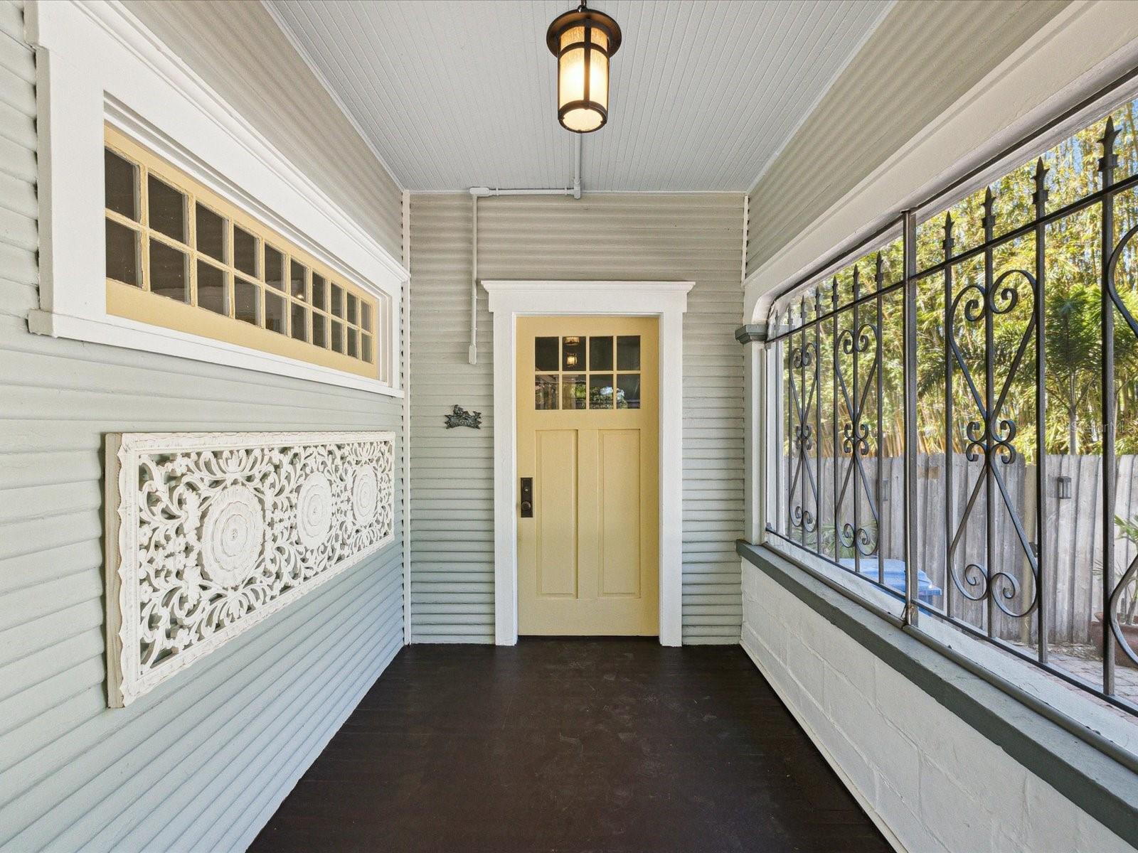 Step back in time and experience Old Florida charm in this lovingly restored 4 bedroom, 2 bath Craftsman style home located in the heart of Old South East St Petersburg. This historic bungalow, built in 1915, is in a non flood zone and sustained no damage from the rare hurricane events of 2024. in fact, the owners never lost power. it is a five minute drive from all downtown has to enjoy with world class restaurants, museums and festivals and just a stone's throw away from the Tampa Bay waterfront and Lassing Park. Modernized for today's living, the home is complete with all important contemporary upgrades including solar panels on the roof that reduce utility bills. The solar panel system has a battery backup that runs the outlets and refrigerators during power outages.There is a new electrical service connection, new breaker box with extra space for expansion, a safety shut off for the solar panels to the utility service, a whole house surge protector, prewired EV station, 2 newer HVAC units with separate air handlers, plus a mini split AC in the kitchen. New roof 2022, all new electrical (2006, upgraded 2022)new plumbing and sewer lines (2020-2022). Ceiling fans throughout the home allow for cool summers and warm winters. Enter the front door through the breezeway to be embraced by the grand masterpiece of the home, an original curved staircase adorned with stained glass windows on the landing and gleaming original hardwood floors that flow throughout the home. A generous living room complete with original brick fireplace and built in bookshelves leads to the dining room with its custom designed original stained glass buffet ready to host intimate dinners or large holiday gatherings. The recently renovated gourmet kitchen flooded with natural light encourages family and guests to enjoy conversations in the eat in kitchen while dinner is being prepared. Complete with custom built in cabinets, induction cooktop, convection oven/microwave, refrigerator/freezer, wine cooler and huge walk in pantry, it is a true chef's dream. Bath # 1 is conveniently located nearby. Upstairs there are 4 bedrooms, a newly renovated bath and convenient laundry space. The large primary bedroom hosts an original brick fireplace and a huge walk in closet. Bedroom #2 is spacious as well and hosts a walk in cedar lined closet. Nestled between these is an inviting morning porch, the perfect spot for your first cup of coffee. Bedrooms #3 and #4 are generous in size as well and could serve as a study/hobby area if desired. The xeriscaped landscaping on the home's exterior is both low maintenance and cost effective. Relax on the screened porches (front and rear), outdoor patio areas and firepit. Invite your family/friends over for a friendly putting contest or Bocce Ball tournament on the unique green space with a southern exposure in the tree shaded fenced in back yard. The opportunities are endless. With parking pad and alley access there is plenty of room to park several vehicles. The garage could easily be refurbished as an ADU (Accessory Dwelling Unit) to house an office/workshop or to provide rental income. Schedule your showing today!