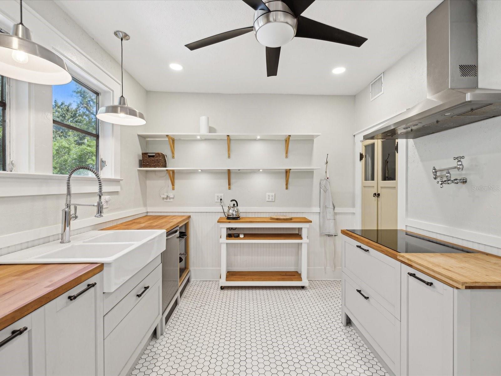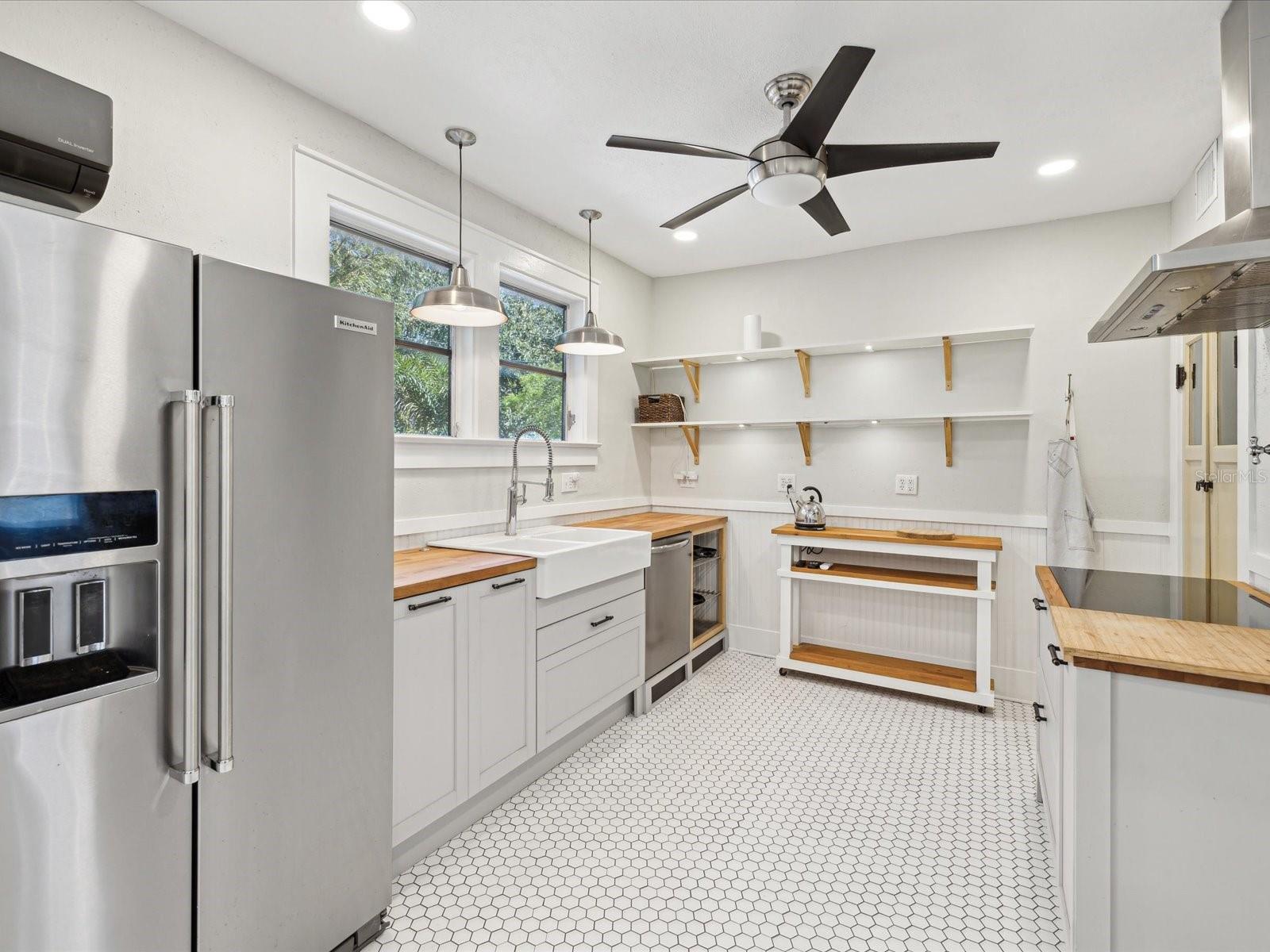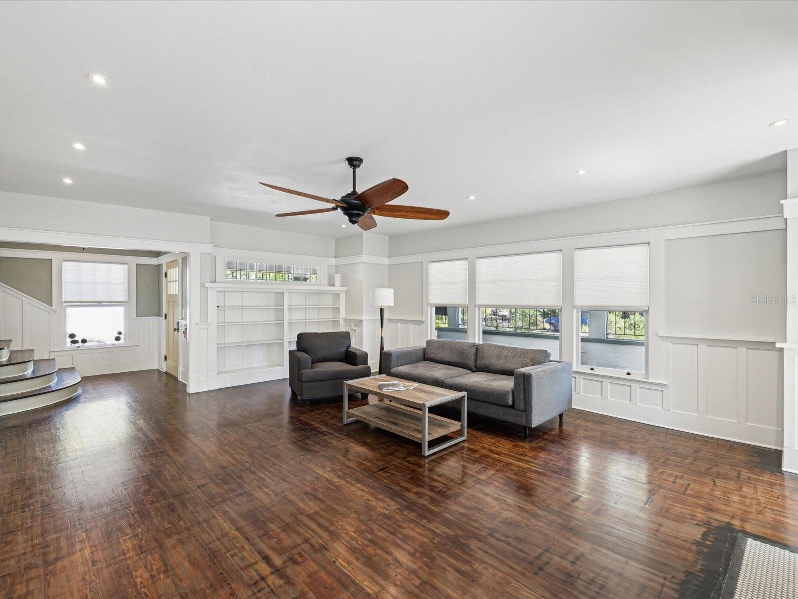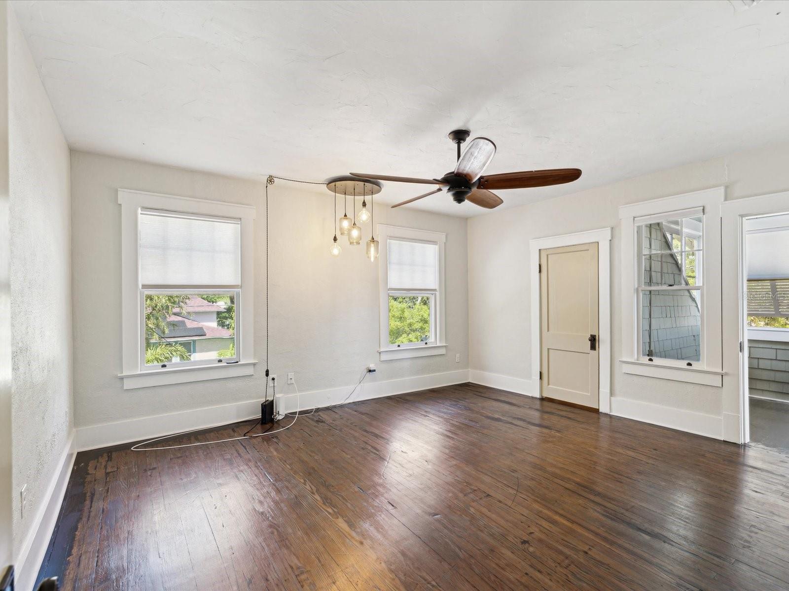 Step back in time and experience Old Florida charm in this lovingly restored 4 bedroom, 2 bath Craftsman style home located in the heart of Old South East St Petersburg. This historic bungalow, built in 1915, is in a non flood zone and sustained no damage from the rare hurricane events of 2024. in fact, the owners never lost power. it is a five minute drive from all downtown has to enjoy with world class restaurants, museums and festivals and just a stone's throw away from the Tampa Bay waterfront and Lassing Park. Modernized for today's living, the home is complete with all important contemporary upgrades including solar panels on the roof that reduce utility bills. The solar panel system has a battery backup that runs the outlets and refrigerators during power outages.There is a new electrical service connection, new breaker box with extra space for expansion, a safety shut off for the solar panels to the utility service, a whole house surge protector, prewired EV station, 2 newer HVAC units with separate air handlers, plus a mini split AC in the kitchen. New roof 2022, all new electrical (2006, upgraded 2022)new plumbing and sewer lines (2020-2022). Ceiling fans throughout the home allow for cool summers and warm winters. Enter the front door through the breezeway to be embraced by the grand masterpiece of the home, an original curved staircase adorned with stained glass windows on the landing and gleaming original hardwood floors that flow throughout the home. A generous living room complete with original brick fireplace and built in bookshelves leads to the dining room with its custom designed original stained glass buffet ready to host intimate dinners or large holiday gatherings. The recently renovated gourmet kitchen flooded with natural light encourages family and guests to enjoy conversations in the eat in kitchen while dinner is being prepared. Complete with custom built in cabinets, induction cooktop, convection oven/microwave, refrigerator/freezer, wine cooler and huge walk in pantry, it is a true chef's dream. Bath # 1 is conveniently located nearby. Upstairs there are 4 bedrooms, a newly renovated bath and convenient laundry space. The large primary bedroom hosts an original brick fireplace and a huge walk in closet. Bedroom #2 is spacious as well and hosts a walk in cedar lined closet. Nestled between these is an inviting morning porch, the perfect spot for your first cup of coffee. Bedrooms #3 and #4 are generous in size as well and could serve as a study/hobby area if desired. The xeriscaped landscaping on the home's exterior is both low maintenance and cost effective. Relax on the screened porches (front and rear), outdoor patio areas and firepit. Invite your family/friends over for a friendly putting contest or Bocce Ball tournament on the unique green space with a southern exposure in the tree shaded fenced in back yard. The opportunities are endless. With parking pad and alley access there is plenty of room to park several vehicles. The garage could easily be refurbished as an ADU (Accessory Dwelling Unit) to house an office/workshop or to provide rental income. Schedule your showing today!