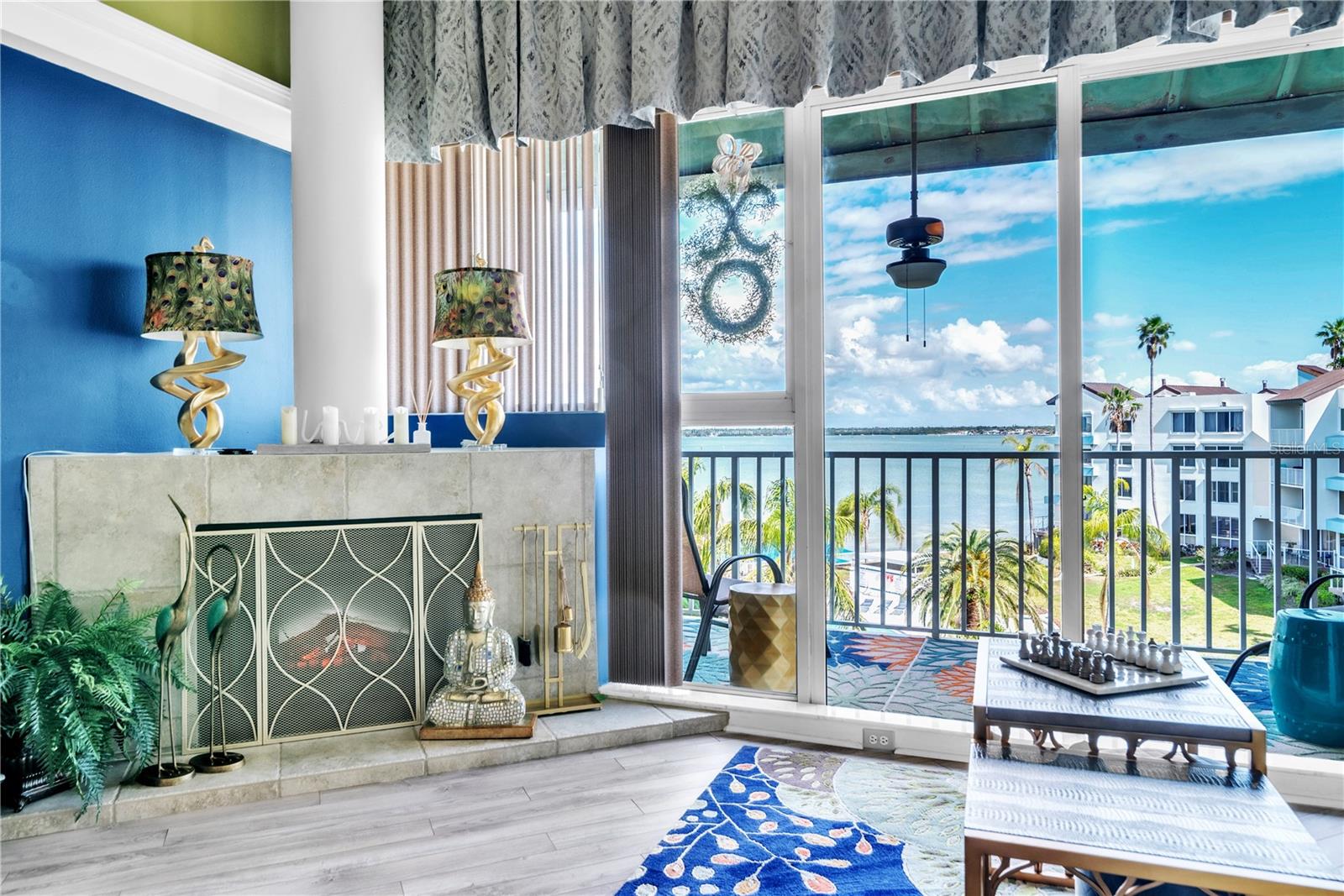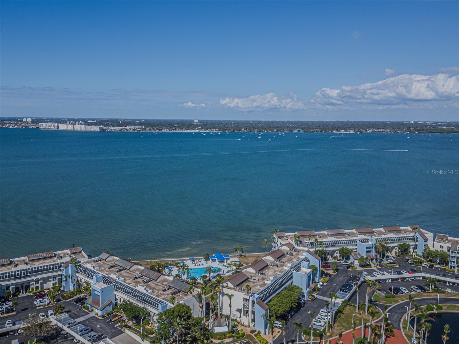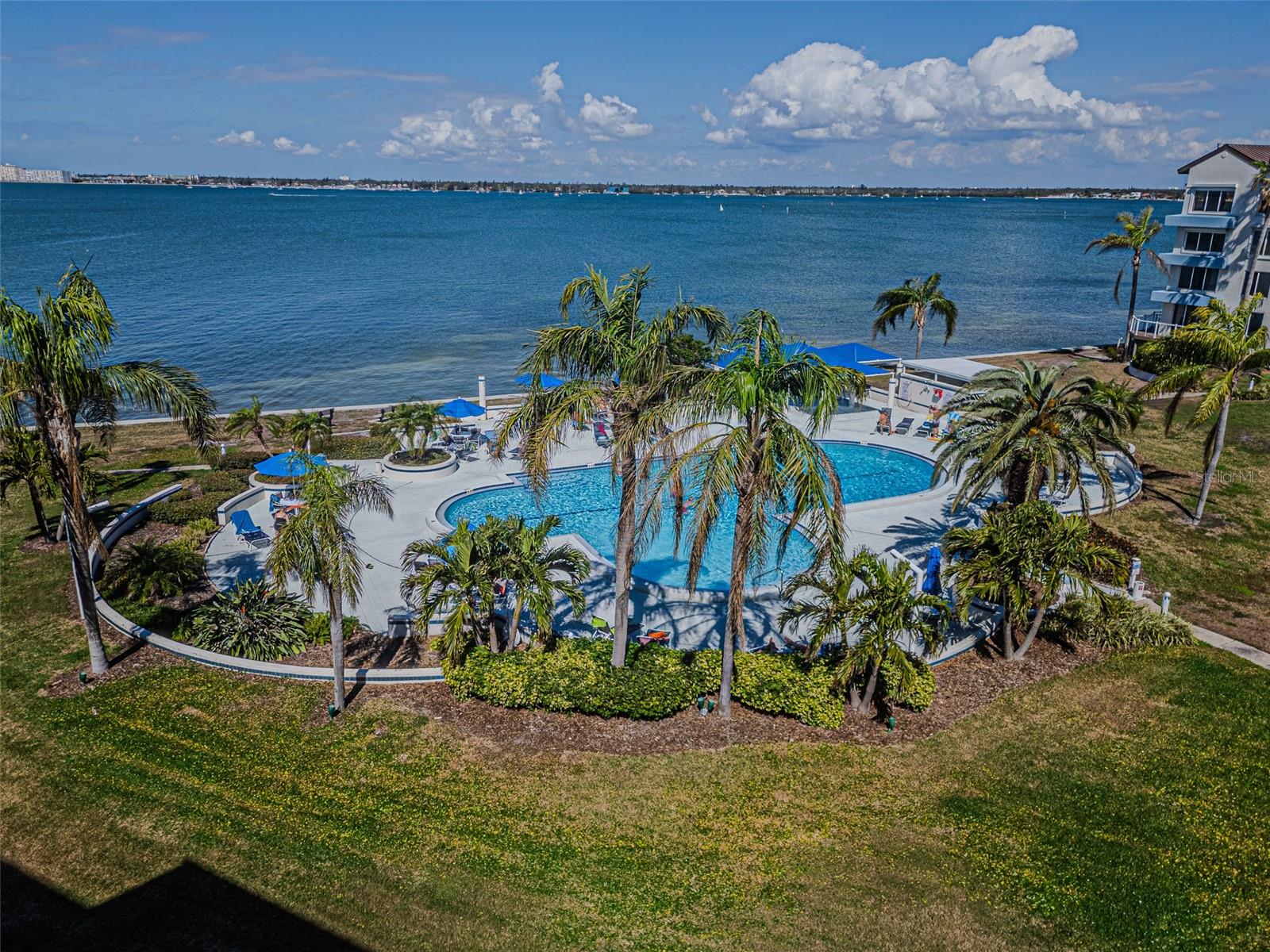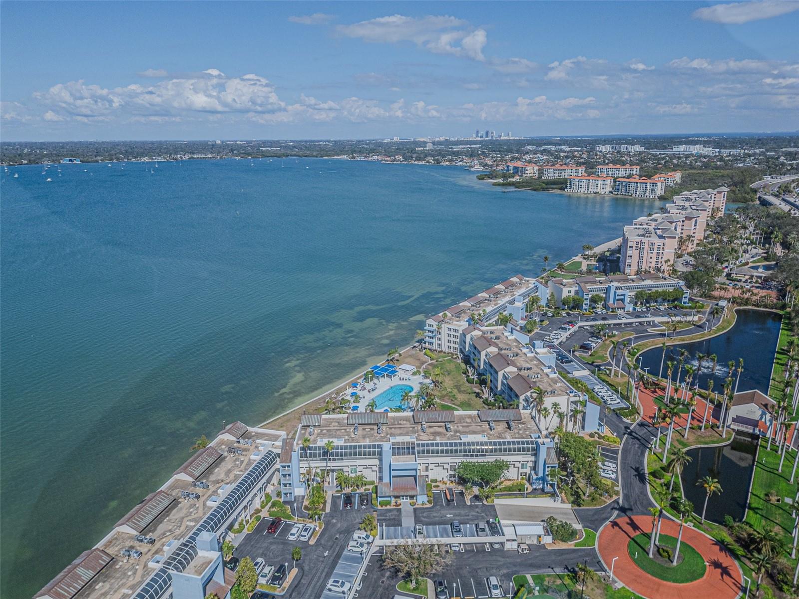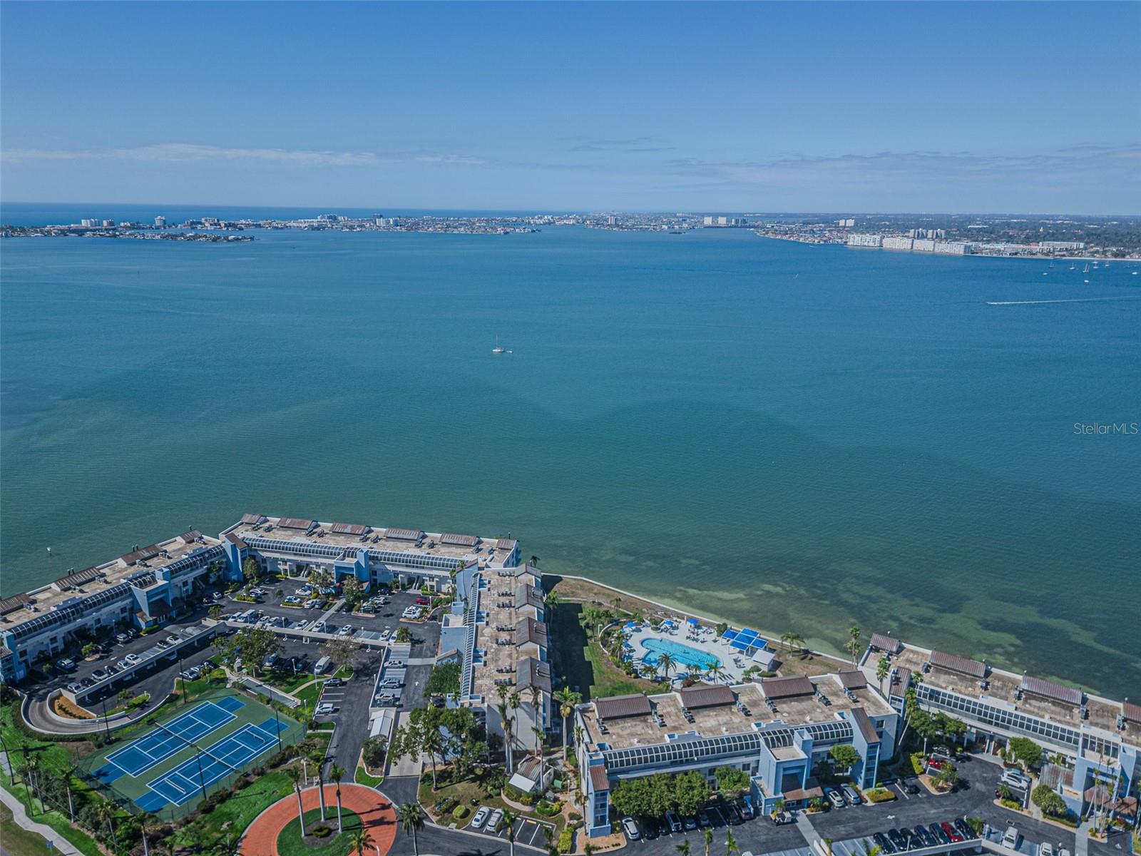 WATERFRONT Penthouse condo with unobstructed views of the bay!! This condo features 2 bedrooms, 2 bathrooms and an additional den which can be used as an office, a separate closet room or third bedroom. This condo has a beautiful entry way and foyer area. The kitchen is upgraded! This beautiful kitchen was completely reconfigured and remodeled with stunning marble countertops, backsplash, and stainless-steel appliances and it is open to the spacious living room! The open floor plan maximizes the space and allows for plenty of natural light. This penthouse unit features vaulted ceilings in the living room and has a decorative electric fireplace. Split bedroom floor plan ensures complete privacy. The master bedroom is situated on the bayside providing beautiful views of the bay. The en-suite bathroom has a walk-in custom made closet and custom vanities with dual sinks. Both bathrooms have been updated with new cabinetry, marble countertops and vanities. The guest bedroom has two Murphy twin size beds with shelves and adjustable reading lights. The large balcony is perfect for relaxing while taking in the stunning water views. You will enjoy the views of tropical serenity and of the pool from your condo. There is an inside laundry room off of the kitchen and a large storage room right outside your condo. Assigned parking space comes dedicated with the unit and additional guest parking spaces are available. Amenities include tennis courts, pickle ball, bocce ball courts, and a large pool/spa area. The pool is heated during the winter months and cooled down in the summer. Water views abound in this unit, whether you are in the living room, master bedroom, on the balcony or at the pool, the water views are amazing! Whether sunrise or sunset, you won't be disappointed. This condo is a must see and a pleasure to show!!