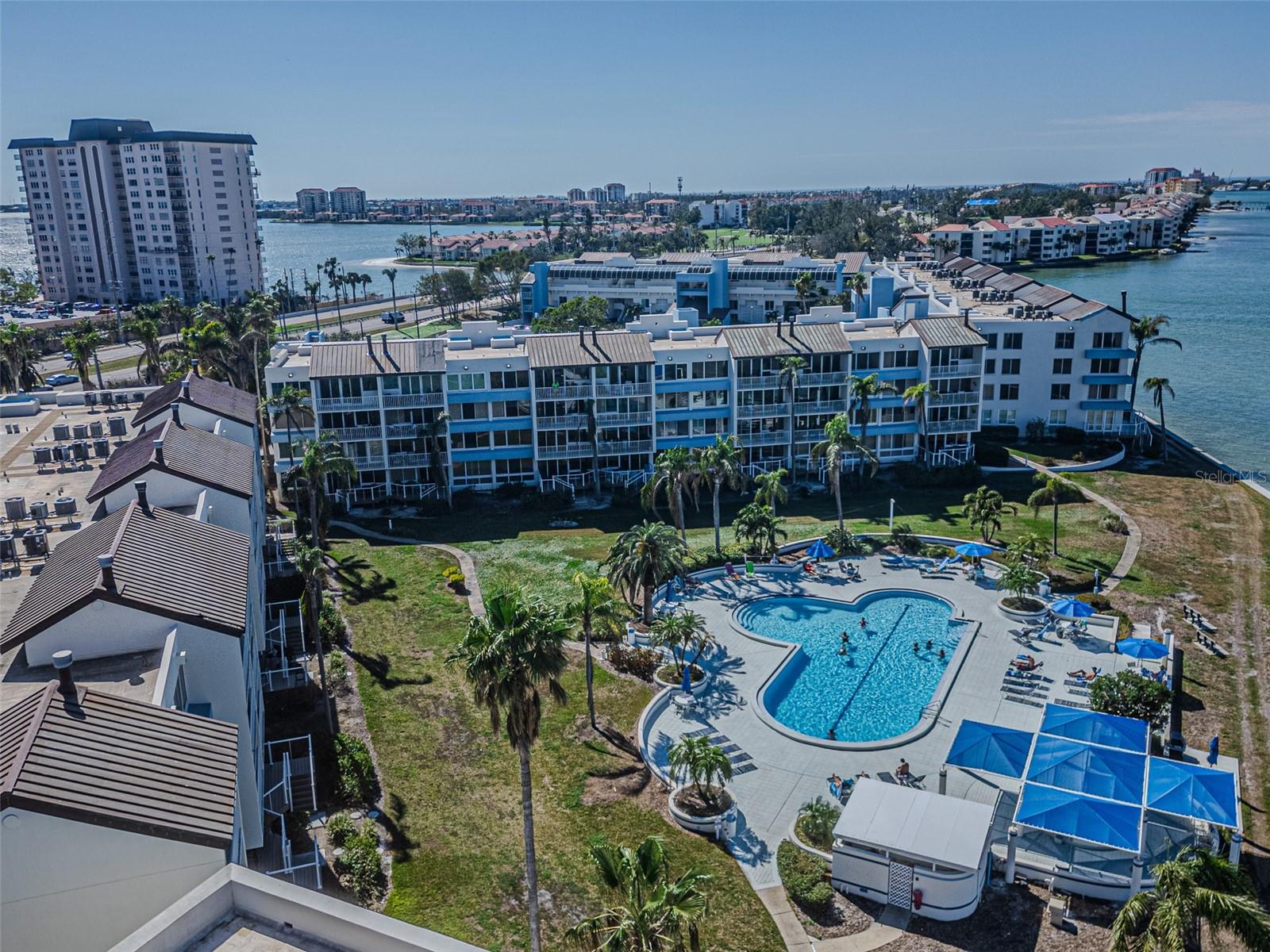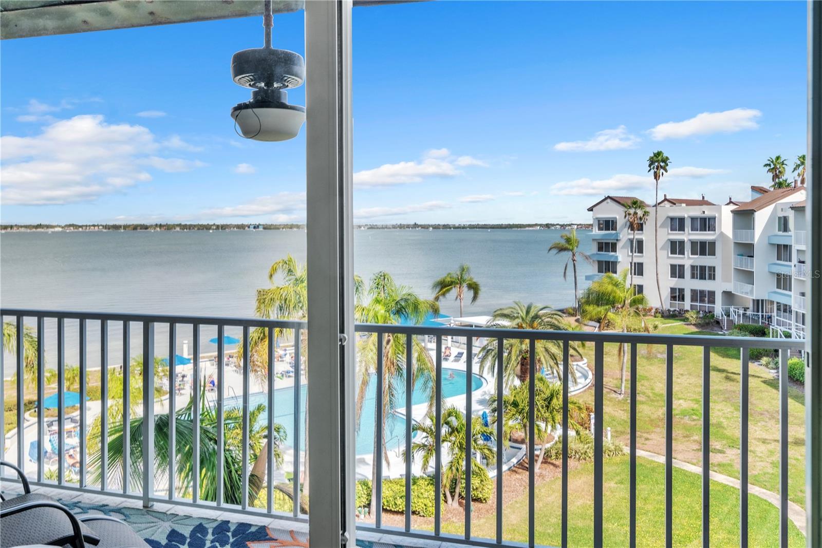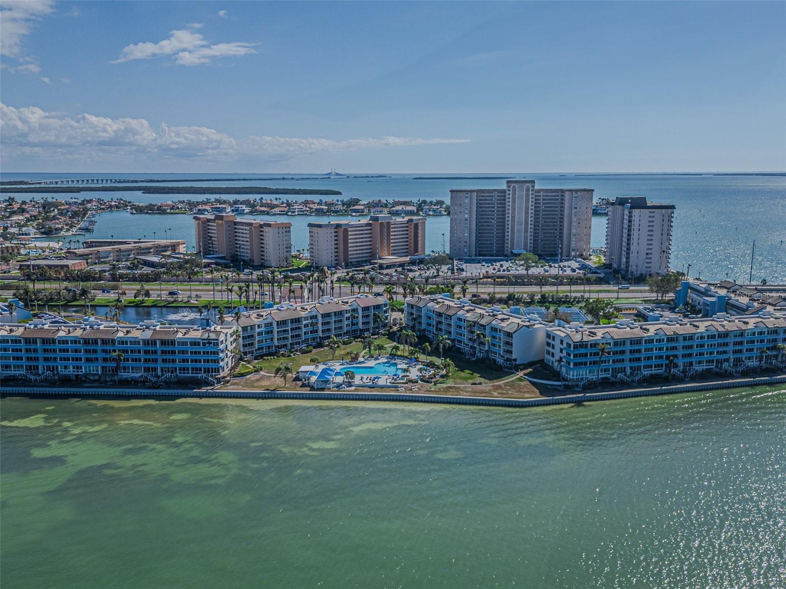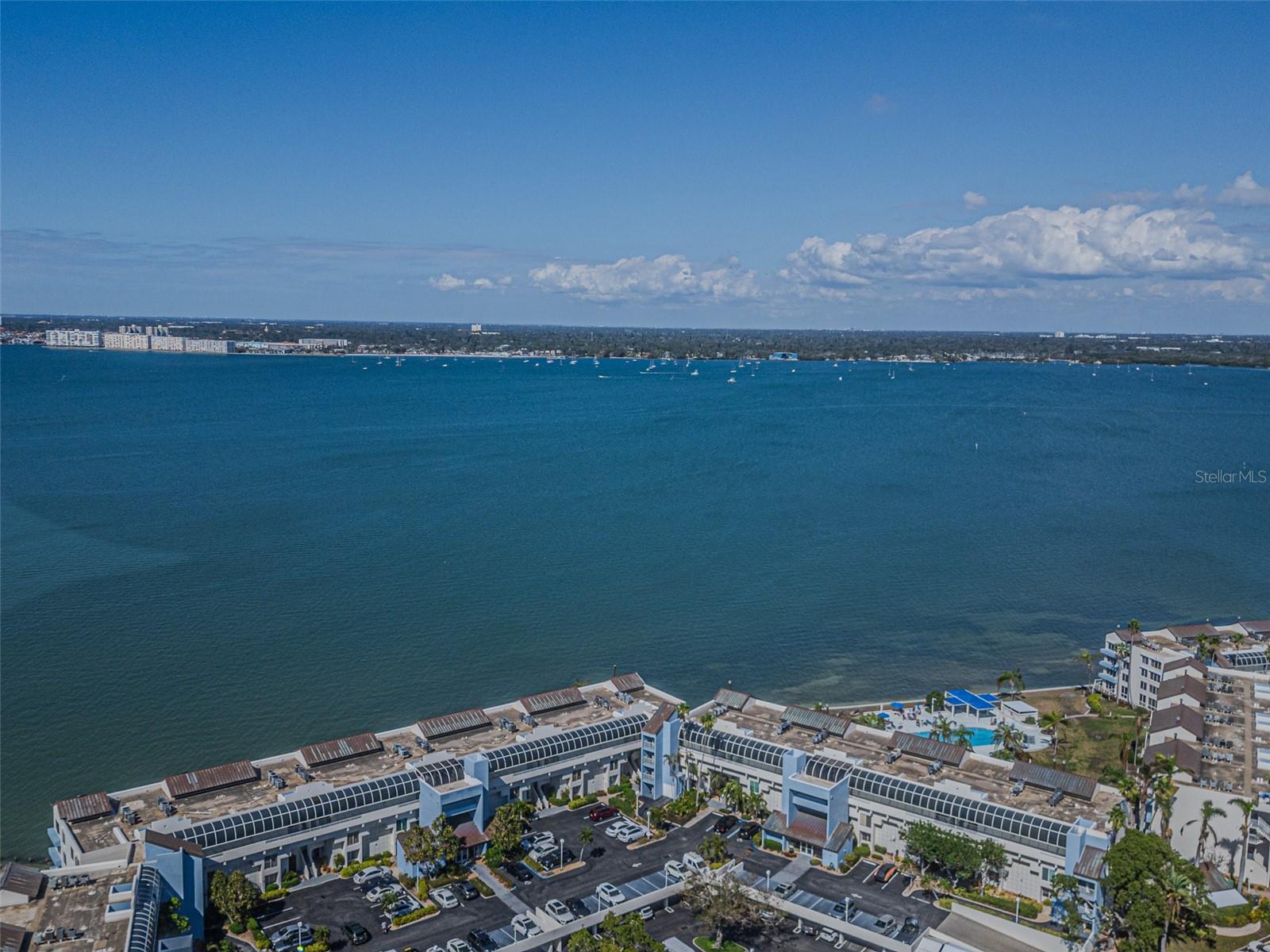 WATERFRONT Penthouse condo with unobstructed views of the bay!! This condo features 2 bedrooms, 2 bathrooms and an additional den which can be used as an office, a separate closet room or third bedroom. This condo has a beautiful entry way and foyer area. The kitchen is upgraded! This beautiful kitchen was completely reconfigured and remodeled with stunning marble countertops, backsplash, and stainless-steel appliances and it is open to the spacious living room! The open floor plan maximizes the space and allows for plenty of natural light. This penthouse unit features vaulted ceilings in the living room and has a decorative electric fireplace. Split bedroom floor plan ensures complete privacy. The master bedroom is situated on the bayside providing beautiful views of the bay. The en-suite bathroom has a walk-in custom made closet and custom vanities with dual sinks. Both bathrooms have been updated with new cabinetry, marble countertops and vanities. The guest bedroom has two Murphy twin size beds with shelves and adjustable reading lights. The large balcony is perfect for relaxing while taking in the stunning water views. You will enjoy the views of tropical serenity and of the pool from your condo. There is an inside laundry room off of the kitchen and a large storage room right outside your condo. Assigned parking space comes dedicated with the unit and additional guest parking spaces are available. Amenities include tennis courts, pickle ball, bocce ball courts, and a large pool/spa area. The pool is heated during the winter months and cooled down in the summer. Water views abound in this unit, whether you are in the living room, master bedroom, on the balcony or at the pool, the water views are amazing! Whether sunrise or sunset, you won't be disappointed. This condo is a must see and a pleasure to show!!