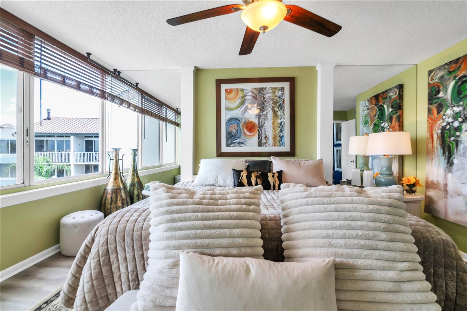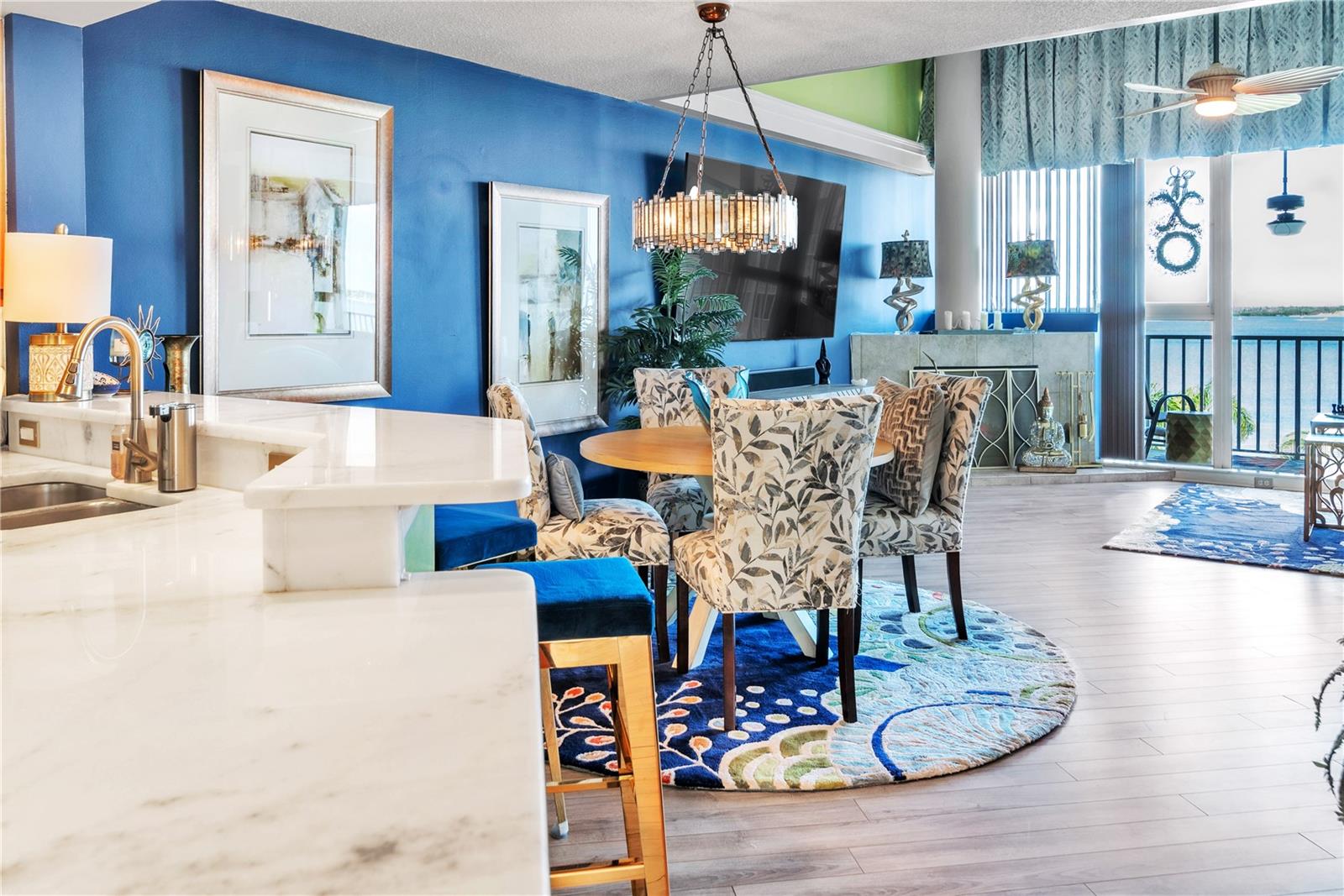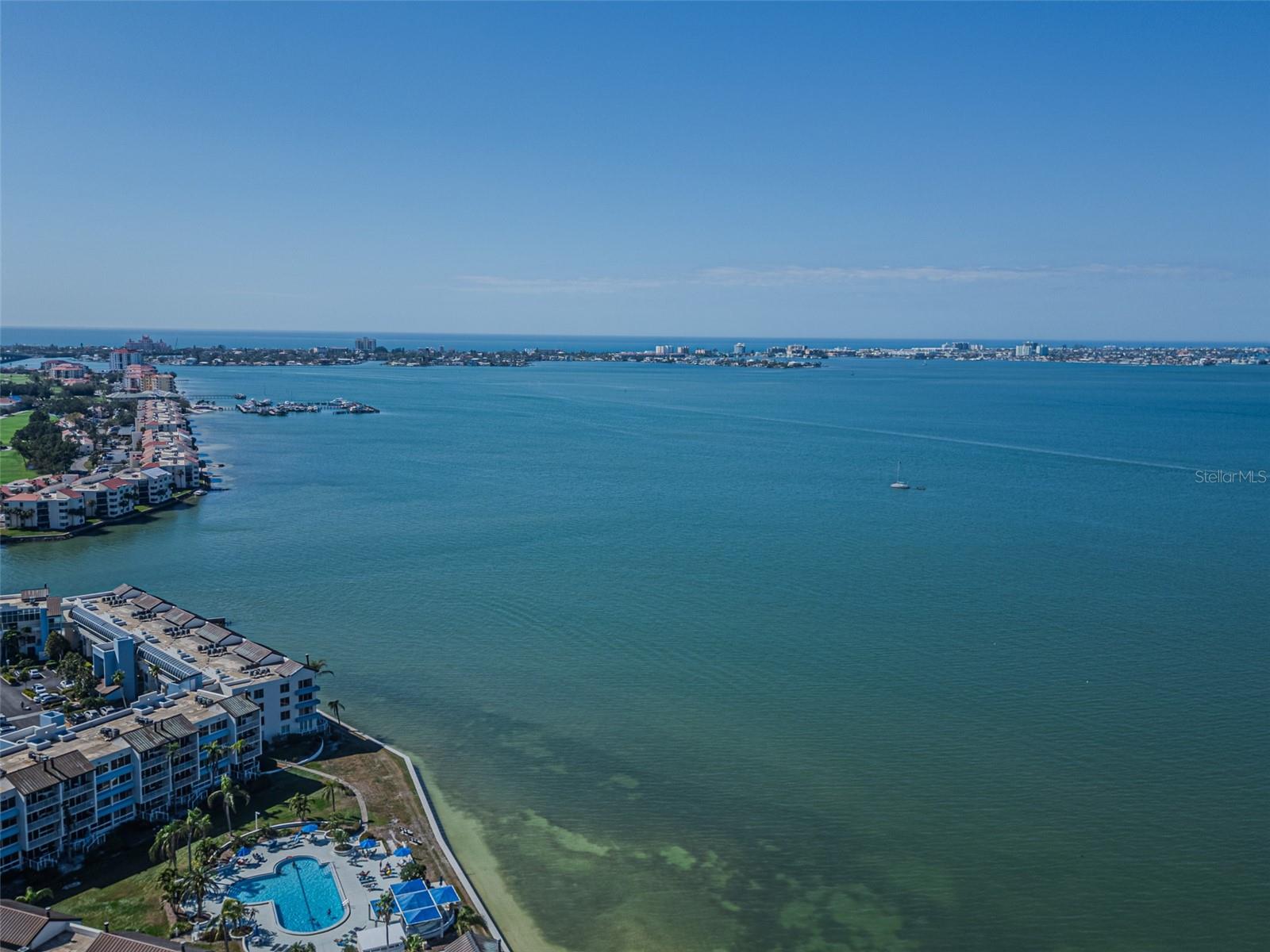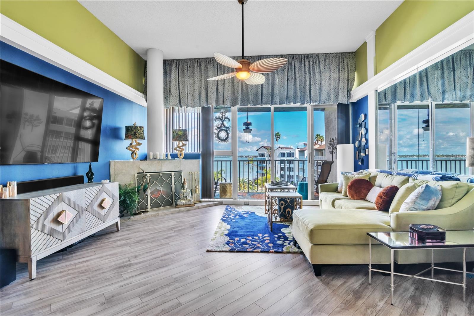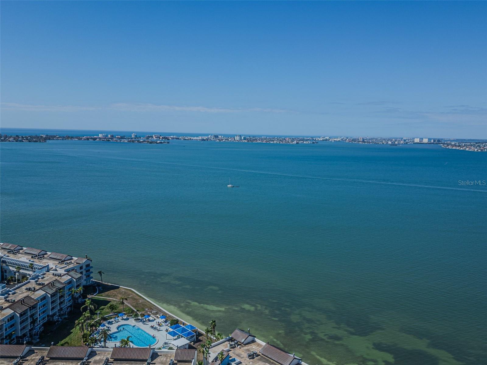 WATERFRONT Penthouse condo with unobstructed views of the bay!! This condo features 2 bedrooms, 2 bathrooms and an additional den which can be used as an office, a separate closet room or third bedroom. This condo has a beautiful entry way and foyer area. The kitchen is upgraded! This beautiful kitchen was completely reconfigured and remodeled with stunning marble countertops, backsplash, and stainless-steel appliances and it is open to the spacious living room! The open floor plan maximizes the space and allows for plenty of natural light. This penthouse unit features vaulted ceilings in the living room and has a decorative electric fireplace. Split bedroom floor plan ensures complete privacy. The master bedroom is situated on the bayside providing beautiful views of the bay. The en-suite bathroom has a walk-in custom made closet and custom vanities with dual sinks. Both bathrooms have been updated with new cabinetry, marble countertops and vanities. The guest bedroom has two Murphy twin size beds with shelves and adjustable reading lights. The large balcony is perfect for relaxing while taking in the stunning water views. You will enjoy the views of tropical serenity and of the pool from your condo. There is an inside laundry room off of the kitchen and a large storage room right outside your condo. Assigned parking space comes dedicated with the unit and additional guest parking spaces are available. Amenities include tennis courts, pickle ball, bocce ball courts, and a large pool/spa area. The pool is heated during the winter months and cooled down in the summer. Water views abound in this unit, whether you are in the living room, master bedroom, on the balcony or at the pool, the water views are amazing! Whether sunrise or sunset, you won't be disappointed. This condo is a must see and a pleasure to show!!