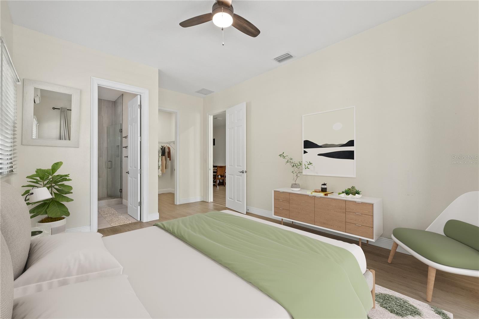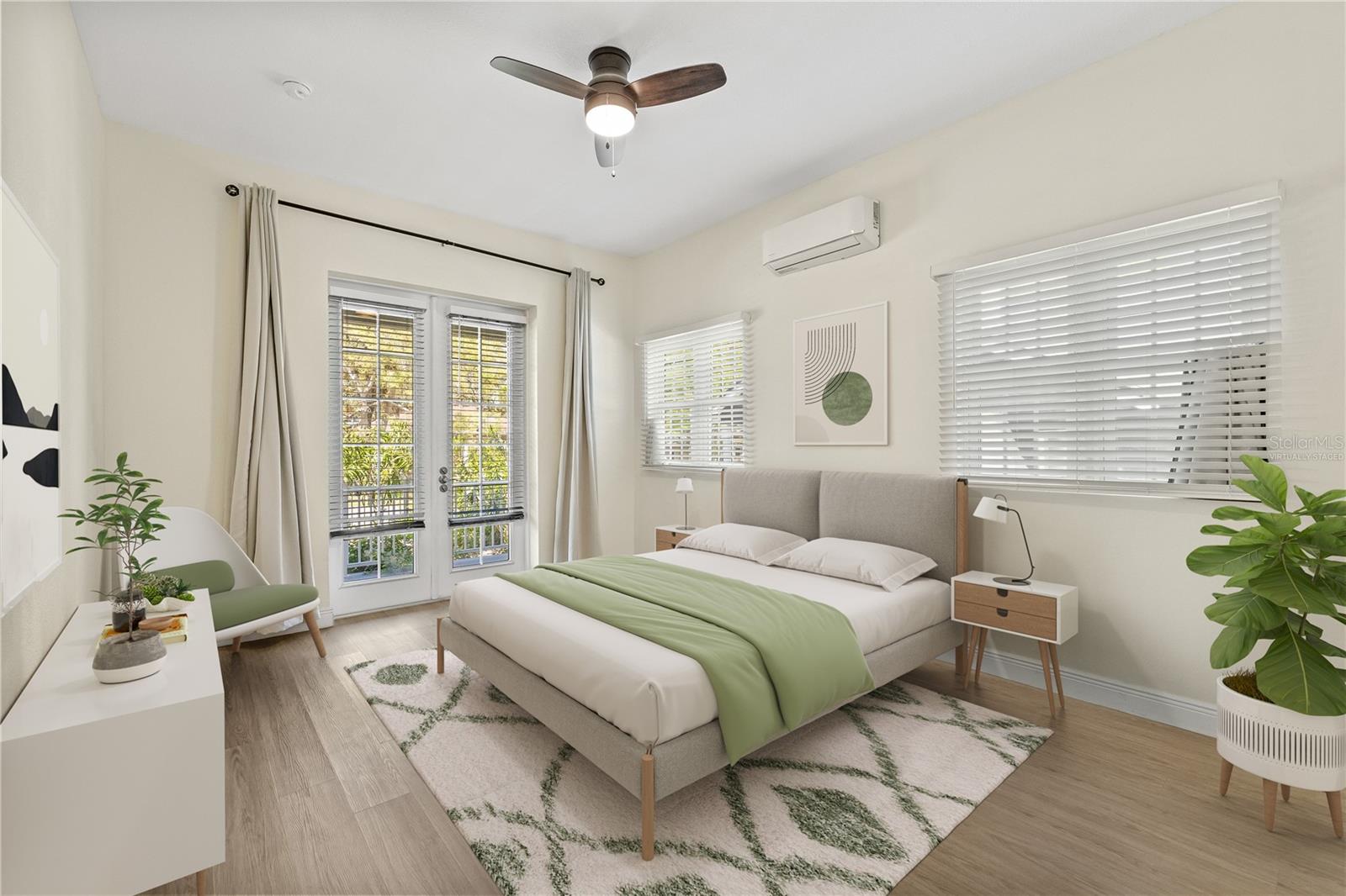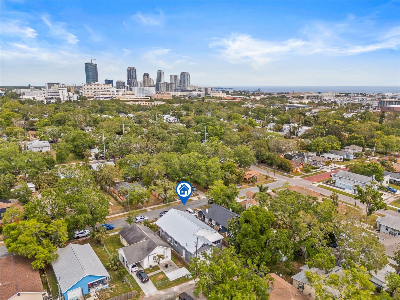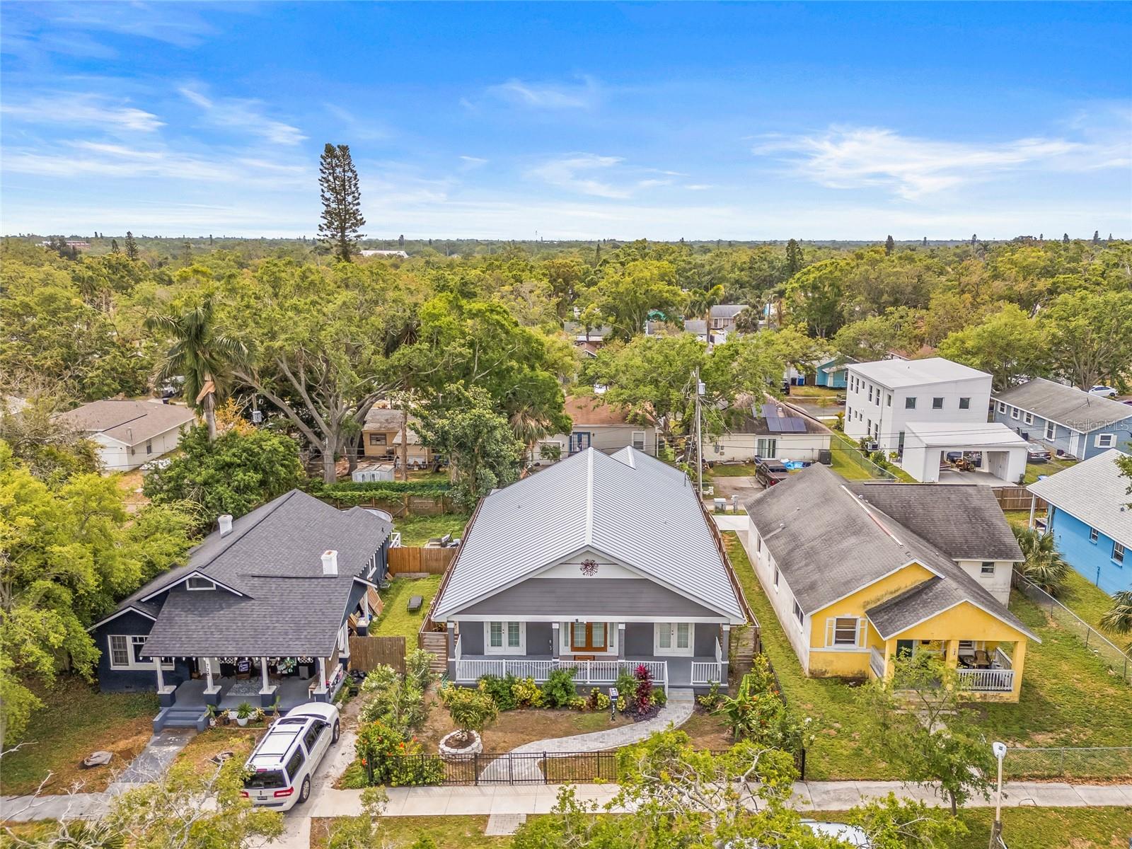 One or more photo(s) has been virtually staged. Beautiful 2022 constructed St Pete home, ideally located near the bright city-lights and waterfront parks of all that downtown has to offer. A must-see that features the security and beauty of a metal roof, modern block construction, and located outside flood zone AE that currently requires flood insurance for a mortgage. The home sustained no damage in the 2024 storm season and has high-impact, hurricane-rated windows for additional peace of mind and added storm resilience. The home as well as the HVAC system is elevated above the grade for even more protection. Six elegant 8-foot-high expansive French doors welcome you from the large covered front porch and offer abundant natural lighting and expansive views. Inside you will find high ceilings, soft LED lighting, and an open layout featuring elegant quartz countertops in a large u-shaped kitchen, ready to welcome family and friends. The home offers a split floor plan. The primary suite features an expansive walk-in closet and step-in shower with glass Euro-Door. The two secondary bedrooms can be closed off from the main living area into a private suite with separate exterior access, ideal for roommates or multi-generational living. All 3 bedrooms have supplemental mini-split AC systems to set your perfect sleeping temperature. In addition to the listed sq ft, a Florida room sits to the rear of the kitchen / dining area and has large hurricane impact windows with screens that welcomes you to sit, breathe, and relax all year round. There is water softener system and a laundry room that boasts an extra-large washer and dryer. The attached two-car garage is over 12 feet high and has a 10-foot clearance to park your camper or taller vehicles. The fenced rear of the lot offers extra security. Home located adjacent to the Innovation District and close to Johns Hopkins All Children’s Hospital, Bayfront Hospital, USF St Pete Campus and St. Petersburg Fire Rescue Master Station with easy access to I-175. Special buyer financing programs are available for this location. Schedule a showing today!!