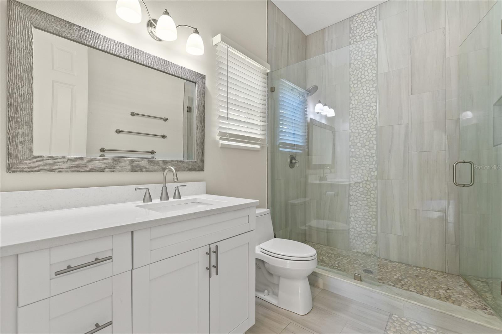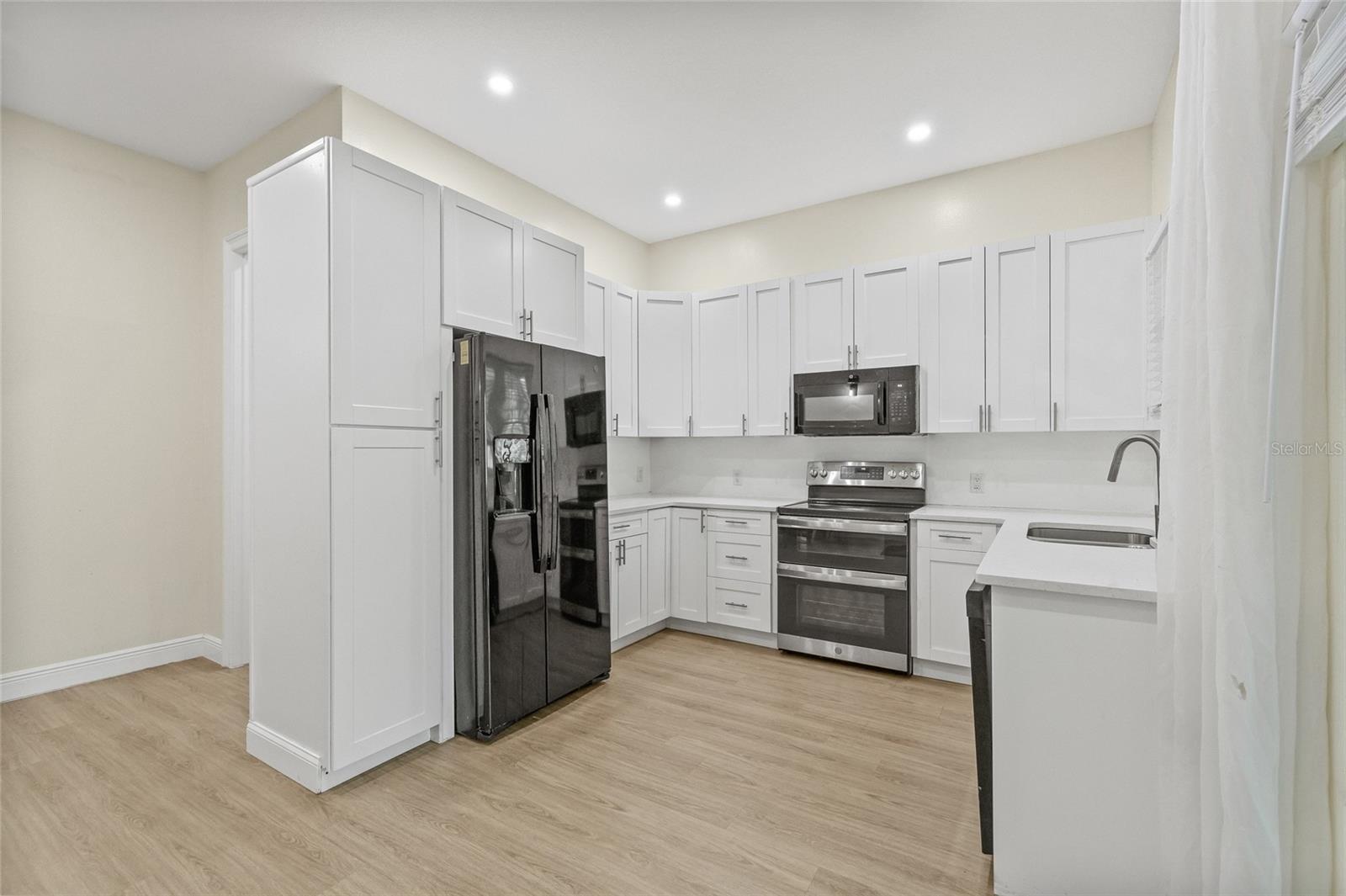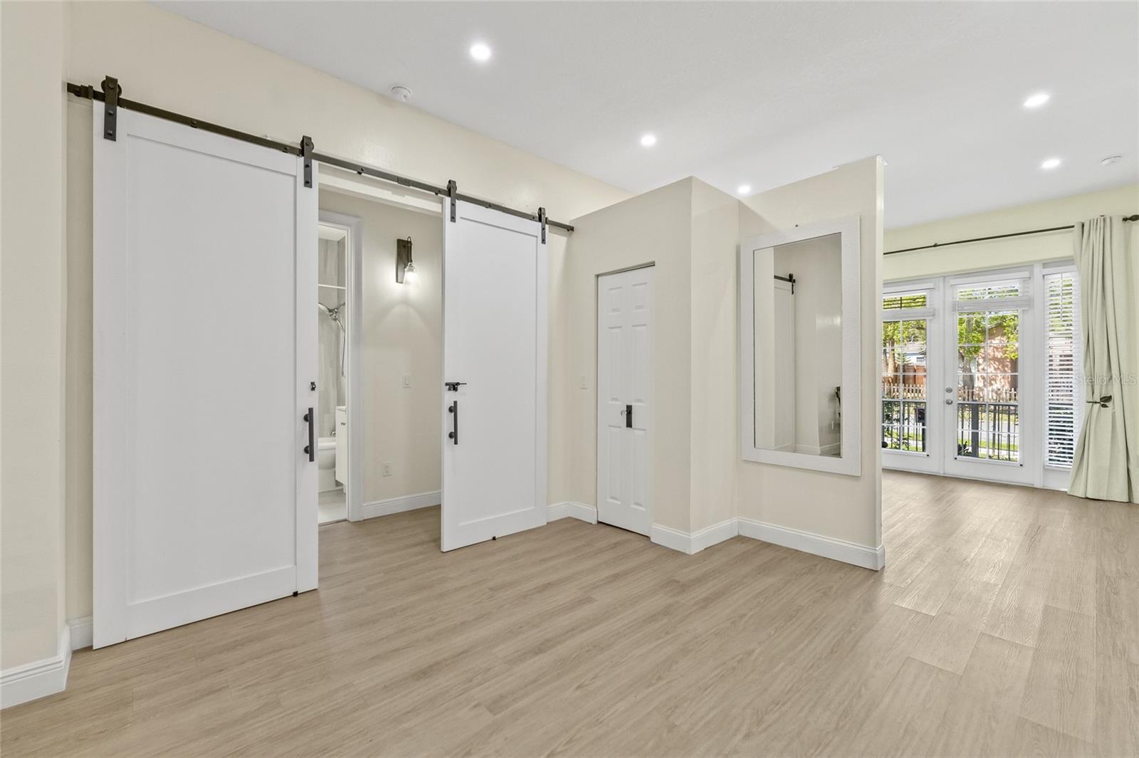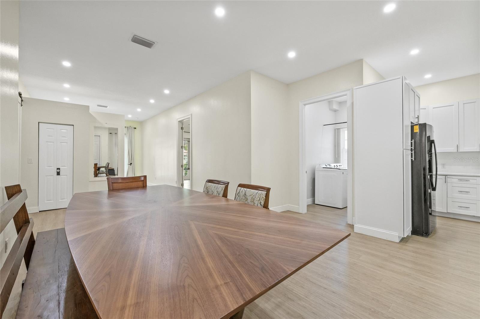 One or more photo(s) has been virtually staged. Beautiful 2022 constructed St Pete home, ideally located near the bright city-lights and waterfront parks of all that downtown has to offer. A must-see that features the security and beauty of a metal roof, modern block construction, and located outside flood zone AE that currently requires flood insurance for a mortgage. The home sustained no damage in the 2024 storm season and has high-impact, hurricane-rated windows for additional peace of mind and added storm resilience. The home as well as the HVAC system is elevated above the grade for even more protection. Six elegant 8-foot-high expansive French doors welcome you from the large covered front porch and offer abundant natural lighting and expansive views. Inside you will find high ceilings, soft LED lighting, and an open layout featuring elegant quartz countertops in a large u-shaped kitchen, ready to welcome family and friends. The home offers a split floor plan. The primary suite features an expansive walk-in closet and step-in shower with glass Euro-Door. The two secondary bedrooms can be closed off from the main living area into a private suite with separate exterior access, ideal for roommates or multi-generational living. All 3 bedrooms have supplemental mini-split AC systems to set your perfect sleeping temperature. In addition to the listed sq ft, a Florida room sits to the rear of the kitchen / dining area and has large hurricane impact windows with screens that welcomes you to sit, breathe, and relax all year round. There is water softener system and a laundry room that boasts an extra-large washer and dryer. The attached two-car garage is over 12 feet high and has a 10-foot clearance to park your camper or taller vehicles. The fenced rear of the lot offers extra security. Home located adjacent to the Innovation District and close to Johns Hopkins All Children’s Hospital, Bayfront Hospital, USF St Pete Campus and St. Petersburg Fire Rescue Master Station with easy access to I-175. Special buyer financing programs are available for this location. Schedule a showing today!!