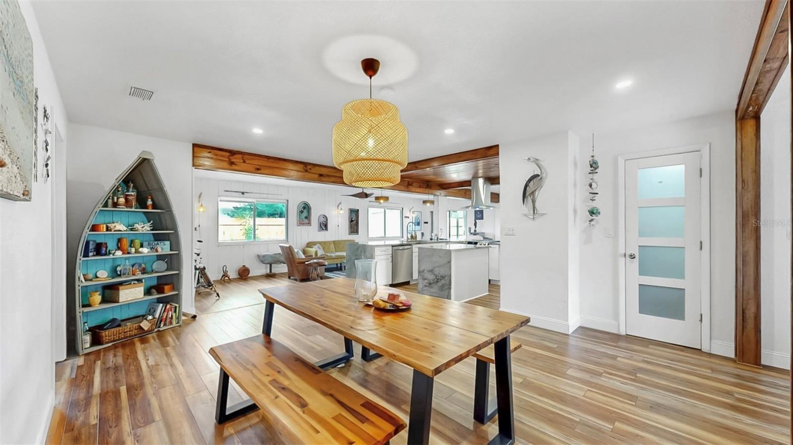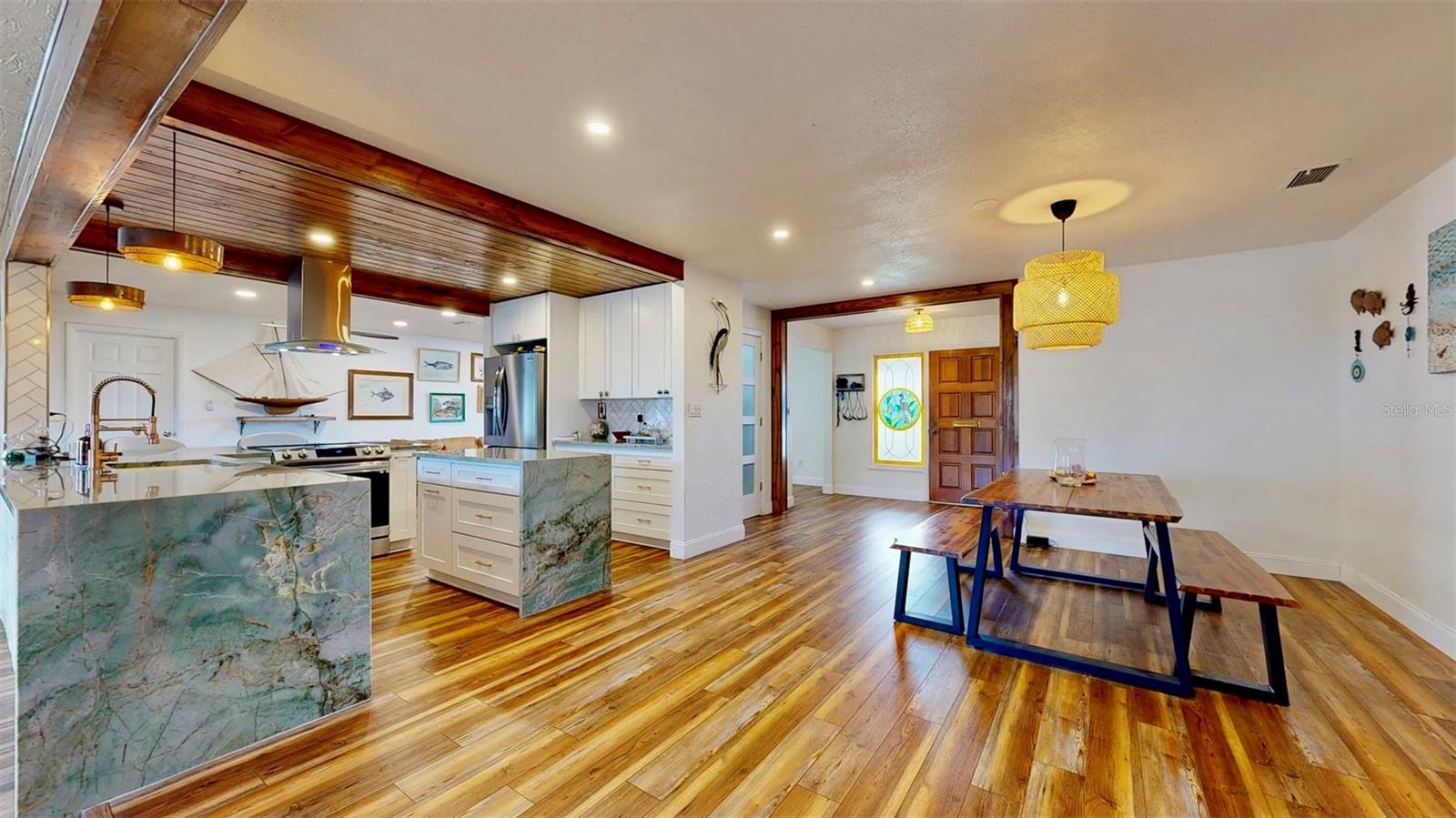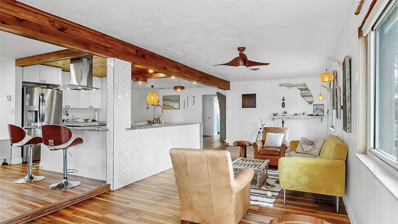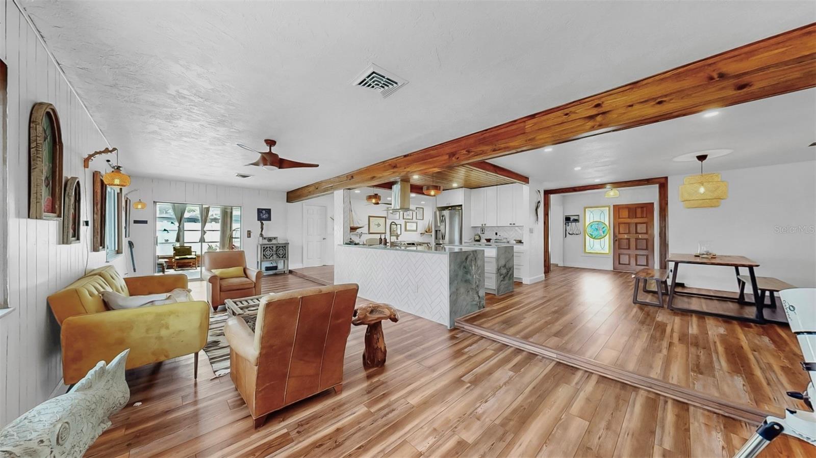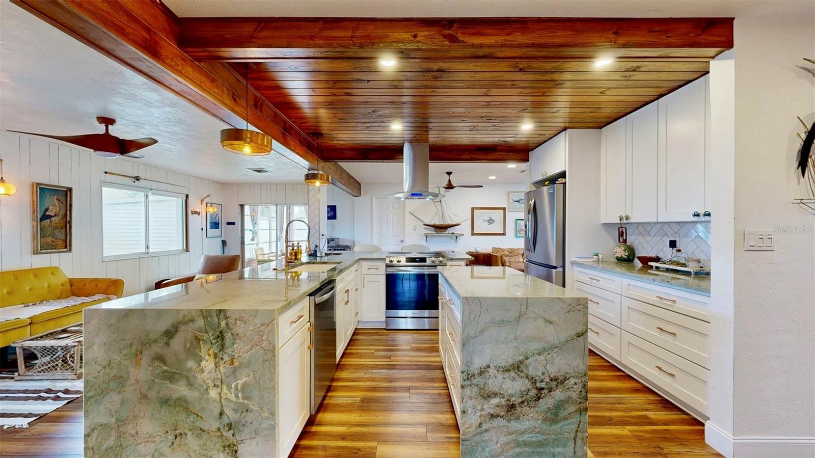 3/2 2,000 square feet Updated home with many custom features. The words Boho, and Florida beach cabin come to mind with all the modern touches you want. 180 degrees of entertaining space in the kitchen with a Marine green quartz countertop. This stone looks like a piece of art two waterfall pieces to really expose how beautiful it is to the dining room area. Stained shiplap wood beam crosses over the kitchen to give it a unique and rustic classy look. As you open the door to your new home you immediately feel the warmth with the stained wood arches inviting you into your dining room off the left, and the walk-in pantry closet to the right. This kitchen was built for the chef, the entertainer, for all those big gatherings it's waiting for you to make forever memories. shaker cabinets with rose gold hardware as well as some beachy vibe hardware. Herringbone tile wraps around the finishing touches. Both bathrooms have been updated tastefully to go along with the theme of the home. The master-bath is tiled with sage green subway tile and a mixed penny tile on the floor, as well as a navy blue double sink vanity with quartz countertop. The second bathroom has cement look tile and a green vanity with quartz countertop all new hardware. Off the master is a Florida room that is very Boho with tile from Spain, and wrapped around stain wood to match your kitchen. A lot of warmth is a great place to have that morning coffee or settle back in with a good book. It also has a unique accordion sliding door to open the room up and make it that much more inviting. The master bedroom is very spacious and also has a walk-in closet. This home also has so much ample storage, an oversized garage with a work station, racks for your fishing rods or storage needs. As well as a shed in the backyard. Plenty of parking a huge driveway with an extension on the side for your boat or RV. A boaters paradise close to the boat ramp, ice machines, bait shops, . 2 miles from Maximo park, 275. 10 -20 min to fort de soto and pass a grille beach. NO FLOODZONE Flood insurance not required, no hurricane damage. This home is a must see!!