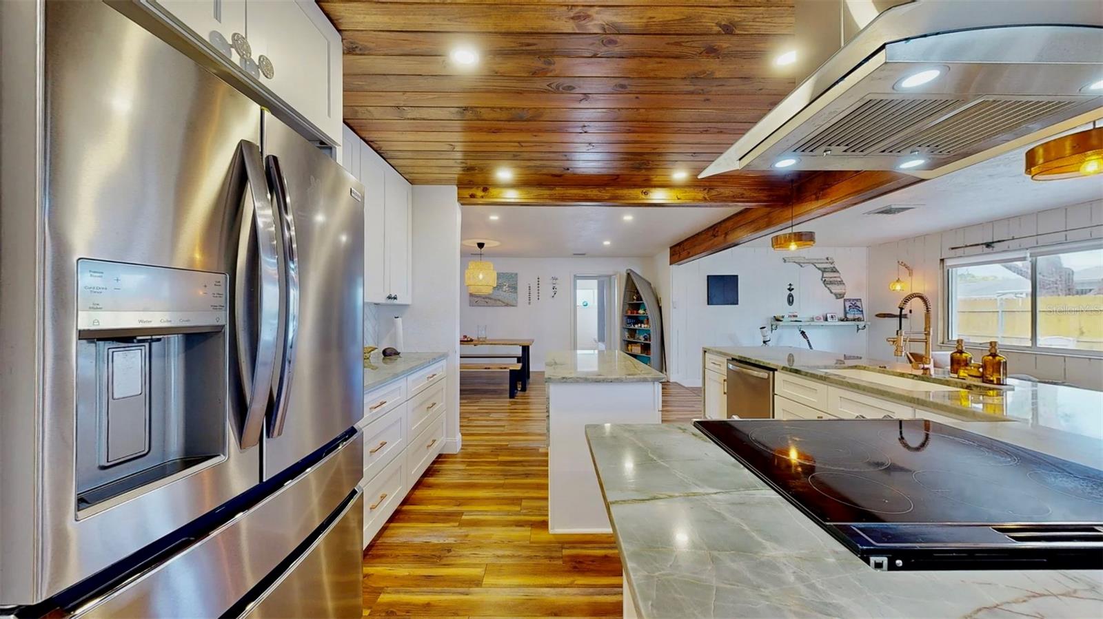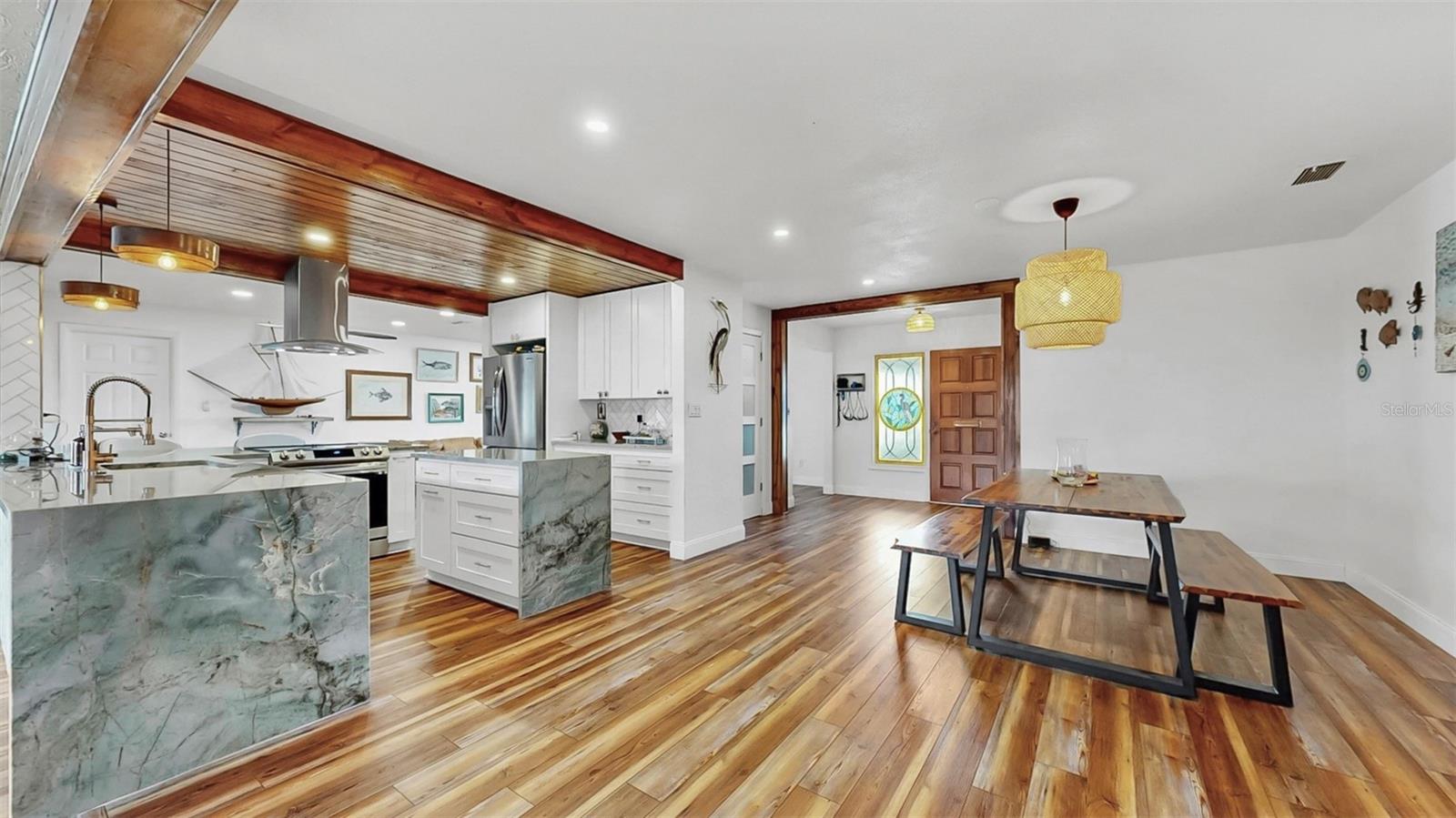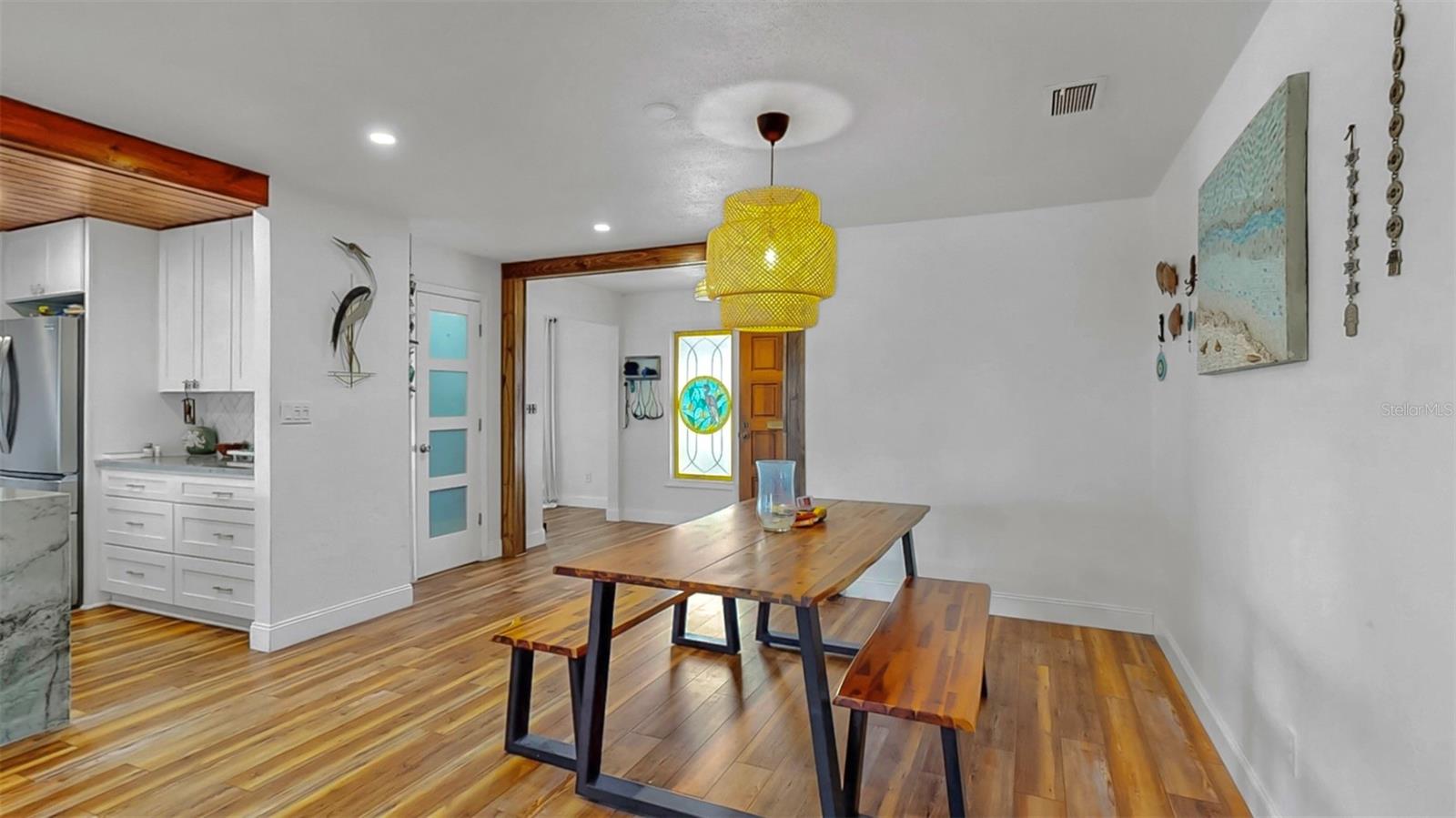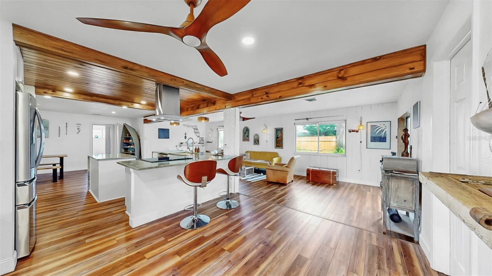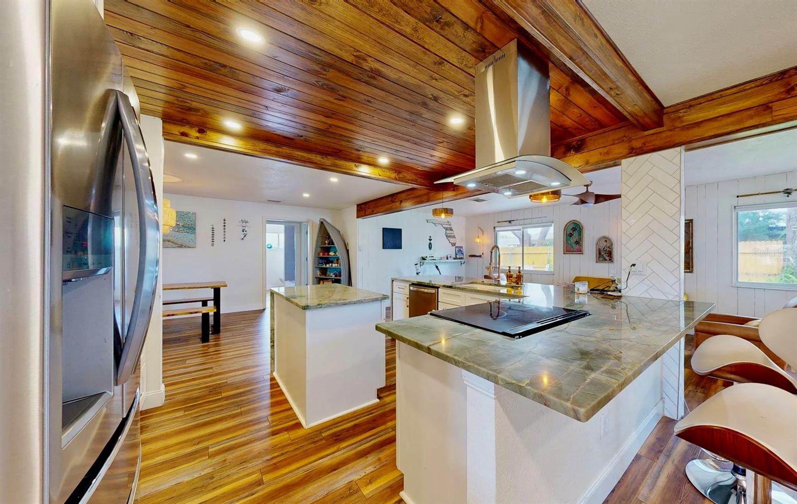 3/2 2,000 square feet Updated home with many custom features. The words Boho, and Florida beach cabin come to mind with all the modern touches you want. 180 degrees of entertaining space in the kitchen with a Marine green quartz countertop. This stone looks like a piece of art two waterfall pieces to really expose how beautiful it is to the dining room area. Stained shiplap wood beam crosses over the kitchen to give it a unique and rustic classy look. As you open the door to your new home you immediately feel the warmth with the stained wood arches inviting you into your dining room off the left, and the walk-in pantry closet to the right. This kitchen was built for the chef, the entertainer, for all those big gatherings it's waiting for you to make forever memories. shaker cabinets with rose gold hardware as well as some beachy vibe hardware. Herringbone tile wraps around the finishing touches. Both bathrooms have been updated tastefully to go along with the theme of the home. The master-bath is tiled with sage green subway tile and a mixed penny tile on the floor, as well as a navy blue double sink vanity with quartz countertop. The second bathroom has cement look tile and a green vanity with quartz countertop all new hardware. Off the master is a Florida room that is very Boho with tile from Spain, and wrapped around stain wood to match your kitchen. A lot of warmth is a great place to have that morning coffee or settle back in with a good book. It also has a unique accordion sliding door to open the room up and make it that much more inviting. The master bedroom is very spacious and also has a walk-in closet. This home also has so much ample storage, an oversized garage with a work station, racks for your fishing rods or storage needs. As well as a shed in the backyard. Plenty of parking a huge driveway with an extension on the side for your boat or RV. A boaters paradise close to the boat ramp, ice machines, bait shops, . 2 miles from Maximo park, 275. 10 -20 min to fort de soto and pass a grille beach. NO FLOODZONE Flood insurance not required, no hurricane damage. This home is a must see!!