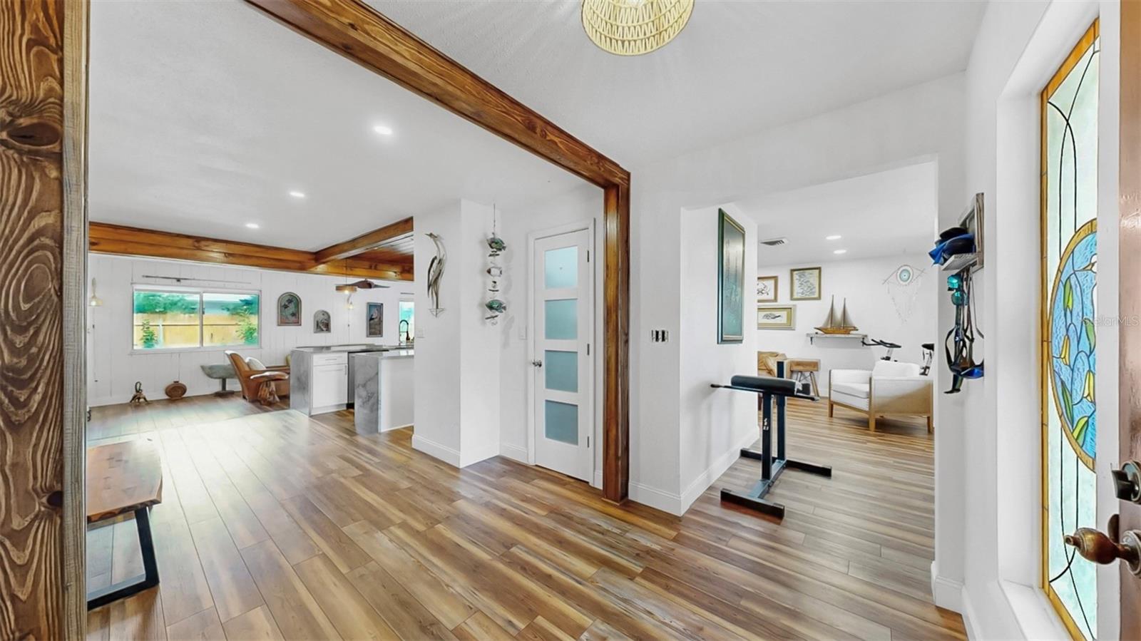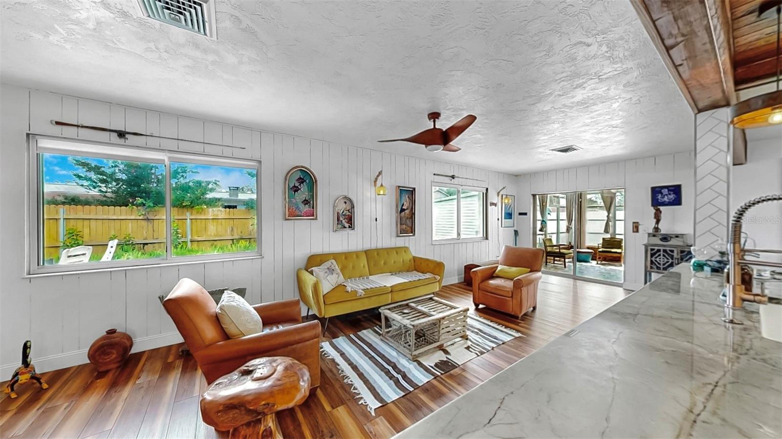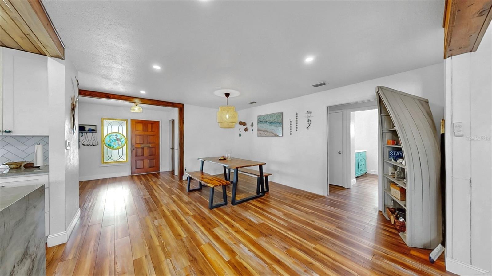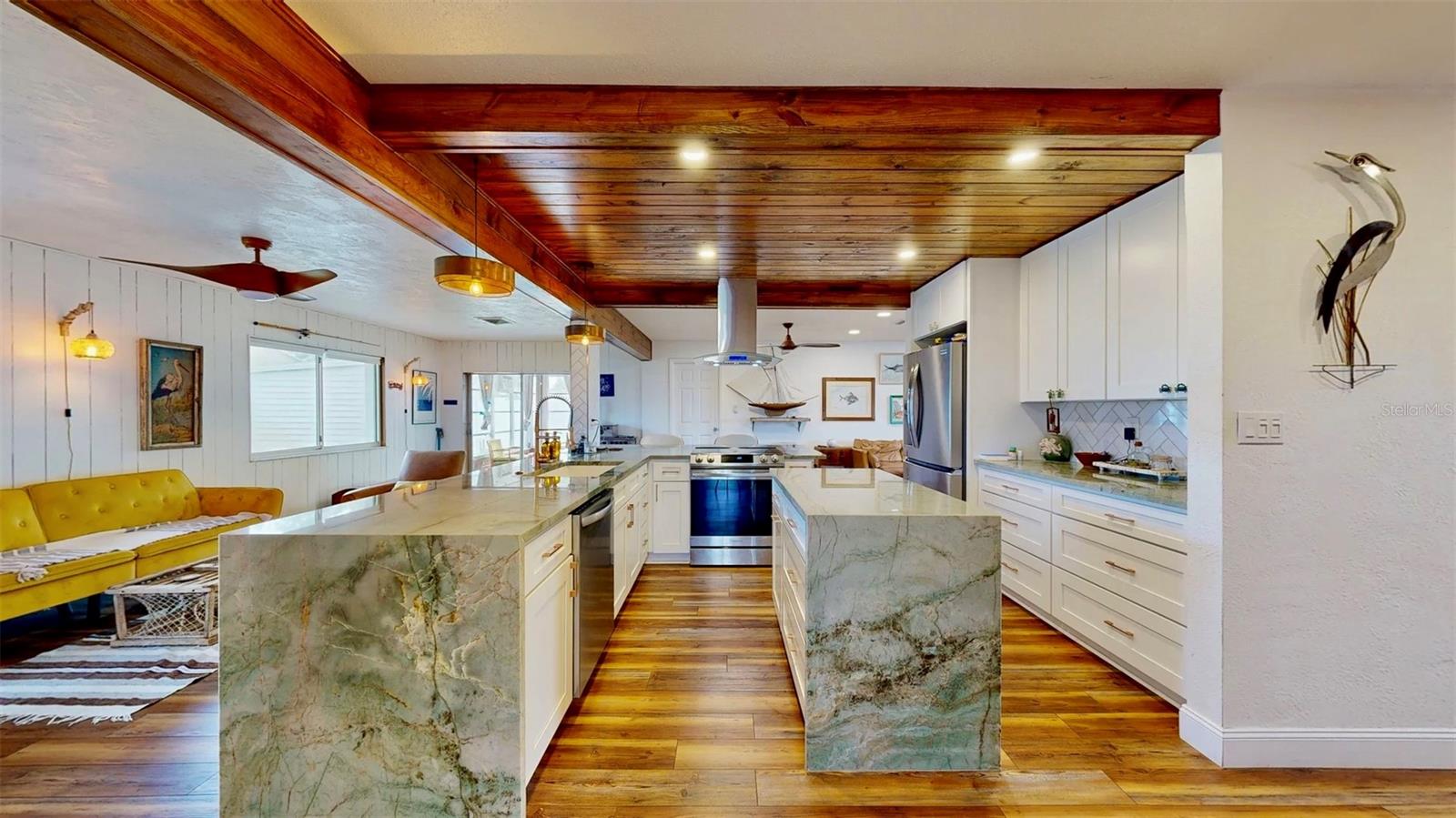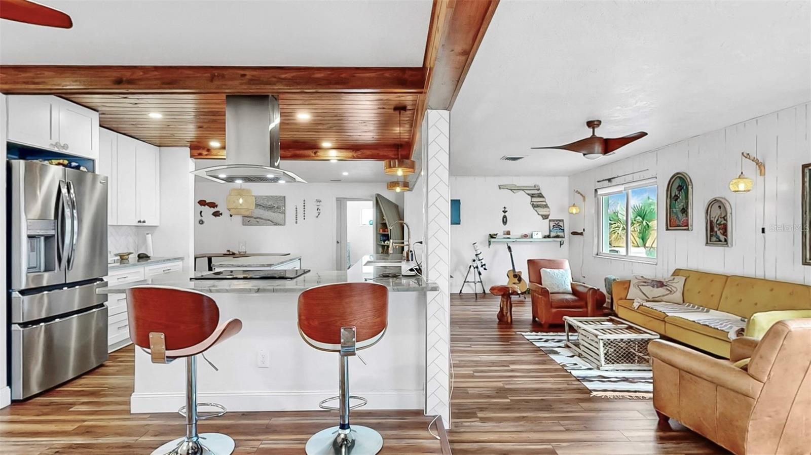 3/2 2,000 square feet Updated home with many custom features. The words Boho, and Florida beach cabin come to mind with all the modern touches you want. 180 degrees of entertaining space in the kitchen with a Marine green quartz countertop. This stone looks like a piece of art two waterfall pieces to really expose how beautiful it is to the dining room area. Stained shiplap wood beam crosses over the kitchen to give it a unique and rustic classy look. As you open the door to your new home you immediately feel the warmth with the stained wood arches inviting you into your dining room off the left, and the walk-in pantry closet to the right. This kitchen was built for the chef, the entertainer, for all those big gatherings it's waiting for you to make forever memories. shaker cabinets with rose gold hardware as well as some beachy vibe hardware. Herringbone tile wraps around the finishing touches. Both bathrooms have been updated tastefully to go along with the theme of the home. The master-bath is tiled with sage green subway tile and a mixed penny tile on the floor, as well as a navy blue double sink vanity with quartz countertop. The second bathroom has cement look tile and a green vanity with quartz countertop all new hardware. Off the master is a Florida room that is very Boho with tile from Spain, and wrapped around stain wood to match your kitchen. A lot of warmth is a great place to have that morning coffee or settle back in with a good book. It also has a unique accordion sliding door to open the room up and make it that much more inviting. The master bedroom is very spacious and also has a walk-in closet. This home also has so much ample storage, an oversized garage with a work station, racks for your fishing rods or storage needs. As well as a shed in the backyard. Plenty of parking a huge driveway with an extension on the side for your boat or RV. A boaters paradise close to the boat ramp, ice machines, bait shops, . 2 miles from Maximo park, 275. 10 -20 min to fort de soto and pass a grille beach. NO FLOODZONE Flood insurance not required, no hurricane damage. This home is a must see!!