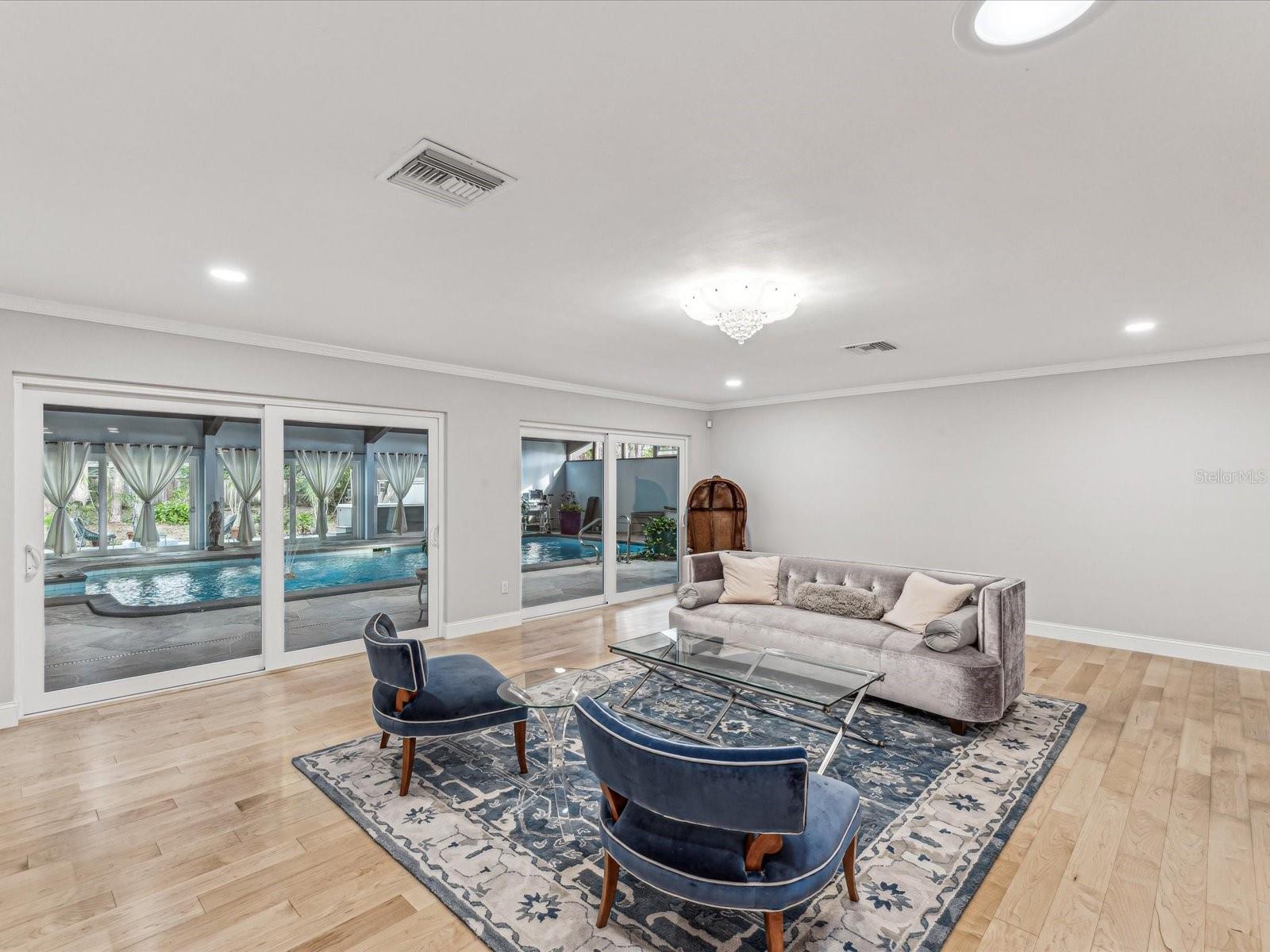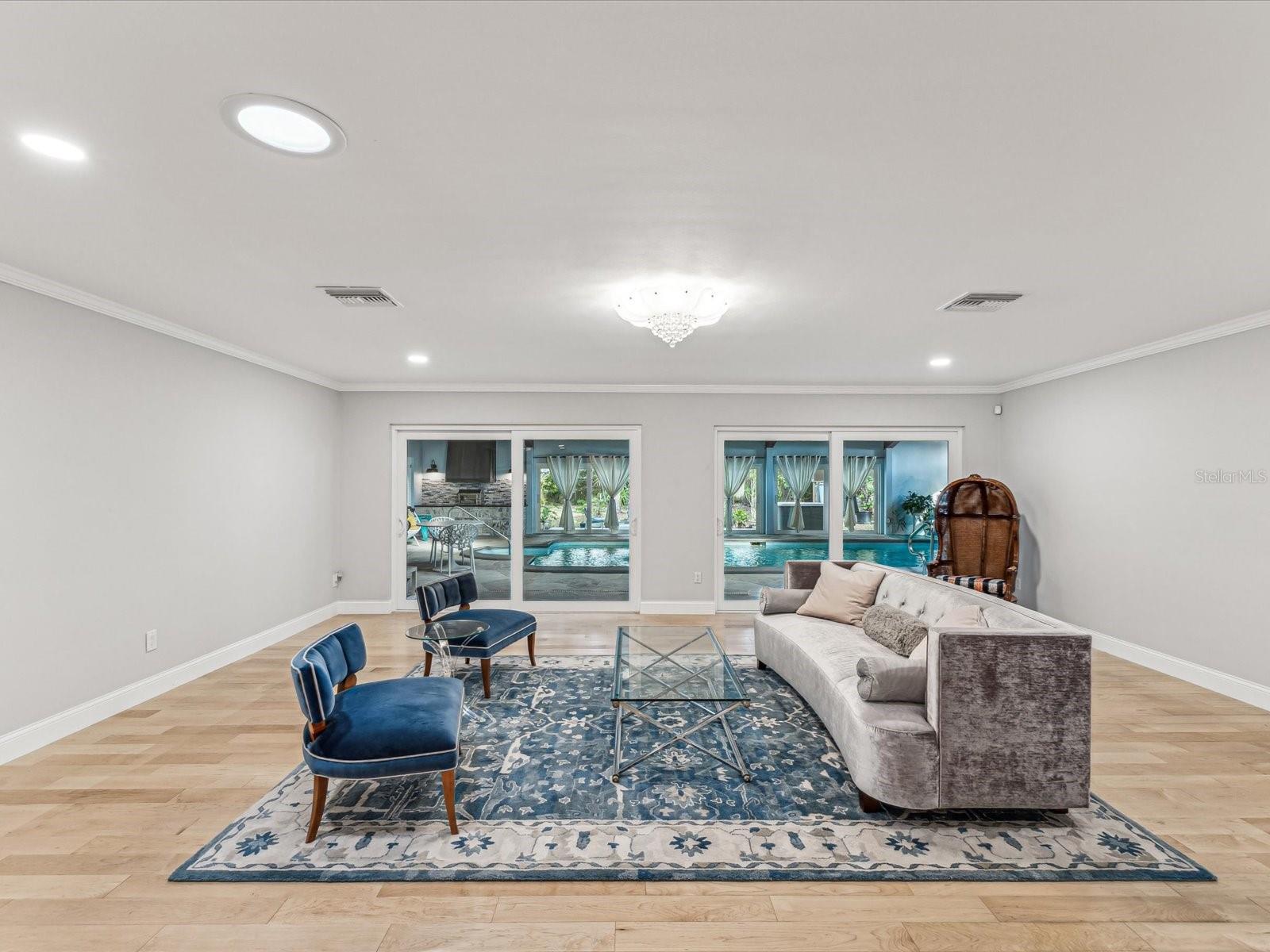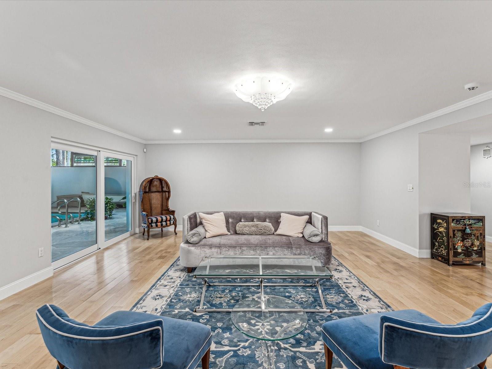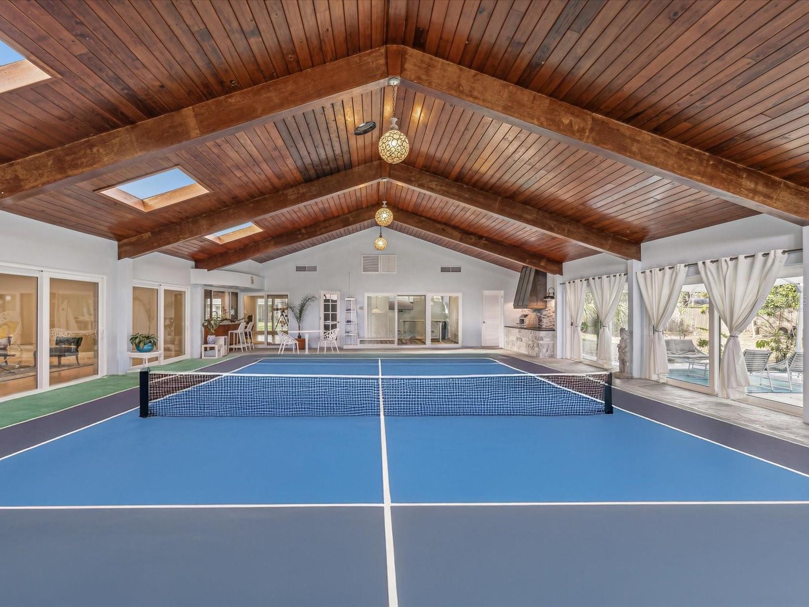 *BRAND NEW PRICE IMPROVEMENT WITH SELLERS OFFERING ASSUMABLE MORTGAGE AT A VERY LOW INTEREST RATE OF 2.85.* Priced at appraisal price! This stunning Mid-Century Modern architectural style home offers 4 bedrooms, 4 bathrooms and sprawls across 5,673 square feet of pure luxury! THIS PROPERTY DID NOT FLOOD during recent storms. It offers extra reassurance with a GENERAC WHOLE HOUSE GENERATOR, hurricane shutters and a hurricane reinforced garage door. All newer systems including 3 HVAC's (2024 & 2017), 2 TANKLESS WATER HEATERS (2019), TILE ROOF (2014 with 50 year warranty), ELECTRICAL & PLUMBING UPDATED DURING RENOVATIONS, WATER SOFTNER (2022) and DOUBLE PANE SLIDERS & WINDOWS (2024, 2021, 2018). Most systems come with transferrable warranty. Situated on an oversized 24,668 square foot corner lot, this property offers ample space with potential for future building opportunities. Step inside to discover beautifully renovated modern amenities & a formal living space that opens to the indoor pool. This is saltwater, heated pool opens to all interior rooms of the house. This pool can be filled and be a pickle ball court, gym or whatever you can imagine! There is also a new outdoor kitchen/ grill in the pool room. Need even more living space? It is possible to fill the indoor pool as it is a climate controlled room. The home is adorned with luxurious touches, such as hardwood flooring, plantation shutters, ALL CALIFORNIA CLOSETS and Italian chandeliers original to the home. The home is also beautified with the rare and famous Ruth Richmond door knobs. As one of the first female architects of the 1960's and designer to Jackie Kennedy Onassis, Ruth Richmond designed the rare lucite doorknobs with gold infusions. These are found throughout the home and give a "Mad Men" mid-century modern jolt of glamour! Each of the 4 bathrooms have been completely updated, with the primary boasting HEATED FLOORS and spa-like features. The primary suite is a true retreat with a cozy fireplace, jacuzzi therapy tub, and motorized lighted curtains that open to reveal the sparkling pool. You'll love the convenience of a built-in bar, LG STYLER & SANITIZER as an alternative to dry cleaning and a dedicated washer/dryer in the closet. The primary bathroom is a haven with two rain showers and custom, elegant fixtures. Outdoors, the possibilities are endless with a hot tub, treehouse, and ample parking, including a spacious 2 car garage. Each bedroom has it's own charm, with one bedroom featuring a vibrant Lilly Pulitzer vibe and another serving as a creative craft room that can be converted back to a bedroom or flex space/office. xxThere is so much more to explore in this exceptional home—call today to discover all the unique details and make this dream home yours!