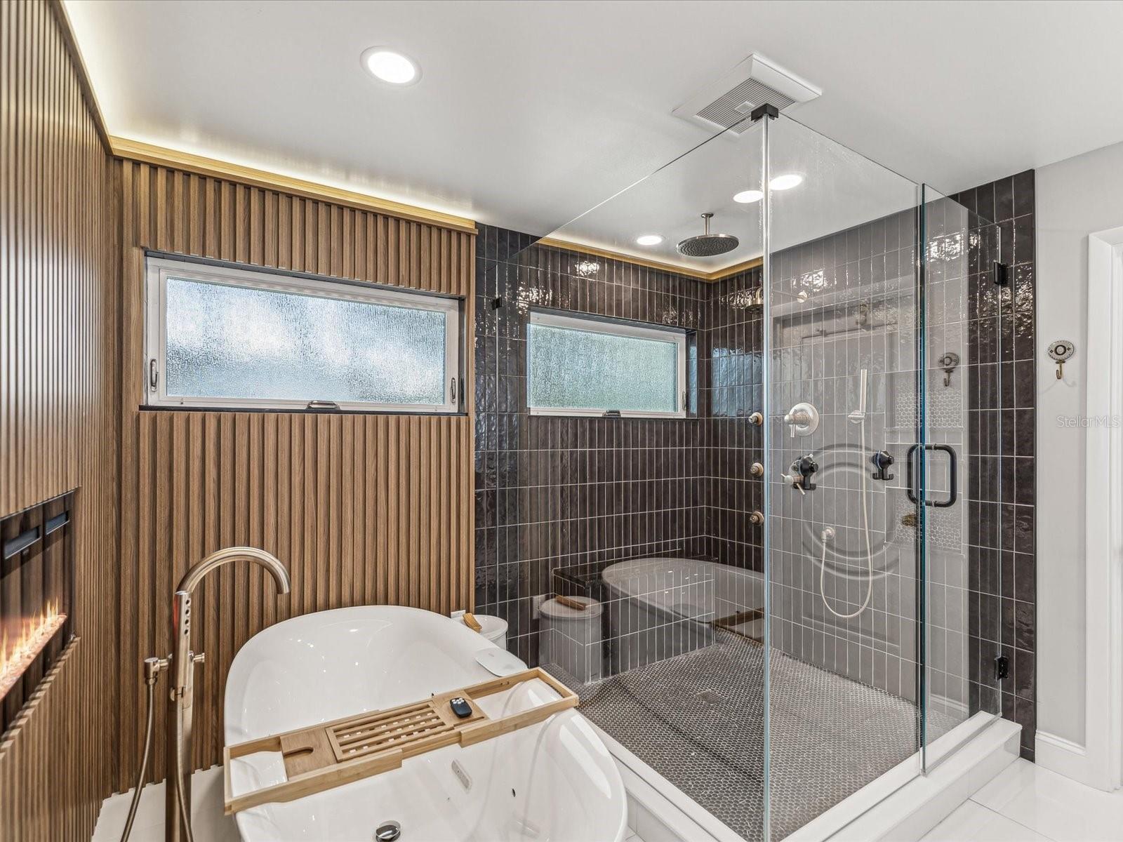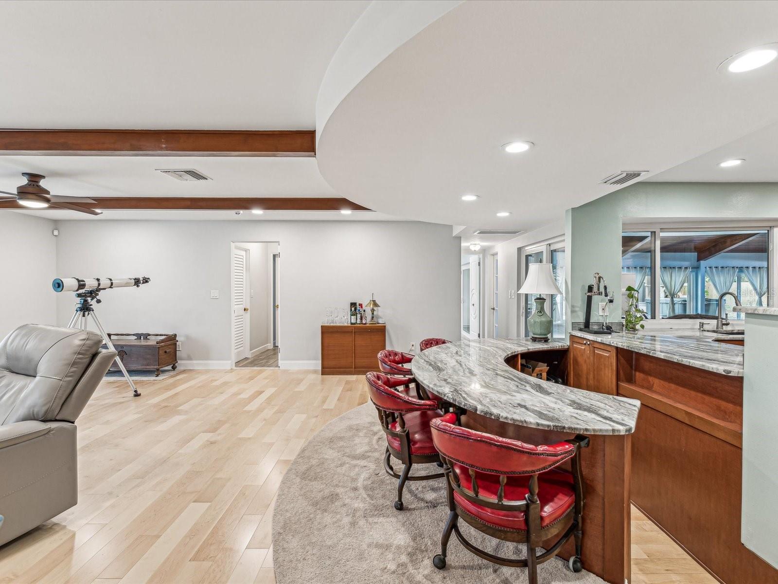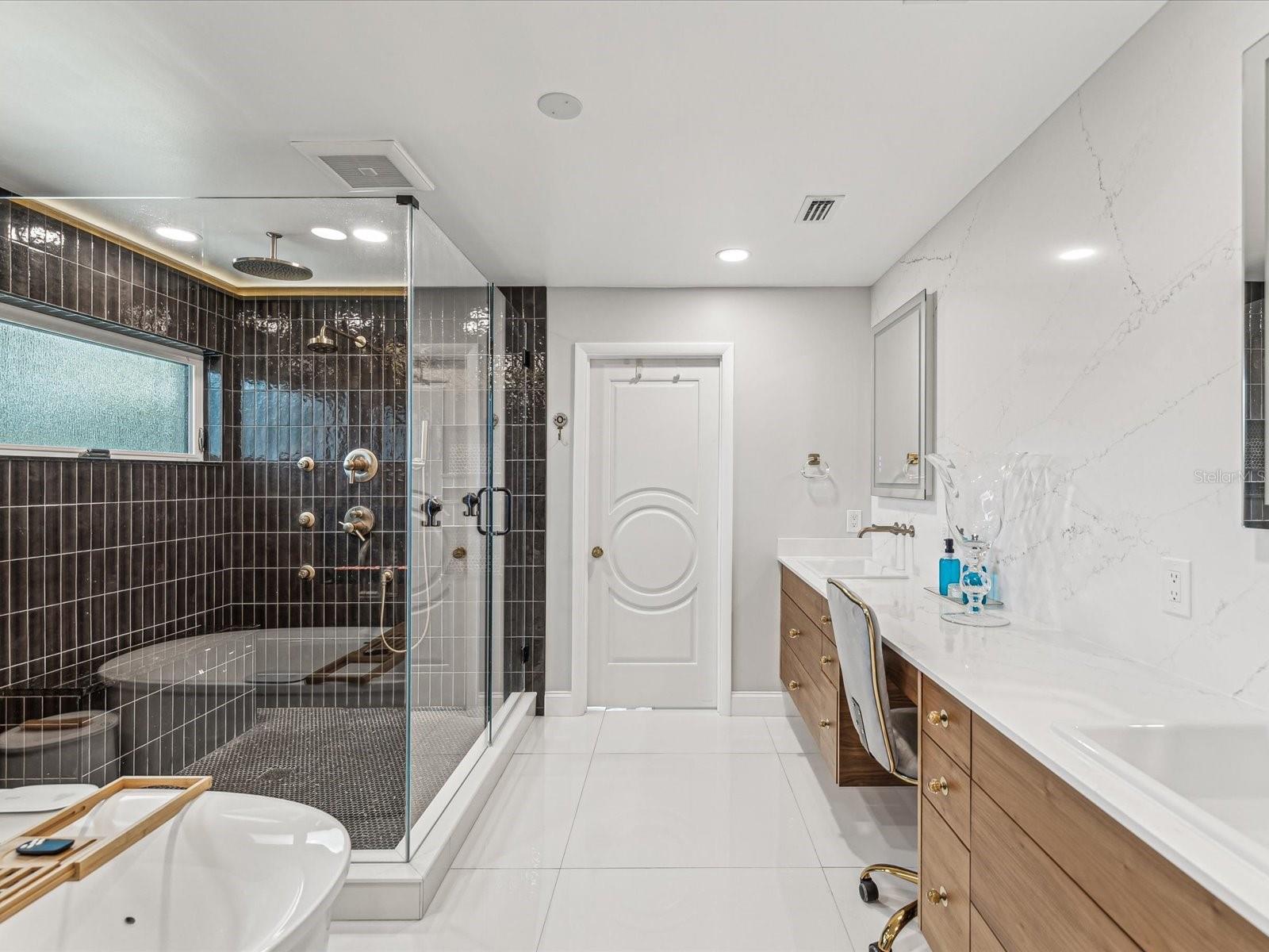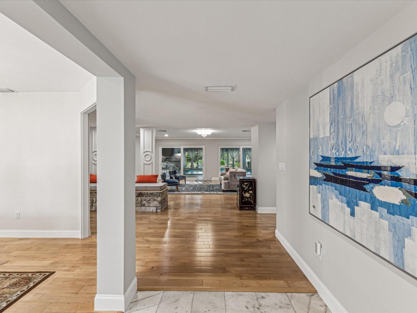 *BRAND NEW PRICE IMPROVEMENT WITH SELLERS OFFERING ASSUMABLE MORTGAGE AT A VERY LOW INTEREST RATE OF 2.85.* Priced at appraisal price! This stunning Mid-Century Modern architectural style home offers 4 bedrooms, 4 bathrooms and sprawls across 5,673 square feet of pure luxury! THIS PROPERTY DID NOT FLOOD during recent storms. It offers extra reassurance with a GENERAC WHOLE HOUSE GENERATOR, hurricane shutters and a hurricane reinforced garage door. All newer systems including 3 HVAC's (2024 & 2017), 2 TANKLESS WATER HEATERS (2019), TILE ROOF (2014 with 50 year warranty), ELECTRICAL & PLUMBING UPDATED DURING RENOVATIONS, WATER SOFTNER (2022) and DOUBLE PANE SLIDERS & WINDOWS (2024, 2021, 2018). Most systems come with transferrable warranty. Situated on an oversized 24,668 square foot corner lot, this property offers ample space with potential for future building opportunities. Step inside to discover beautifully renovated modern amenities & a formal living space that opens to the indoor pool. This is saltwater, heated pool opens to all interior rooms of the house. This pool can be filled and be a pickle ball court, gym or whatever you can imagine! There is also a new outdoor kitchen/ grill in the pool room. Need even more living space? It is possible to fill the indoor pool as it is a climate controlled room. The home is adorned with luxurious touches, such as hardwood flooring, plantation shutters, ALL CALIFORNIA CLOSETS and Italian chandeliers original to the home. The home is also beautified with the rare and famous Ruth Richmond door knobs. As one of the first female architects of the 1960's and designer to Jackie Kennedy Onassis, Ruth Richmond designed the rare lucite doorknobs with gold infusions. These are found throughout the home and give a "Mad Men" mid-century modern jolt of glamour! Each of the 4 bathrooms have been completely updated, with the primary boasting HEATED FLOORS and spa-like features. The primary suite is a true retreat with a cozy fireplace, jacuzzi therapy tub, and motorized lighted curtains that open to reveal the sparkling pool. You'll love the convenience of a built-in bar, LG STYLER & SANITIZER as an alternative to dry cleaning and a dedicated washer/dryer in the closet. The primary bathroom is a haven with two rain showers and custom, elegant fixtures. Outdoors, the possibilities are endless with a hot tub, treehouse, and ample parking, including a spacious 2 car garage. Each bedroom has it's own charm, with one bedroom featuring a vibrant Lilly Pulitzer vibe and another serving as a creative craft room that can be converted back to a bedroom or flex space/office. xxThere is so much more to explore in this exceptional home—call today to discover all the unique details and make this dream home yours!