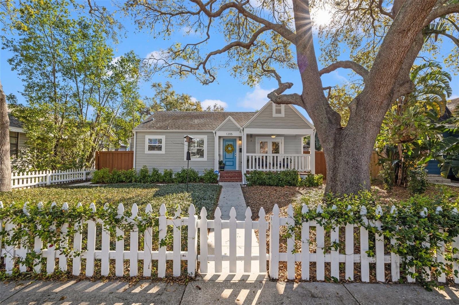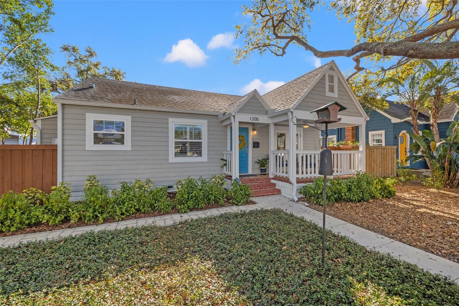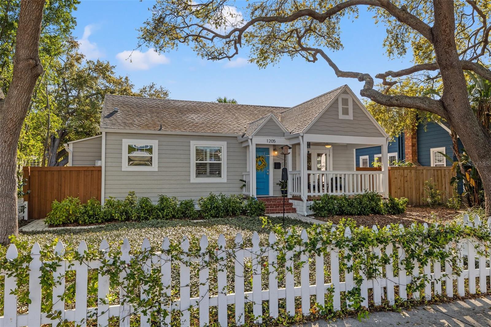 Welcome to 1205 13th Street North, the perfect blend of modern, timeless charm, and convenience in one of St. Petersburg's most sought-after neighborhoods. This completely updated bungalow, is deceiving to the eye offering over 2,100 SF of living space, 3 bedrooms, 2.5 bathrooms, plus a loft, and detached 1 car garage. Step inside to find high, vaulted ceilings in the living space, beautiful beams & molding, engineered hardwood flooring, and dual french doors in the living room to access the covered front porch and backyard entertaining space. Completely remodeled (and expanded) in 2016, this home is turnkey. Everything from the roof to the flooring to the windows were all replaced in 2014-2016. The kitchen features stainless steel appliances, granite counters, working island (2021), built-in pantry shelving (2022), and breakfast nook. The backyard space is a highlight of this home, featuring an all new travertine paver patio and pergola with electrical (2023) that is perfect for hosting guests. Plus, a fully fenced yard with eco-friendly and native plants that consists of a canopy of mature shade trees. There is also plenty of room to add a pool. The front yard consists of low water use groundcover plants (no mower needed) and qualifies as a North American Butterfly Association verified garden. Additional features include indoor laundry, loft area for reading or office space, Jack & Jill bath between bedroom 1 & 2, plantation shutters and window treatments, natural gas in the kitchen and outdoor patio area for grill hookup (2021), water softener (2022), tankless hot water heater (2022), new wood fence with multiple access points to the alleyway (2025), detached single car garage with access to the alley, and new water main from street to the house (2022). Located in the heart of Euclid/St. Paul, you are steps to vibrant 9th Street restaurants and shops, and just minutes to everything vibrant downtown St. Pete has to offer- world class restaurants, museums, waterfront parks, and more. This home is located in a NON-FLOOD and NON-EVACUATION zone.