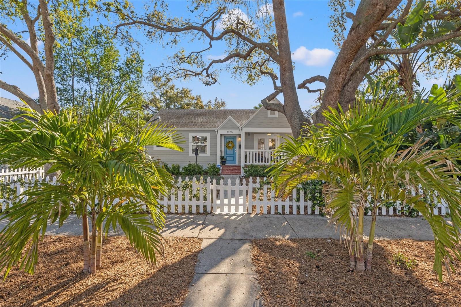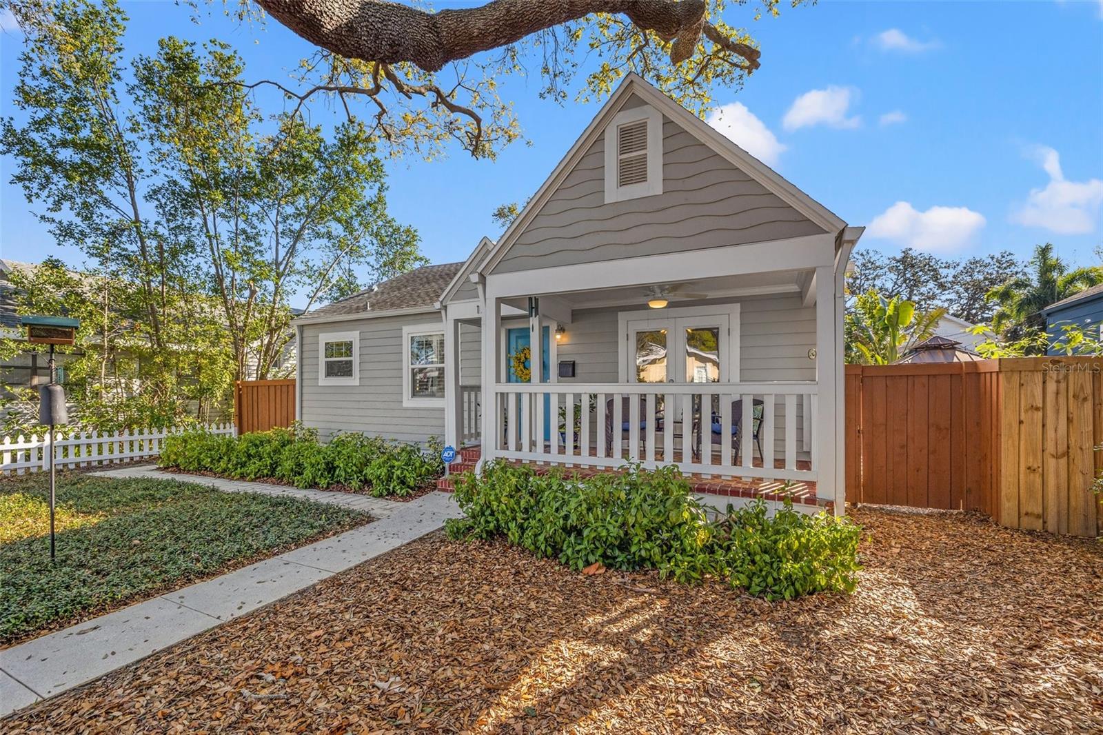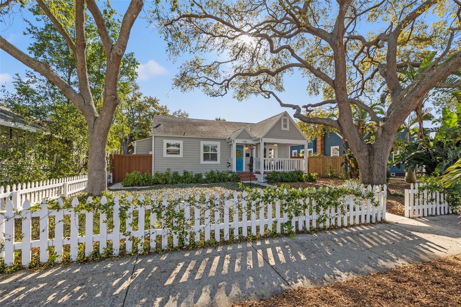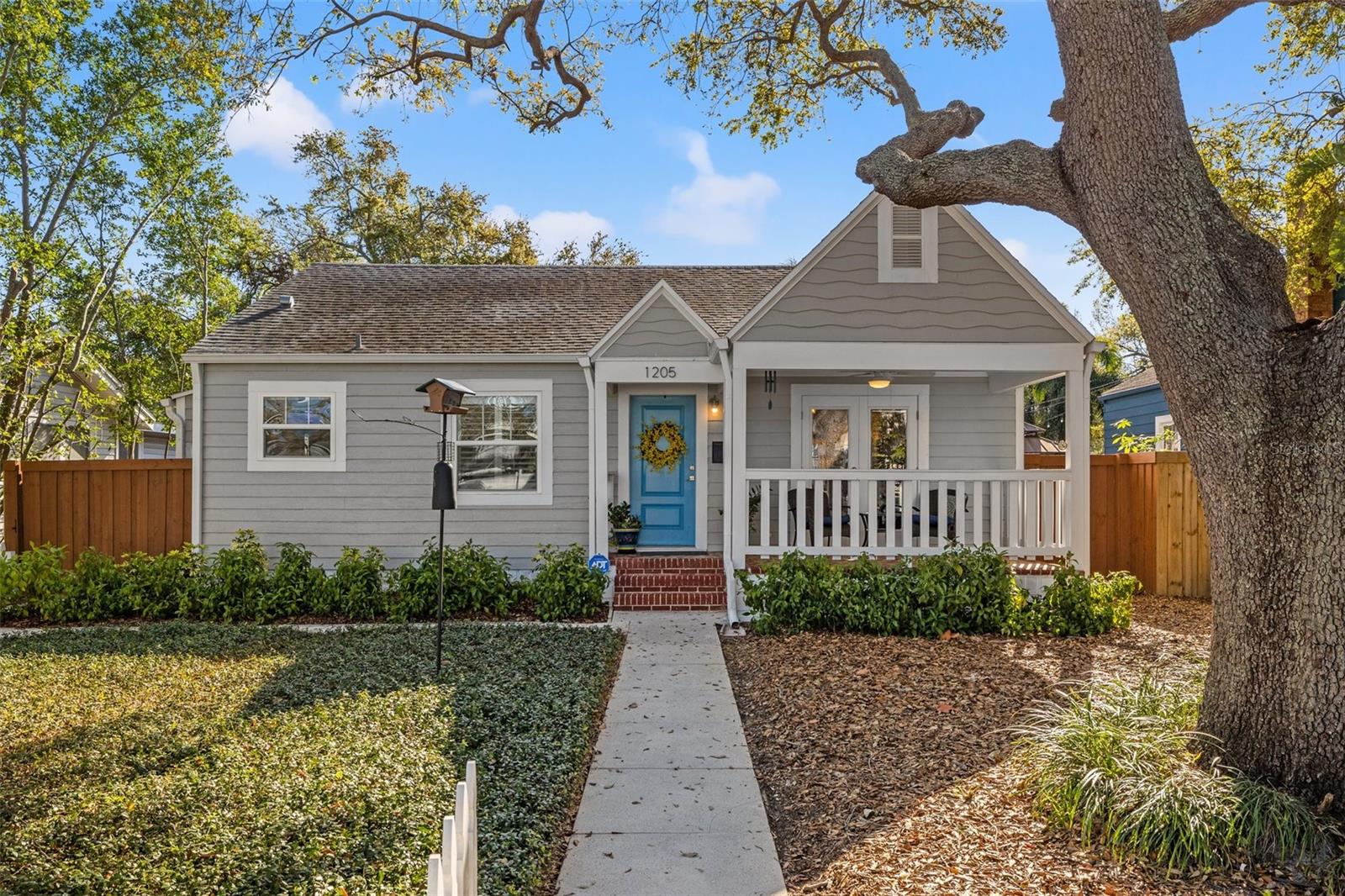Welcome to 1205 13th Street North, the perfect blend of modern, timeless charm, and convenience in one of St. Petersburg's most sought-after neighborhoods. This completely updated bungalow, is deceiving to the eye offering over 2,100 SF of living space, 3 bedrooms, 2.5 bathrooms, plus a loft, and detached 1 car garage. Step inside to find high, vaulted ceilings in the living space, beautiful beams & molding, engineered hardwood flooring, and dual french doors in the living room to access the covered front porch and backyard entertaining space. Completely remodeled (and expanded) in 2016, this home is turnkey. Everything from the roof to the flooring to the windows were all replaced in 2014-2016. The kitchen features stainless steel appliances, granite counters, working island (2021), built-in pantry shelving (2022), and breakfast nook. The backyard space is a highlight of this home, featuring an all new travertine paver patio and pergola with electrical (2023) that is perfect for hosting guests. Plus, a fully fenced yard with eco-friendly and native plants that consists of a canopy of mature shade trees. There is also plenty of room to add a pool. The front yard consists of low water use groundcover plants (no mower needed) and qualifies as a North American Butterfly Association verified garden. Additional features include indoor laundry, loft area for reading or office space, Jack & Jill bath between bedroom 1 & 2, plantation shutters and window treatments, natural gas in the kitchen and outdoor patio area for grill hookup (2021), water softener (2022), tankless hot water heater (2022), new wood fence with multiple access points to the alleyway (2025), detached single car garage with access to the alley, and new water main from street to the house (2022). Located in the heart of Euclid/St. Paul, you are steps to vibrant 9th Street restaurants and shops, and just minutes to everything vibrant downtown St. Pete has to offer- world class restaurants, museums, waterfront parks, and more. This home is located in a NON-FLOOD and NON-EVACUATION zone.