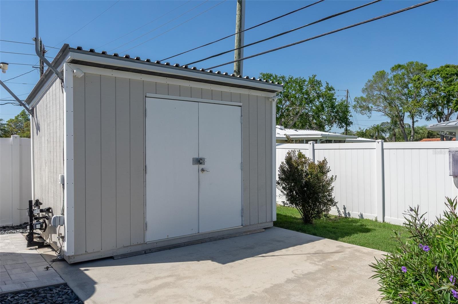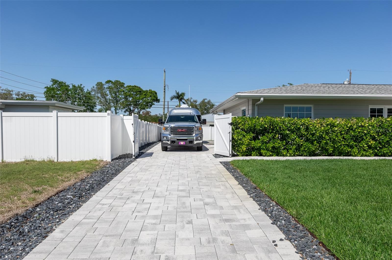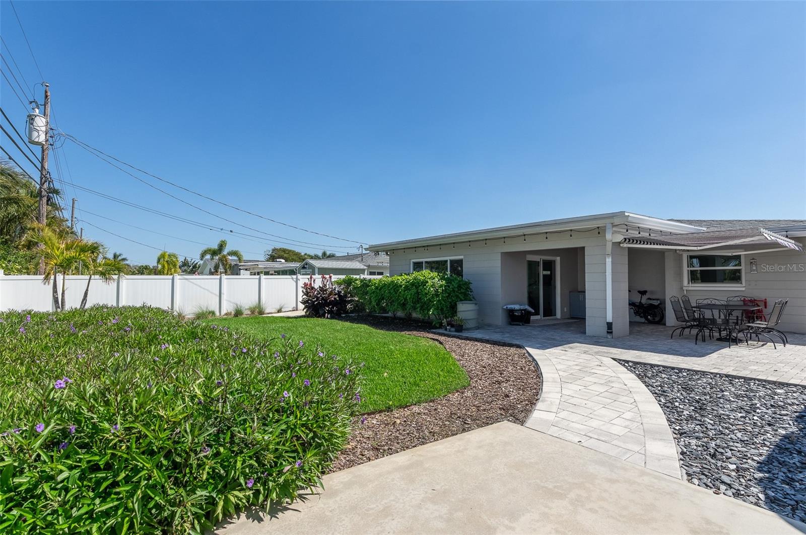 This remodeled home boasts a true testament to meticulous craftmanship and thoughtful design. As you approach, there are dual paver driveways, one extending through a double gate complete with a convenient 50 amp plug for your RV or boat. The meticulously landscaped yard creates the curb appeal that sets the tone for what lies within. Step inside to an open-concept floor plan where natural light radiates onto the spacious living area. Kitchen features include custom concrete countertops, wood cabinets with lower pull-out shelves, stainless Samsung refrigerator, gas range & stainless hood, farmhouse and sink and kitchen bar which seats four comfortably. LVP flooring throughout the house with and 6” baseboards. Hurricane doors and windows throughout, with Interior doors and door moldings installed in 2021 including closet and pocket doors. The second bedroom has an installed closet factory system. There are custom blinds in all the rooms, including room-darkening in the bedrooms and on the patio door. The second bathroom, like the rest of the home, is finished with impeccable attention to detail, ensuring both style and function. The convenience of an attached garage cannot be overstated, providing secure parking and additional storage solutions. Additional Storage shed in the backyard. Step outside to your personal paradise, where a fenced yard offers privacy and a haven for pets and play. Gutters and downspouts are all around the house with most tied to the French Drain which drains onto 44th Ave. There was minimal water intrusion throughout portions of the home from Helene. Enough to replace flooring and baseboards, but no drywall removal was necessary. A whole-house surge protector was added in 2024. Permits were pulled and closed. The patio is covered, and a sink exists if you want to add an outdoor kitchen. There is retractable awning that extends over the uncovered portion, creating an idyllic setting for al fresco dining or simply enjoying Florida's balmy evenings. Located just 2 miles from the vibrant downtown St. Pete, your new home positions you at the heart of it all. Indulge in the local culture, dining, and entertainment options that are just a stone's throw away. For the outdoor enthusiast, two neighborhood parks with boat ramps and playgrounds offer endless recreation. The Northeast Shopping Center, merely a mile away, caters to all your shopping needs. This home is not just a residence; it is a lifestyle. A place where every detail has been considered for your utmost comfort and enjoyment. Seller concessions will be considered.
