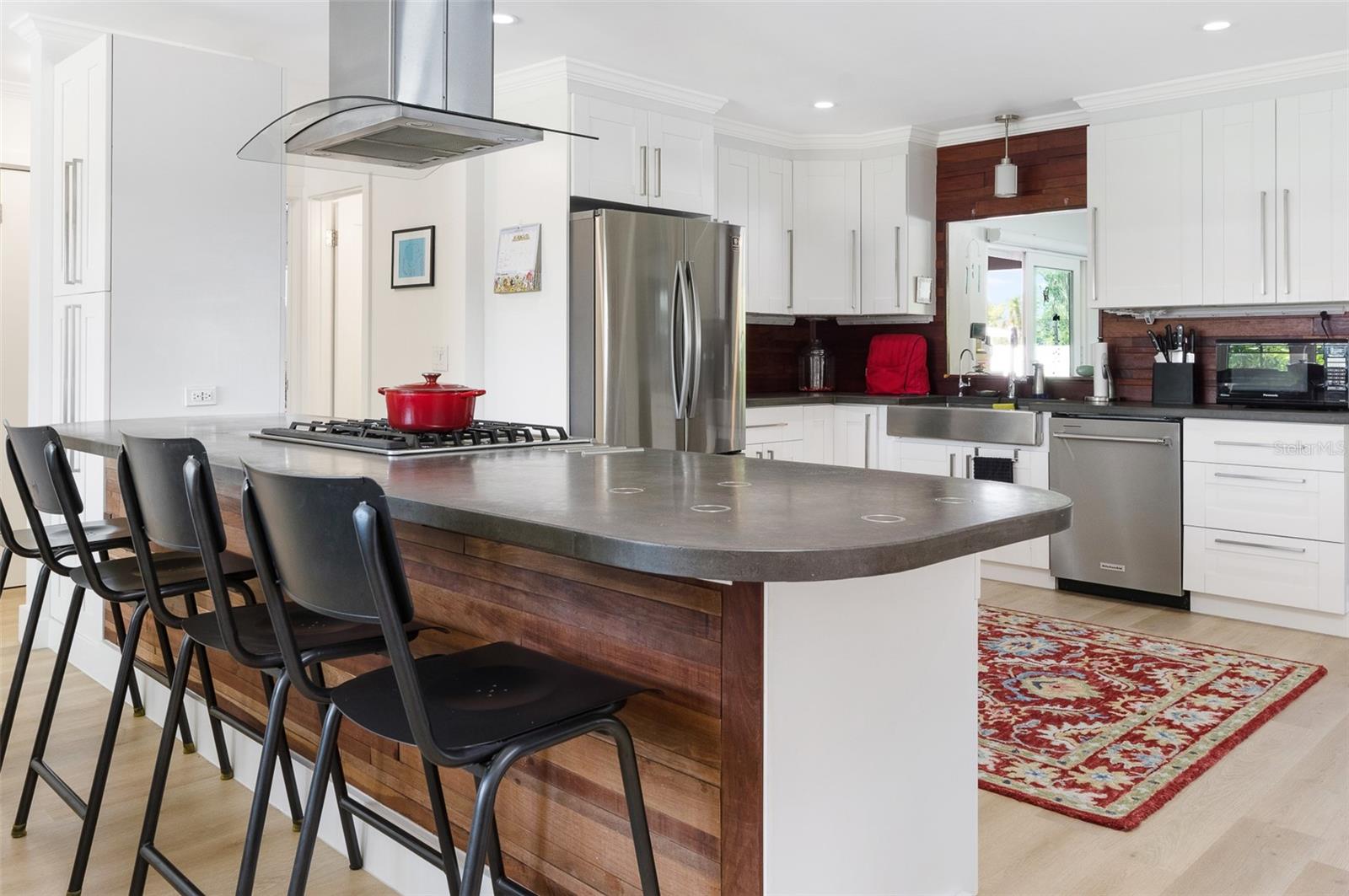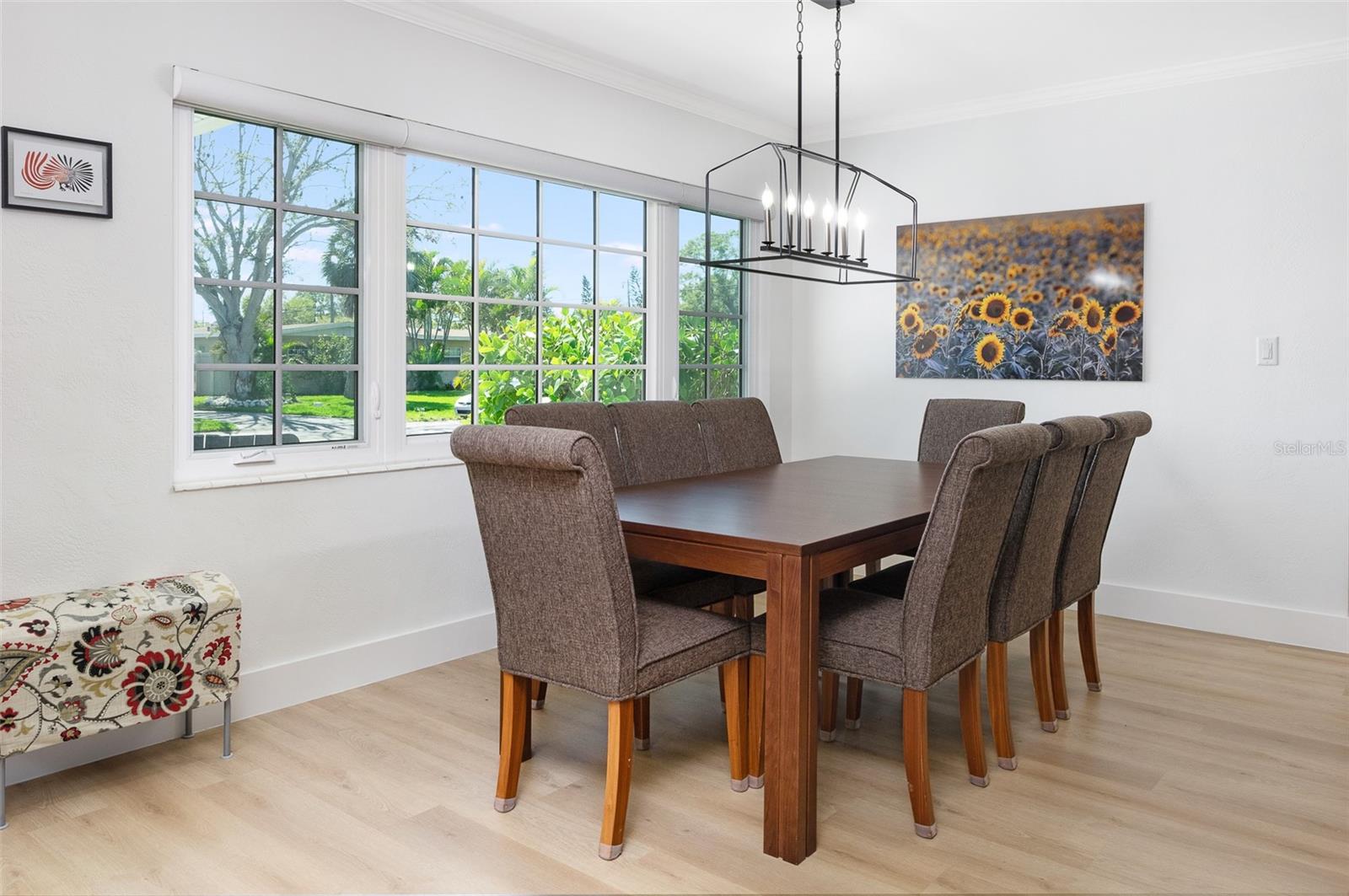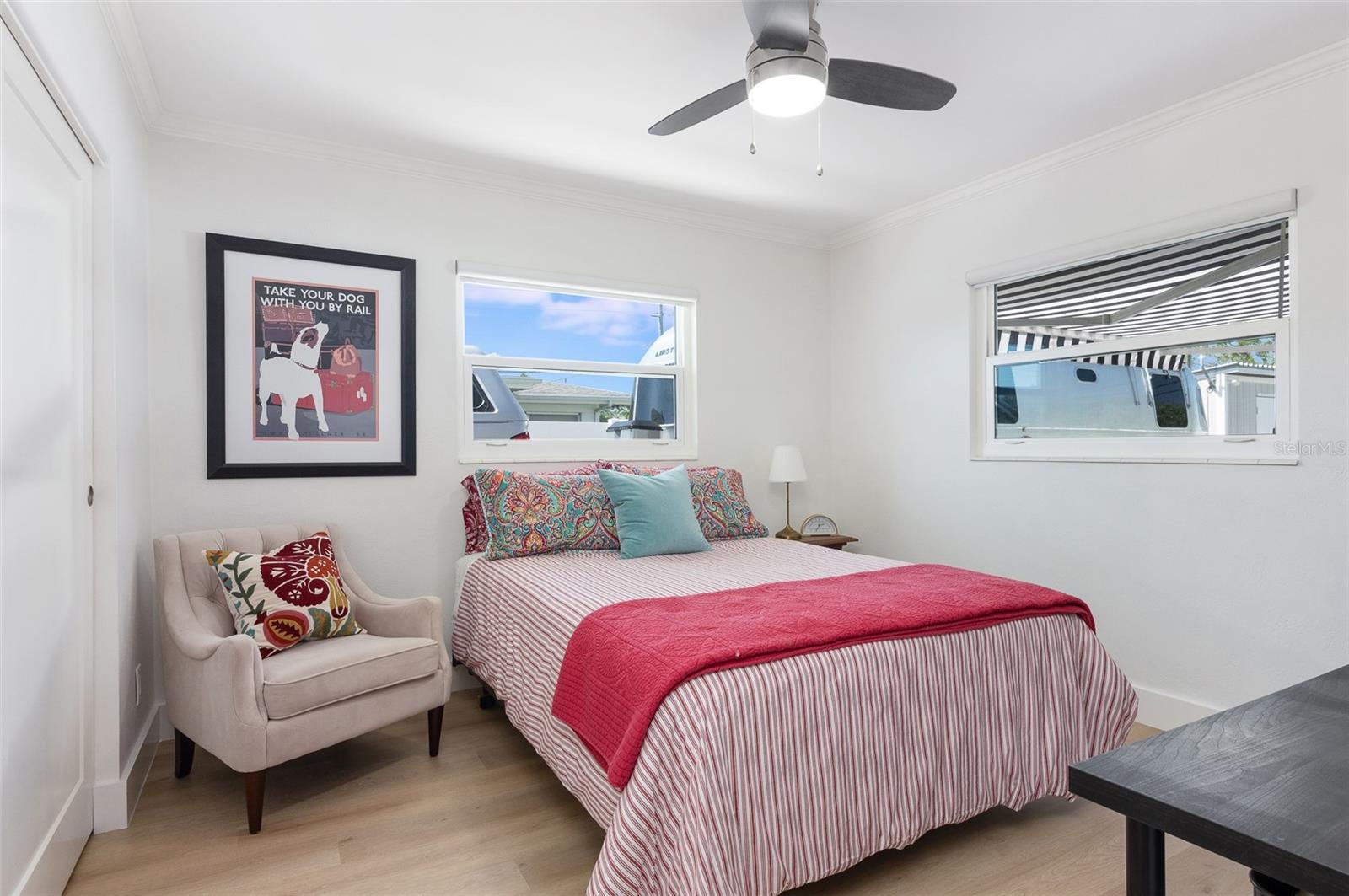 This remodeled home boasts a true testament to meticulous craftmanship and thoughtful design. As you approach, there are dual paver driveways, one extending through a double gate complete with a convenient 50 amp plug for your RV or boat. The meticulously landscaped yard creates the curb appeal that sets the tone for what lies within. Step inside to an open-concept floor plan where natural light radiates onto the spacious living area. Kitchen features include custom concrete countertops, wood cabinets with lower pull-out shelves, stainless Samsung refrigerator, gas range & stainless hood, farmhouse and sink and kitchen bar which seats four comfortably. LVP flooring throughout the house with and 6” baseboards. Hurricane doors and windows throughout, with Interior doors and door moldings installed in 2021 including closet and pocket doors. The second bedroom has an installed closet factory system. There are custom blinds in all the rooms, including room-darkening in the bedrooms and on the patio door. The second bathroom, like the rest of the home, is finished with impeccable attention to detail, ensuring both style and function. The convenience of an attached garage cannot be overstated, providing secure parking and additional storage solutions. Additional Storage shed in the backyard. Step outside to your personal paradise, where a fenced yard offers privacy and a haven for pets and play. Gutters and downspouts are all around the house with most tied to the French Drain which drains onto 44th Ave. There was minimal water intrusion throughout portions of the home from Helene. Enough to replace flooring and baseboards, but no drywall removal was necessary. A whole-house surge protector was added in 2024. Permits were pulled and closed. The patio is covered, and a sink exists if you want to add an outdoor kitchen. There is retractable awning that extends over the uncovered portion, creating an idyllic setting for al fresco dining or simply enjoying Florida's balmy evenings. Located just 2 miles from the vibrant downtown St. Pete, your new home positions you at the heart of it all. Indulge in the local culture, dining, and entertainment options that are just a stone's throw away. For the outdoor enthusiast, two neighborhood parks with boat ramps and playgrounds offer endless recreation. The Northeast Shopping Center, merely a mile away, caters to all your shopping needs. This home is not just a residence; it is a lifestyle. A place where every detail has been considered for your utmost comfort and enjoyment. Seller concessions will be considered.