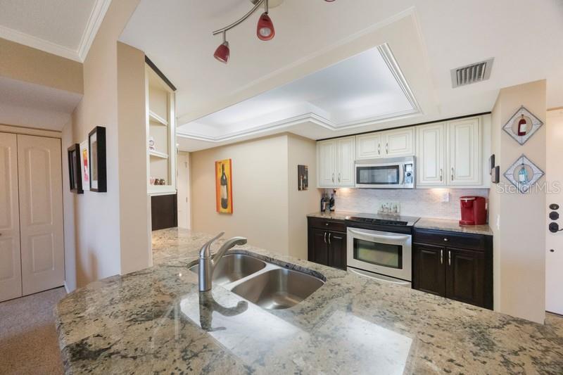 Enjoy The Tropical Paradise of Playa Econdida. Custom cabinetry, granite countertops, stainless appliances and custom lighting make up this Chef's kitchen. Large living room / dining room combo has double sliding glass doors leading to a super large 40ft. balcony overlooking Isla Del Sol's golf course and a small view of Boca Ciega Bay. The spacious primary suite has a spa type ensuite bath with a stunning walk-in shower, large walk-in closets and more. Primary suite also has double sliders leading out to the balcony with beautiful views. The guest bath and guest bedroom are equally matched with spa type bath and large sliders opening to the balcony. Plenty of storage and closet space in the unit plus additional storage closet near the unit. Residents can relax poolside in the heated pool and spa, use the barbeque grilles and onsite fitness center. The community is waterfront and has open views of Boca Ceiga Bay. Unit comes with under-building covered parking. Washer and dryer are located in the unit. Kayak and bicycle storage. Fishing Pier and much more! Close to I-275, Tampa International Airport, Downtown St Petersburg, Fort Desoto Park, Shopping and Medical. Furniture is Optional. Don't wait! Call TODAY!