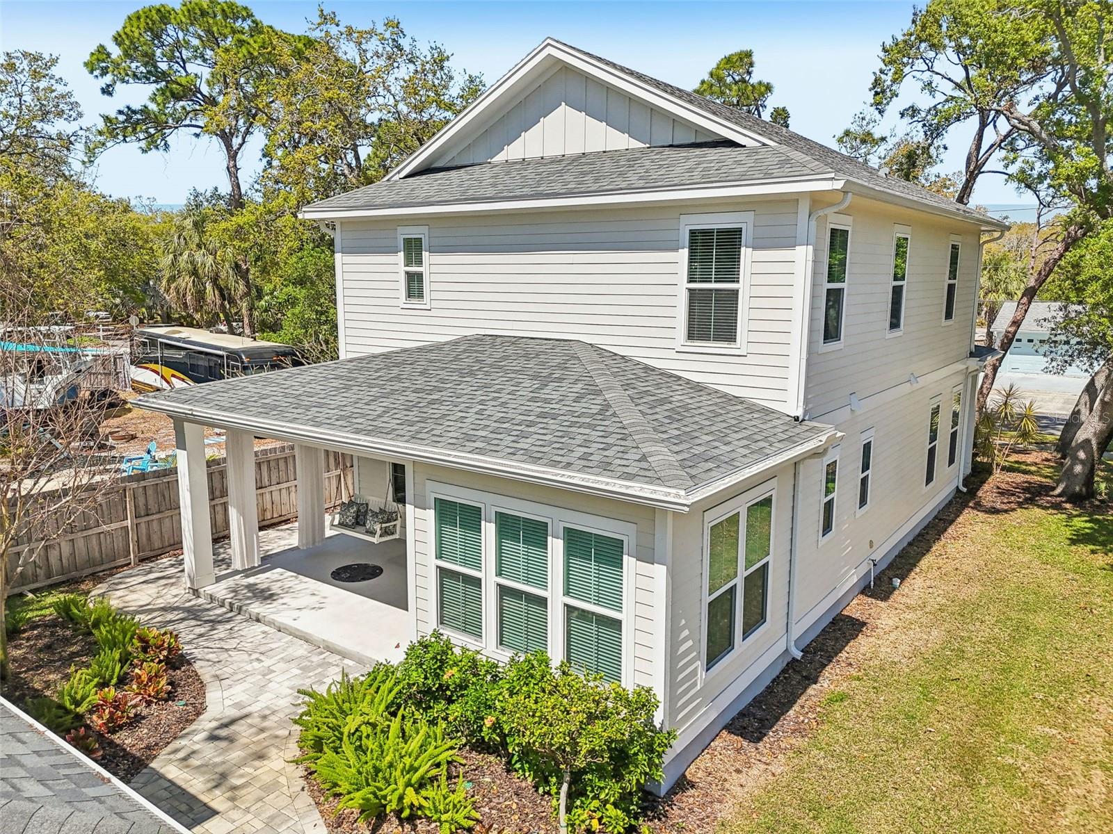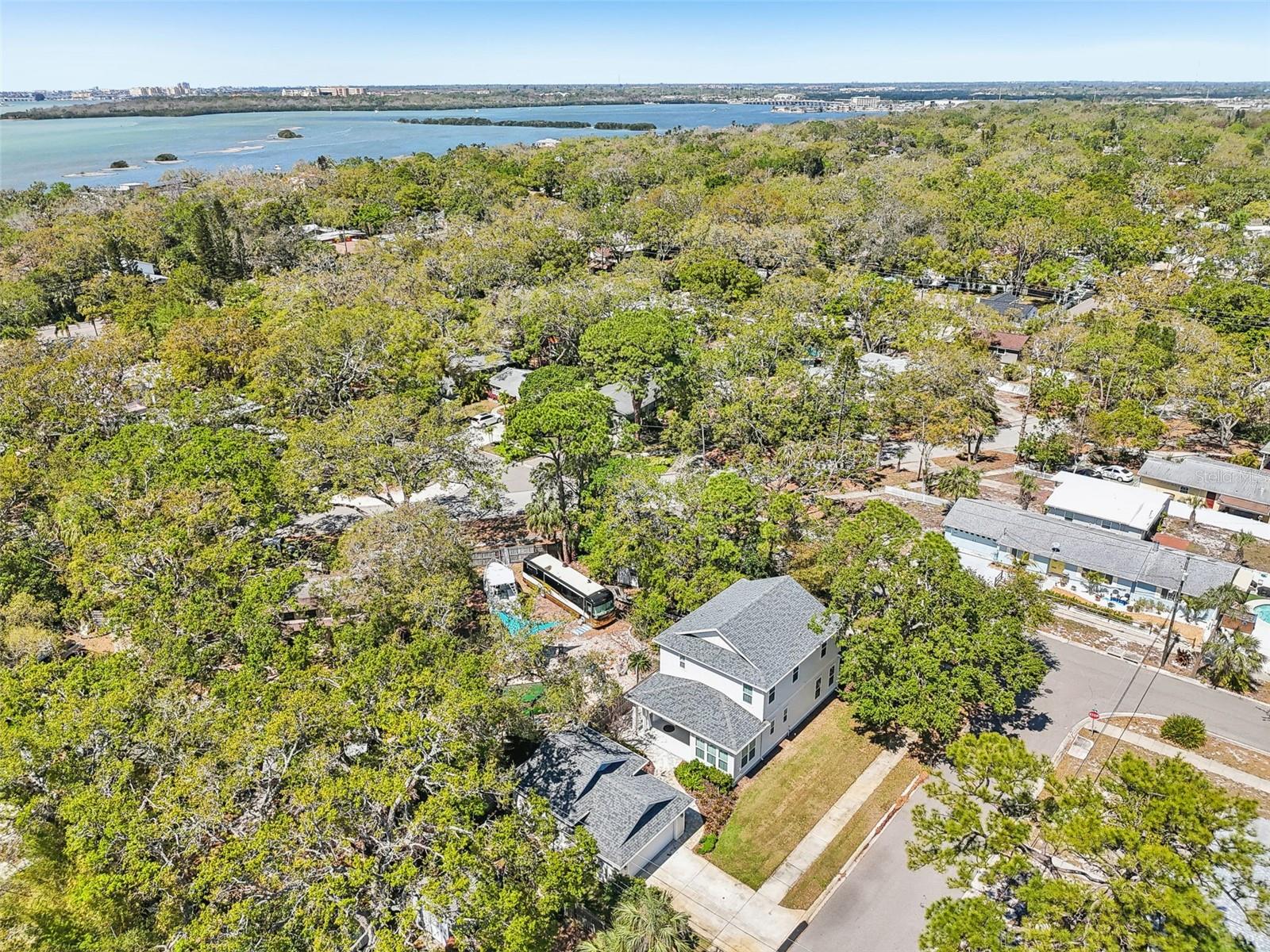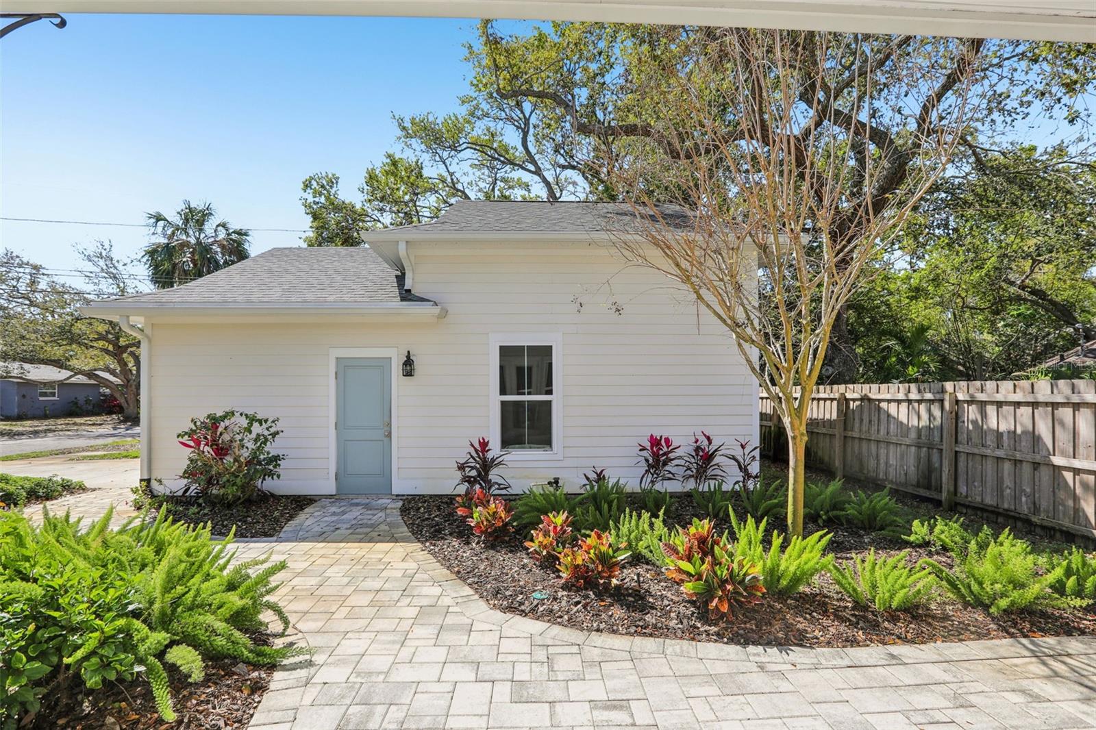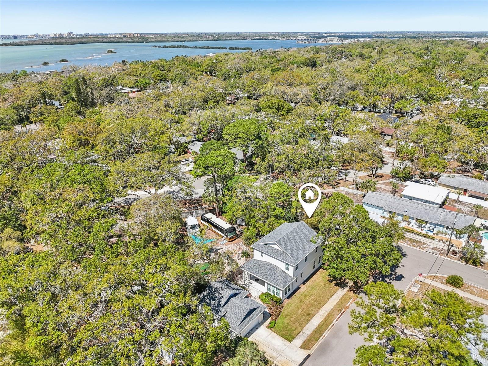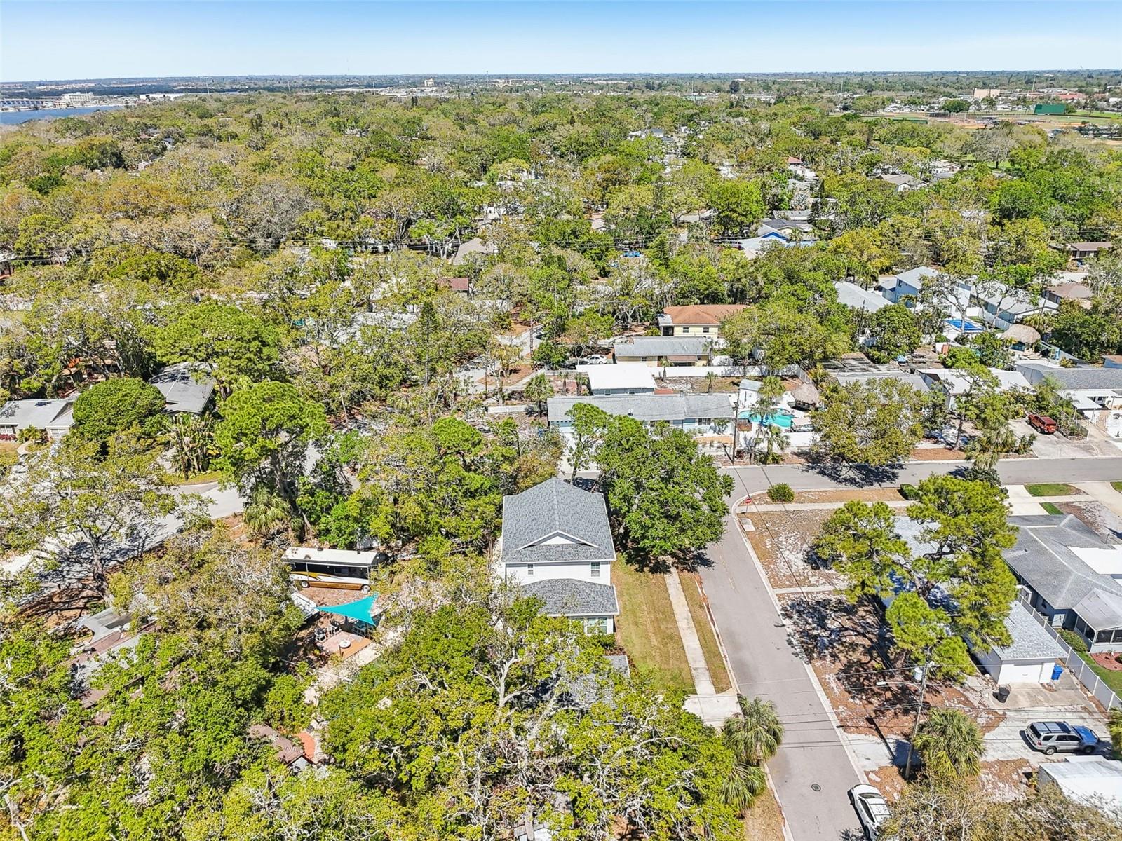 Modern Elegance in Prime Jungle Terrace Location - Welcome to a masterpiece of modern living, crafted by the esteemed Canopy Builders and perfectly positioned on an oversized, tree-lined corner lot in the highly sought-after Jungle Terrace neighborhood. From the moment you arrive, the home’s gas lanterns and wood-accented front porch ceiling create an inviting ambiance that blends timeless charm with contemporary sophistication. Step inside to discover a thoughtfully designed, open-concept floor plan where soaring ceilings, custom trim work, and impact windows flood the interiors with natural light. The heart of the home is the gourmet kitchen, a chef’s dream featuring quartz countertops, soft-close white shaker cabinetry, premium stainless steel appliances, and a gas cooktop—perfect for crafting culinary delights. The adjoining great room and dining area seamlessly connect to an expansive covered back porch, elegantly finished with wood ceilings—ideal for effortless indoor-outdoor entertaining. The first floor is designed for versatility, offering a private office and a guest bedroom with a full bathroom, providing flexibility for remote work, visiting guests, or multi-generational living. Upstairs, the primary suite is a luxurious retreat, showcasing a spa-inspired bathroom with a large walk-in shower, featuring a rainfall shower head and movable wand for a truly indulgent experience. The expansive second bedroom—originally designed as two separate rooms—has been expertly combined to create a generous and adaptable space. For those desiring additional bedrooms, the original builder’s plans are available for an easy reconfiguration. This level is completed by a beautifully appointed full bathroom, and a conveniently located laundry room for everyday ease. For automotive enthusiasts, the garage is a standout feature, thoughtfully equipped with a built-in car lift—perfect for additional vehicle storage, hobby projects, or maximizing space. Additionally, a newer well has offset the water bill from around $1200/mo to $200 for the current owner, offering more savings and efficiency. Enjoy the perfect balance of tranquility and convenience in Jungle Terrace, just minutes from Walter Fuller Park, Azalea Park, and Tyrone Square. Local dining, shopping, and St. Pete’s pristine beaches are all within easy reach, while the neighborhood offers a peaceful, family-friendly atmosphere. This is more than a home—it's a statement of refined living. Experience the best of St. Petersburg, where timeless design meets modern luxury. Schedule your private showing today!