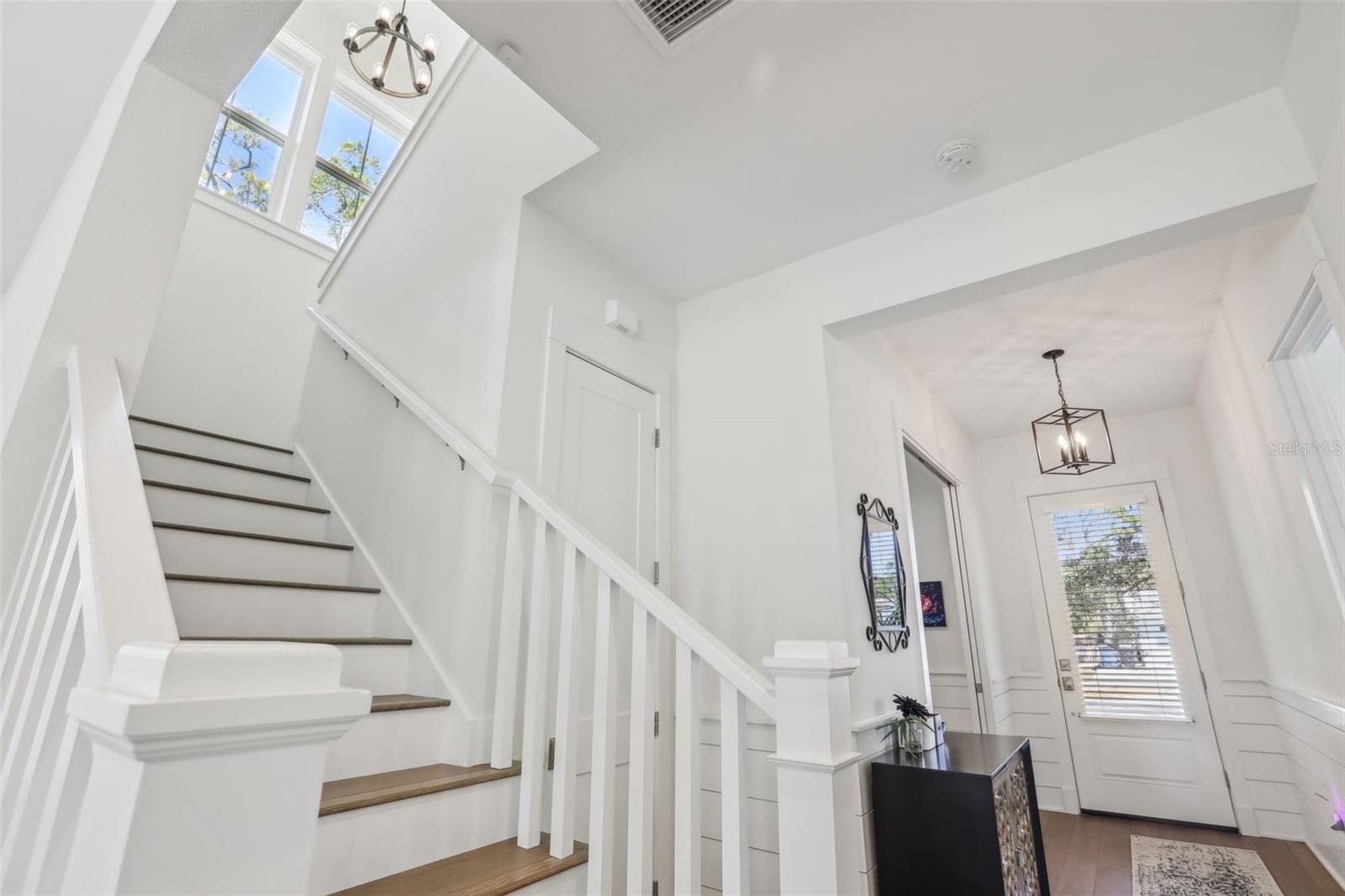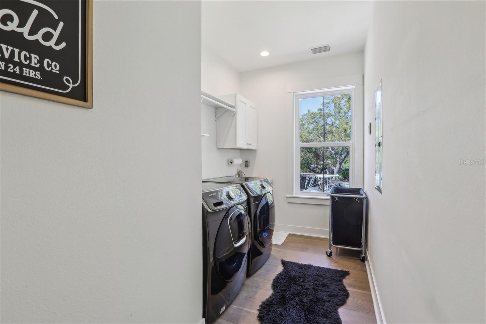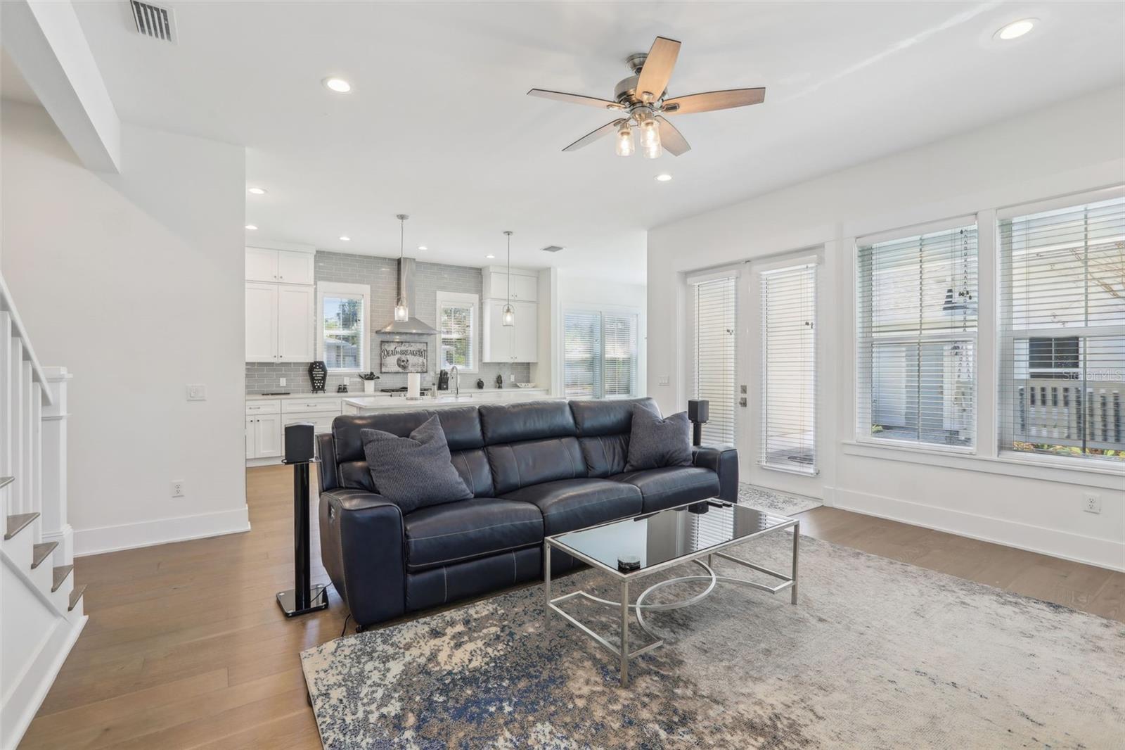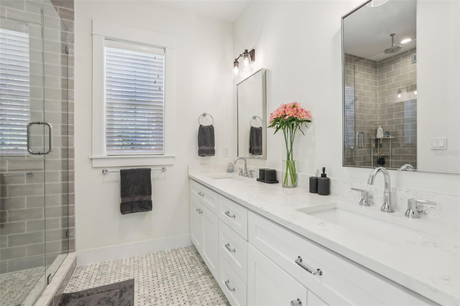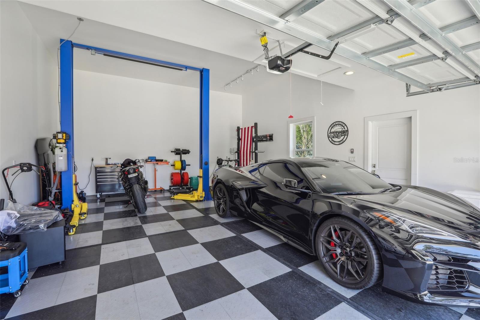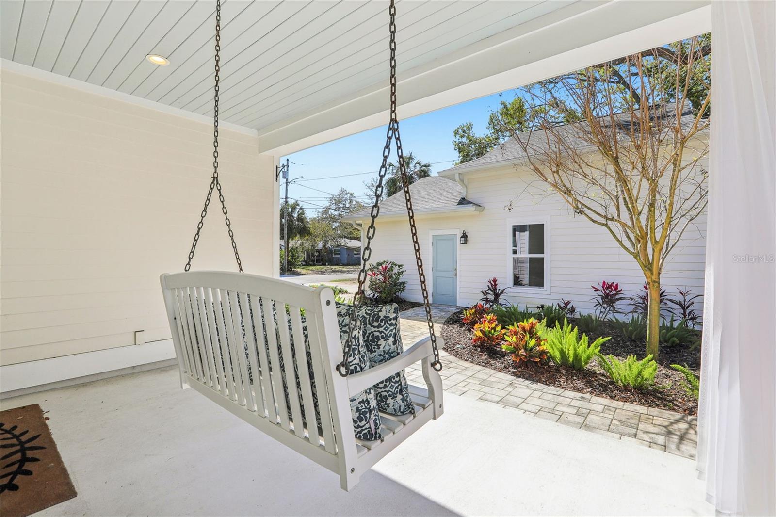 Modern Elegance in Prime Jungle Terrace Location - Welcome to a masterpiece of modern living, crafted by the esteemed Canopy Builders and perfectly positioned on an oversized, tree-lined corner lot in the highly sought-after Jungle Terrace neighborhood. From the moment you arrive, the home’s gas lanterns and wood-accented front porch ceiling create an inviting ambiance that blends timeless charm with contemporary sophistication. Step inside to discover a thoughtfully designed, open-concept floor plan where soaring ceilings, custom trim work, and impact windows flood the interiors with natural light. The heart of the home is the gourmet kitchen, a chef’s dream featuring quartz countertops, soft-close white shaker cabinetry, premium stainless steel appliances, and a gas cooktop—perfect for crafting culinary delights. The adjoining great room and dining area seamlessly connect to an expansive covered back porch, elegantly finished with wood ceilings—ideal for effortless indoor-outdoor entertaining. The first floor is designed for versatility, offering a private office and a guest bedroom with a full bathroom, providing flexibility for remote work, visiting guests, or multi-generational living. Upstairs, the primary suite is a luxurious retreat, showcasing a spa-inspired bathroom with a large walk-in shower, featuring a rainfall shower head and movable wand for a truly indulgent experience. The expansive second bedroom—originally designed as two separate rooms—has been expertly combined to create a generous and adaptable space. For those desiring additional bedrooms, the original builder’s plans are available for an easy reconfiguration. This level is completed by a beautifully appointed full bathroom, and a conveniently located laundry room for everyday ease. For automotive enthusiasts, the garage is a standout feature, thoughtfully equipped with a built-in car lift—perfect for additional vehicle storage, hobby projects, or maximizing space. Additionally, a newer well has offset the water bill from around $1200/mo to $200 for the current owner, offering more savings and efficiency. Enjoy the perfect balance of tranquility and convenience in Jungle Terrace, just minutes from Walter Fuller Park, Azalea Park, and Tyrone Square. Local dining, shopping, and St. Pete’s pristine beaches are all within easy reach, while the neighborhood offers a peaceful, family-friendly atmosphere. This is more than a home—it's a statement of refined living. Experience the best of St. Petersburg, where timeless design meets modern luxury. Schedule your private showing today!