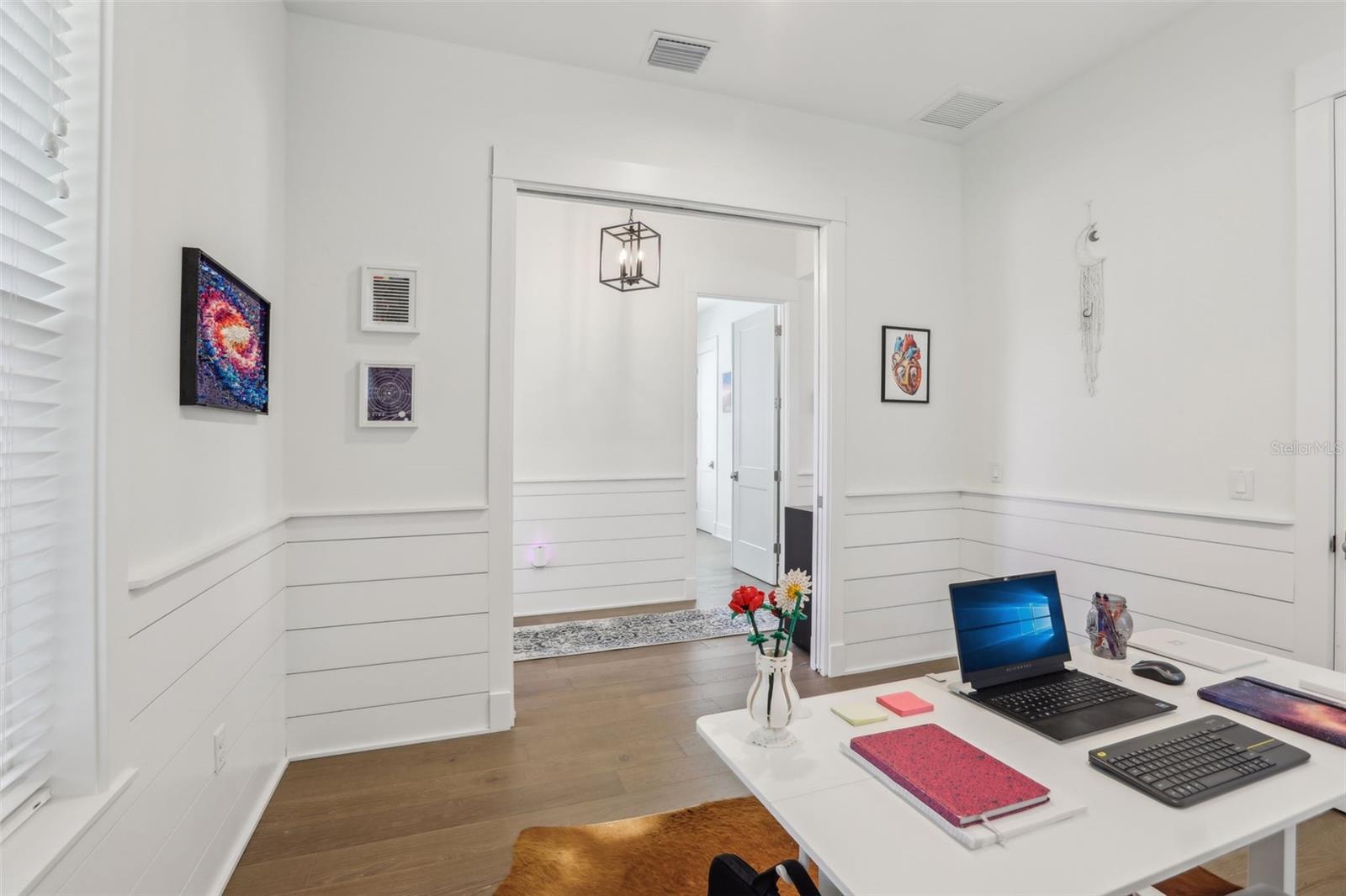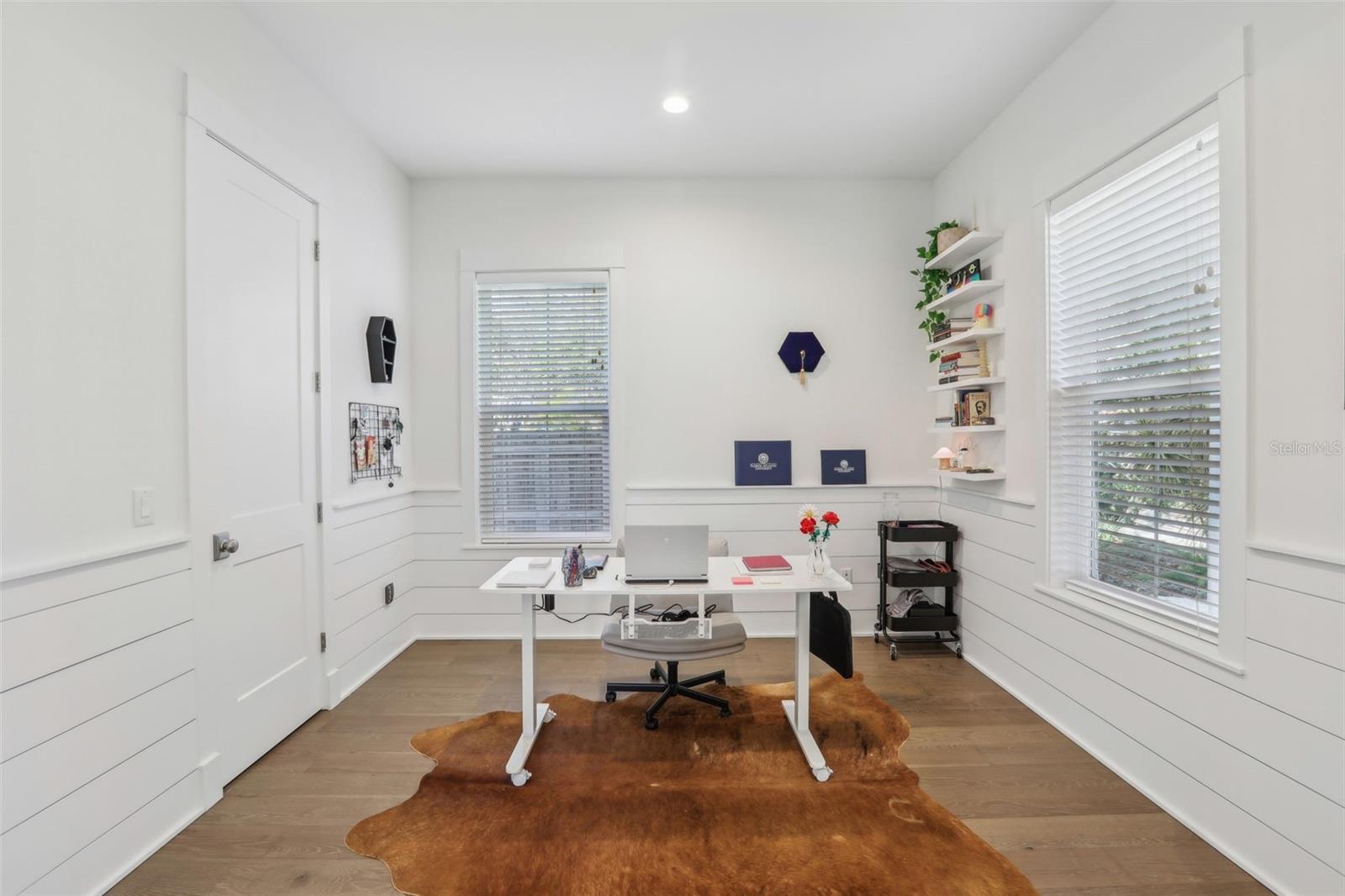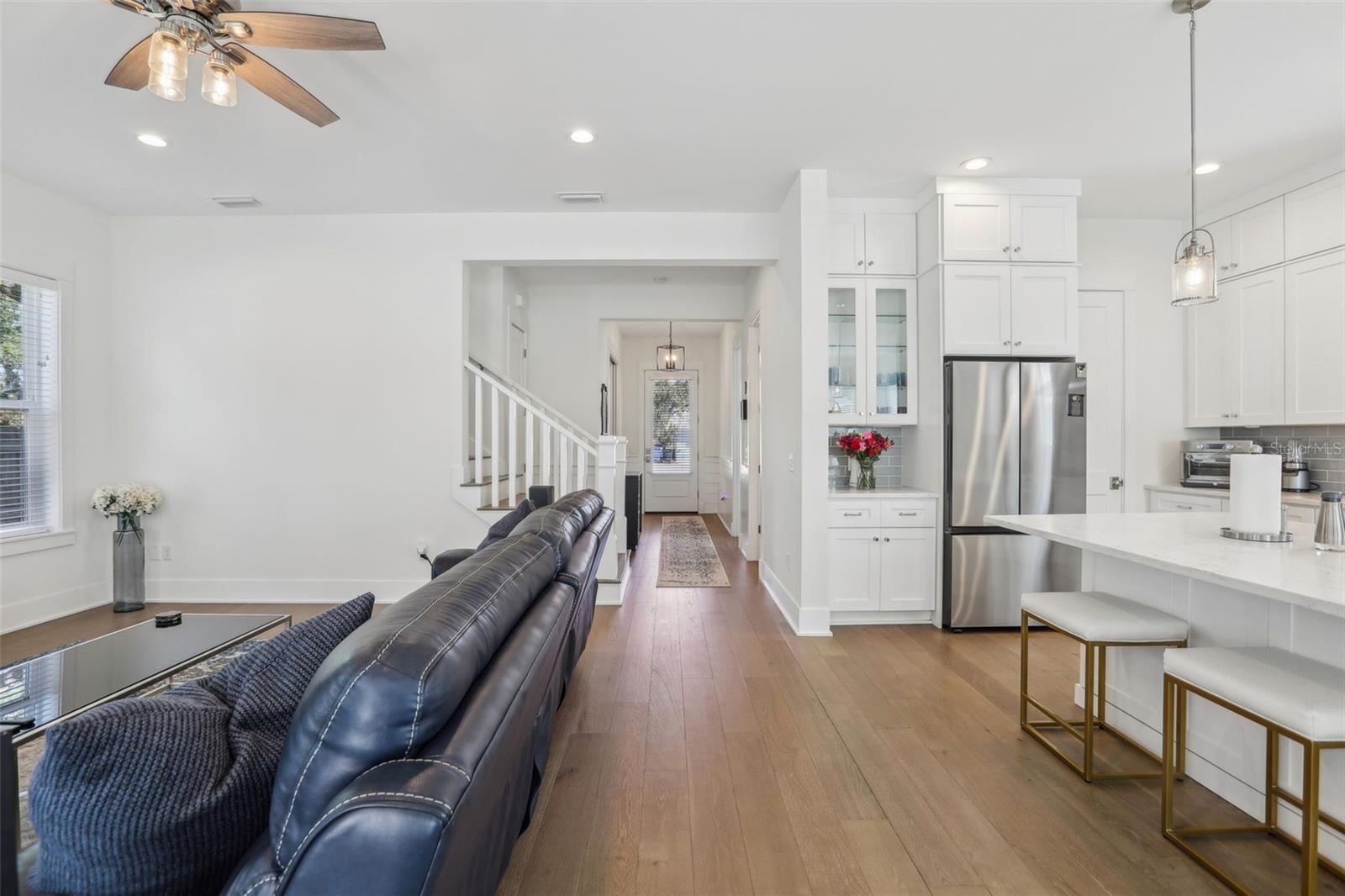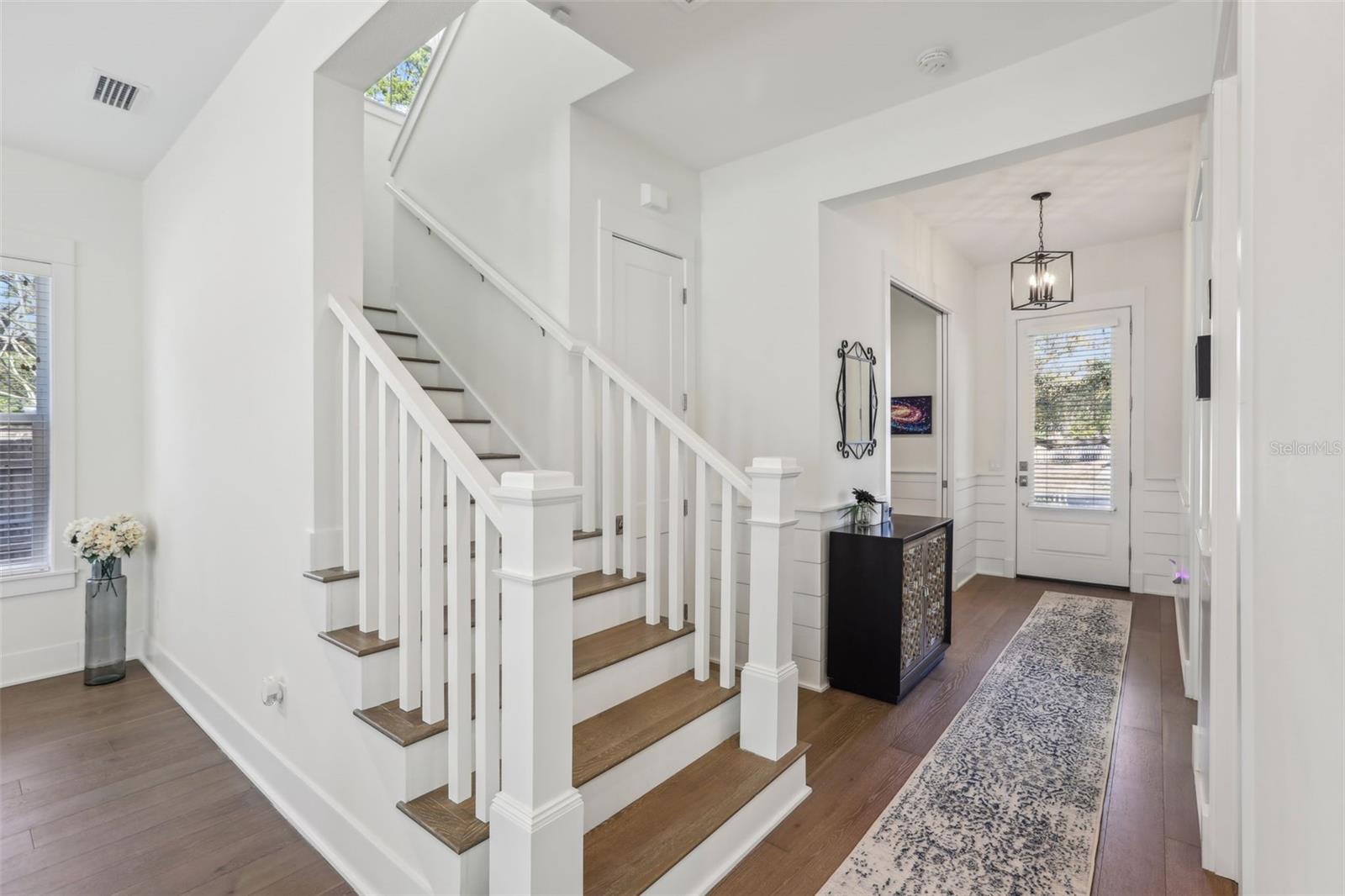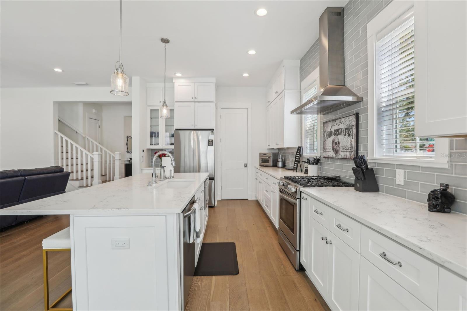 Modern Elegance in Prime Jungle Terrace Location - Welcome to a masterpiece of modern living, crafted by the esteemed Canopy Builders and perfectly positioned on an oversized, tree-lined corner lot in the highly sought-after Jungle Terrace neighborhood. From the moment you arrive, the home’s gas lanterns and wood-accented front porch ceiling create an inviting ambiance that blends timeless charm with contemporary sophistication. Step inside to discover a thoughtfully designed, open-concept floor plan where soaring ceilings, custom trim work, and impact windows flood the interiors with natural light. The heart of the home is the gourmet kitchen, a chef’s dream featuring quartz countertops, soft-close white shaker cabinetry, premium stainless steel appliances, and a gas cooktop—perfect for crafting culinary delights. The adjoining great room and dining area seamlessly connect to an expansive covered back porch, elegantly finished with wood ceilings—ideal for effortless indoor-outdoor entertaining. The first floor is designed for versatility, offering a private office and a guest bedroom with a full bathroom, providing flexibility for remote work, visiting guests, or multi-generational living. Upstairs, the primary suite is a luxurious retreat, showcasing a spa-inspired bathroom with a large walk-in shower, featuring a rainfall shower head and movable wand for a truly indulgent experience. The expansive second bedroom—originally designed as two separate rooms—has been expertly combined to create a generous and adaptable space. For those desiring additional bedrooms, the original builder’s plans are available for an easy reconfiguration. This level is completed by a beautifully appointed full bathroom, and a conveniently located laundry room for everyday ease. For automotive enthusiasts, the garage is a standout feature, thoughtfully equipped with a built-in car lift—perfect for additional vehicle storage, hobby projects, or maximizing space. Additionally, a newer well has offset the water bill from around $1200/mo to $200 for the current owner, offering more savings and efficiency. Enjoy the perfect balance of tranquility and convenience in Jungle Terrace, just minutes from Walter Fuller Park, Azalea Park, and Tyrone Square. Local dining, shopping, and St. Pete’s pristine beaches are all within easy reach, while the neighborhood offers a peaceful, family-friendly atmosphere. This is more than a home—it's a statement of refined living. Experience the best of St. Petersburg, where timeless design meets modern luxury. Schedule your private showing today!