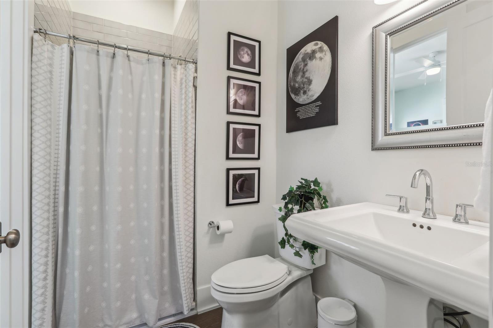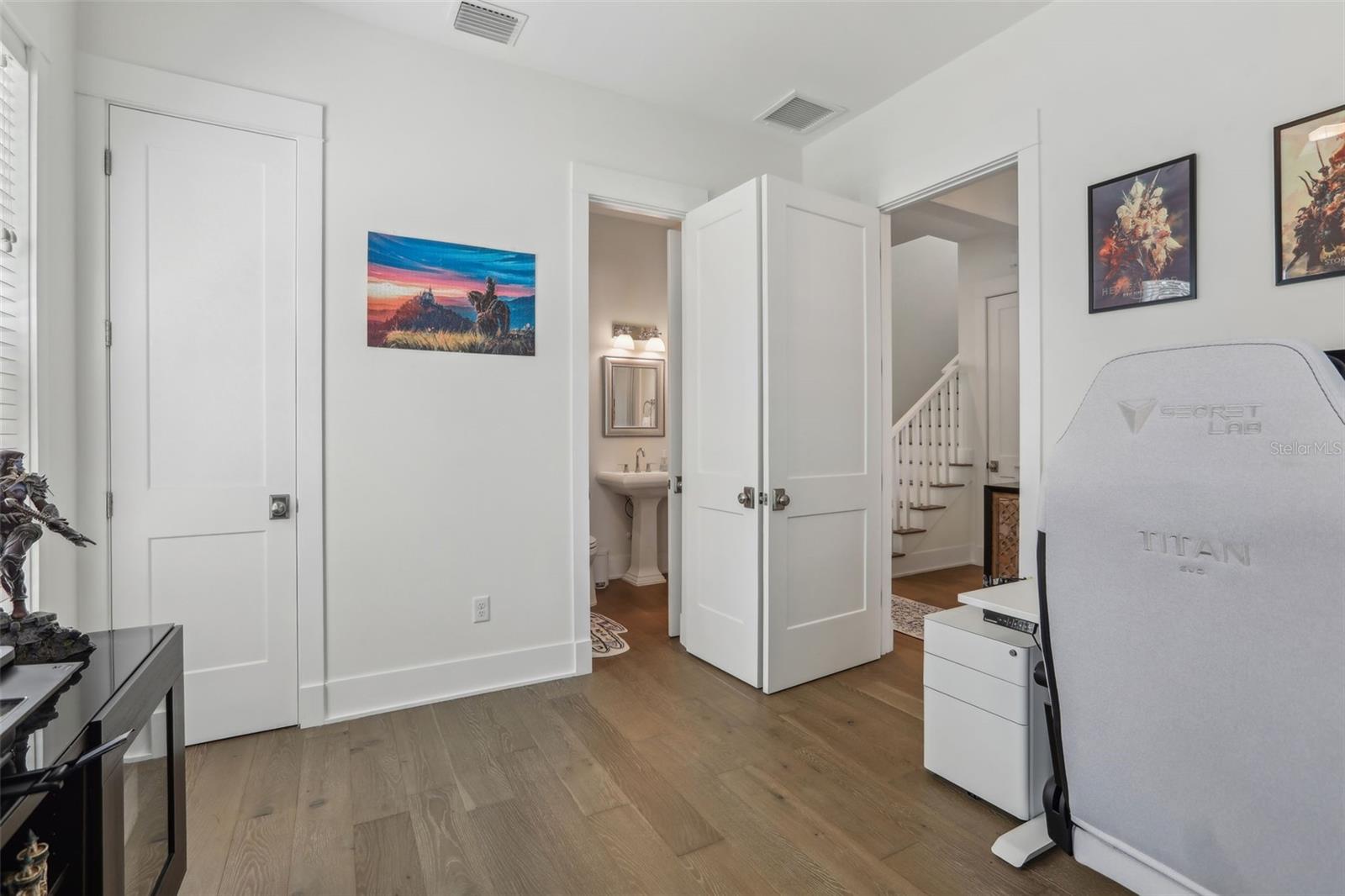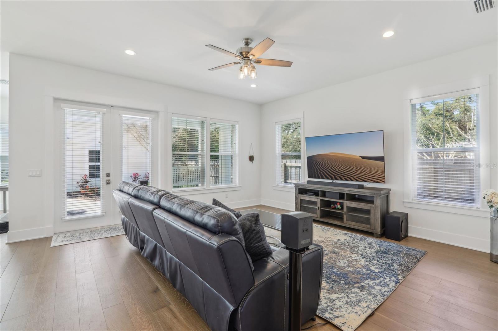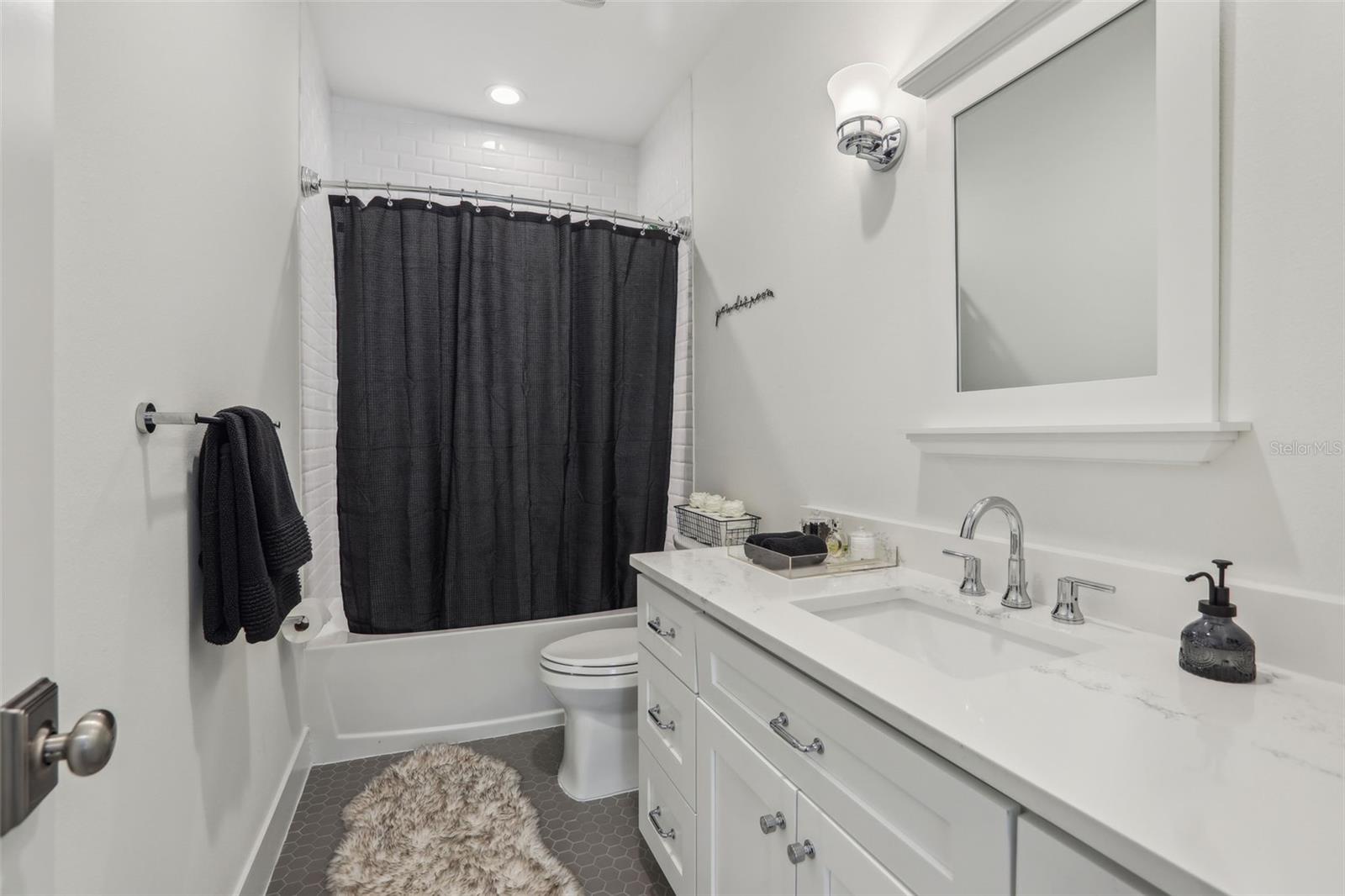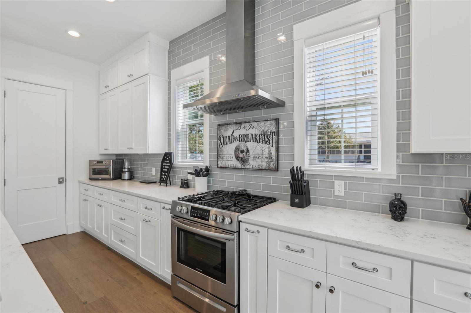 Modern Elegance in Prime Jungle Terrace Location - Welcome to a masterpiece of modern living, crafted by the esteemed Canopy Builders and perfectly positioned on an oversized, tree-lined corner lot in the highly sought-after Jungle Terrace neighborhood. From the moment you arrive, the home’s gas lanterns and wood-accented front porch ceiling create an inviting ambiance that blends timeless charm with contemporary sophistication. Step inside to discover a thoughtfully designed, open-concept floor plan where soaring ceilings, custom trim work, and impact windows flood the interiors with natural light. The heart of the home is the gourmet kitchen, a chef’s dream featuring quartz countertops, soft-close white shaker cabinetry, premium stainless steel appliances, and a gas cooktop—perfect for crafting culinary delights. The adjoining great room and dining area seamlessly connect to an expansive covered back porch, elegantly finished with wood ceilings—ideal for effortless indoor-outdoor entertaining. The first floor is designed for versatility, offering a private office and a guest bedroom with a full bathroom, providing flexibility for remote work, visiting guests, or multi-generational living. Upstairs, the primary suite is a luxurious retreat, showcasing a spa-inspired bathroom with a large walk-in shower, featuring a rainfall shower head and movable wand for a truly indulgent experience. The expansive second bedroom—originally designed as two separate rooms—has been expertly combined to create a generous and adaptable space. For those desiring additional bedrooms, the original builder’s plans are available for an easy reconfiguration. This level is completed by a beautifully appointed full bathroom, and a conveniently located laundry room for everyday ease. For automotive enthusiasts, the garage is a standout feature, thoughtfully equipped with a built-in car lift—perfect for additional vehicle storage, hobby projects, or maximizing space. Additionally, a newer well has offset the water bill from around $1200/mo to $200 for the current owner, offering more savings and efficiency. Enjoy the perfect balance of tranquility and convenience in Jungle Terrace, just minutes from Walter Fuller Park, Azalea Park, and Tyrone Square. Local dining, shopping, and St. Pete’s pristine beaches are all within easy reach, while the neighborhood offers a peaceful, family-friendly atmosphere. This is more than a home—it's a statement of refined living. Experience the best of St. Petersburg, where timeless design meets modern luxury. Schedule your private showing today!