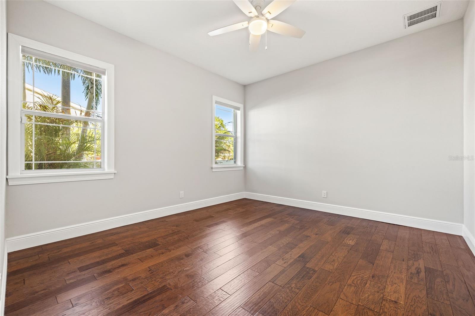 Welcome to this stunning, meticulously crafted 2020 home in the highly sought-after Crescent Heights neighborhood of St. Pete. This spacious 2,491 sq ft residence boasts 4 bedrooms, plus a dedicated office/bonus room, 3 bathrooms, and an oversized 3-car garage – a rare find in a newly constructed home with such generous downstairs living space. As you approach the property, you’ll be greeted by lush landscaping, palm trees, and a beautifully paved front porch, creating an inviting atmosphere. The striking curb appeal is complemented by the elegant aluminum front fencing. Step inside to discover an abundance of natural light, soaring ceilings, crown molding, and engineered hardwood flooring throughout. The open-concept design seamlessly integrates the living, dining, and kitchen spaces, providing a perfect setting for both everyday living and entertainment. The first-floor layout is thoughtfully designed, featuring a spacious primary suite that offers a large walk-in closet, an en-suite bathroom with dual vanities, a curbless walk-in shower, separate washroom and direct access through the french doors to the covered lanai and backyard. The first floor also includes a guest bedroom, an office/bonus room (which could easily serve as a 5th bedroom), a second full bathroom and a large laundry room with cabinetry. The heart of this home is the open, custom kitchen – where the chef of the household will thrive. Featuring beautiful cabinetry, quartz countertops, stainless steel appliances, a microwave drawer, and a spacious walk in pantry, the kitchen is designed for both beauty and functionality. The large breakfast bar and separate island is perfect for casual dining or socializing while preparing meals. The kitchen effortlessly flows into a bright, cozy living room, making it ideal for entertaining guests or enjoying family time. Upstairs, you’ll find two generously sized bedrooms and a full bathroom, offering privacy and space for family or guests. Enjoy the Florida lifestyle with the expansive, private covered lanai – perfect for outdoor dining, grilling, relaxation, or entertaining. The fully fenced backyard offers a peaceful retreat with ample space for creating your own paradise. The oversized three-car garage is a rare feature, with additional ceiling shelves providing plenty of storage and space for your vehicles and hobbies. The home also includes a paved driveway for additional parking. Nestled on a quiet street just blocks from Crescent Lake, this home offers the perfect balance of tranquility and convenience. Additional upgrades include custom window treatments, a rainbird irrigation system, custom pavered on the walkway, front porch, covered lanai and driveway behind the garage. Enjoy easy access to Fresh Market, Trader Joe's, downtown St. Petersburg, beaches, airports, shopping, and dining. Crescent Heights is one of St. Petersburg’s most desirable communities, with quick access to all the best the area has to provide. This home is an absolute must-see. With its luxury finishes, exceptional layout, and prime location, it offers an unparalleled opportunity to experience the best of Florida living.