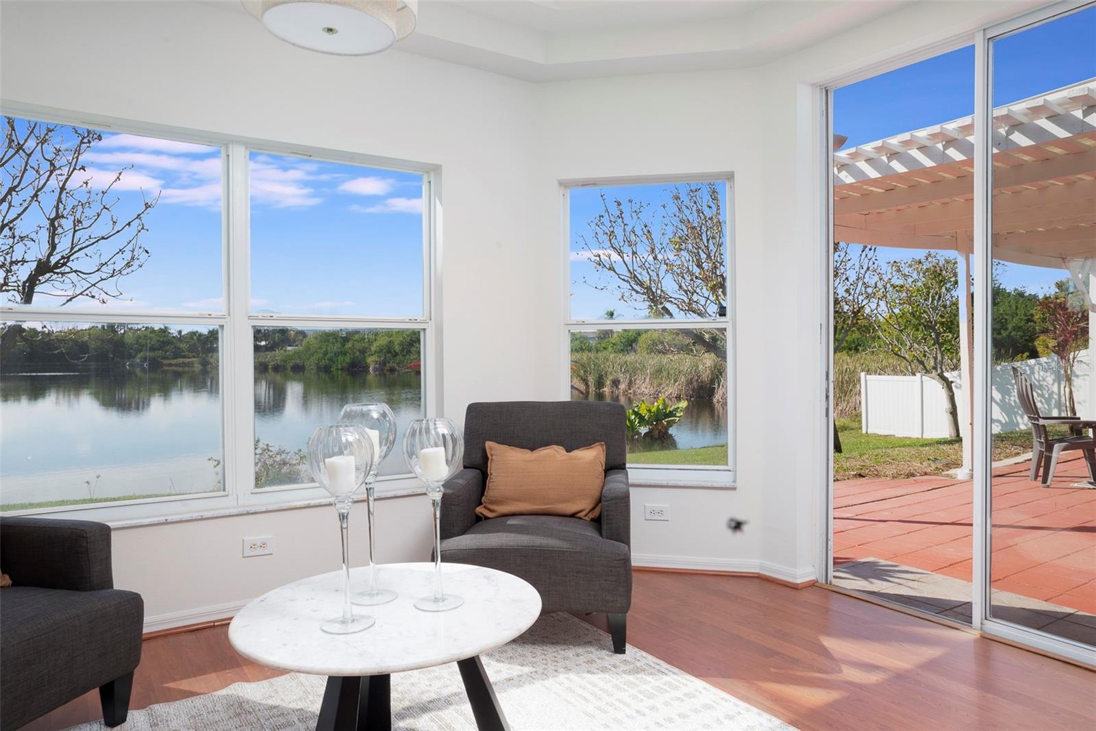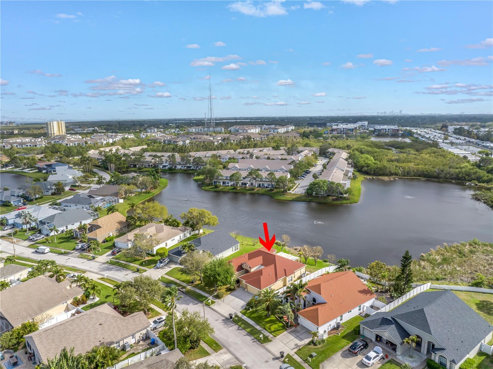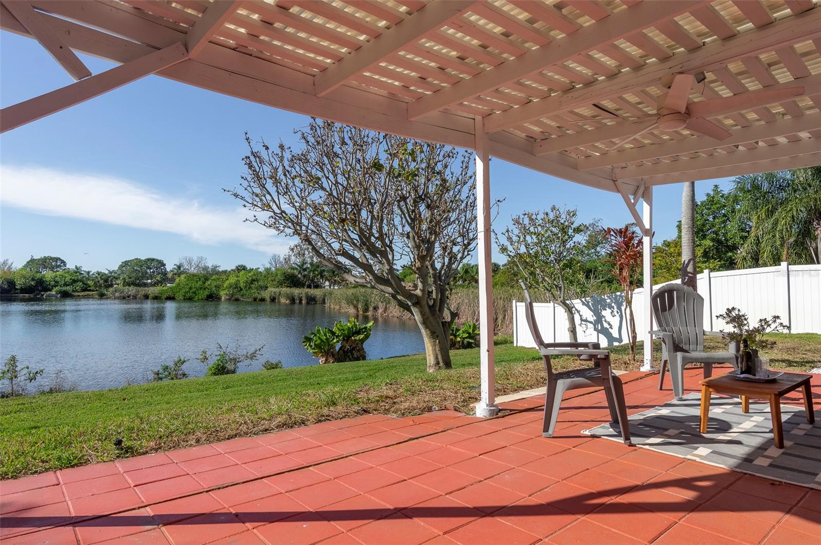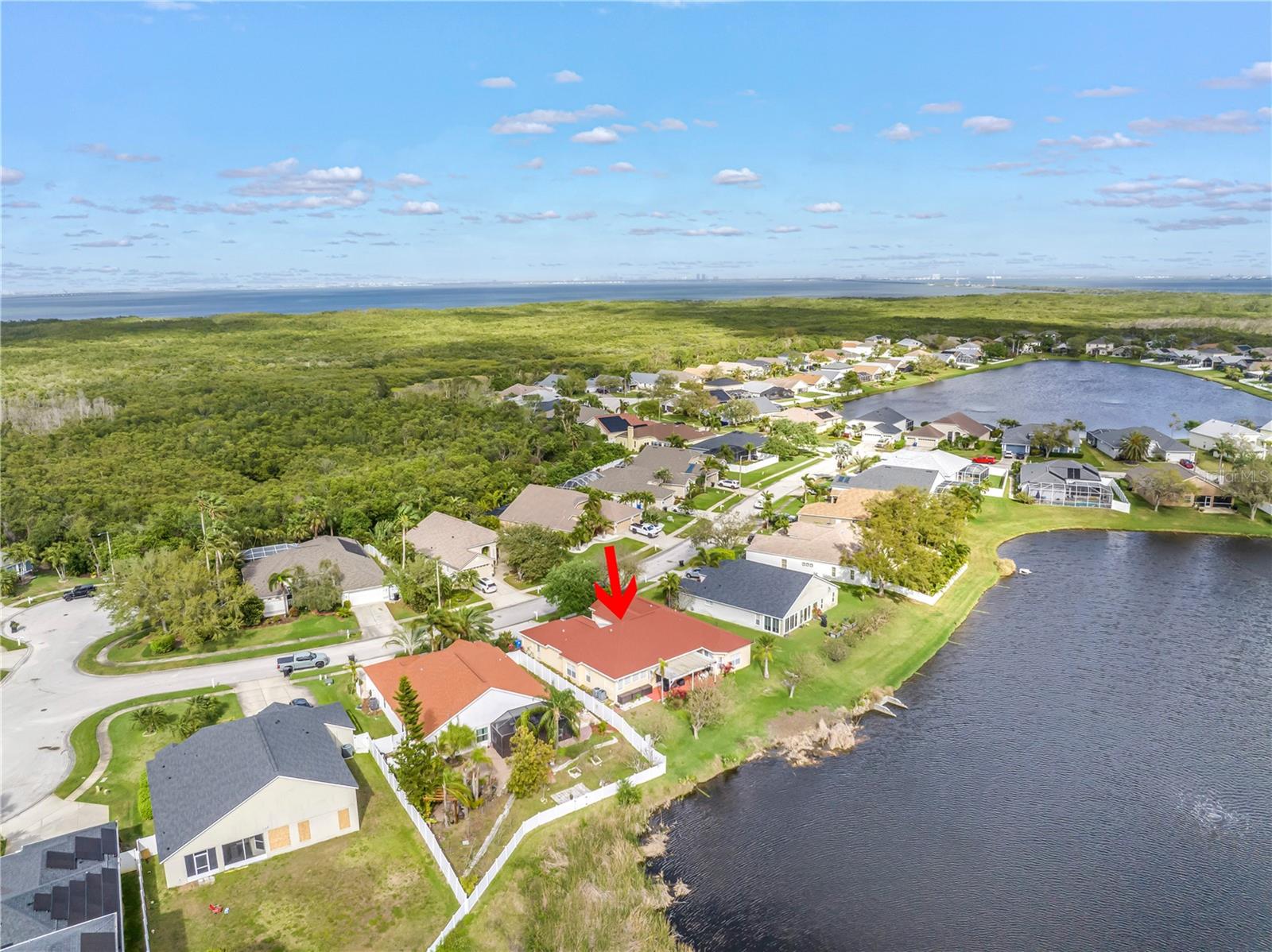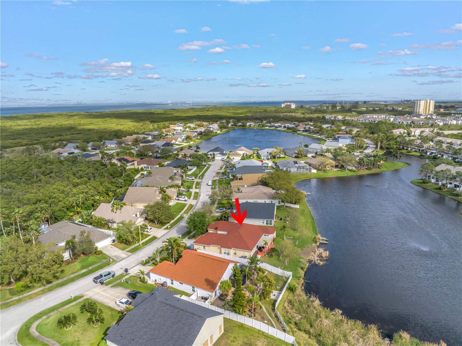 This recently updated, one-of-a-kind waterfront home offers some of the best views in Brighton Bay, ideally located on the St. Petersburg side of the Gandy Bridge. The highly sought-after community provides easy access to Downtown St. Petersburg, local beaches, South Tampa, and both international airports. Recent upgrades include fresh interior and exterior paint, new stainless steel GE appliances, updated lighting and mirrors, and refreshed landscaping. The Ring doorbell and Ring security lights and cameras are included with the sale. Featuring high ceilings throughout, this spacious 4-bedroom, 2.5-bath home feels bright and open. It offers 2,698 square feet of living space on a 10,000-square-foot lot, along with a 3-car garage. The roof was replaced with a 50-year warranty, and the gutters with leaf guards were installed at the same time. The kitchen showcases quartz countertops, a white tile backsplash, a large center island, and abundant cabinetry. A generous laundry room provides ample storage and includes a newer washer and dryer. The primary suite is truly impressive, highlighted by crown molding, decorative alcoves, two walk-in closets, and an additional bonus room currently used as a custom closet. Both the front and backyard feature tropical landscaping and a Rain Bird sprinkler system. Enjoy tranquil water views from the screened back porch, complete with an outdoor grill—perfect for entertaining on the freshwater lake. Brighton Bay is a welcoming community with resort-style amenities, including a large pool, two tennis courts, a volleyball court, playground, and dog park. Weeden Island Preserve is located directly across the street, offering kayaking, canoeing, boardwalks, and scenic hiking trails. Best of all, this home remained high and dry with no flooding during past hurricanes.