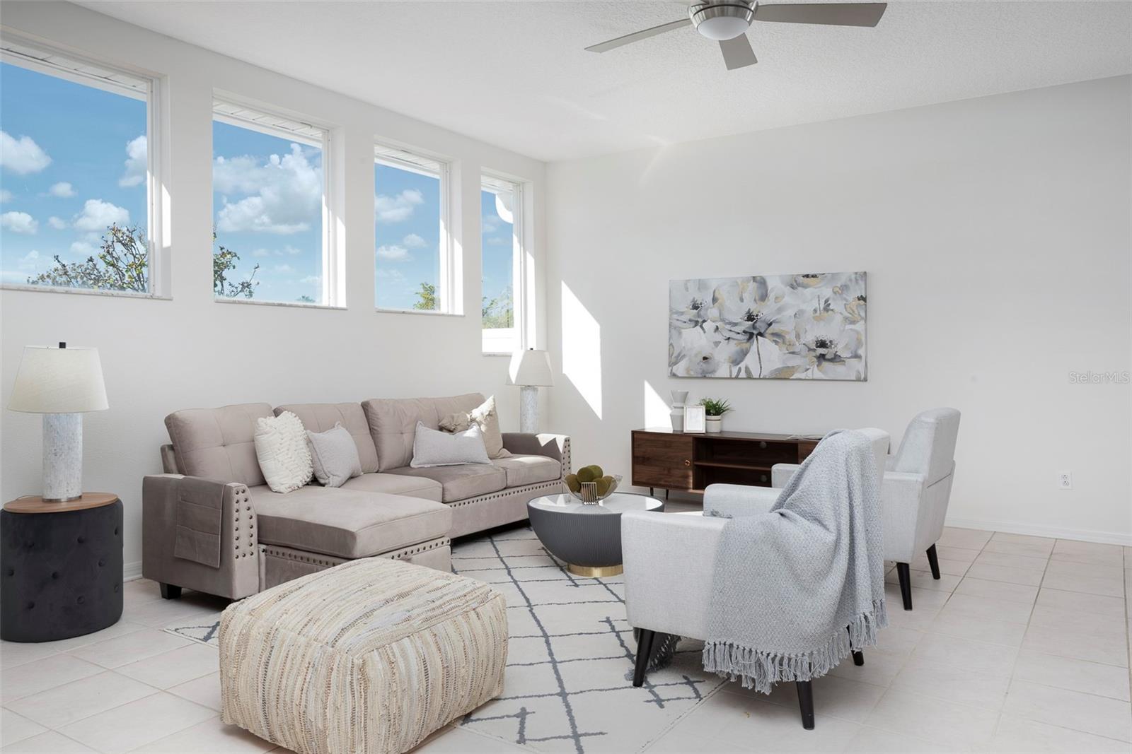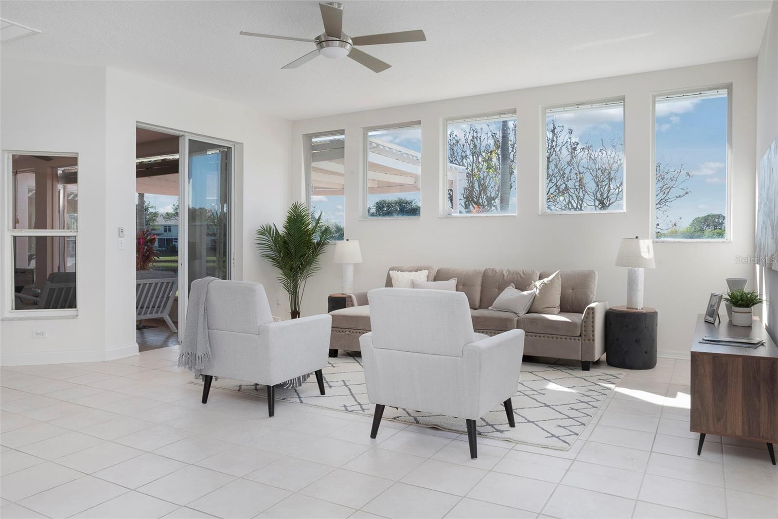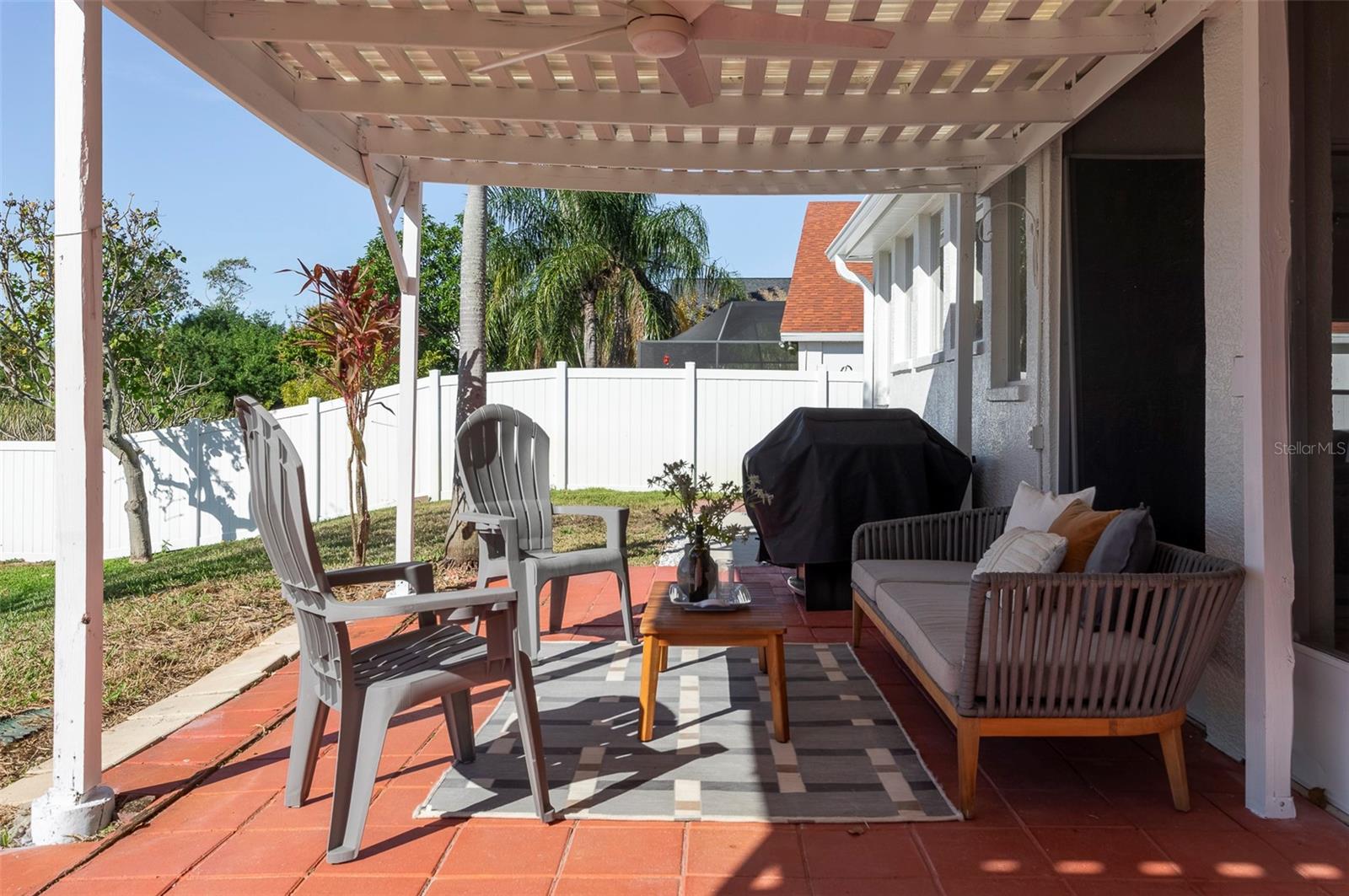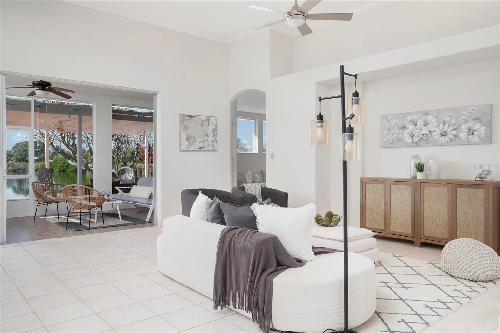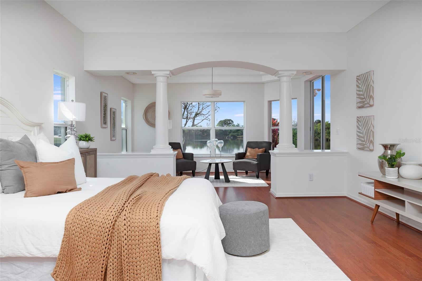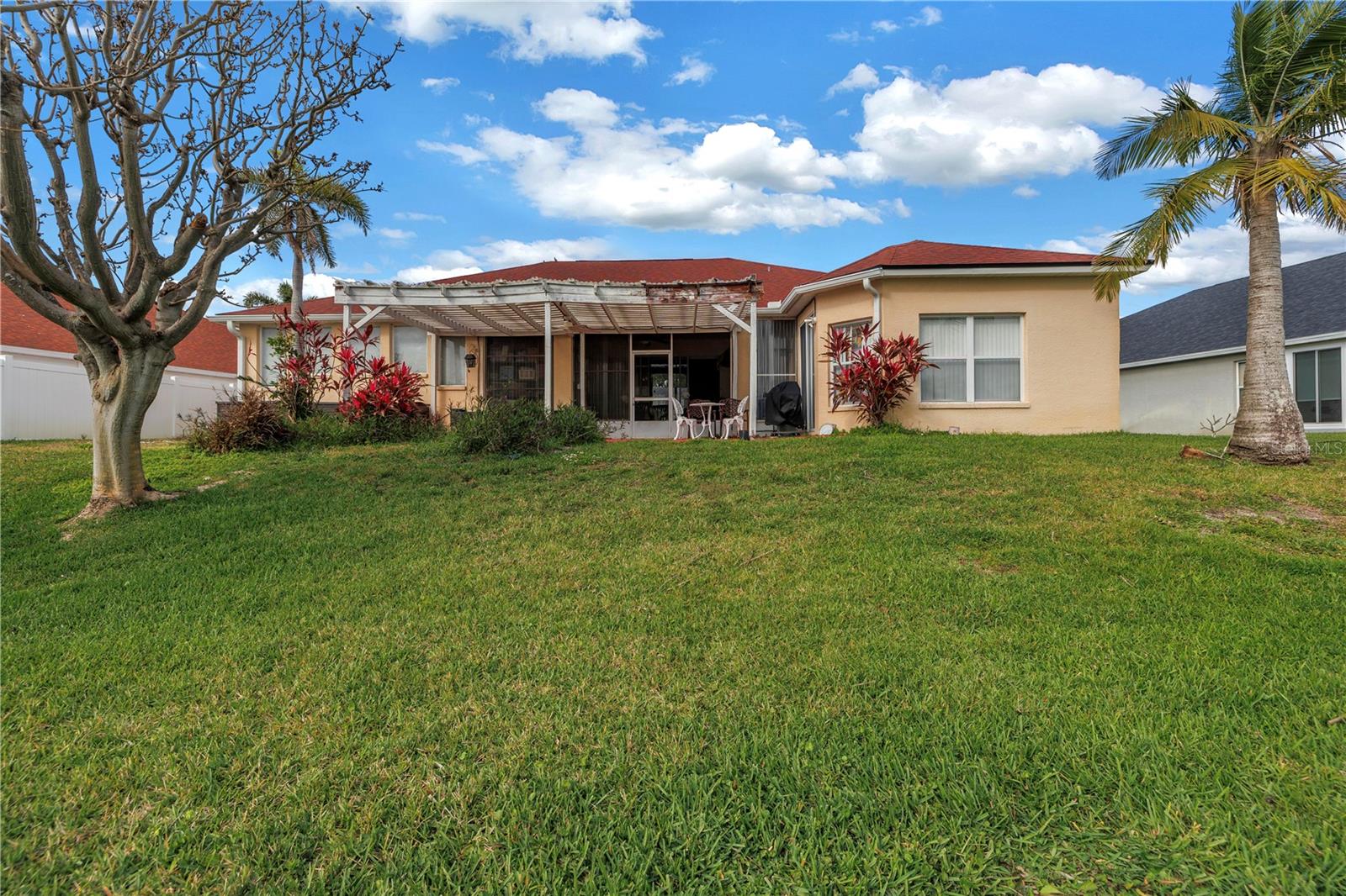 This recently updated, one-of-a-kind waterfront home offers some of the best views in Brighton Bay, ideally located on the St. Petersburg side of the Gandy Bridge. The highly sought-after community provides easy access to Downtown St. Petersburg, local beaches, South Tampa, and both international airports. Recent upgrades include fresh interior and exterior paint, new stainless steel GE appliances, updated lighting and mirrors, and refreshed landscaping. The Ring doorbell and Ring security lights and cameras are included with the sale. Featuring high ceilings throughout, this spacious 4-bedroom, 2.5-bath home feels bright and open. It offers 2,698 square feet of living space on a 10,000-square-foot lot, along with a 3-car garage. The roof was replaced with a 50-year warranty, and the gutters with leaf guards were installed at the same time. The kitchen showcases quartz countertops, a white tile backsplash, a large center island, and abundant cabinetry. A generous laundry room provides ample storage and includes a newer washer and dryer. The primary suite is truly impressive, highlighted by crown molding, decorative alcoves, two walk-in closets, and an additional bonus room currently used as a custom closet. Both the front and backyard feature tropical landscaping and a Rain Bird sprinkler system. Enjoy tranquil water views from the screened back porch, complete with an outdoor grill—perfect for entertaining on the freshwater lake. Brighton Bay is a welcoming community with resort-style amenities, including a large pool, two tennis courts, a volleyball court, playground, and dog park. Weeden Island Preserve is located directly across the street, offering kayaking, canoeing, boardwalks, and scenic hiking trails. Best of all, this home remained high and dry with no flooding during past hurricanes.