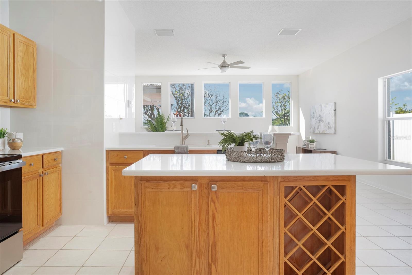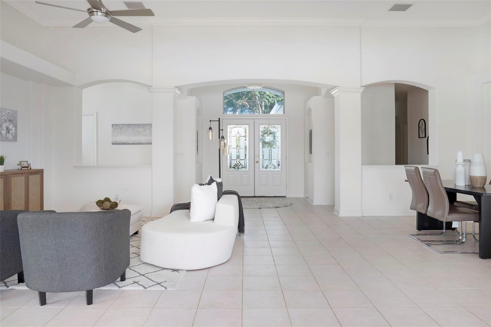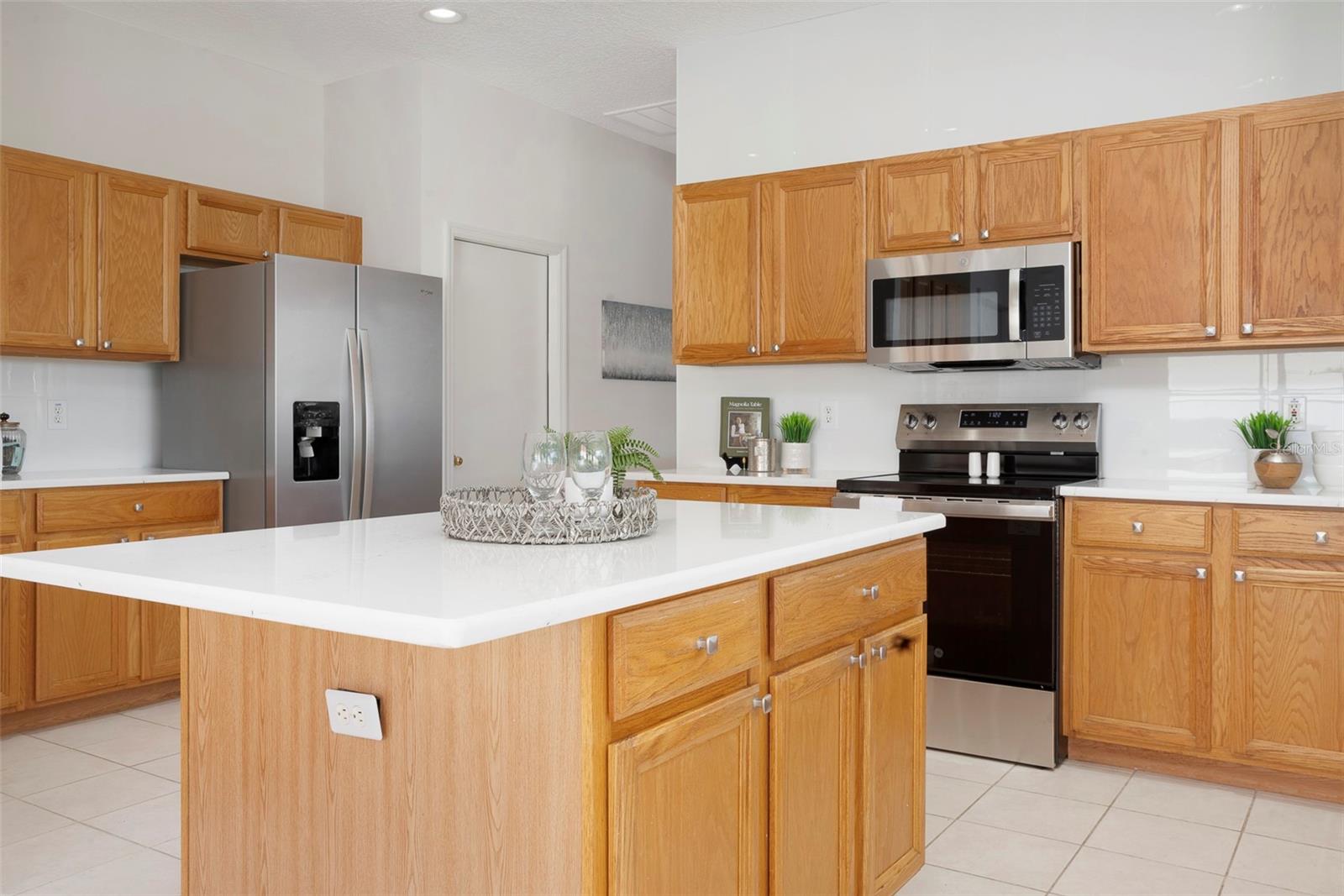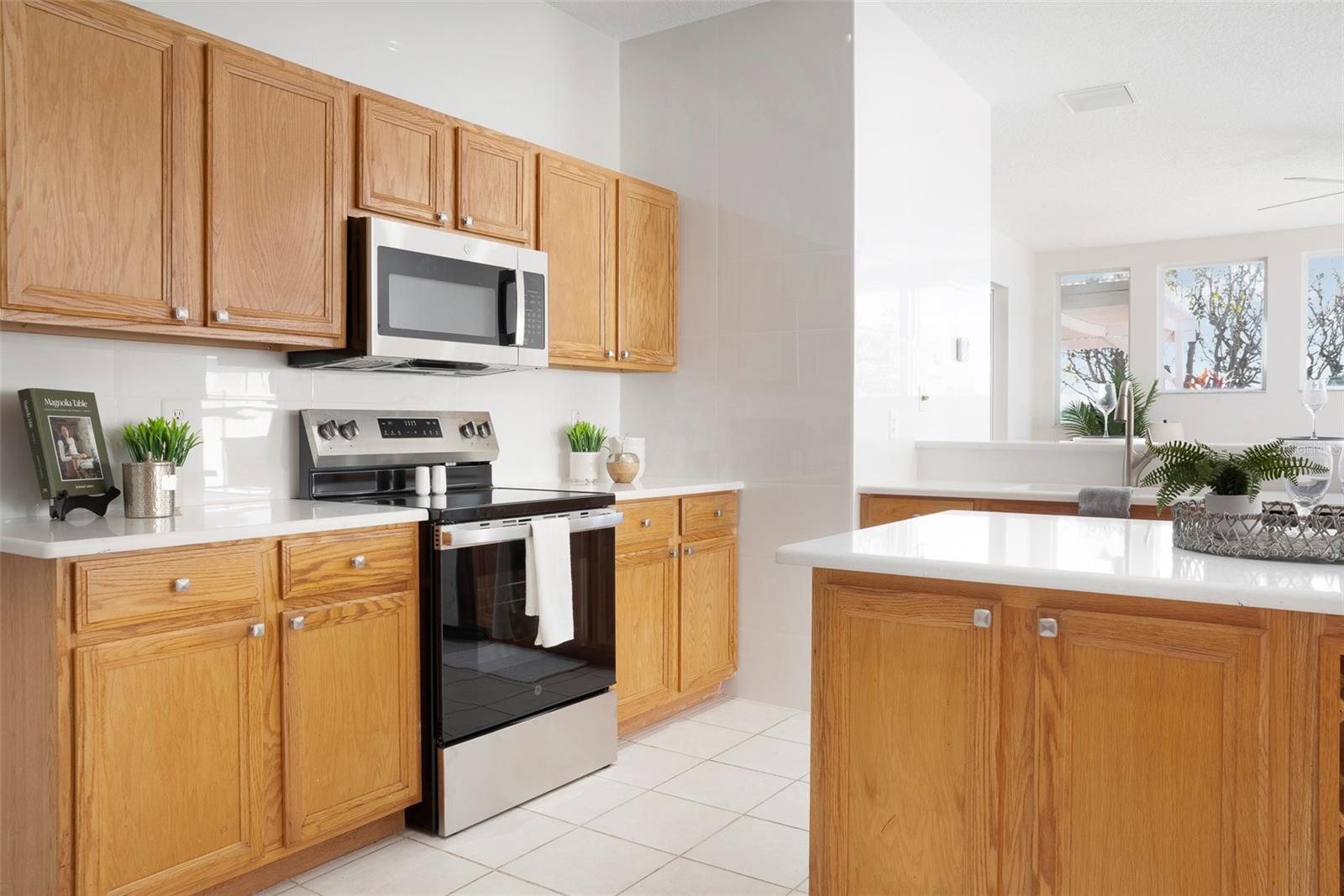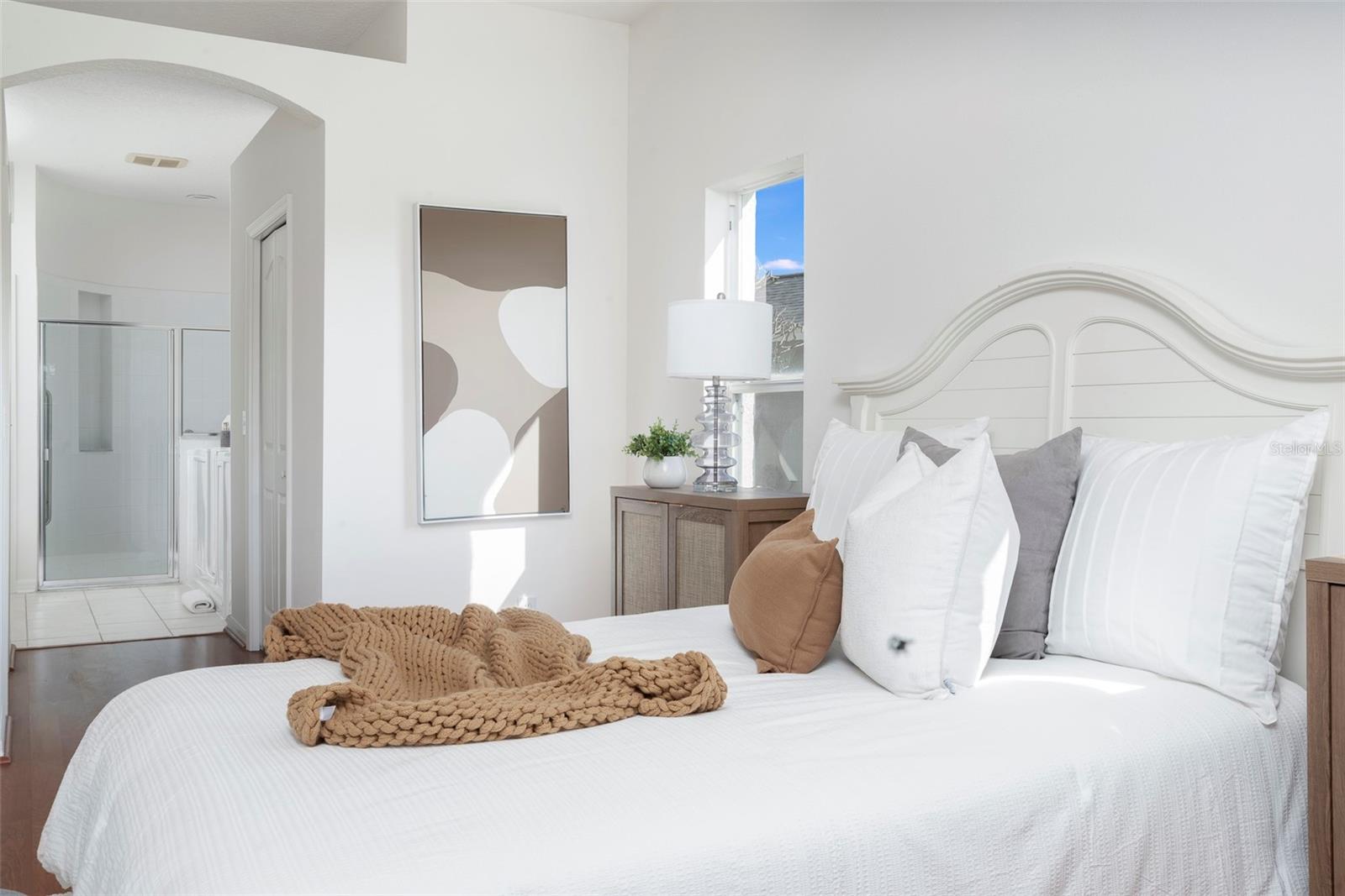 This recently updated, one-of-a-kind waterfront home offers some of the best views in Brighton Bay, ideally located on the St. Petersburg side of the Gandy Bridge. The highly sought-after community provides easy access to Downtown St. Petersburg, local beaches, South Tampa, and both international airports. Recent upgrades include fresh interior and exterior paint, new stainless steel GE appliances, updated lighting and mirrors, and refreshed landscaping. The Ring doorbell and Ring security lights and cameras are included with the sale. Featuring high ceilings throughout, this spacious 4-bedroom, 2.5-bath home feels bright and open. It offers 2,698 square feet of living space on a 10,000-square-foot lot, along with a 3-car garage. The roof was replaced with a 50-year warranty, and the gutters with leaf guards were installed at the same time. The kitchen showcases quartz countertops, a white tile backsplash, a large center island, and abundant cabinetry. A generous laundry room provides ample storage and includes a newer washer and dryer. The primary suite is truly impressive, highlighted by crown molding, decorative alcoves, two walk-in closets, and an additional bonus room currently used as a custom closet. Both the front and backyard feature tropical landscaping and a Rain Bird sprinkler system. Enjoy tranquil water views from the screened back porch, complete with an outdoor grill—perfect for entertaining on the freshwater lake. Brighton Bay is a welcoming community with resort-style amenities, including a large pool, two tennis courts, a volleyball court, playground, and dog park. Weeden Island Preserve is located directly across the street, offering kayaking, canoeing, boardwalks, and scenic hiking trails. Best of all, this home remained high and dry with no flooding during past hurricanes.