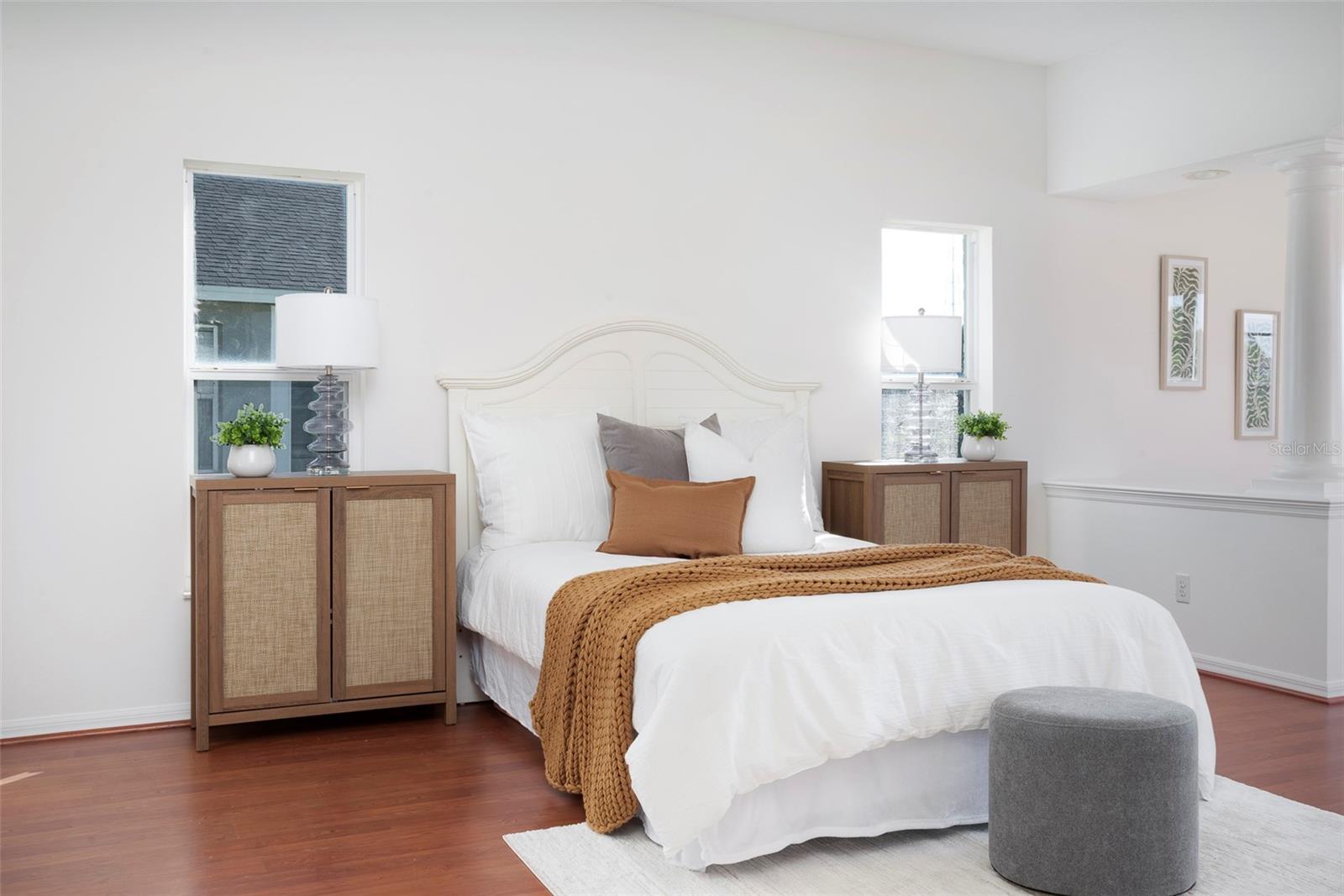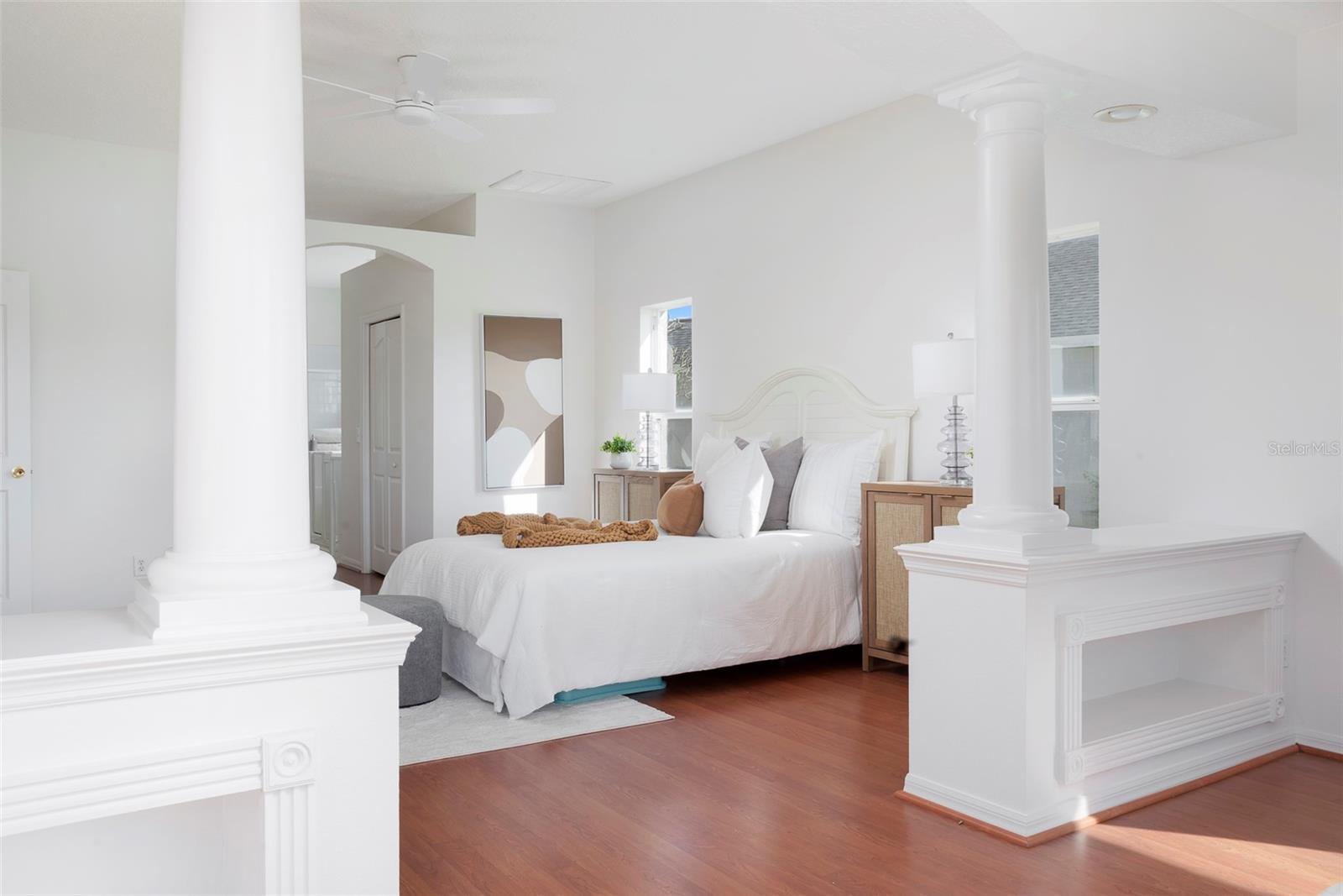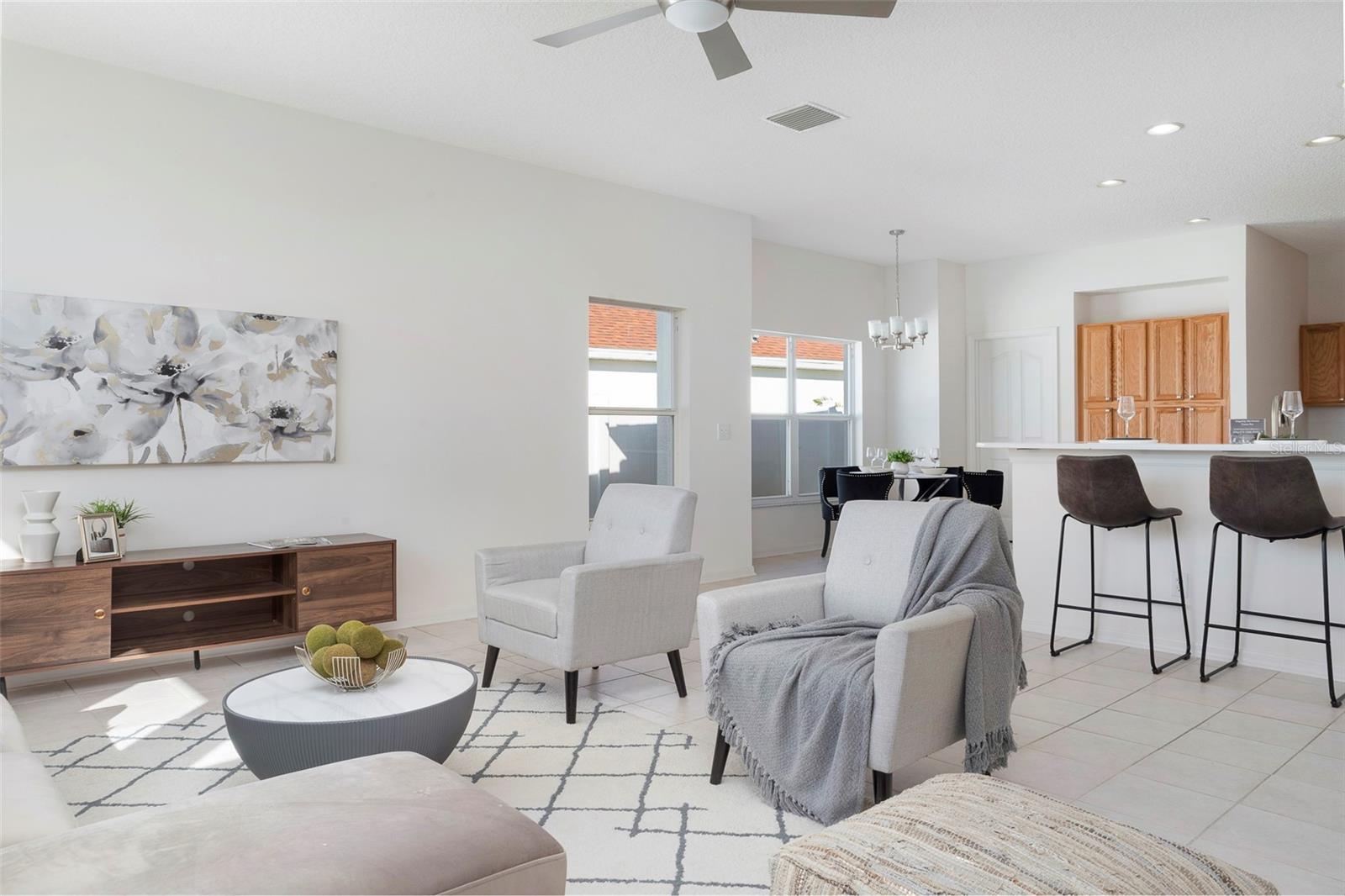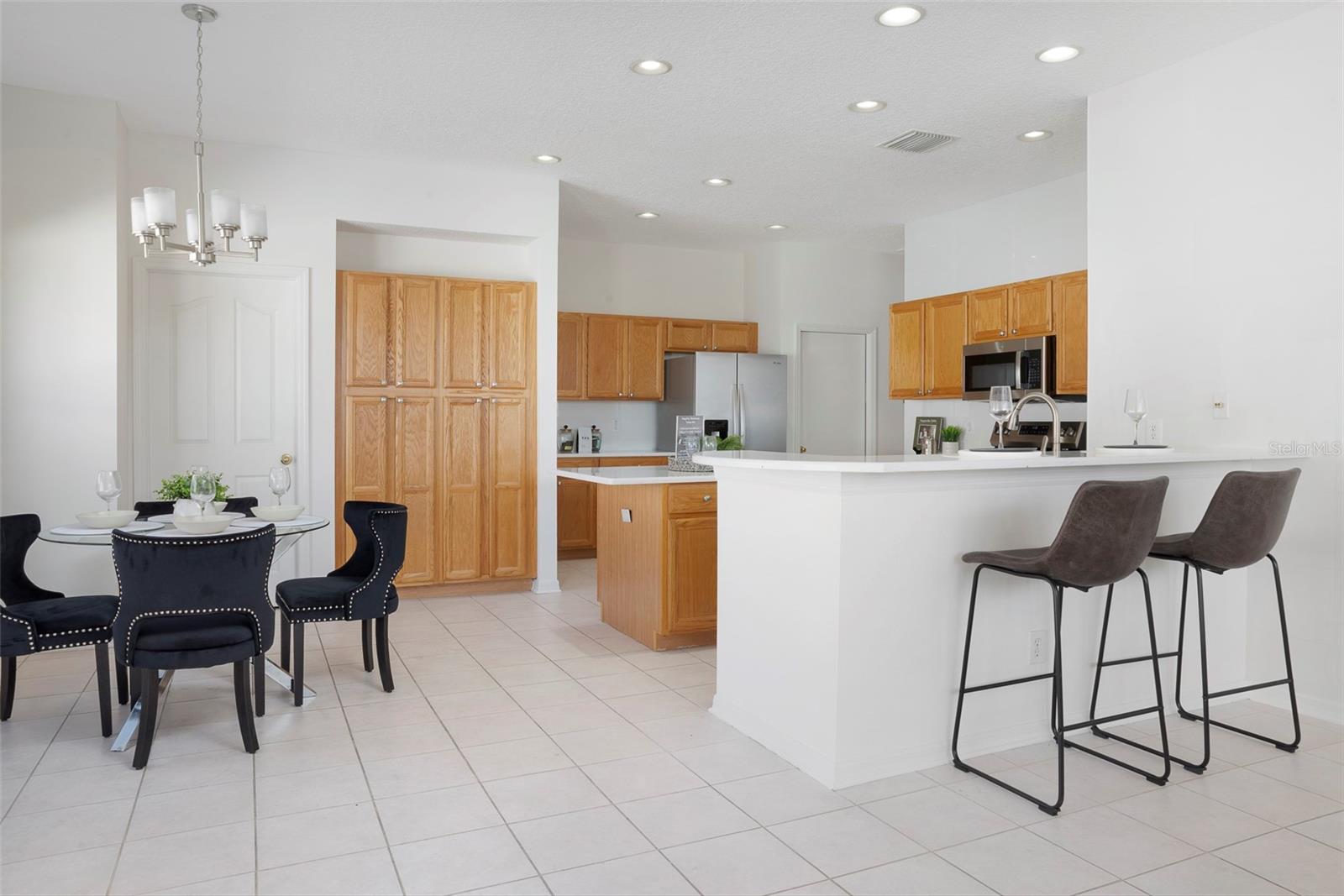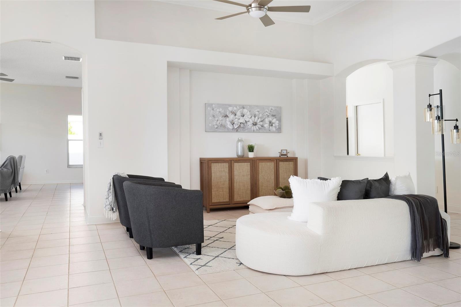 This recently updated, one-of-a-kind waterfront home offers some of the best views in Brighton Bay, ideally located on the St. Petersburg side of the Gandy Bridge. The highly sought-after community provides easy access to Downtown St. Petersburg, local beaches, South Tampa, and both international airports. Recent upgrades include fresh interior and exterior paint, new stainless steel GE appliances, updated lighting and mirrors, and refreshed landscaping. The Ring doorbell and Ring security lights and cameras are included with the sale. Featuring high ceilings throughout, this spacious 4-bedroom, 2.5-bath home feels bright and open. It offers 2,698 square feet of living space on a 10,000-square-foot lot, along with a 3-car garage. The roof was replaced with a 50-year warranty, and the gutters with leaf guards were installed at the same time. The kitchen showcases quartz countertops, a white tile backsplash, a large center island, and abundant cabinetry. A generous laundry room provides ample storage and includes a newer washer and dryer. The primary suite is truly impressive, highlighted by crown molding, decorative alcoves, two walk-in closets, and an additional bonus room currently used as a custom closet. Both the front and backyard feature tropical landscaping and a Rain Bird sprinkler system. Enjoy tranquil water views from the screened back porch, complete with an outdoor grill—perfect for entertaining on the freshwater lake. Brighton Bay is a welcoming community with resort-style amenities, including a large pool, two tennis courts, a volleyball court, playground, and dog park. Weeden Island Preserve is located directly across the street, offering kayaking, canoeing, boardwalks, and scenic hiking trails. Best of all, this home remained high and dry with no flooding during past hurricanes.