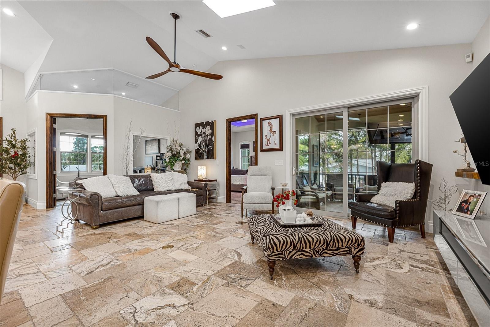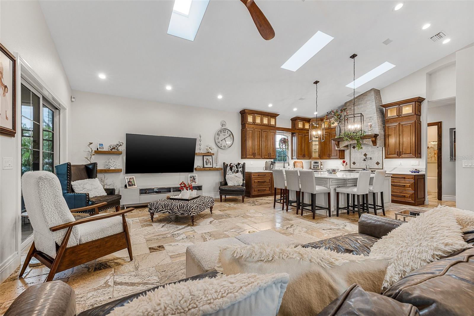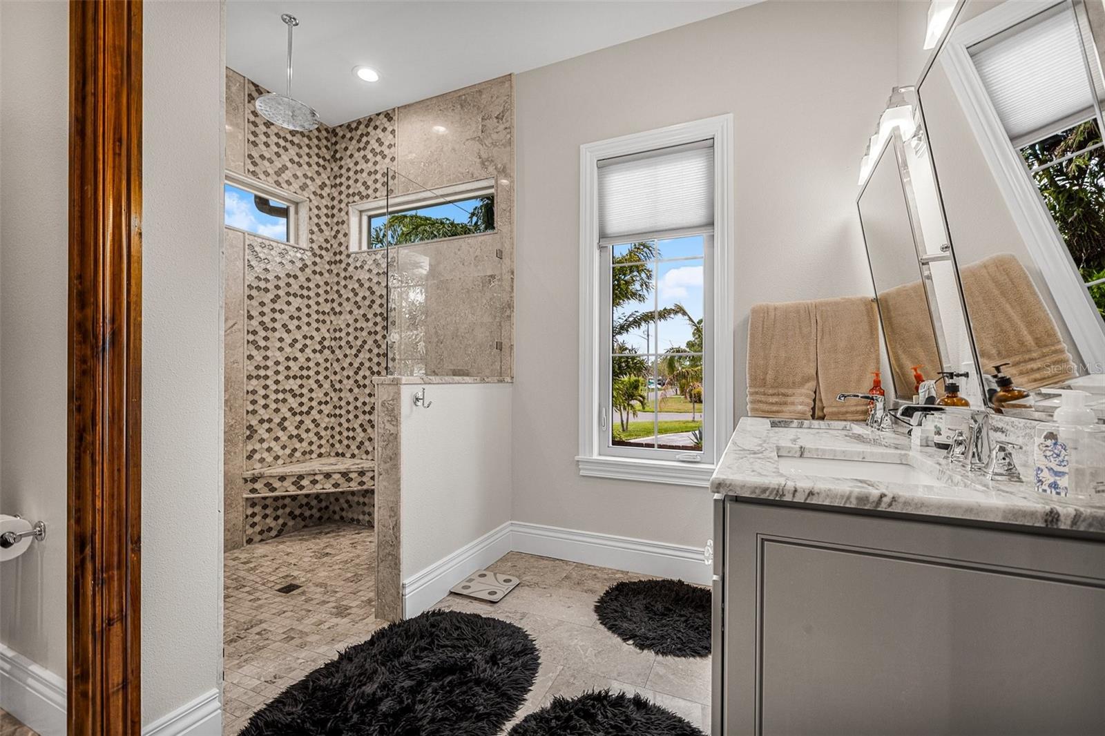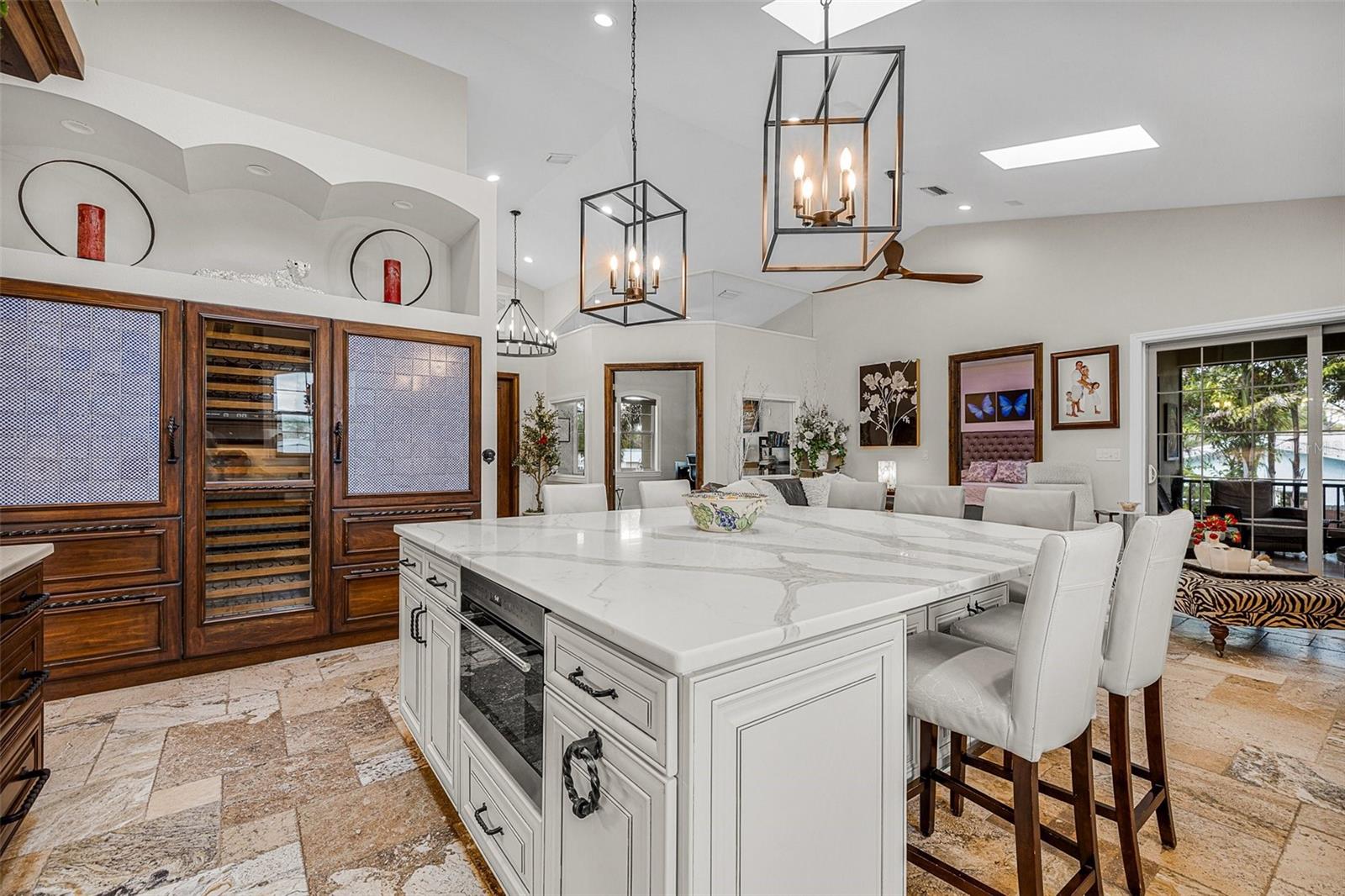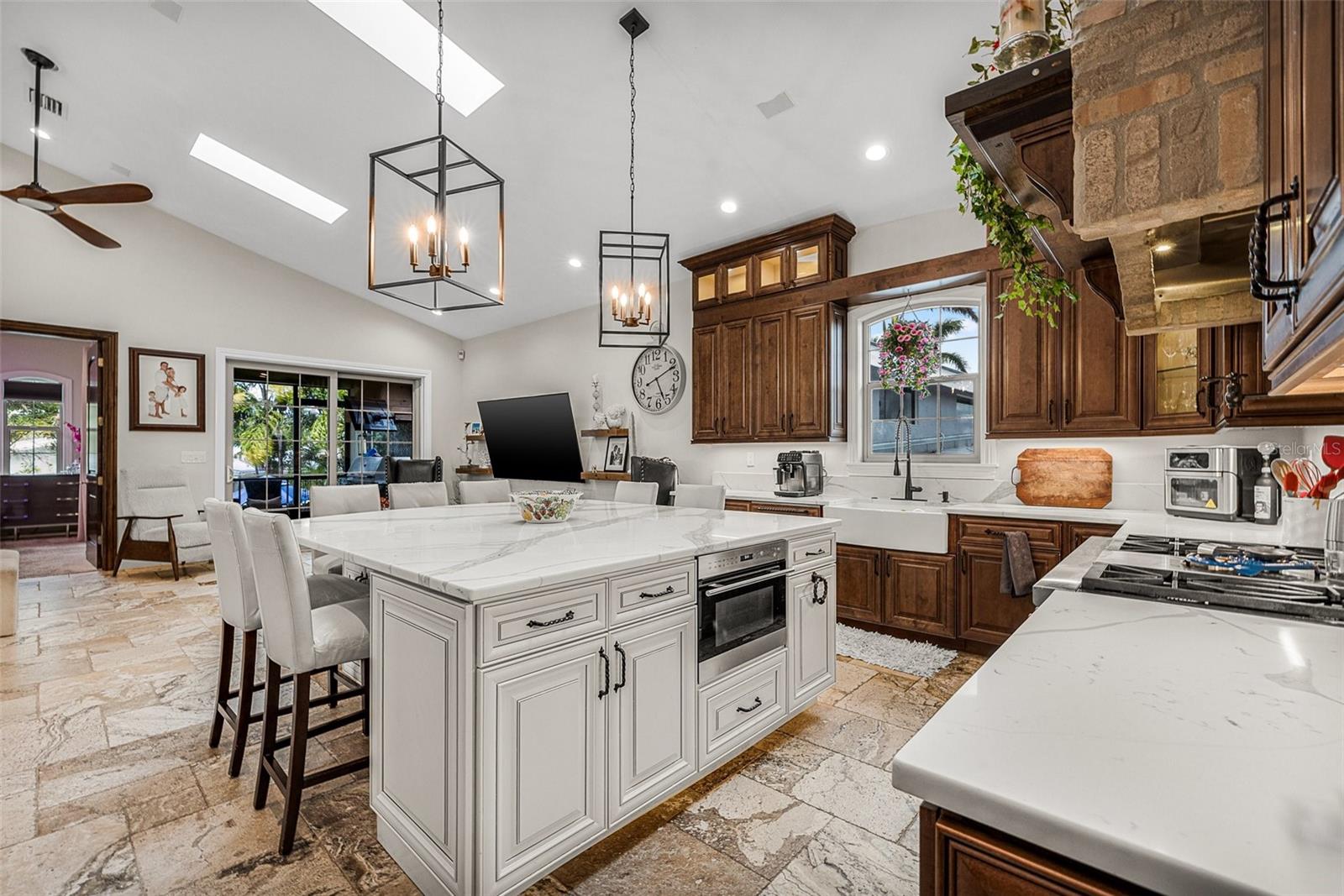 Truly superlative newer construction CUSTOM, BLOCK, ELEVATED 3 bedroom plus a den, 3 bathroom, 2 car garage home perched high and safe above any past or future flooding. No expense was spared during the construction! 14 foot high vaulted ceiling, skylights, luxurious travertine flooring, custom ceiling height soft close cabinetry with in cabinetry lighting, a 6 burner Wolf range and microwave, and not 1 but 2 Sub-Zero refrigerators, are just some of the elements of the home that accent it’s grandeur. The floor plan is an exquisite use of space with the true owner’s retreat separated from both the guest bedroom ensuite and the third bedroom and full hall bath. Every room dares to be your favorite! Through the oversized laundry room and the pet washing station is one of the largest air conditioned two car garages on the market with an incredible loft that offers the perfect space for an at home gym or endless storage. Speaking of storage, there is also a finished attic! The outdoor lanai and kitchen features a Viking grill, ice maker, and Sub Zero beverage cooler. The backyard is a true tropical oasis offering a space for relaxing or entertaining centered around a stunning heated PebbleTec pool and spill over spa with a sun shelf for endless days of summer sun bathing. There are truly too many amazing features to list and must be seen to believe. Don’t delay. Call today and be the envy of family, friends, and neighbors!