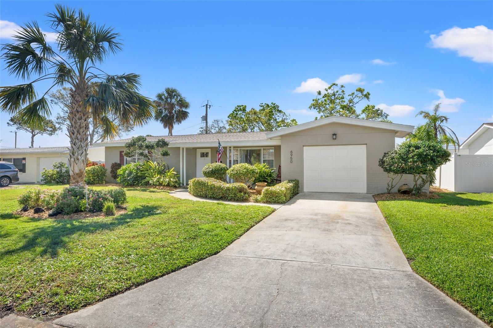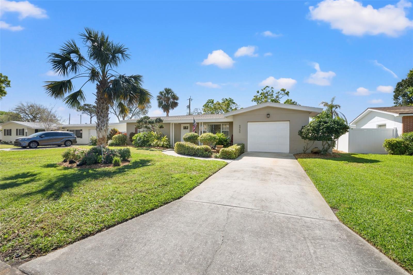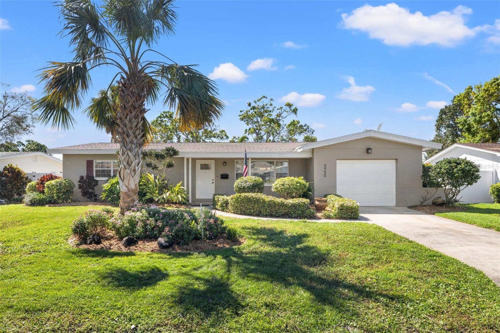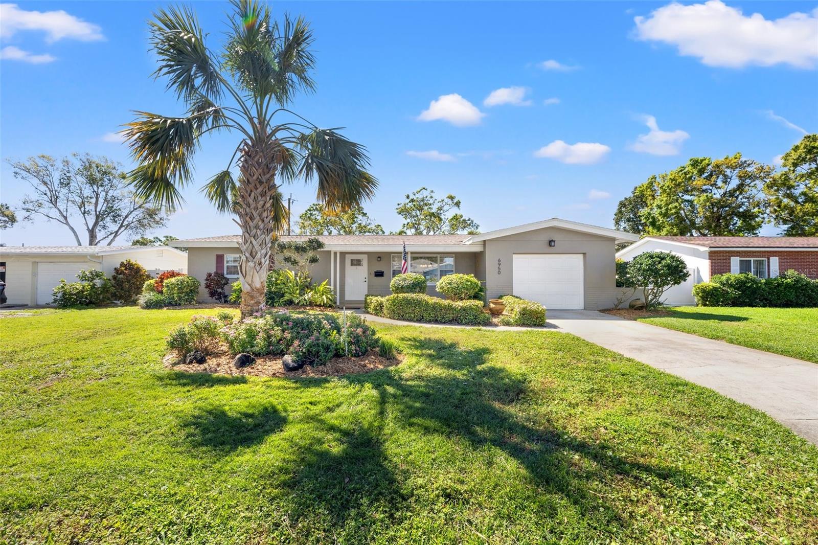 Welcome to this beautifully maintained 3-bedroom, 2-bathroom block home, offering just under 1700 square feet of comfortable living space with timeless terrazzo flooring. Look at them shine! This home was designed for durability and convenience, featuring a split floorplan PLUS a bonus room that adds extra versatility. Meticulously cared for at every turn. Tropical from the lovely landscaping to the sunny palette inside, you're greeted by a bright and inviting layout--and room for the whole family. The spacious kitchen boasts solid wood cabinets and ample countertop space for the chef in your life. The oversized 1-car garage provides ample storage for your toys. The private fenced backyard is perfect for enjoying the lush landscaping and outdoor activities here in Florida. Conveniently located to Pinellas Trail, award-winning Gulf beaches, shopping, dining, Tyrone Mall, and an easy commute to Tampa. Only 25 minutes to St. Petersburg/Clearwater International Airport and easy access to Tampa International. Schedule your private tour today!