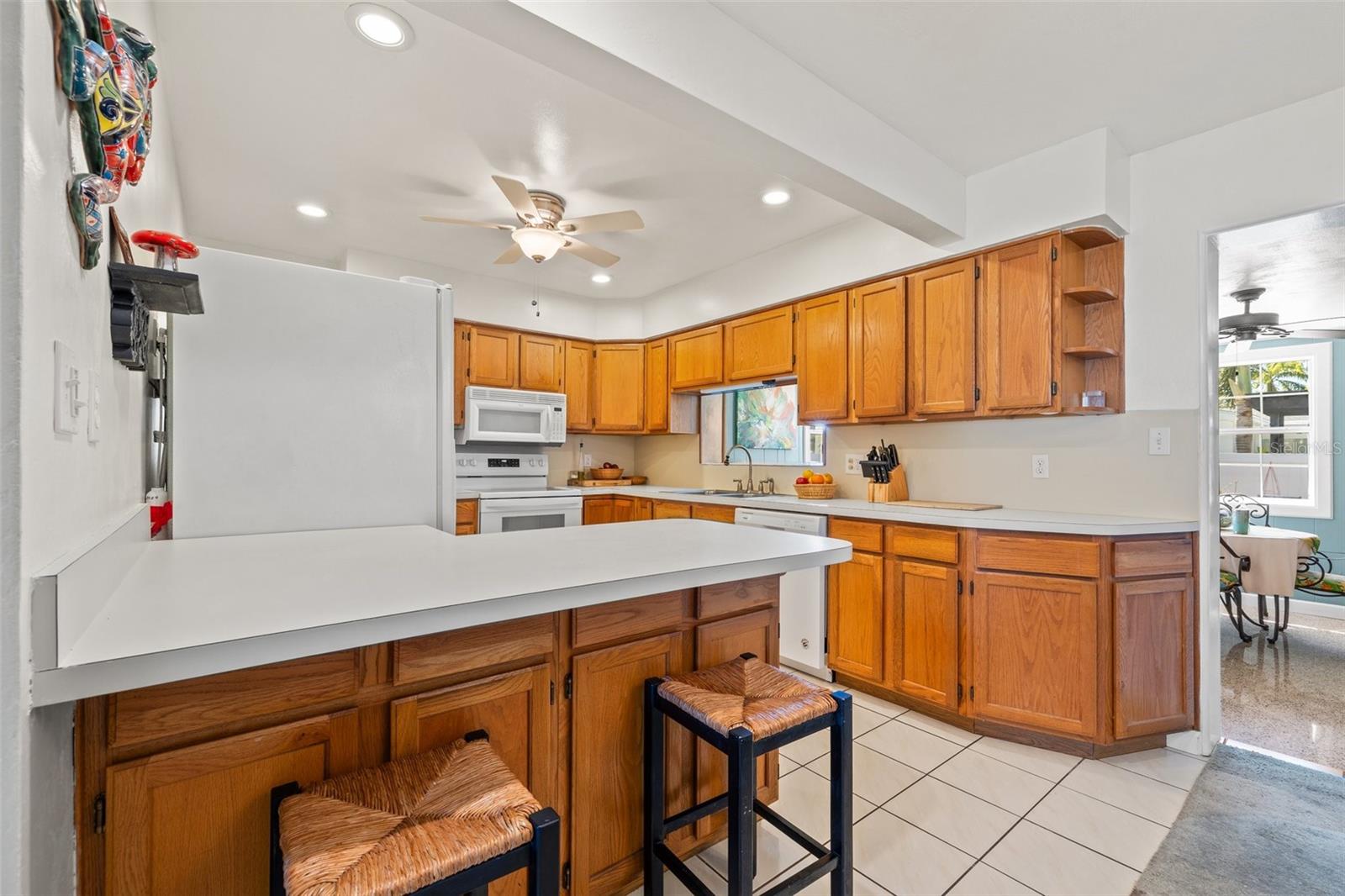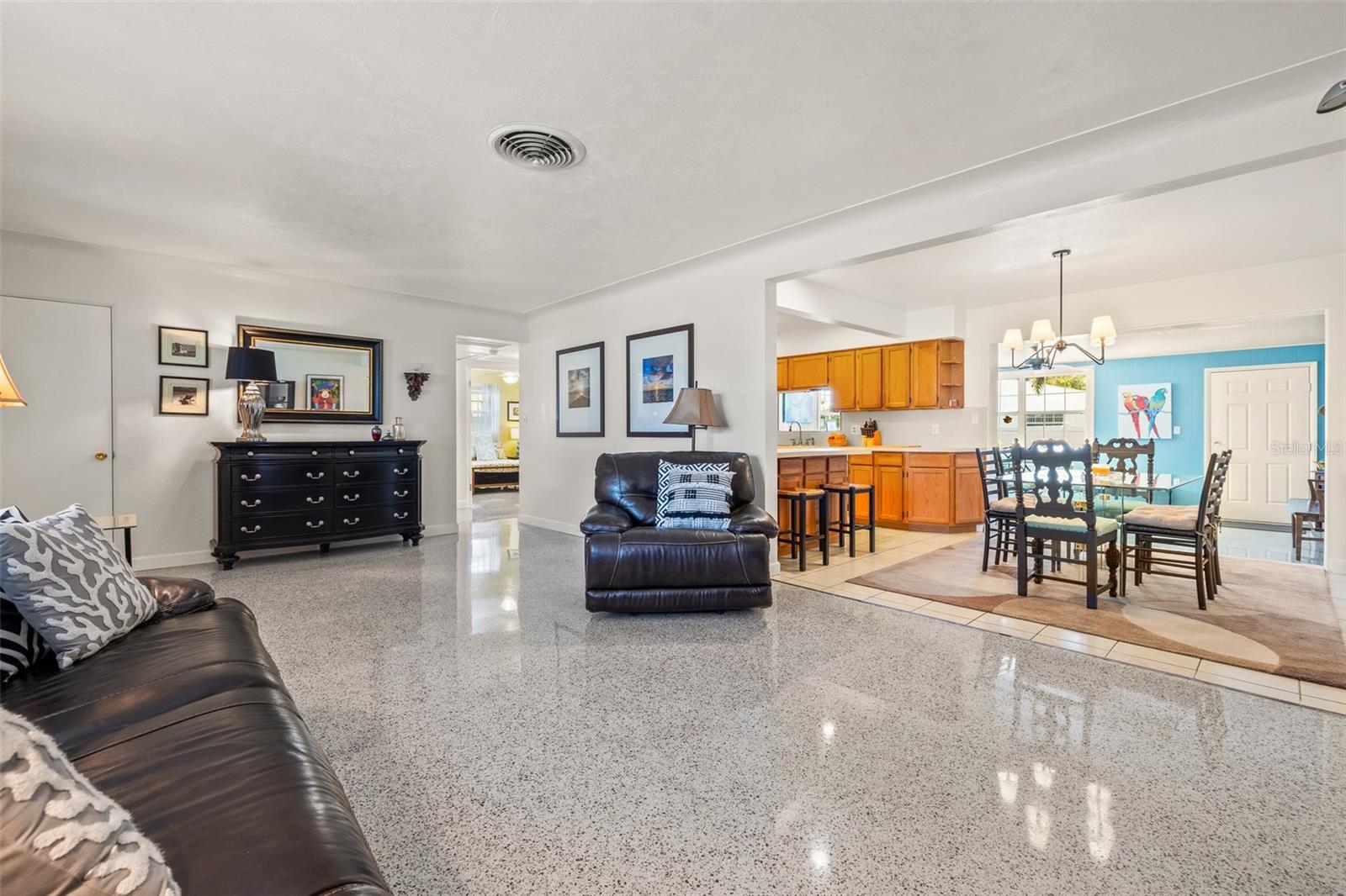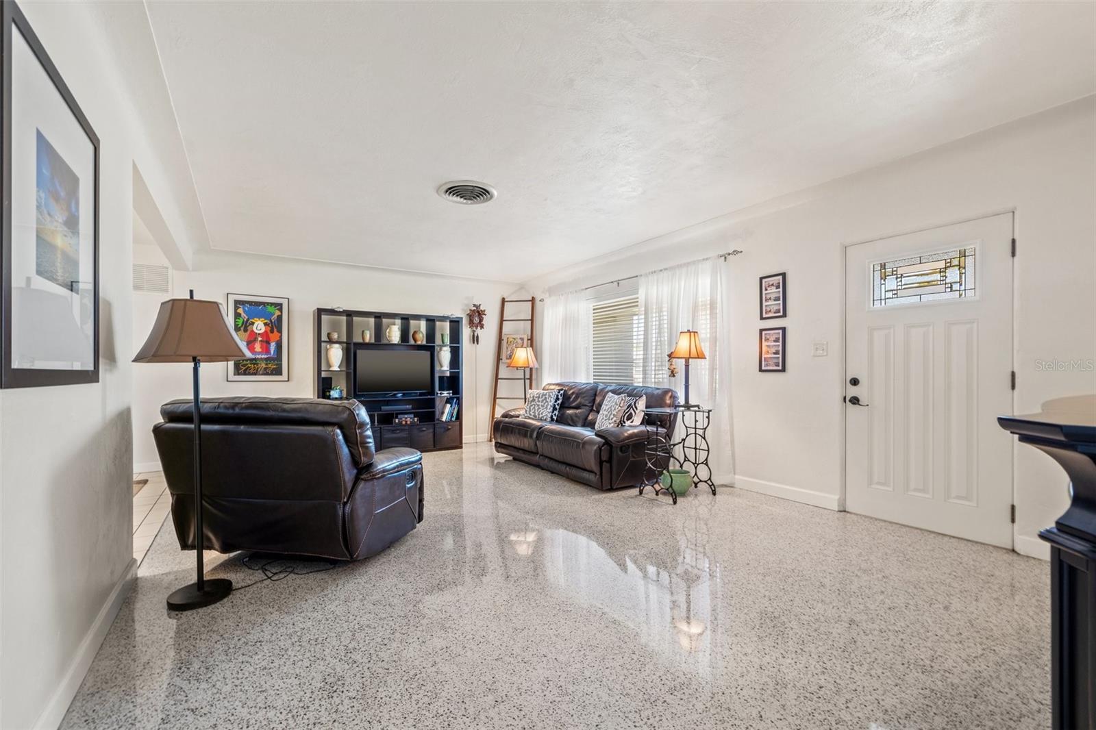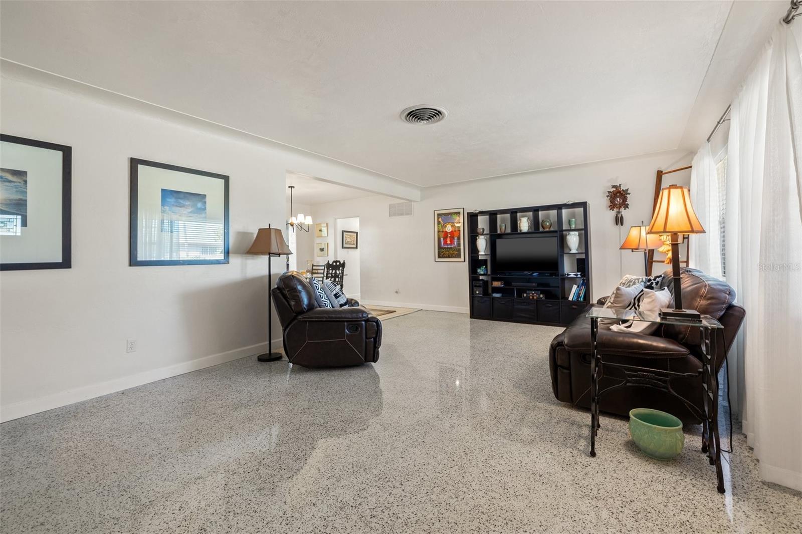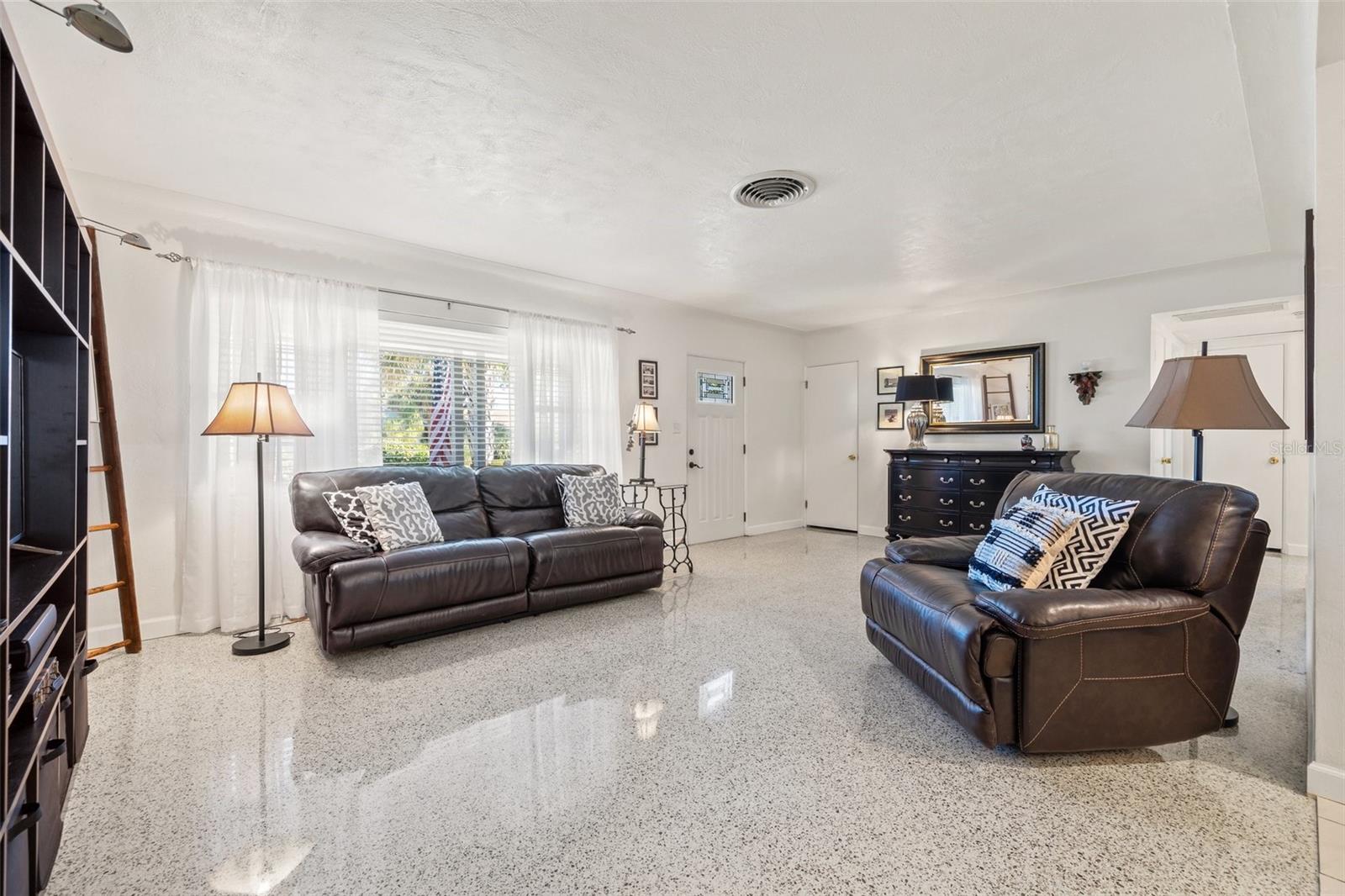 Welcome to this beautifully maintained 3-bedroom, 2-bathroom block home, offering just under 1700 square feet of comfortable living space with timeless terrazzo flooring. Look at them shine! This home was designed for durability and convenience, featuring a split floorplan PLUS a bonus room that adds extra versatility. Meticulously cared for at every turn. Tropical from the lovely landscaping to the sunny palette inside, you're greeted by a bright and inviting layout--and room for the whole family. The spacious kitchen boasts solid wood cabinets and ample countertop space for the chef in your life. The oversized 1-car garage provides ample storage for your toys. The private fenced backyard is perfect for enjoying the lush landscaping and outdoor activities here in Florida. Conveniently located to Pinellas Trail, award-winning Gulf beaches, shopping, dining, Tyrone Mall, and an easy commute to Tampa. Only 25 minutes to St. Petersburg/Clearwater International Airport and easy access to Tampa International. Schedule your private tour today!