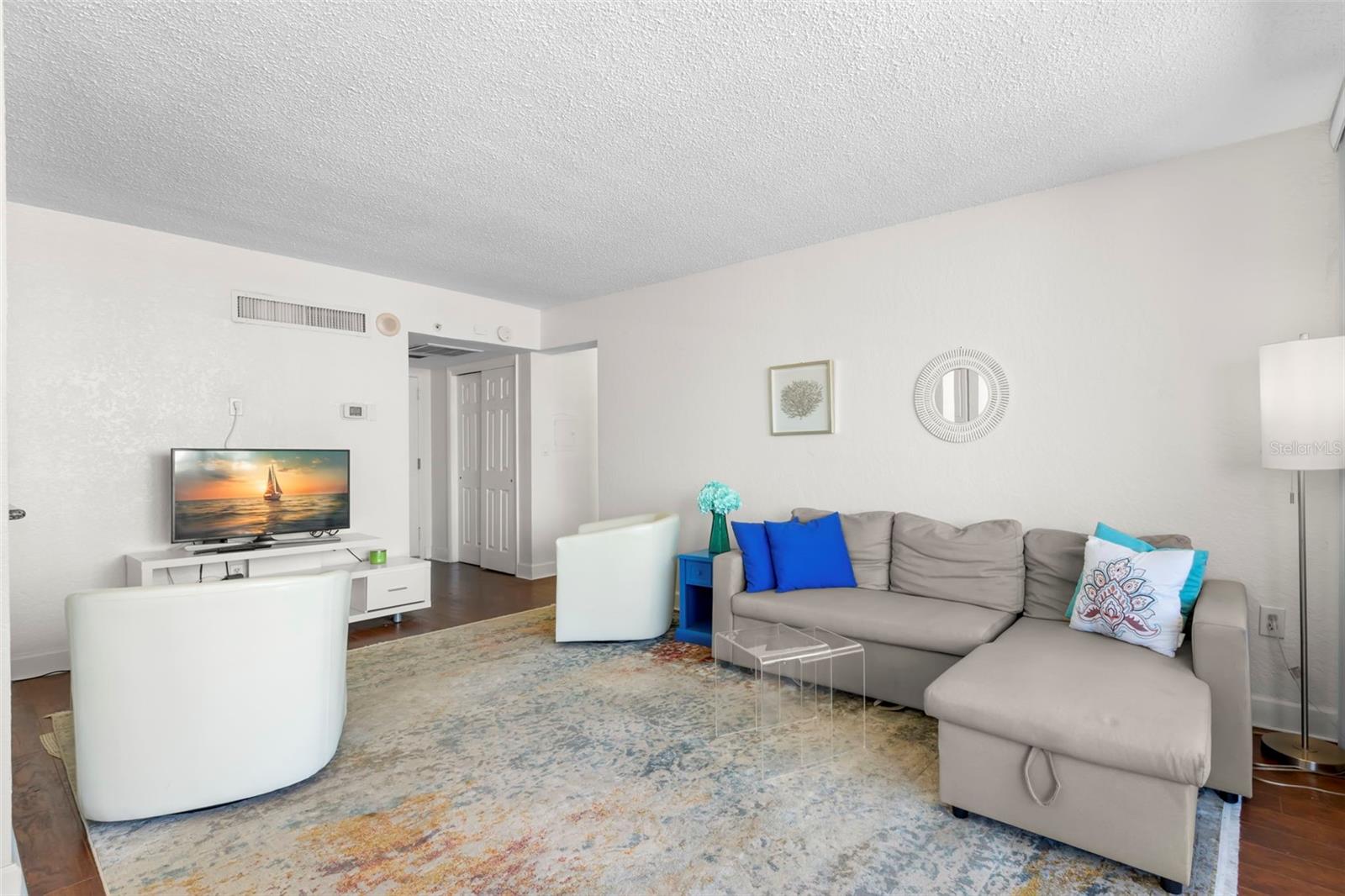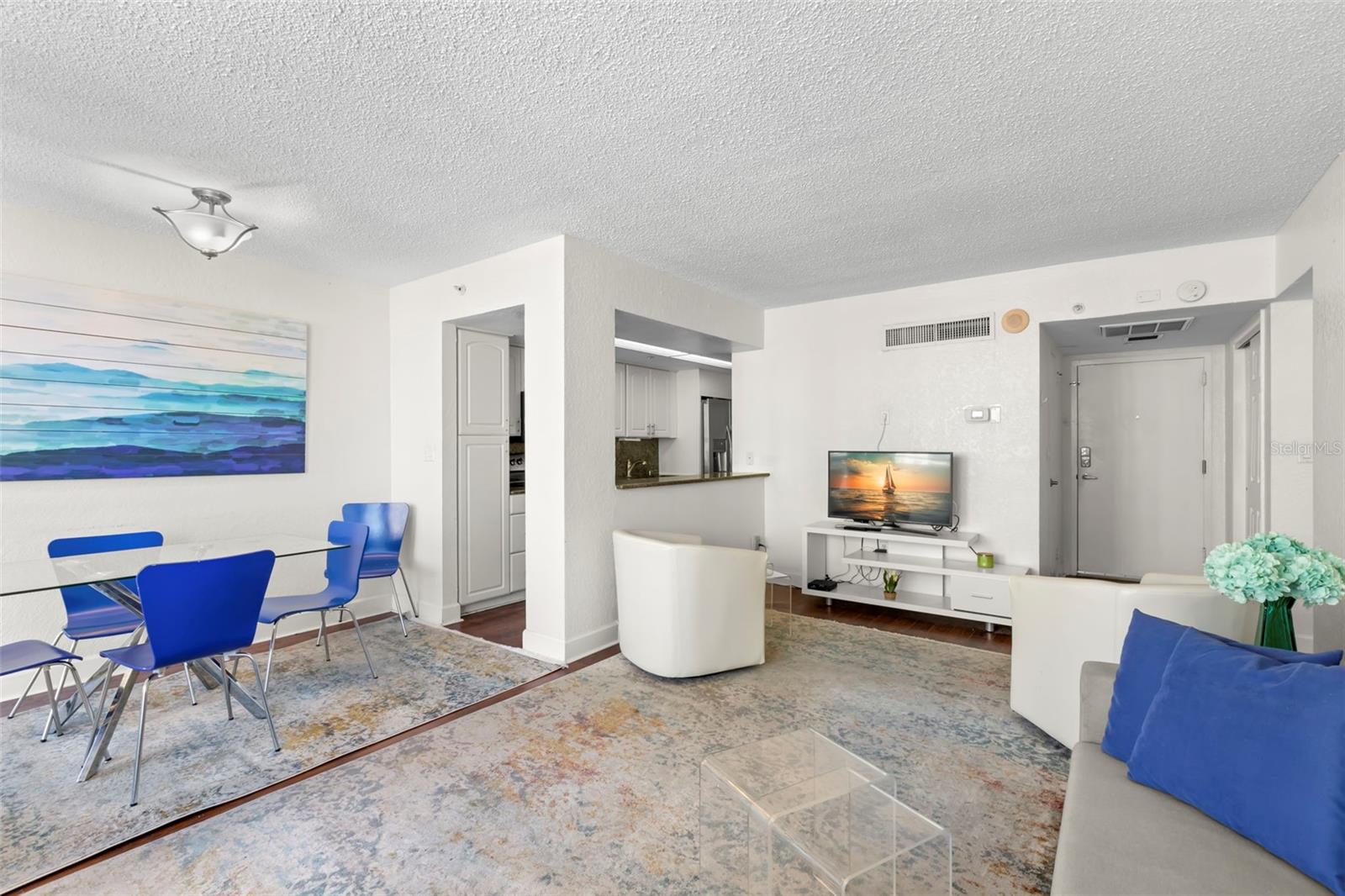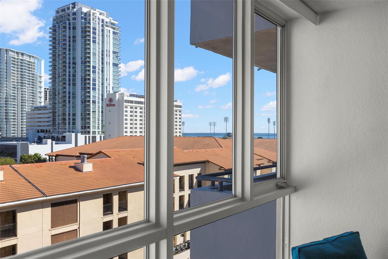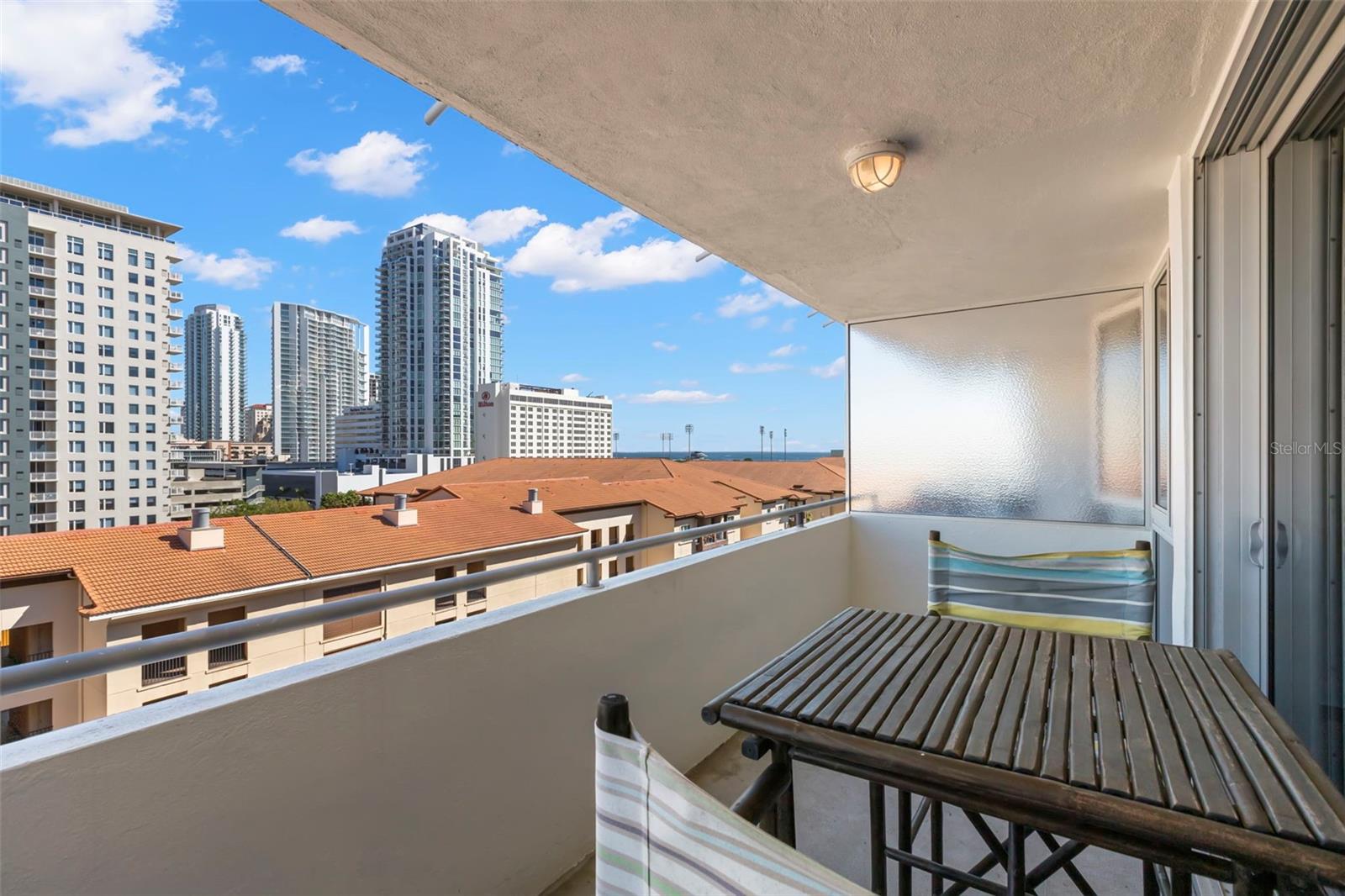 In the midst of all Downtown St Petersburg has to offer, you will find the charming and historic Beacon on 3rd. Once the tallest building in St Petersburg, it is now nestled amongst a stunning city skyline with the sparkling waters of Tampa Bay as a backdrop. Perched on the 8th story of The Beacon, this stunning condo overlooks it all! City views, beautiful day and night, can be enjoyed comfortably from any room through your newly renovated floor to ceiling windows. Relax and entertain in your own private outdoor space with an oversized balcony, or take advantage of the amenities and join your neighbors on the large rooftop deck, both locations perfect for viewing events such as city fireworks and the Grand Prix. Pack your bags and move right into this turn key space, which includes all furnishings right down to the dishes! The kitchen has an abundance of cabinet space, granite counter tops, stainless steel appliances, and a spacious breakfast bar. The pleasing, and practical, use of space continues with the inclusion of a separate dining area and multiple walk-in closets. Enjoy a remarkably low electric bill, with the cost of heat and a/c included in your HOA fee. The Beacon includes many enjoyable amenities, to include a 24-hour fitness center, secured entry, night and weekend security, glistening pool with loungers and private cabanas, grilling and outdoor dining area free for your use, guest parking, and, of course, the aforementioned rooftop deck! Welcome to the resort lifestyle: in the heart of a walkable downtown, just steps from endless restaurants to explore, sporting events and entertainment, world class arts and culture, a stunning new pier, vibrant nightlife, and all of the benefits of waterfront living without the responsibility. Here you will not only own a part of St Petersburg, you will be a part of it!
