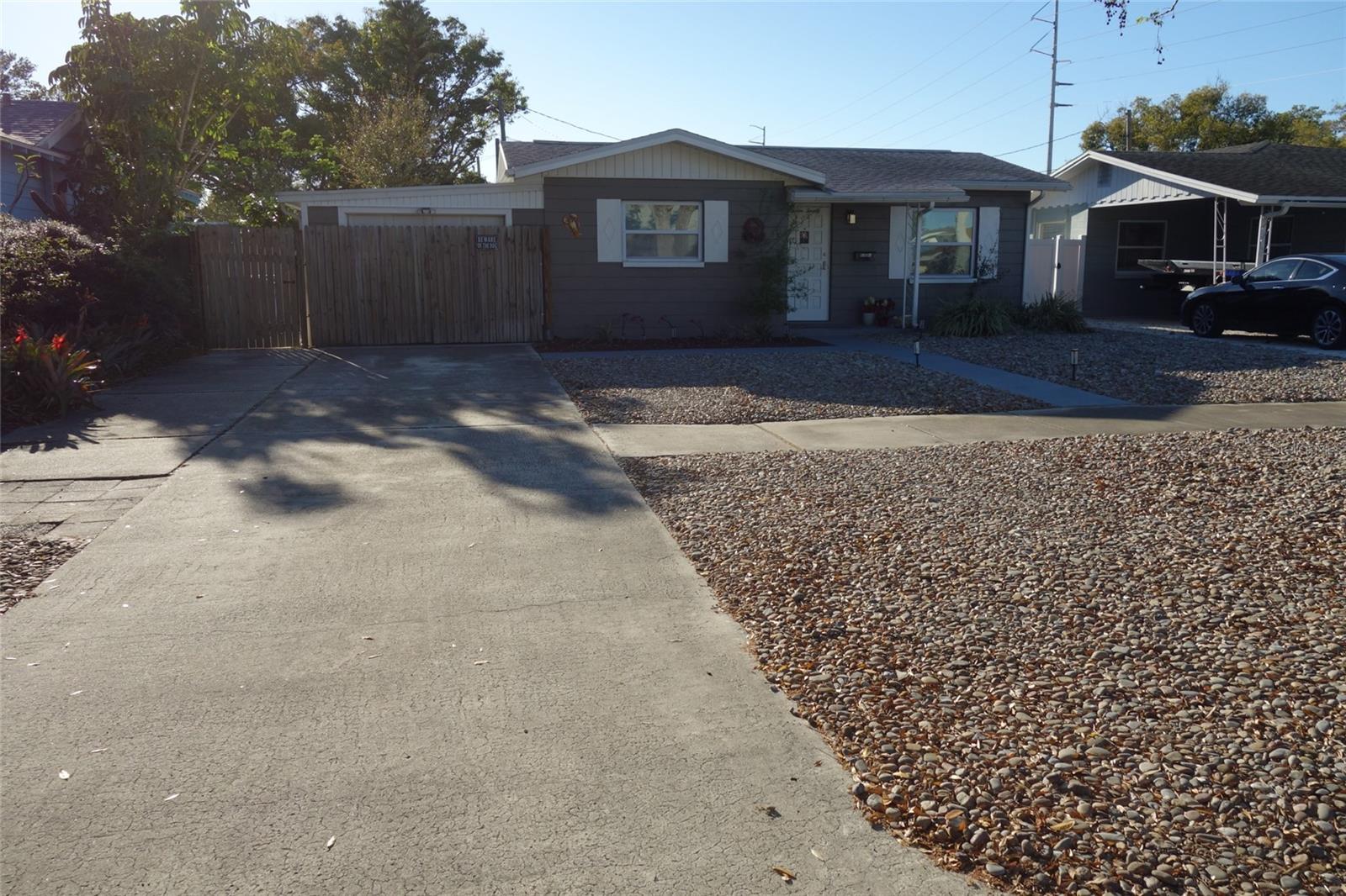 Welcome to this charming home in the HEART OF ST. PETERSBURG — minutes from world class beaches, vibrant downtown, shopping, airport, hospitals, bus stops, parks, schools, churches and more. This well maintained “snow-bird-owned and occupied” 1-story home features 3-bedroom and 1.3/4-bath, renovated kitchen with granite countertop and wood block, hurricane windows, terrazzo floors, newer AC with ceiling fans throughout, laundry room w/washer/dryer included. The home has an attached one car/SUV size garage. Central Oak Park neighborhood and oak-lined sidewalks. Zero-scaped front and back yard, front and alley access for easy maintenance or storage for a boat or RV on a cement pad. Additional shed in the back for toys or equipment, inside a completely fenced yard. This home includes a guest suite separate entrance/lock off in the back of the home for one of the bedrooms and ¾ bath. Great for guest privacy or seasonal rental. The owner maintains a Choice Home Warranty that can be transferred to a new owner. NO-HOA, NO FLOOD ZONE, NO RESTRICTIONS ON STR.