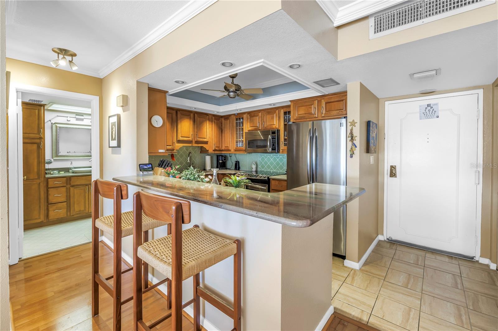Welcome to Paradise with this turnkey condo! Point Brittany is a highly desired community with amenities galore in a location second to none. Owners enjoy use of 4 heated pools on the water plus a spa. There are fishing piers, first come boat slips and walking lit trails along the water. The community has a Fitness facility, yoga studio, billiards, poker and craft rooms to name a few. There are tennis courts, shuffleboard, kayak launch, BBQ pits, pavilions and so much more. Inside the building this 14th floor 2 bed 2 bath condo with a balcony is being sold furnished turnkey for ease of all parties. The kitchen features nice wood cabinets, granite counters, laminate floors and updated bathrooms. There is a dining room nice sized living room with a view of the water. This condo is located just 2 miles to the sugary sandy beaches of St Pete Beach & Pass a Grille. It is close to Fort De Soto State Park, shopping, grocery and restaurants. It is a mile to the highway and a quick 25 minutes to Tampa Airport, Clearwater and Sarasota. This condo is also just 10 quick minutes to Downtown St Pete and everything it has to going for it such as the Pier, Museums, The Rays, Rowdies, Restaurants, Bars and parks on the water! Last but not least this condo comes with a Home Warranty Plan for peace of mind. Welcome to Paradise at Point Brittany!