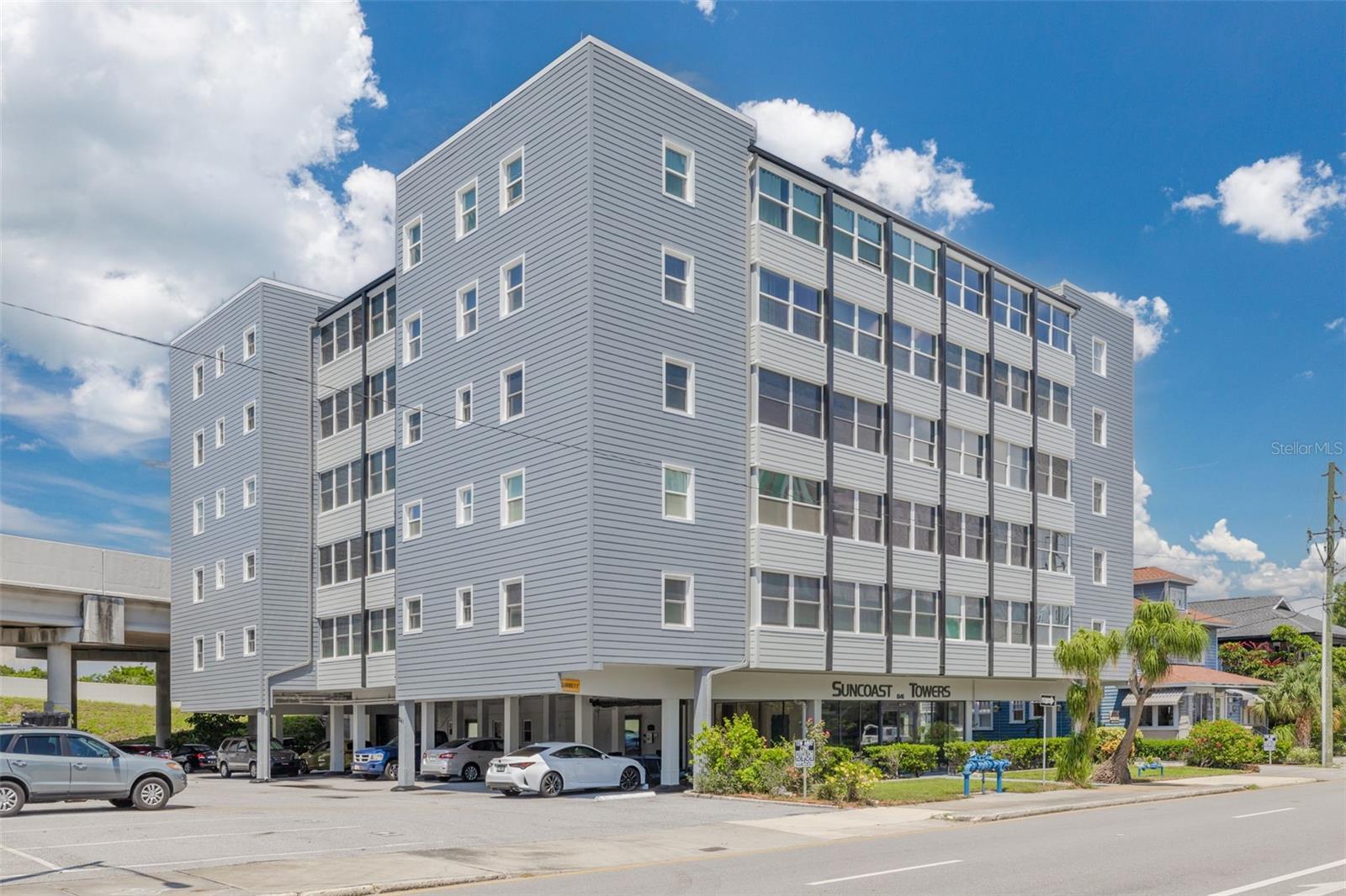The new look at Suncoast Towers is official, and it's amazing! This is your chance to buy in a recently renovated building that also has a passing Milestone report, ensuring the building's structural integrity and long-term value. Located in a million-dollar zip code, Suncoast Towers offers the best of downtown St. Petersburg living. This extraordinary opportunity allows you to own a stunning unit in the sought-after Suncoast Towers 55+ community. Recently renovated to perfection, this unit features a modern and sophisticated design with exquisite white shaker kitchen cabinets, Quartz countertops, recessed lighting, and luxurious vinyl plank flooring throughout. The bathroom has been remodeled and features seamless shower glass doors, a rain shower head, hexagon floor tile, and a LED light bathroom mirror, offering both elegance and relaxation. This unit is fully equipped with new, top-of-the-line stainless steel appliances (2025), electric blinds on the hurricane impact-rated windows, and a new AC unit (2025), offering you peace of mind and a comfortable living environment. The building is also pet-friendly and equipped with an elevator for easy access to all floors, making it convenient for residents of all ages and their furry companions. With co-op ownership, you will experience virtually maintenance-free living as the monthly co-op fee includes cable and internet, sewer, water, trash, electric, AC and heating, pest control, and all building maintenance and insurance. Simply move in and start experiencing the vibrant, walkable, and bikeable lifestyle that downtown St. Pete/Tampa Bay offers, including activities, dining, sporting events, museums, and shopping. Don’t miss out on this incredible opportunity—call today to schedule your private tour of this beautiful unit in Suncoast Towers!