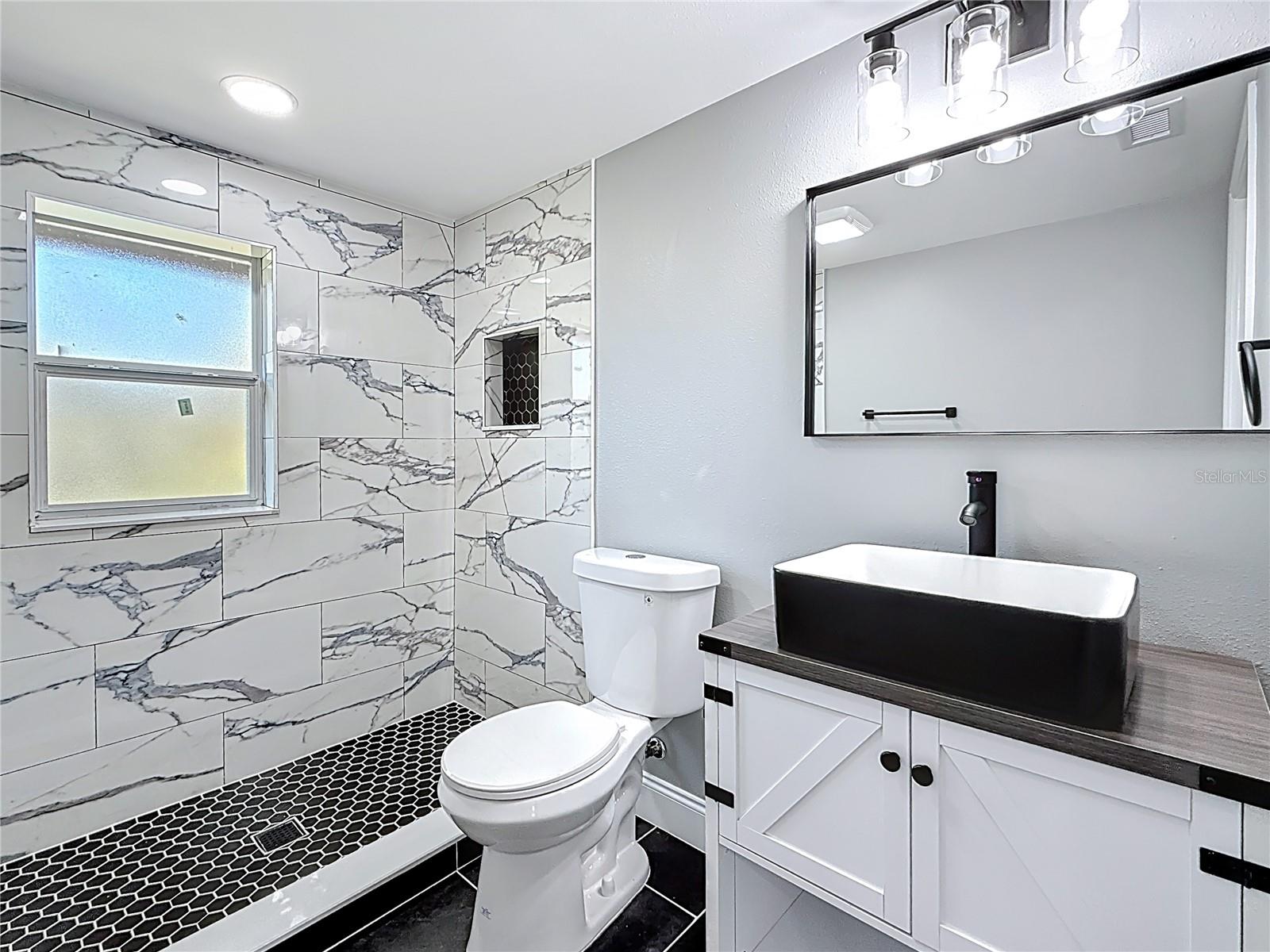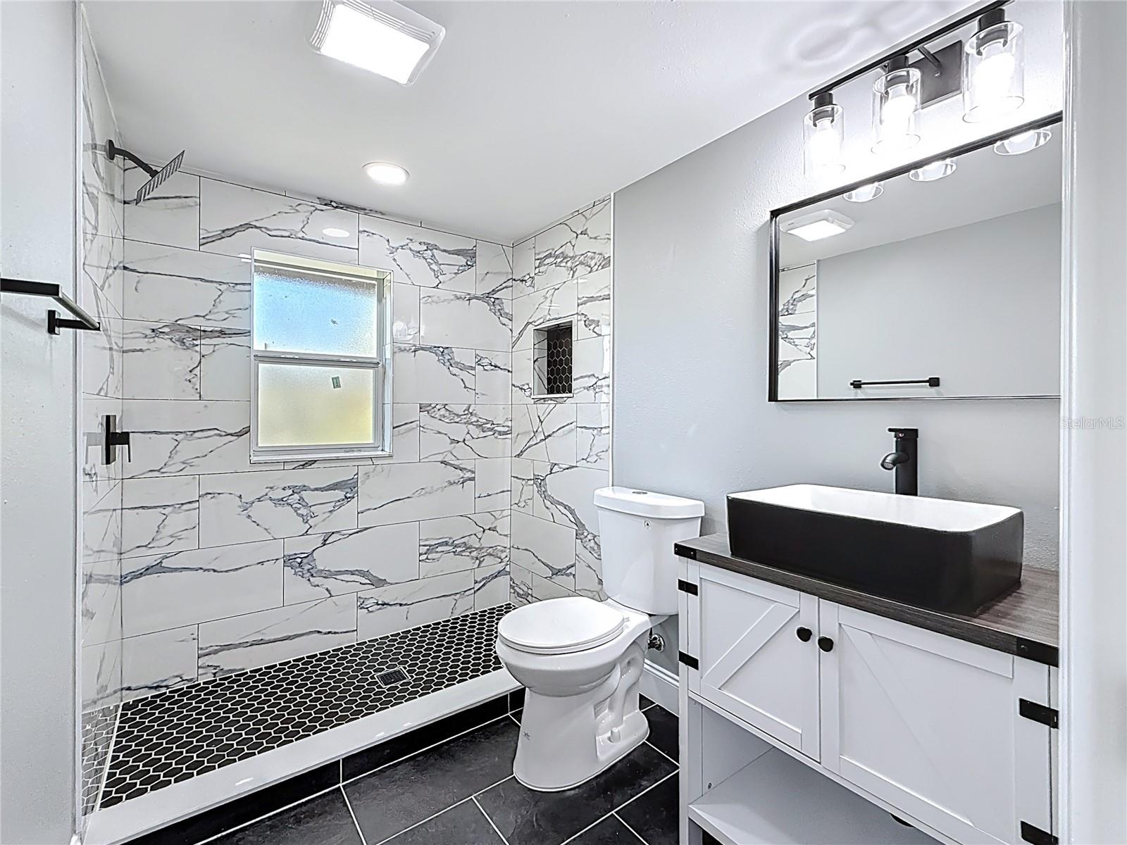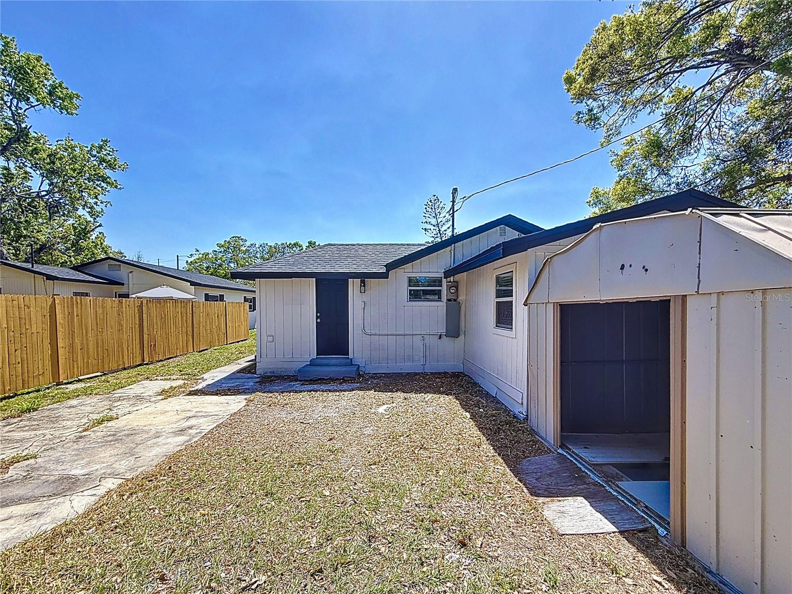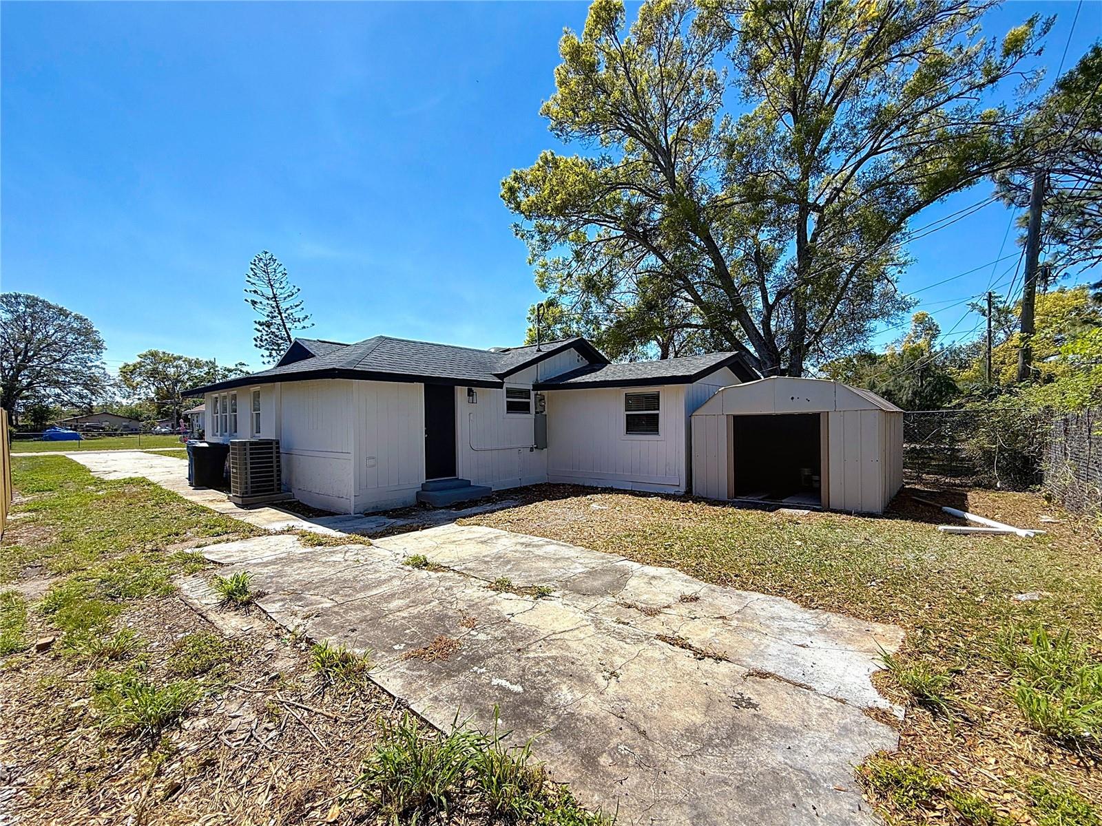 Wow! OWNER FINANCING AVAILABLE!! Welcome to this 3 bedroom, 2 bathroom, freshly remodeled home located in sunny St. Petersburg, FL! This home boasts top of the line finishes and immense attention to detail. Upon entry, you will be greeted by a spacious open floor plan equipped with vaulted ceilings and a family room perfect for relaxation and entertainment. The family room flows into an astonishing kitchen which has been meticulously designed to boast white upper cabinetry, navy lower cabinets, an oversized farmhouse sink, quartz countertops, and gold finishes! The master bedroom spares no expense with space and also includes His and Hers closets for ample storage space. Enjoy the beautifully designed, modern style bathrooms that boast luxurious black and white tile work, vibrantly illuminated LED vanities, and an oversized walk-in shower. Each guest bedroom is designed with high ceilings, waterproof luxury vinyl flooring, and substantial closet space. Stackable washer and dryer unit space is located at the back of the master bathroom as well as a tankless hot water heater. The exterior of this home features fresh paint, stucco, beautiful landscaping, and an elongated multi-car driveway. The back yard of this home is enclosed with trees and fencing and is additionally equipped with large shed that allows for bonus storage. New electrical, plumbing, and HVAC. Brand New Roof 2024. Flood zone X. Located just minutes from Gulfports Historic District's shops, restaurants, and pier, as well as Downtown Saint Petersburg, and Florida's award winning Gulf Coast Beaches! Don’t miss out on this rare opportunity! Call today to schedule your private showing.