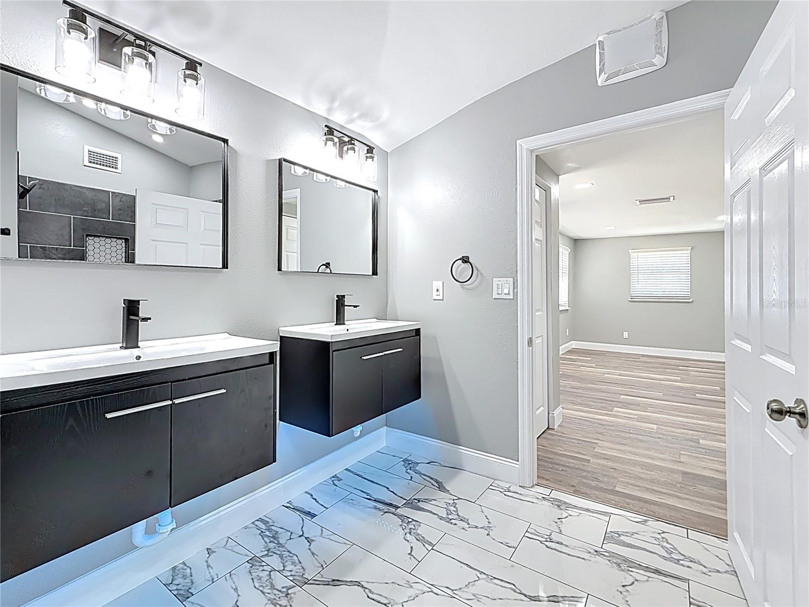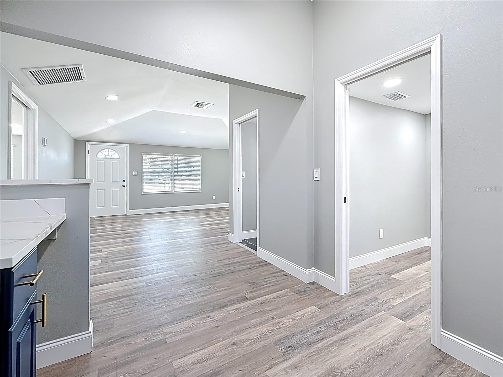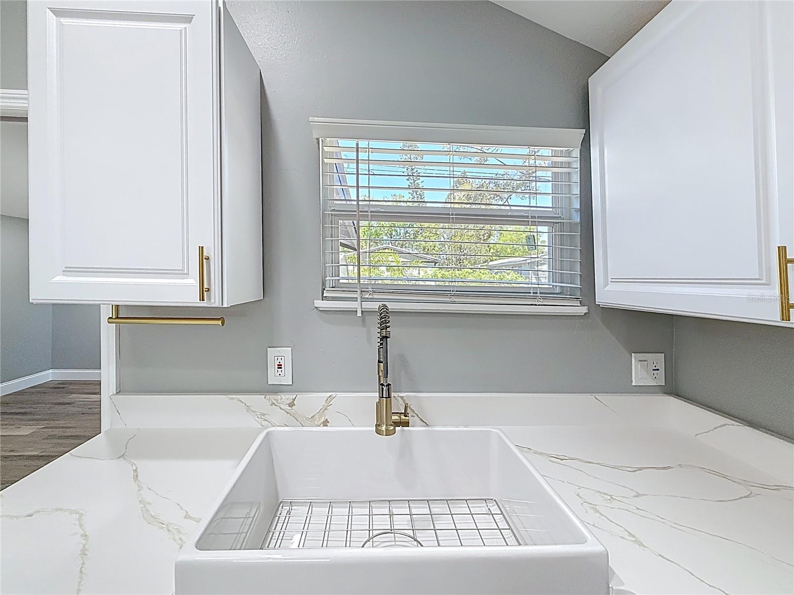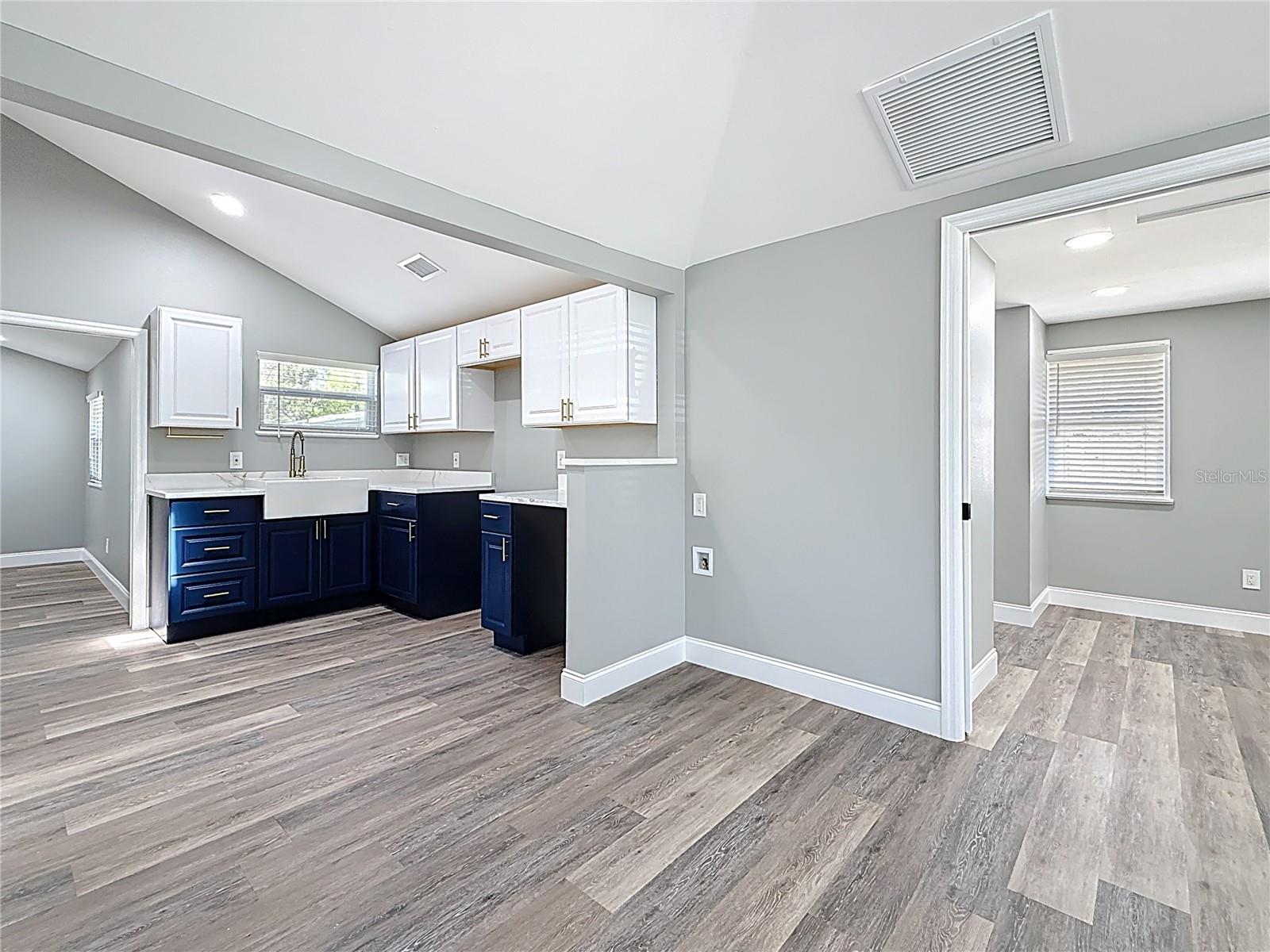 Wow! OWNER FINANCING AVAILABLE!! Welcome to this 3 bedroom, 2 bathroom, freshly remodeled home located in sunny St. Petersburg, FL! This home boasts top of the line finishes and immense attention to detail. Upon entry, you will be greeted by a spacious open floor plan equipped with vaulted ceilings and a family room perfect for relaxation and entertainment. The family room flows into an astonishing kitchen which has been meticulously designed to boast white upper cabinetry, navy lower cabinets, an oversized farmhouse sink, quartz countertops, and gold finishes! The master bedroom spares no expense with space and also includes His and Hers closets for ample storage space. Enjoy the beautifully designed, modern style bathrooms that boast luxurious black and white tile work, vibrantly illuminated LED vanities, and an oversized walk-in shower. Each guest bedroom is designed with high ceilings, waterproof luxury vinyl flooring, and substantial closet space. Stackable washer and dryer unit space is located at the back of the master bathroom as well as a tankless hot water heater. The exterior of this home features fresh paint, stucco, beautiful landscaping, and an elongated multi-car driveway. The back yard of this home is enclosed with trees and fencing and is additionally equipped with large shed that allows for bonus storage. New electrical, plumbing, and HVAC. Brand New Roof 2024. Flood zone X. Located just minutes from Gulfports Historic District's shops, restaurants, and pier, as well as Downtown Saint Petersburg, and Florida's award winning Gulf Coast Beaches! Don’t miss out on this rare opportunity! Call today to schedule your private showing.