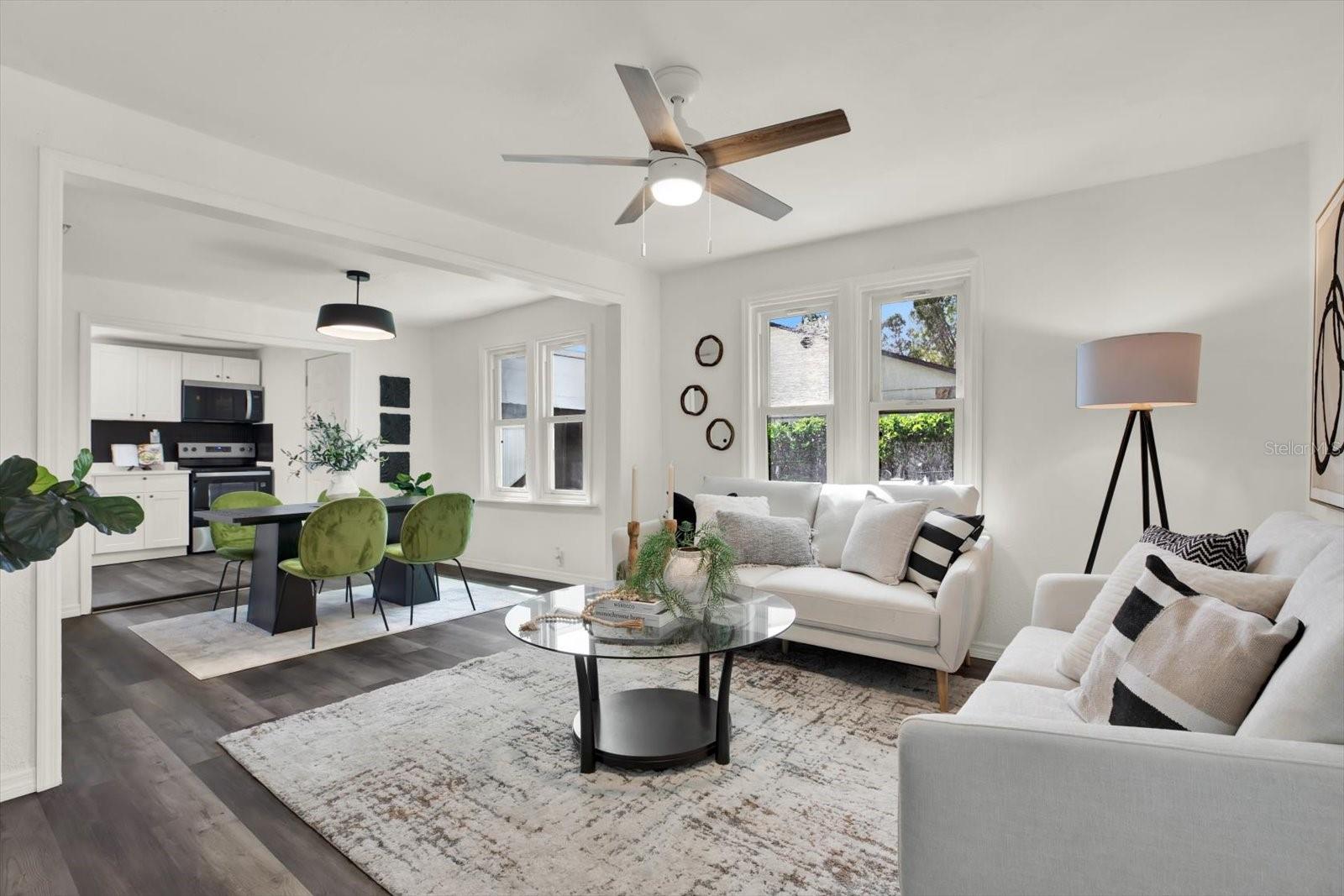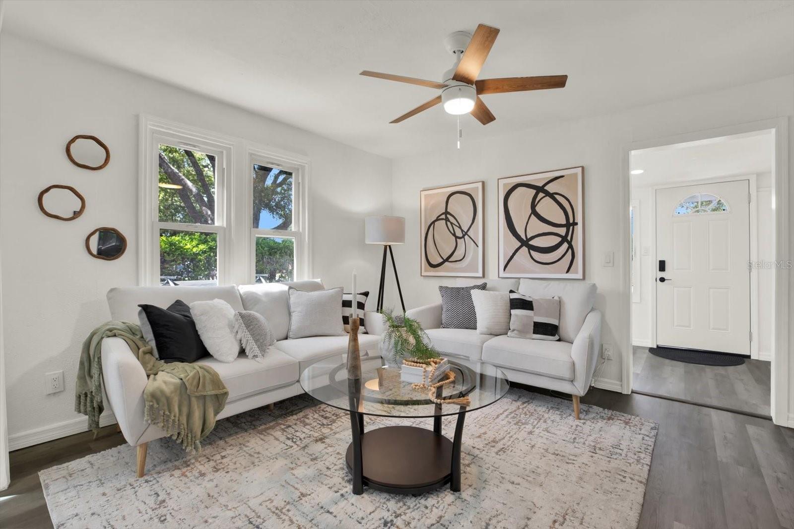 Welcome home to this beautifully remodeled bungalow, where there's nothing left to do but unpack and relax! This home has been tastefully upgraded from top to bottom, situated high and dry in a non-flood zone—rest assured, there was absolutely NO water damage from Hurricane Helene! Centrally located, you’ll find yourself just a short drive from Downtown, Tyrone Square Mall, and the stunning Gulf Beaches. The open concept design makes entertaining guests a breeze, creating a welcoming atmosphere for gatherings and family time. The primary bedroom is a true retreat, complete with a massive walk-in closet that provides ample storage space. The bathroom boasts modern fixtures and finishes, making your daily routines feel like a spa experience. Parking is plentiful with multiple spaces available in front and through the convenient rear alley access. Step outside to discover an oversized, newly fenced-in backyard, perfect for storing your hobbies and toys! Whether you have boats, an RV, or want to build a pool, the possibilities are endless! Plus, take advantage of zoning opportunities by adding your own Accessory Dwelling Unit Don’t miss out on this gem—schedule your showing today and embrace the lifestyle you’ve always dreamed of!