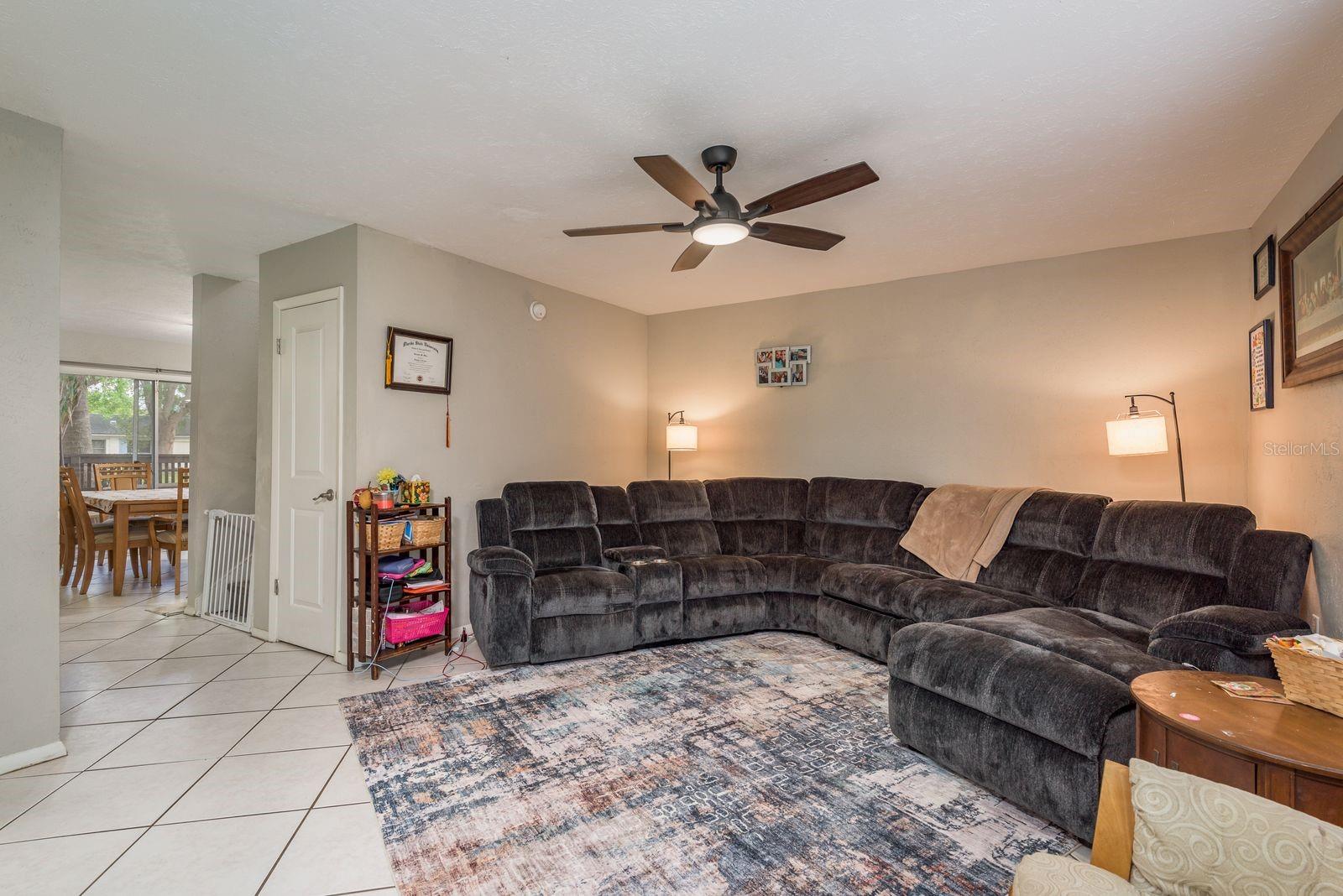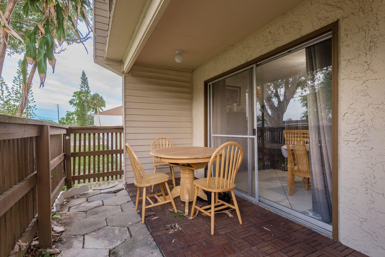 One or more photo(s) has been virtually staged. Welcome to your beautifully updated CORNER UNIT townhouse-style condo! Upon entering, you'll be greeted by a spacious living room that features an entry closet and a convenient half bath. The open layout flows into the bright dining area, which seamlessly connects to a kitchen that will delight any home chef. The kitchen boasts of sleek stainless steel appliances, including a French door refrigerator, dishwasher, range oven, and a microwave. Granite countertops, ample cabinetry, and a long breakfast bar add both style and functionality. The dining area leads to a covered back patio, providing a peaceful space to relax. Upstairs, the primary suite offers a private retreat with a walk-in closet, a bathroom with a tub/shower combo, and a covered balcony to enjoy fresh air and outdoor views. The two additional bedrooms are well-sized, each featuring thoughtfully organized closets, and share a full bathroom in the hallway. All of the fans have been updated throughout the home, adding a contemporary touch. The Barkwood Square community offers fantastic amenities, including an in-ground pool, clubhouse, and beautifully maintained grounds. The condo fee covers essential services such as cable TV, internet, pool maintenance, sewer, trash, and water. The community is deed-restricted and pet-friendly, allowing one small pet under 20 pounds with buyer approval. This home combines the best of townhouse living with the ease of condo maintenance, offering a comfortable, low-maintenance lifestyle in a welcoming community. DO not wait! Schedule your showing today.