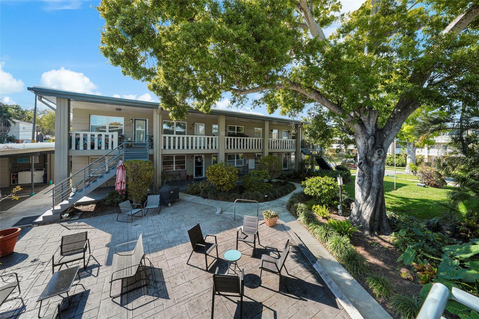 Relaxing atmosphere within the heart of the City. Welcome to the hidden gem condominium of Patrician Garden. Fantastic location just off 4th Street North within a few blocks from Coffee Pot, Trader Joe’s, Publix, public transportation, and Fresh Market. NOT in a Flood Zone! Solid concrete two story building. Unit #102 is a 1 Bedroom, 1 Bath ground floor condo which has been updated with hurricane IMPACT windows, modern kitchen cabinetry, stainless steel appliances, track lighting, and vinyl flooring. Being sold AS-IS with some of the work semi incomplete giving the new owners the opportunity to put their own finishing touches. Beyond the bedroom you’ll find the flex space equipped with a large closet for additional storage, and with access to the backyard. The backyard had been set up with large planters used as dividers to provide privacy, a feature that could be replicated. Condo community features include a laundry facility, assigned 1-car covered carport, a spacious courtyard equipped with a grill, and outdoor furniture for lounging and relaxing among lush tropical landscape. No rentals allowed. Pet allowed. A must see!